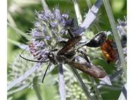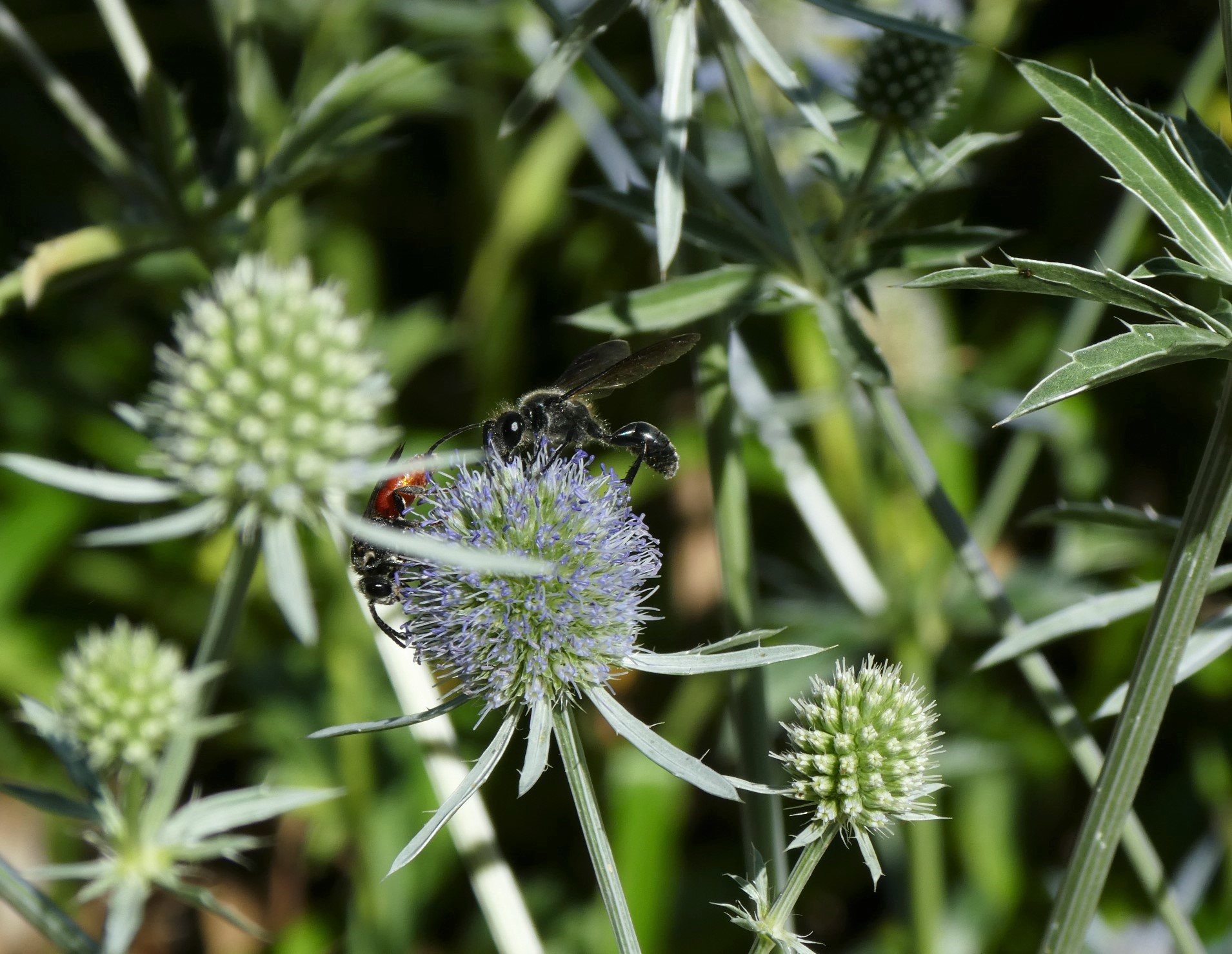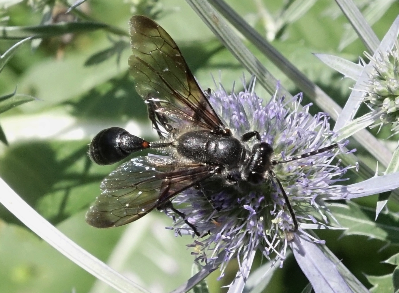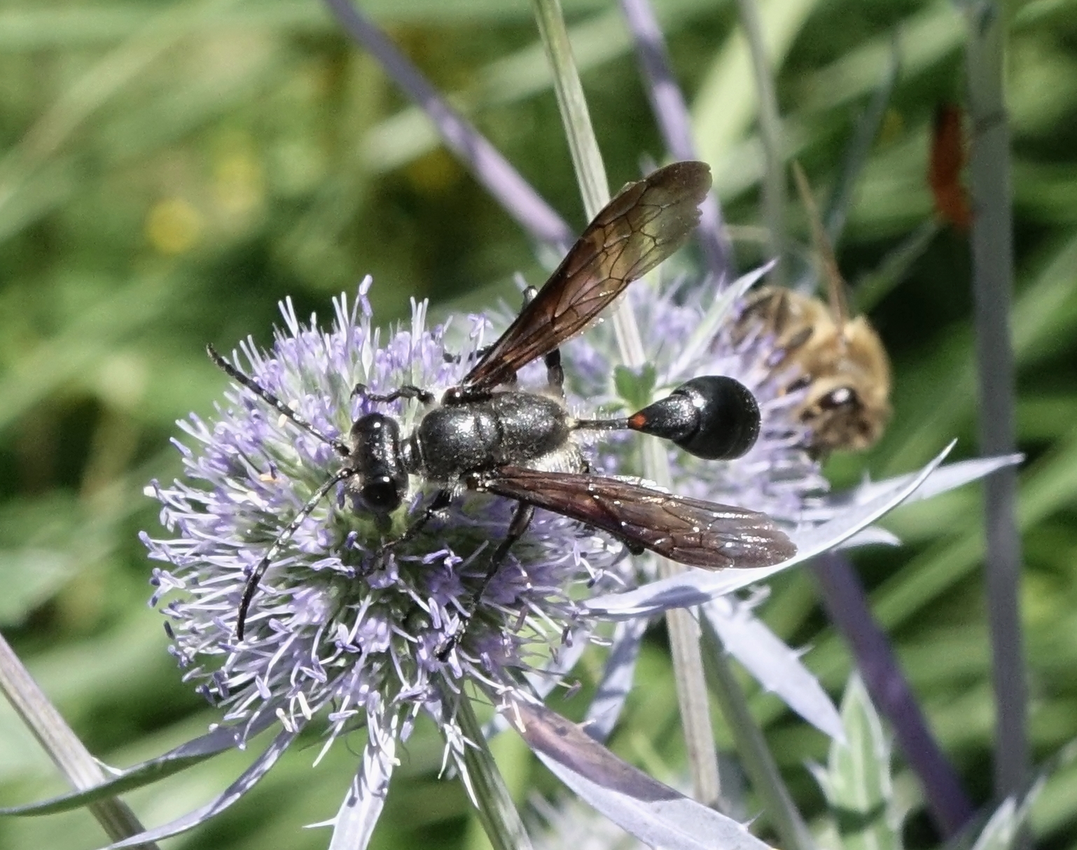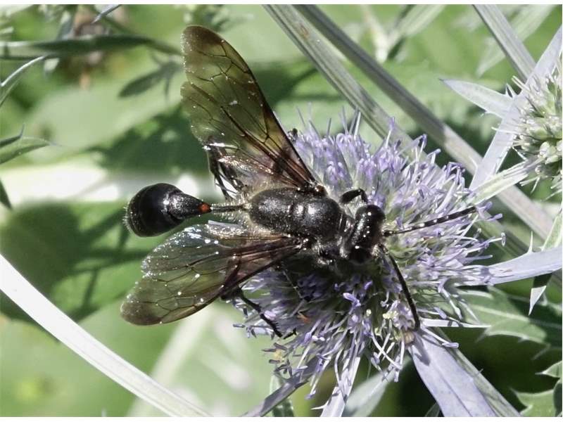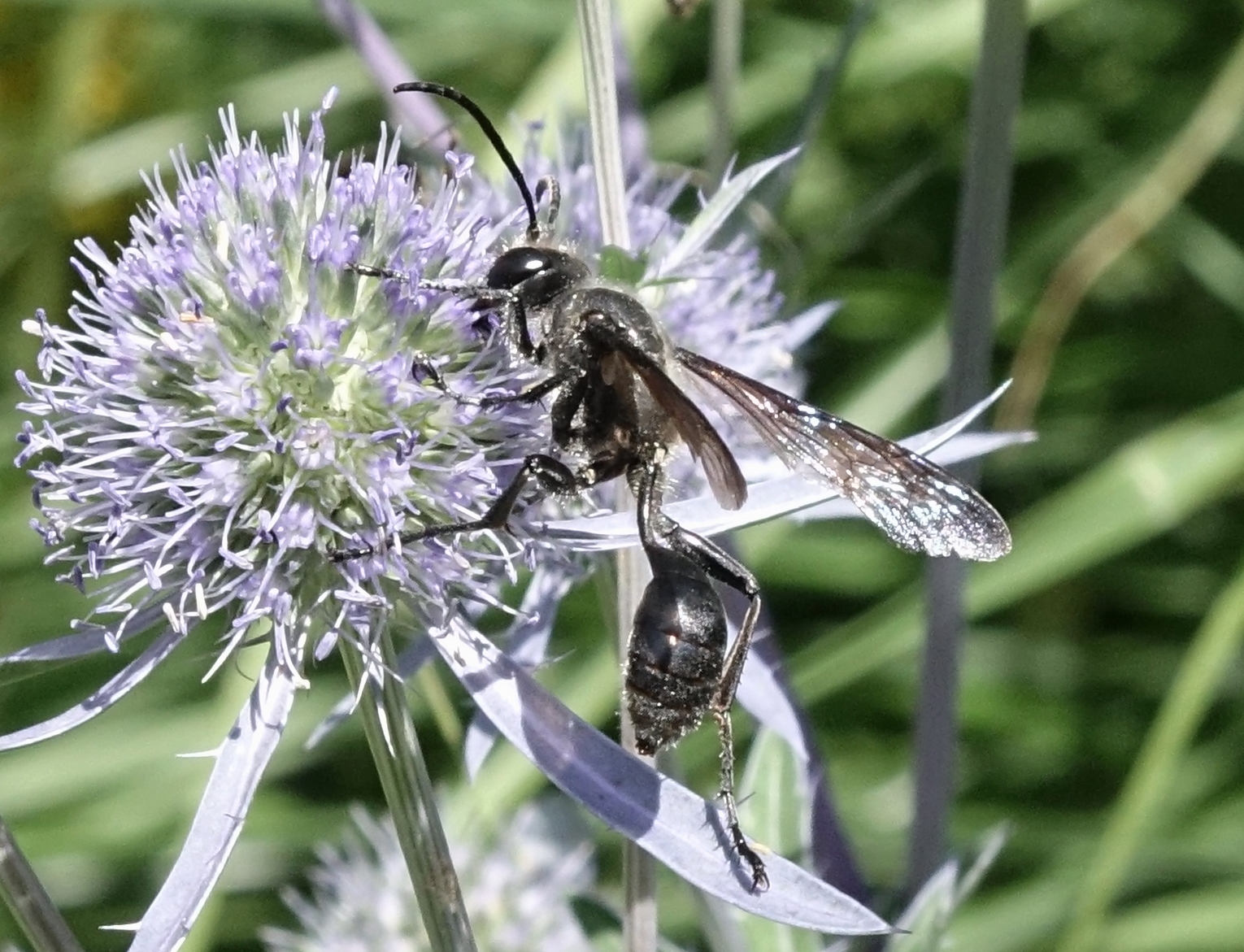 Stahlblauer Grillenjäger an Eryngium planum, Stadt Chemnitz, 18.07.2020