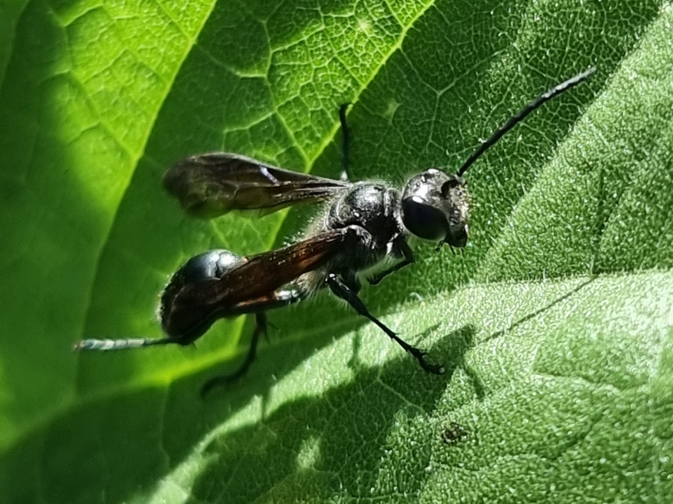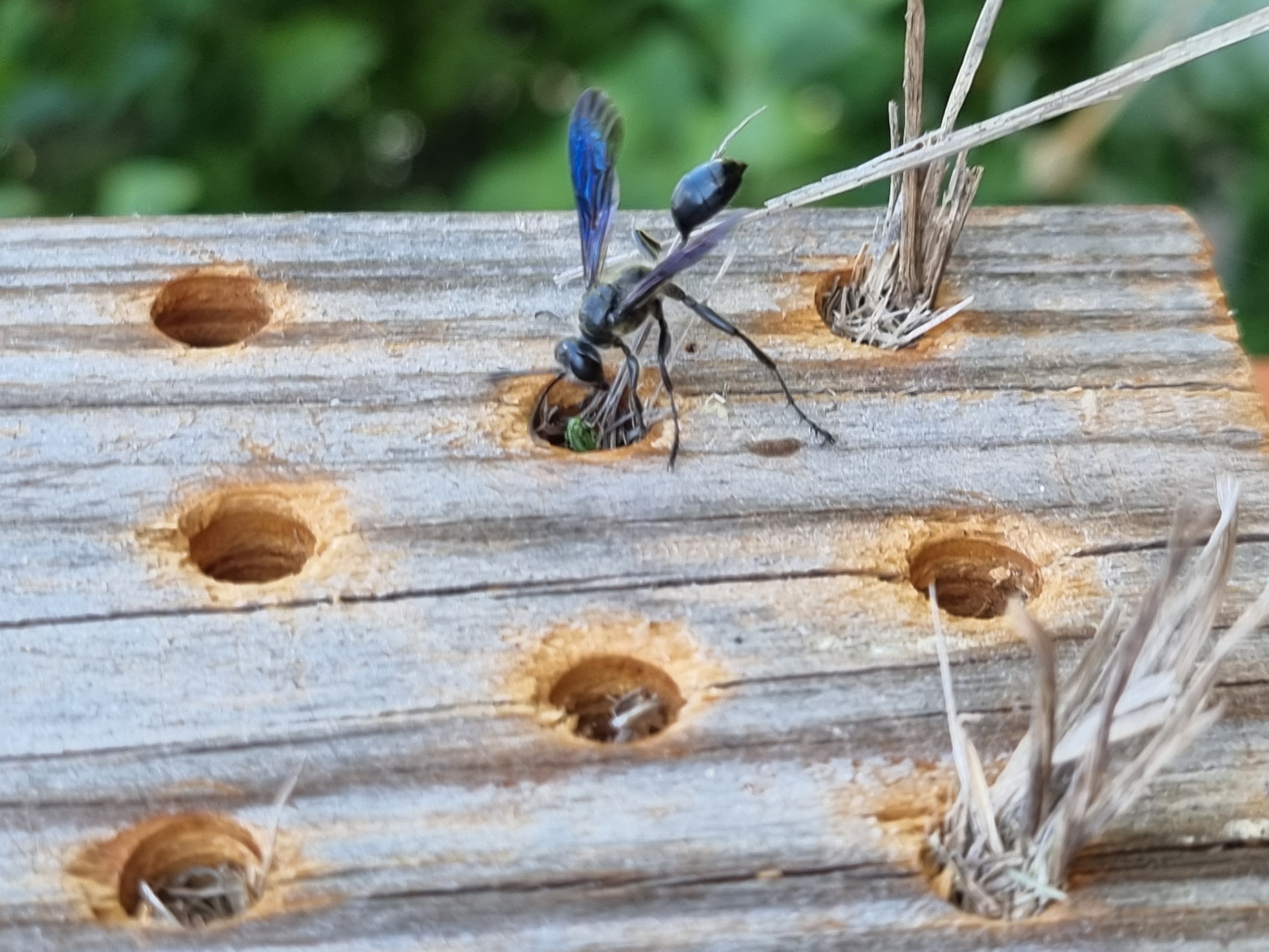 Stahlblauer Grillenjäger (Isodontia mexicana (Saussure, 1867)), Weinböhla, August 2025