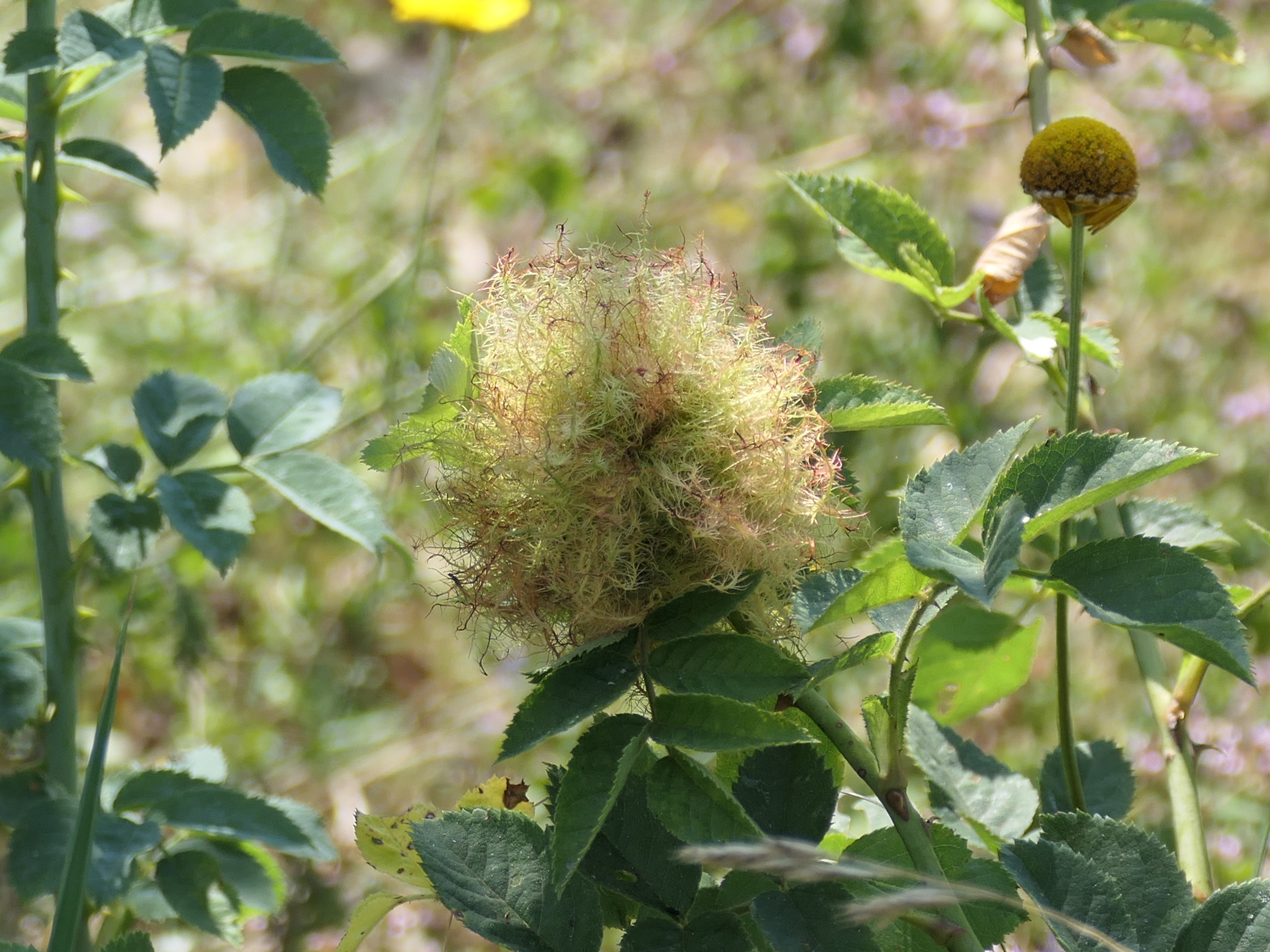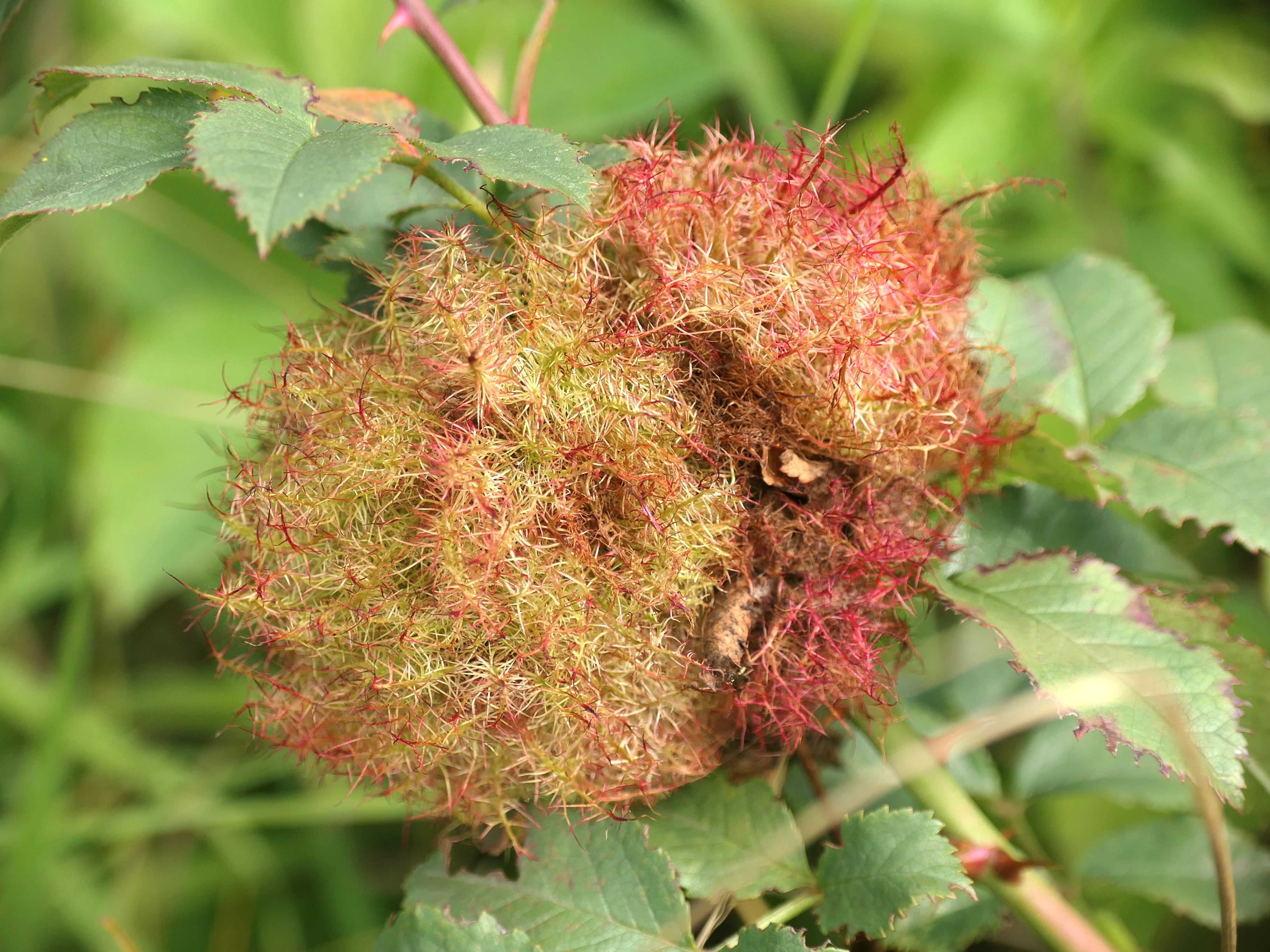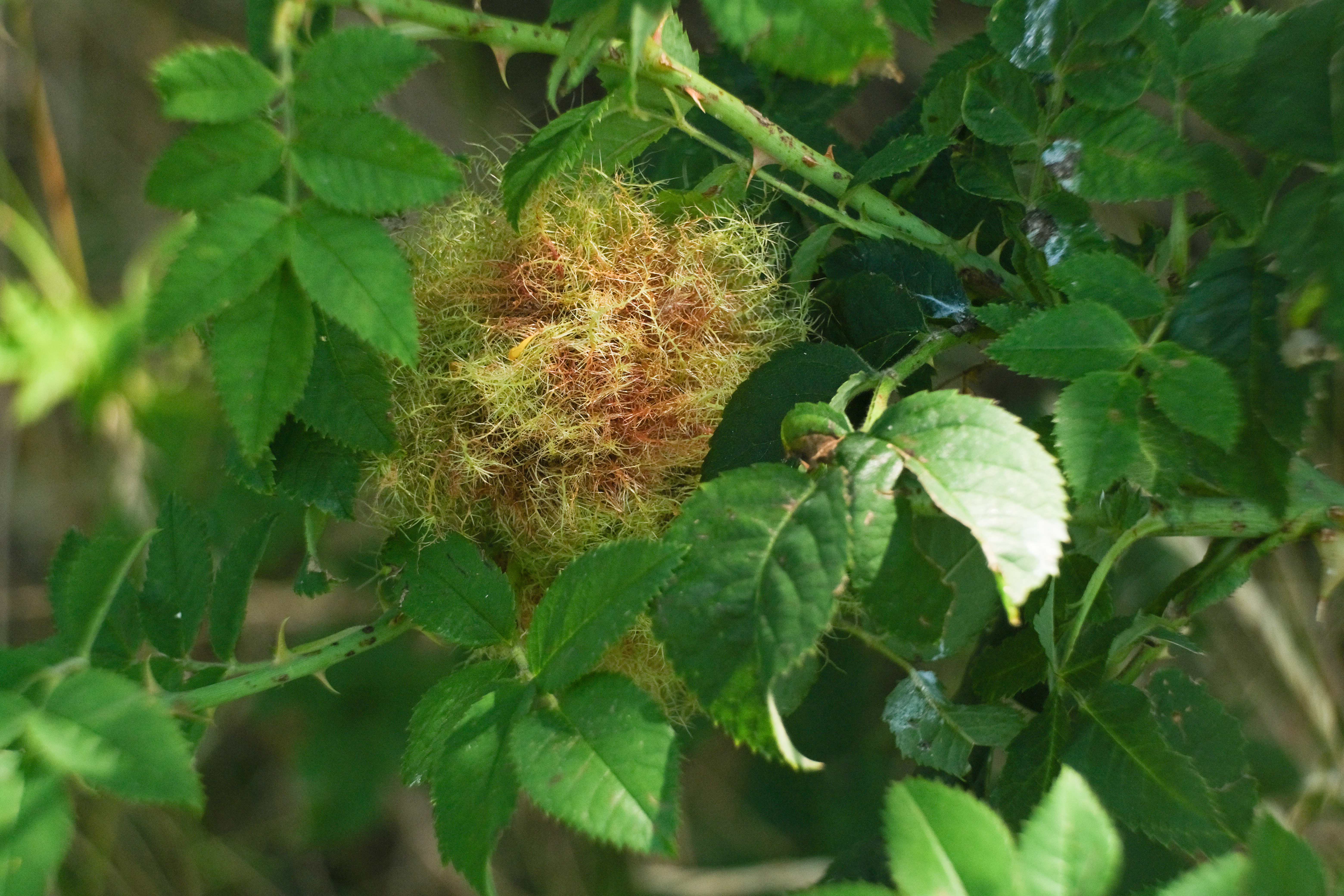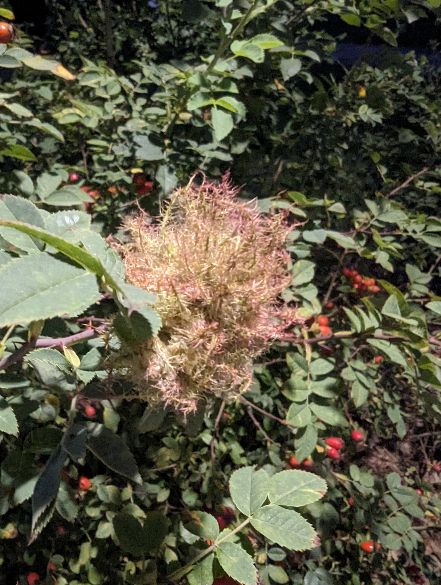 Galle der Gemeinen Rosengallwespe im Juli 2016 bei Ostheim v. d. Rhön (Bayern)