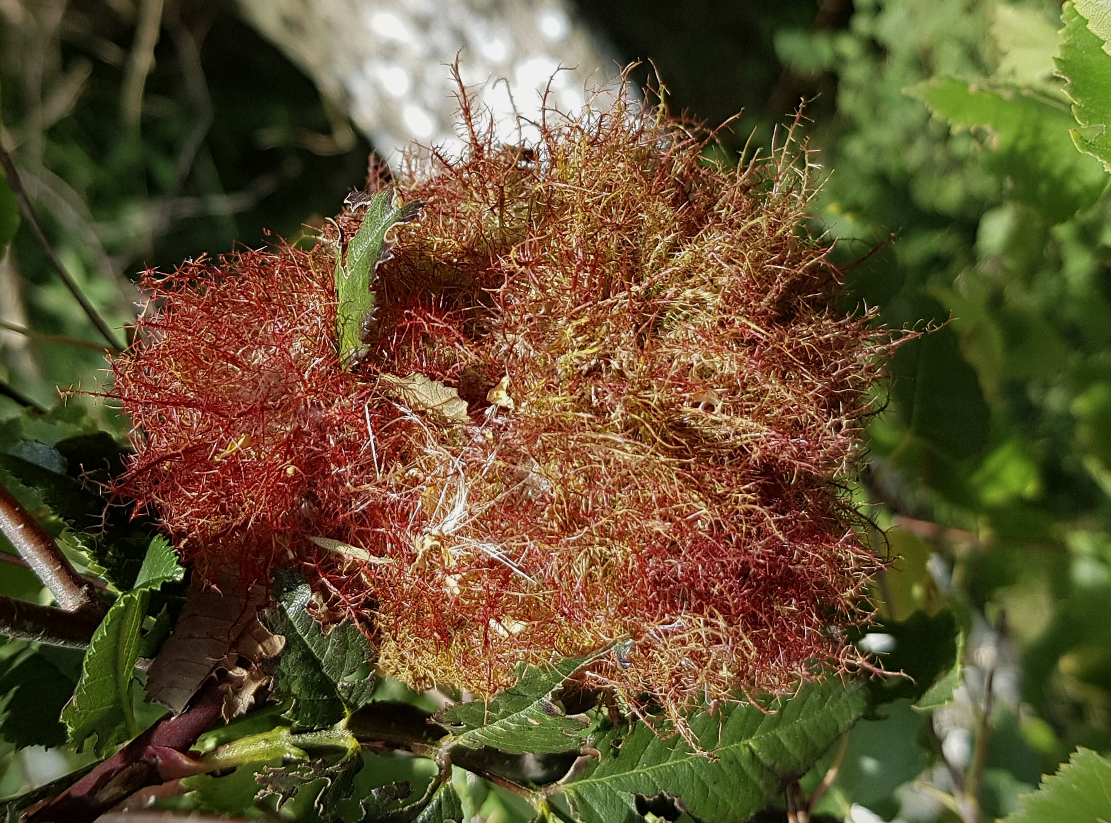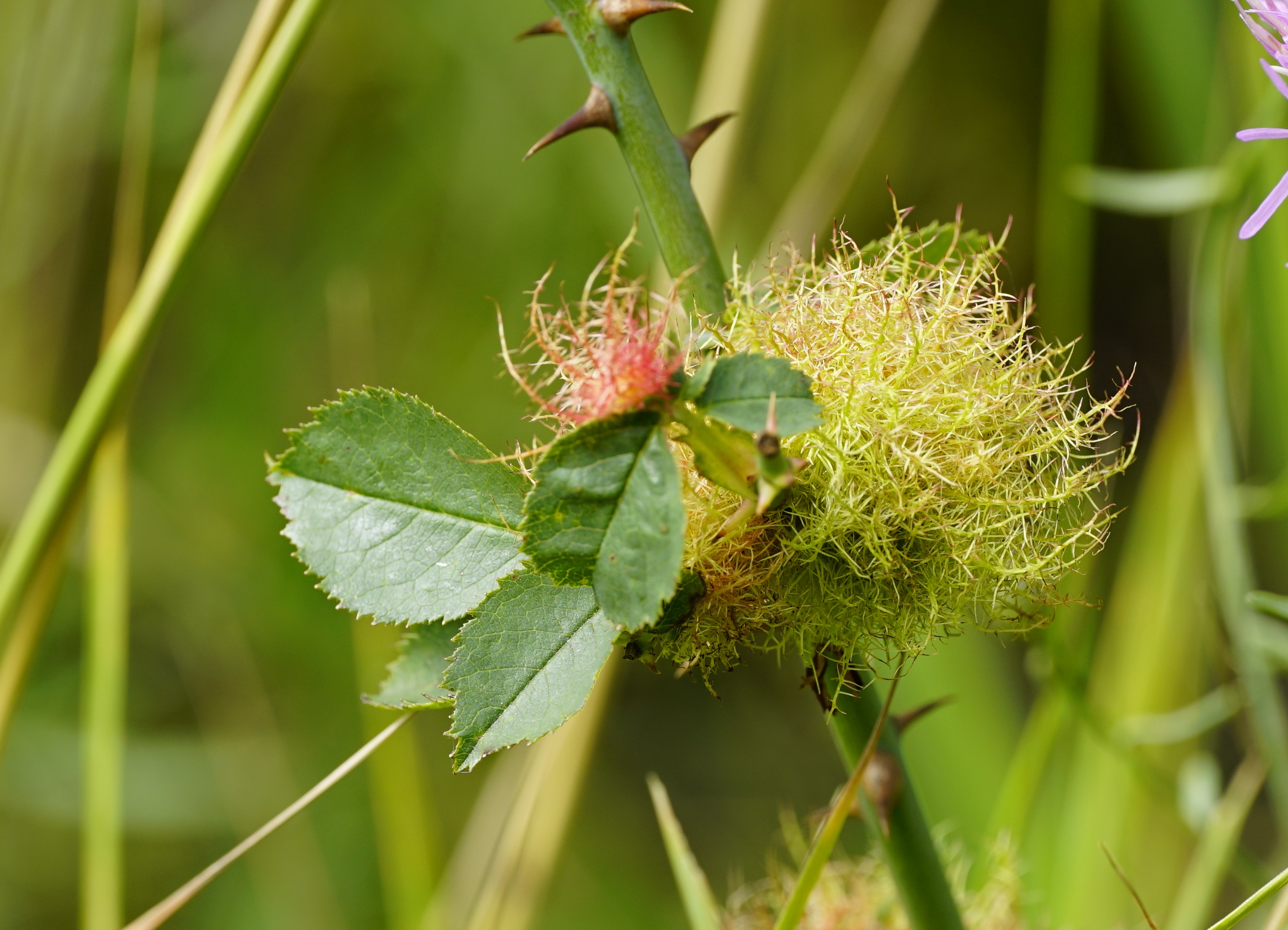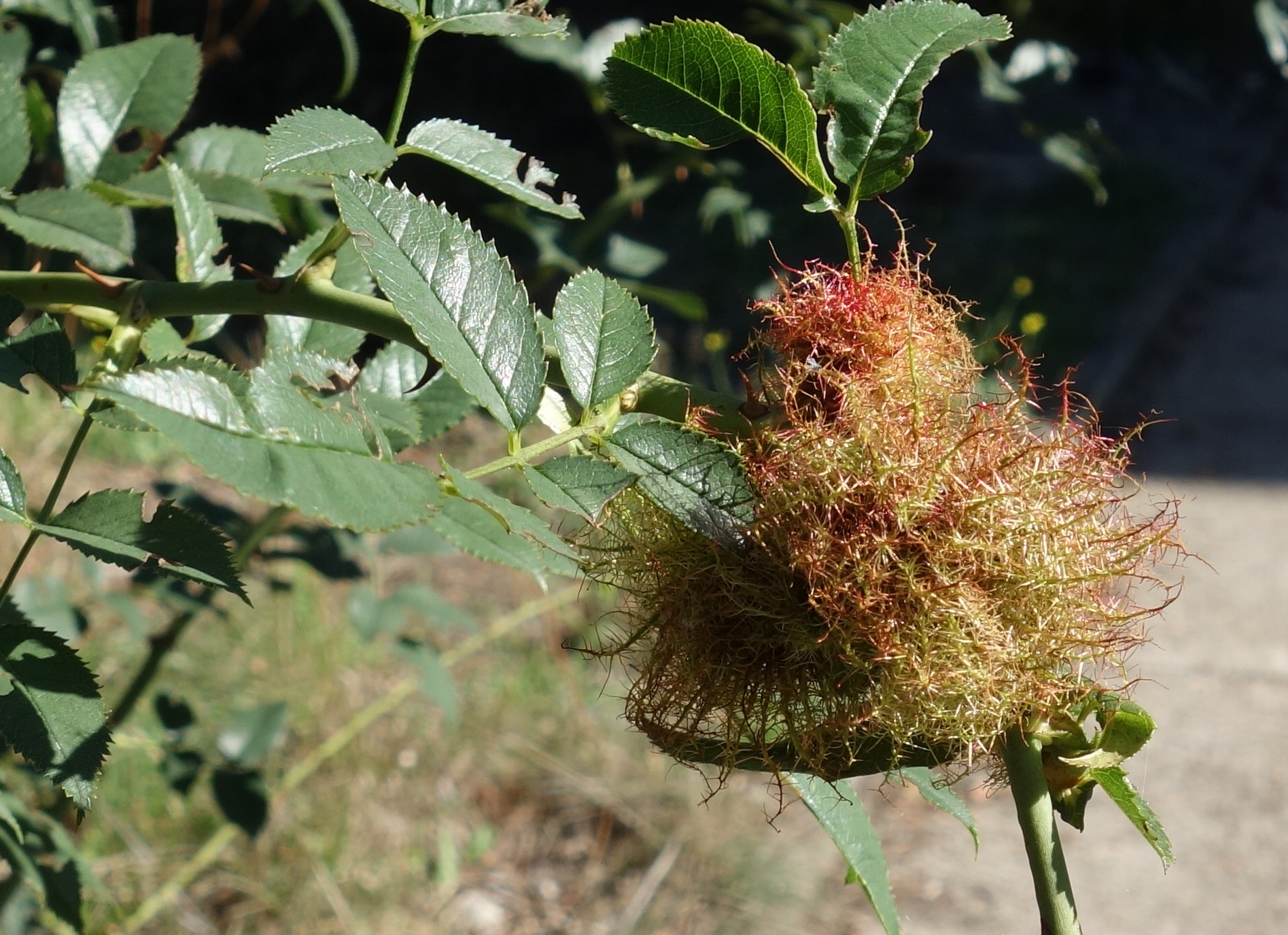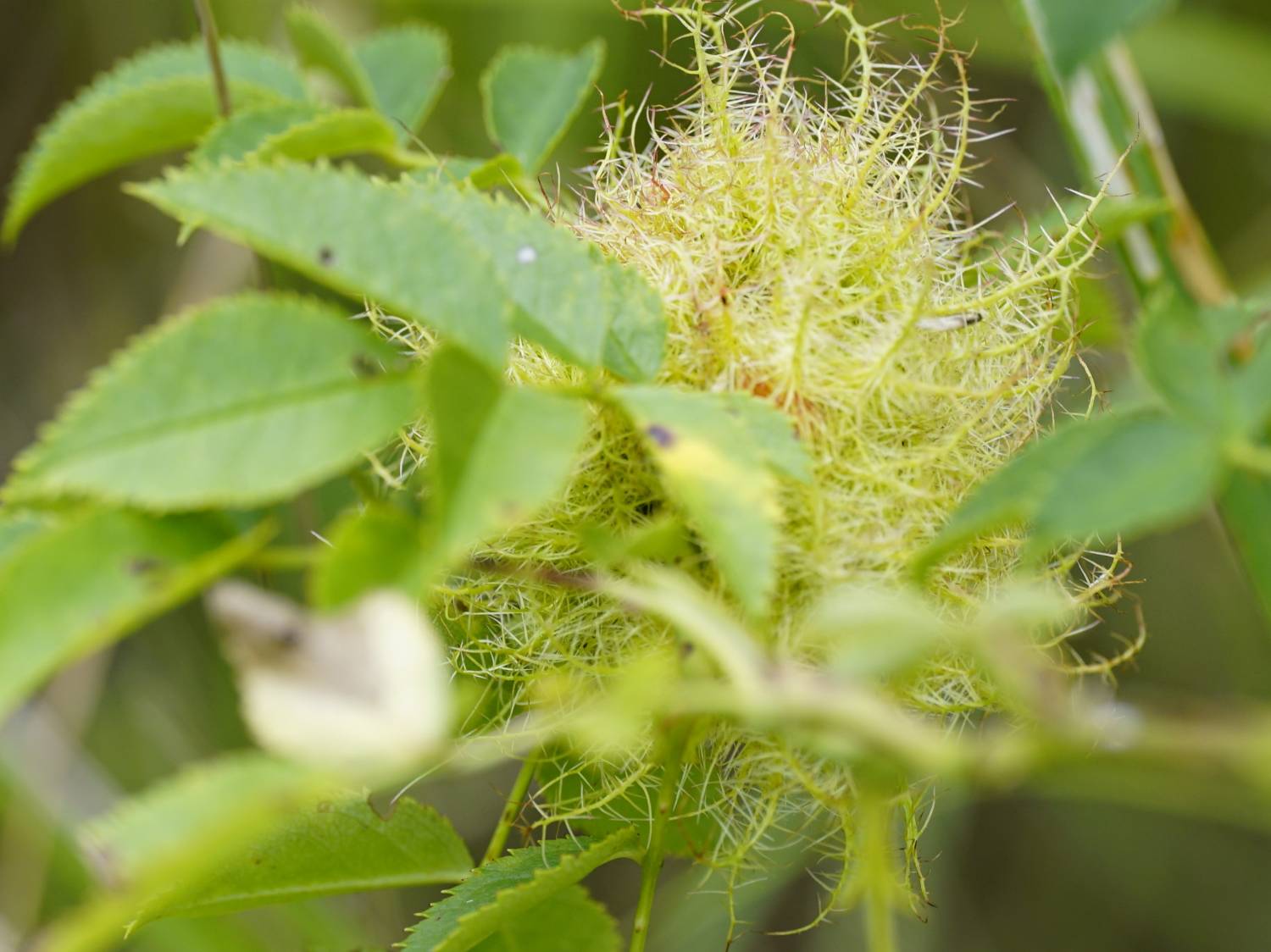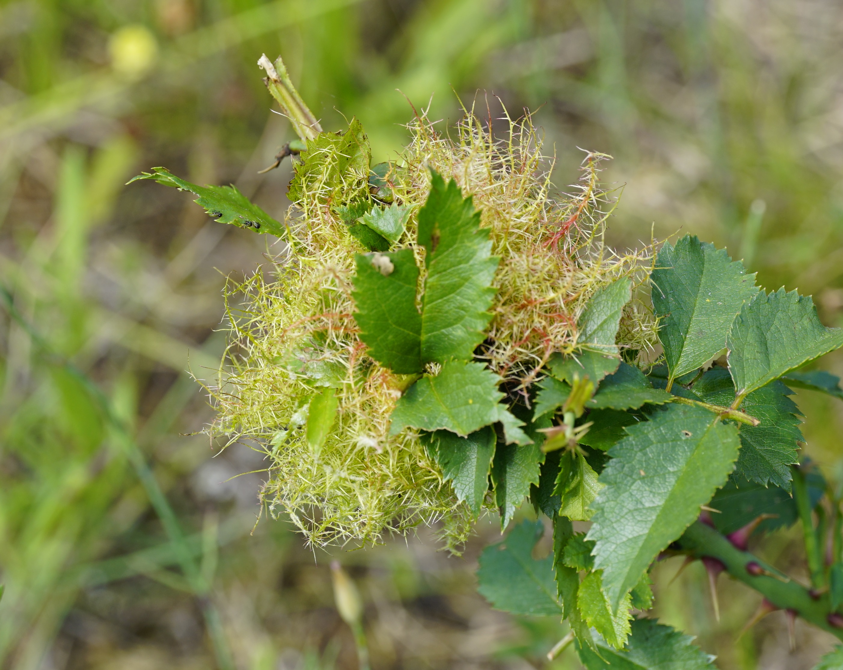 Galle der Gemeinen Rosengallwespe im Juli 2016 bei Ostheim v. d. Rhön (Bayern)