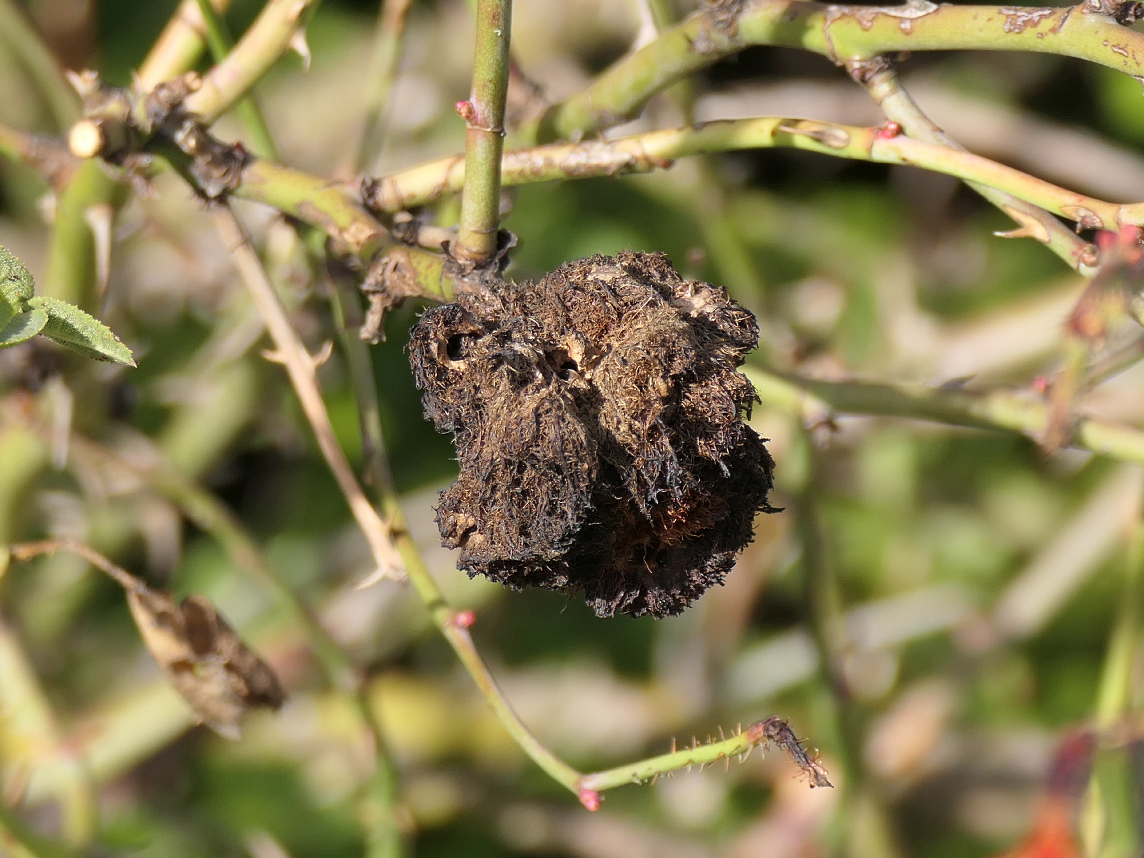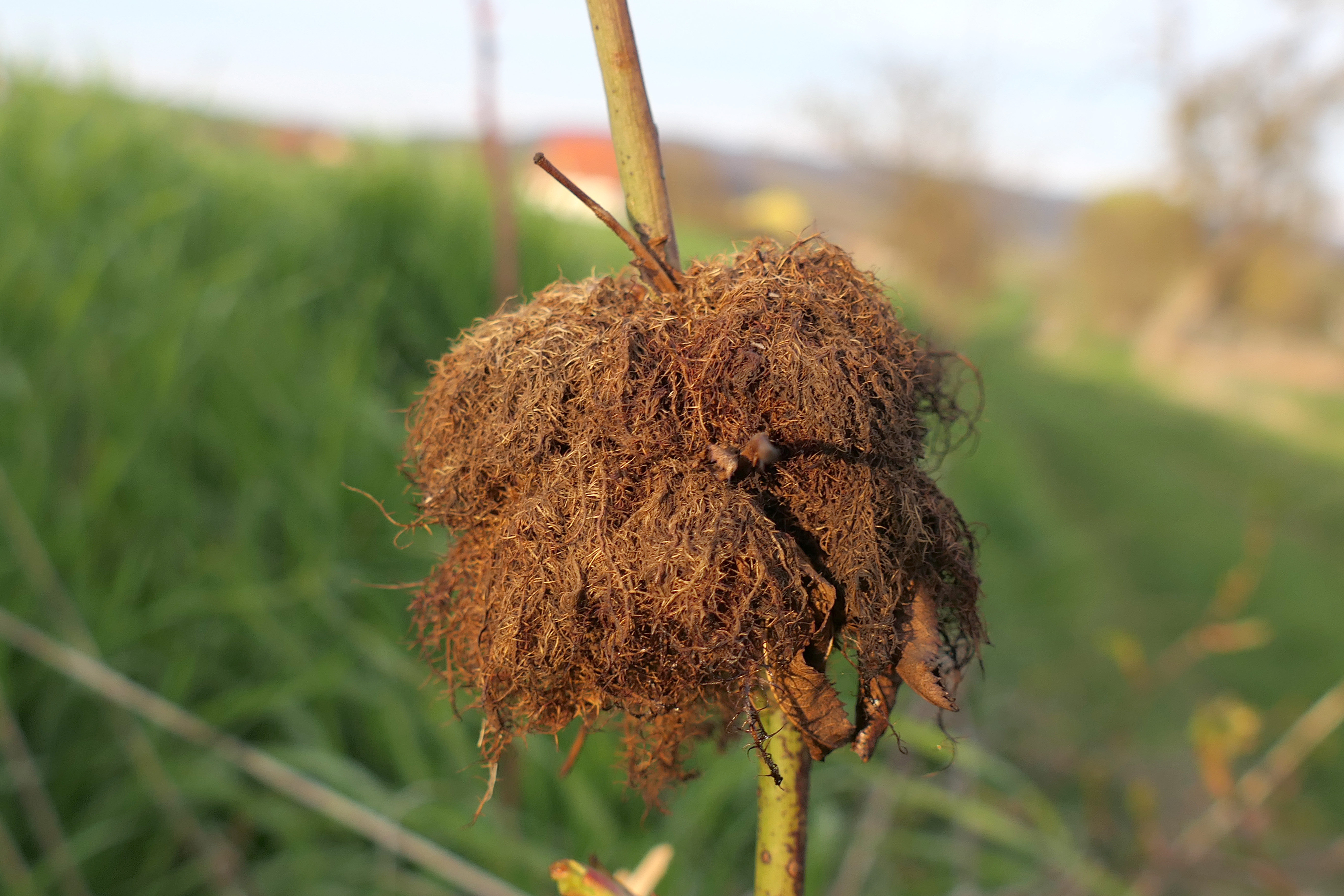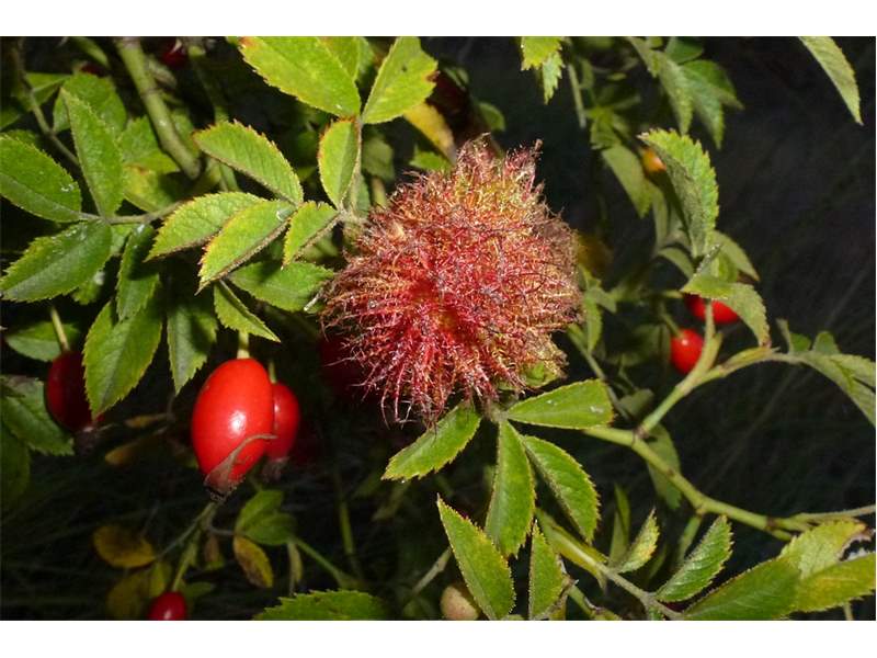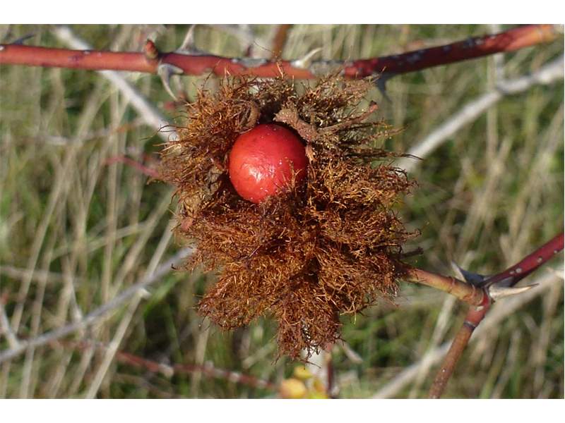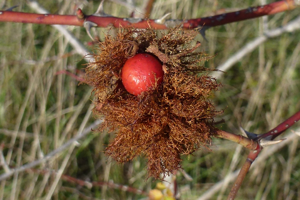 Schlafapfel der Gemeinen Rosengallwespe im Oktober 2016 bei Ederheim (Bayern)