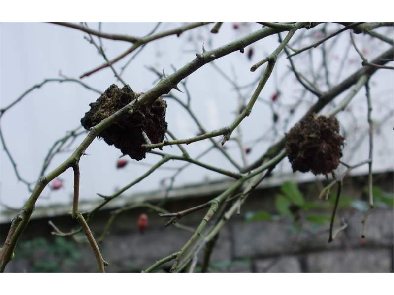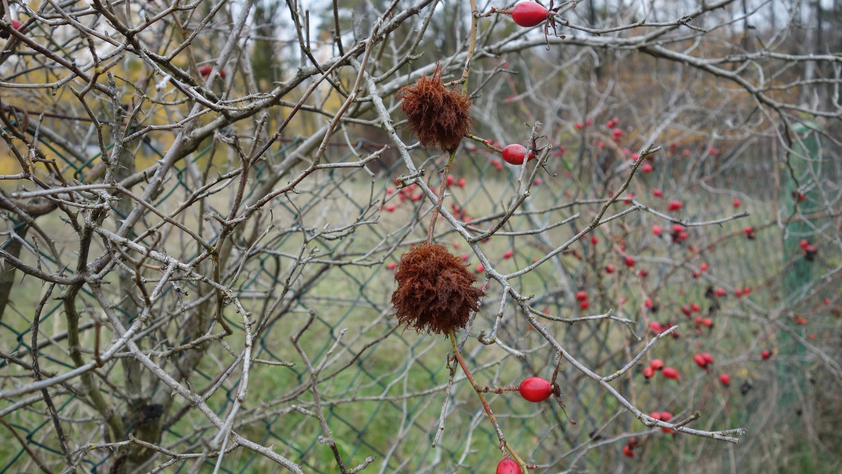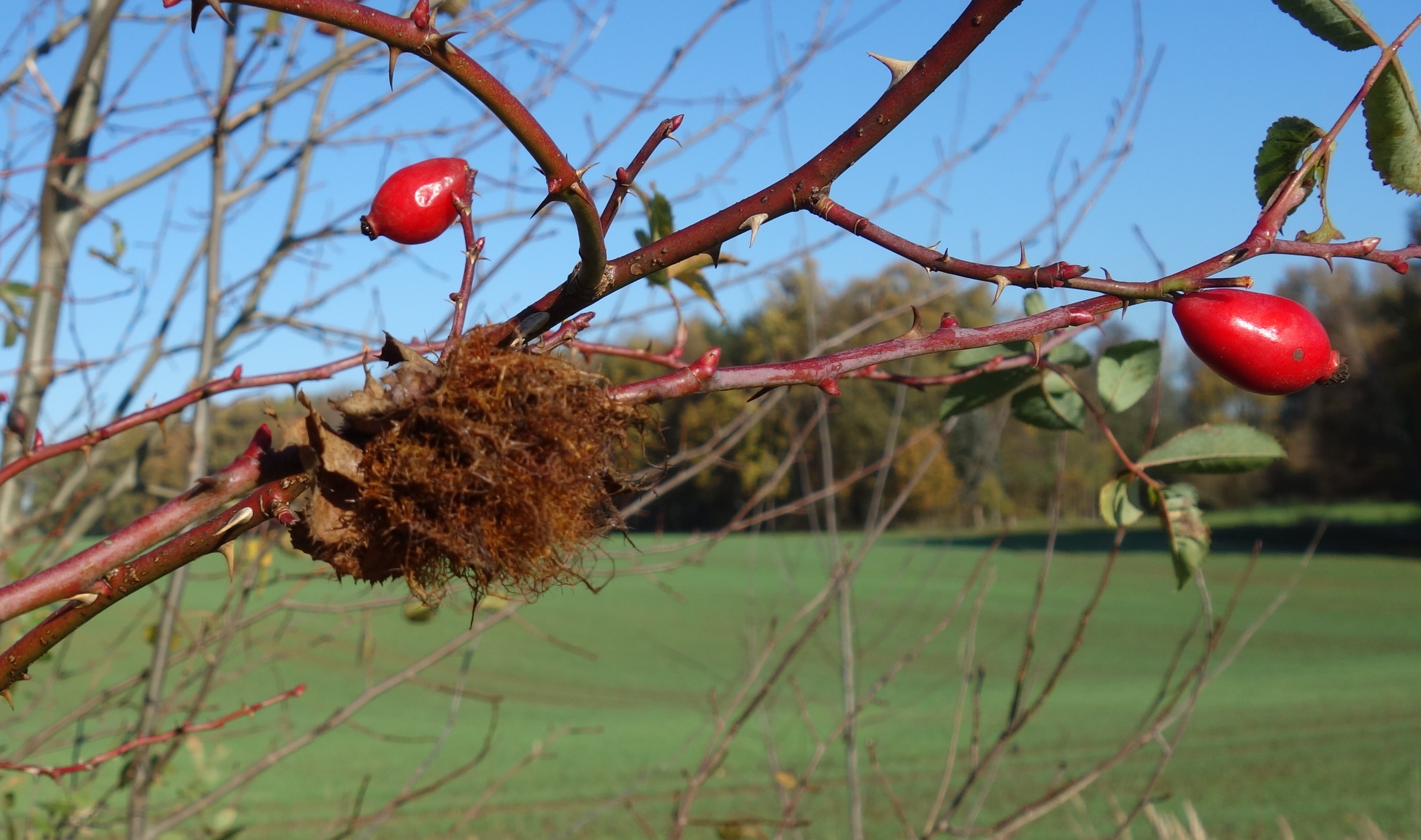 Schlafapfel der Gemeinen Rosengallwespe im Oktober 2016 bei Ederheim (Bayern)