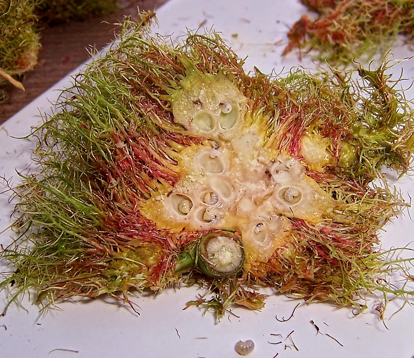 Aufgeschnittener Galle ("Schlafapfel") der Rosengallwespe aus dem Jahr 2006