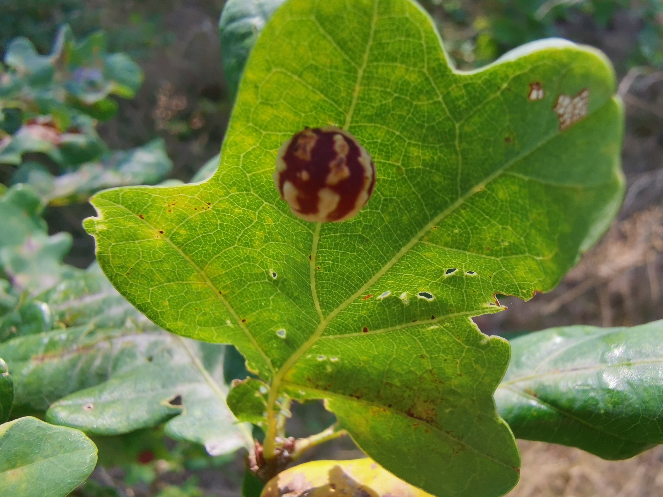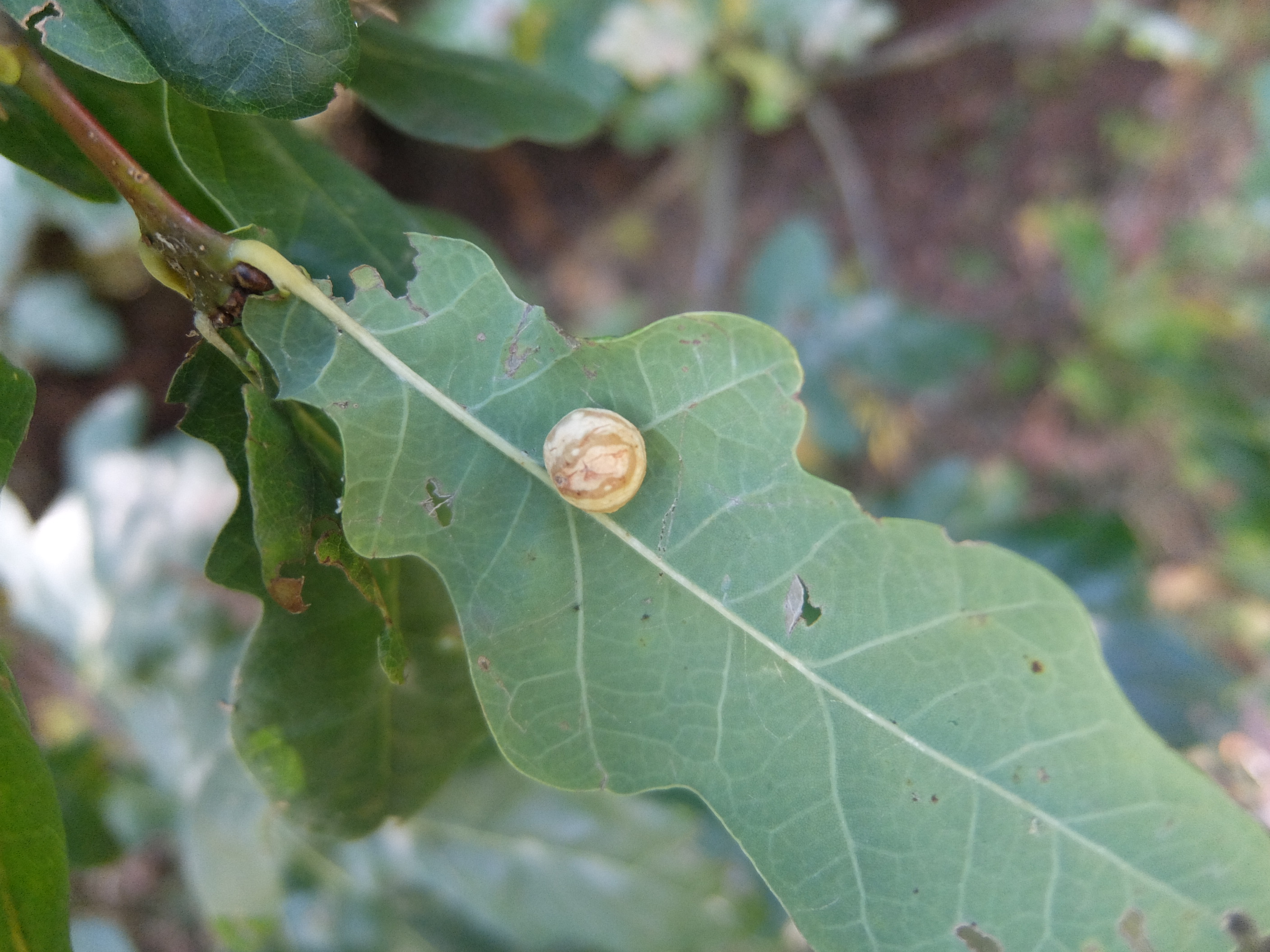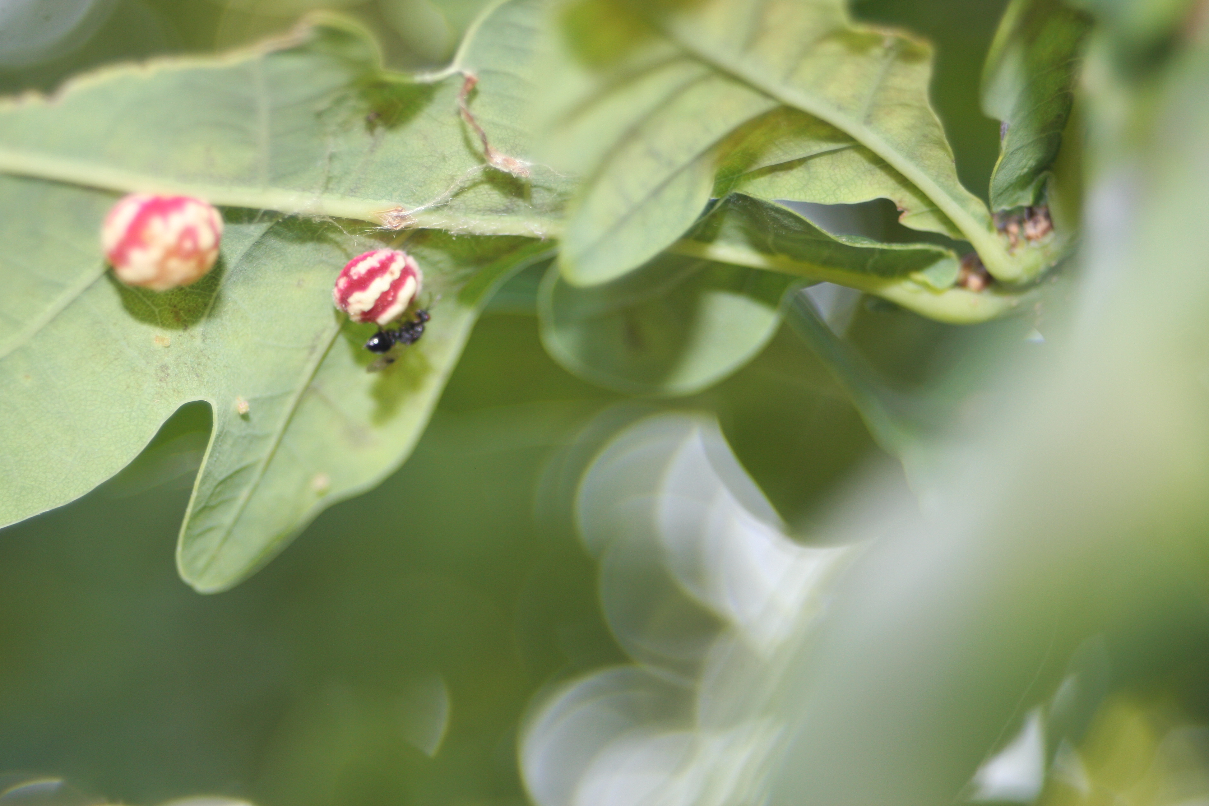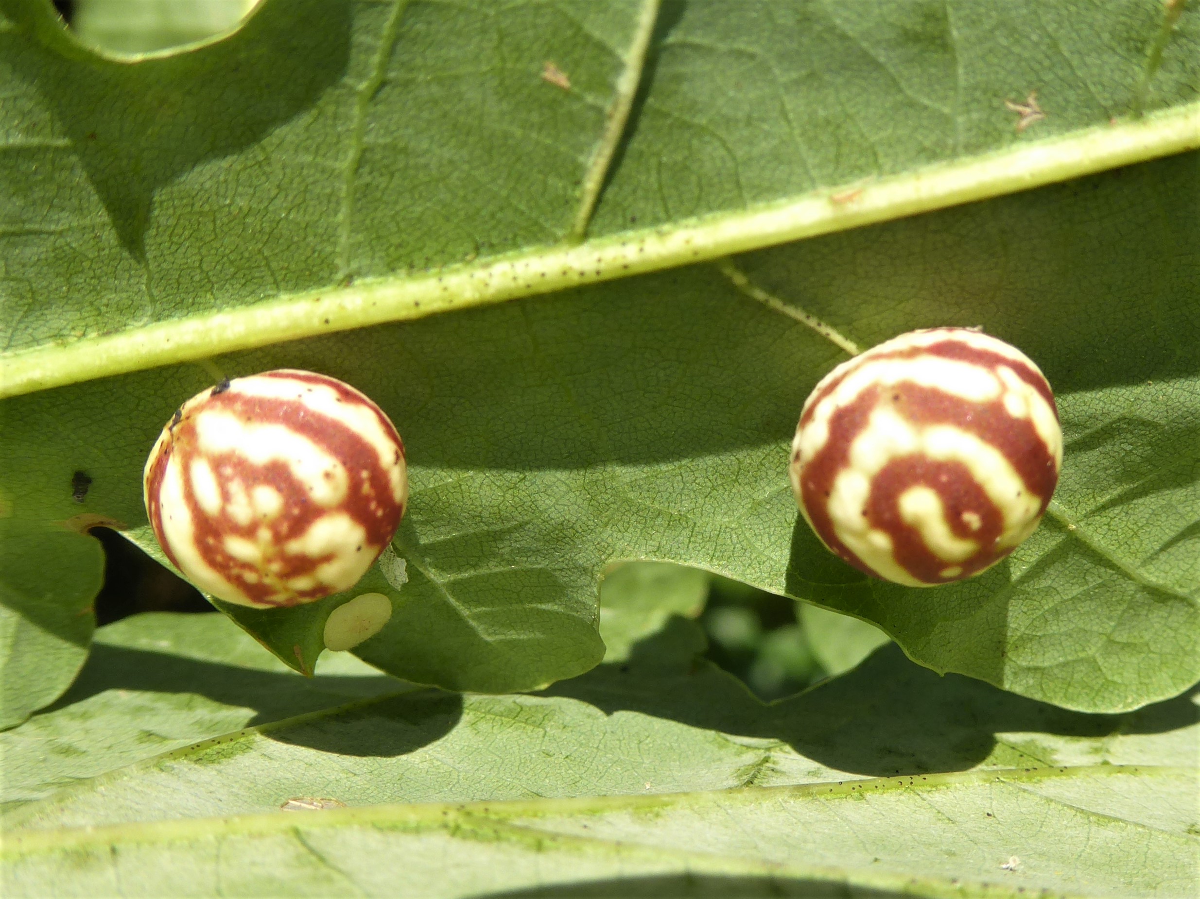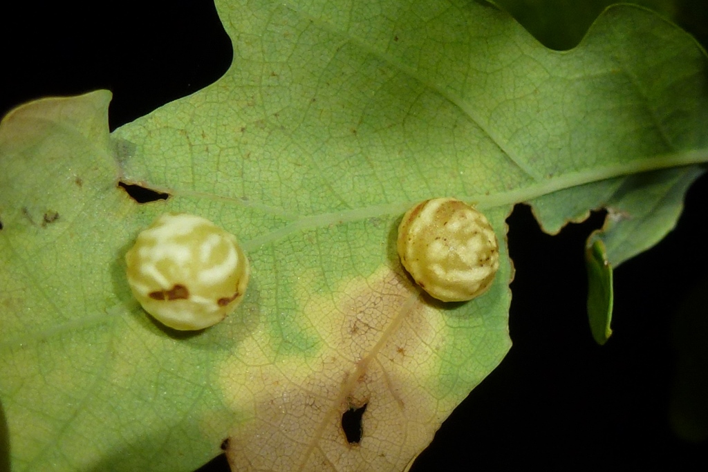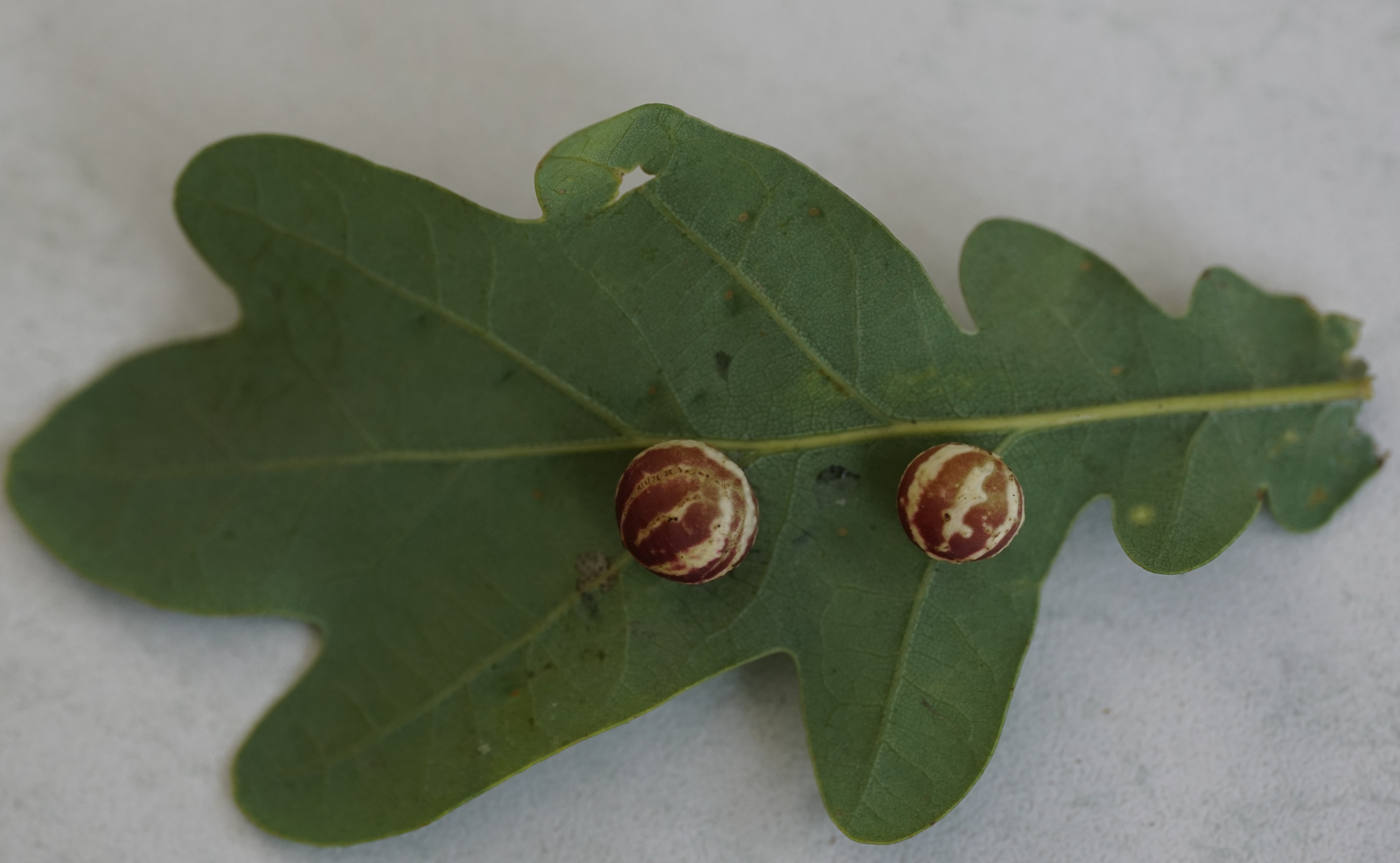Gallen der Gestreiften Eichengallwespe (Cynips longiventris (Hartig, 1840)), bei Taubenheim, August 2016.