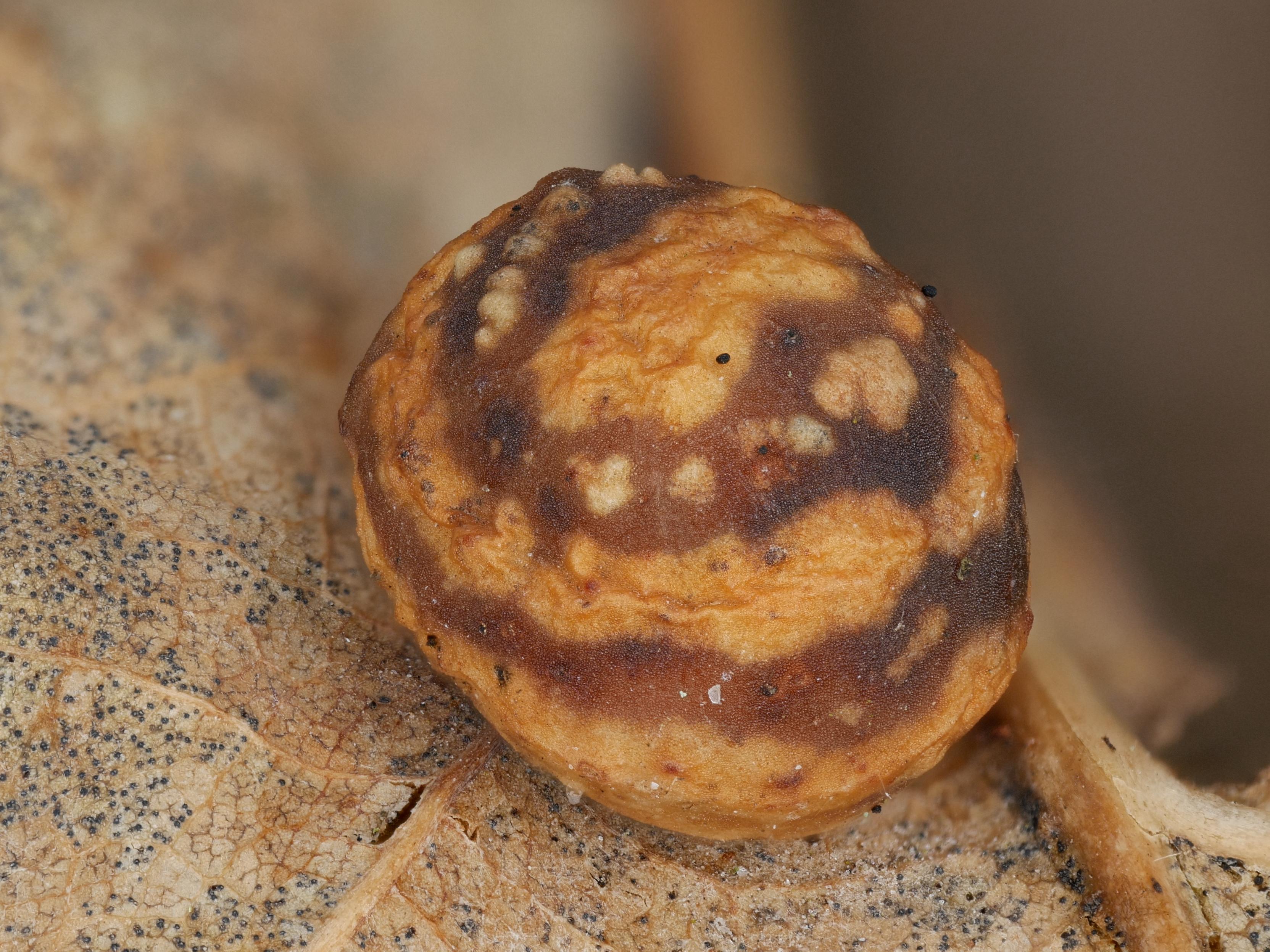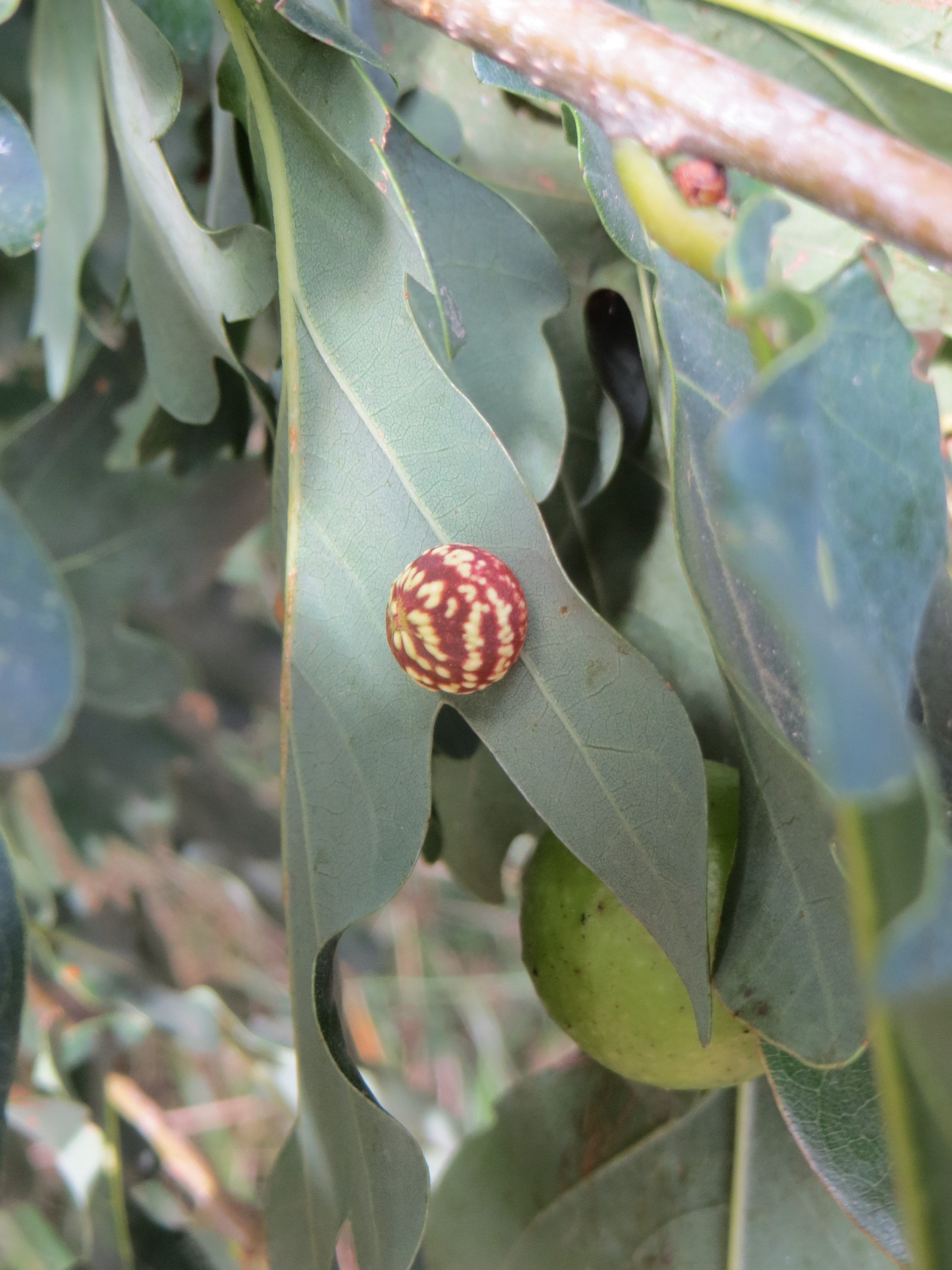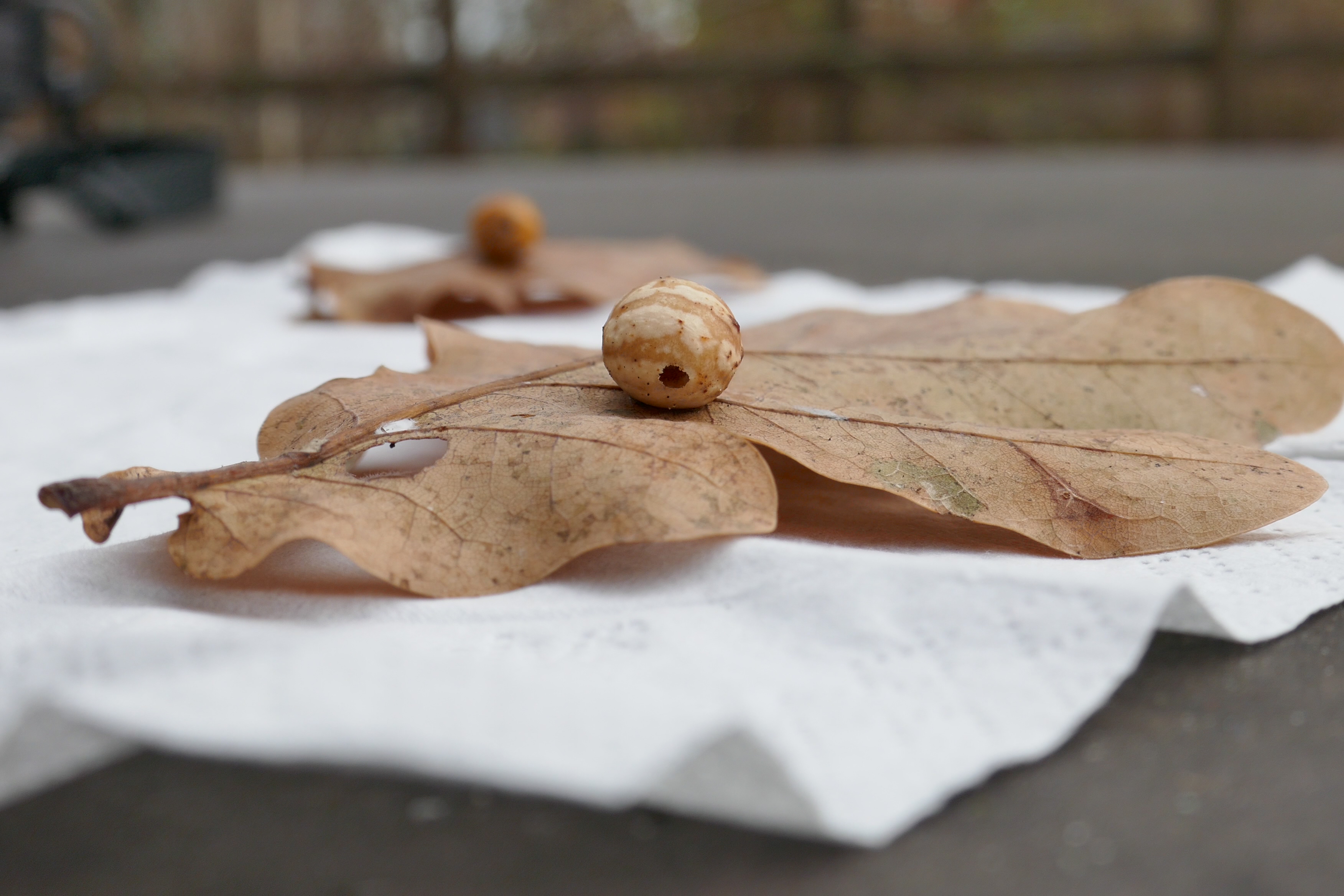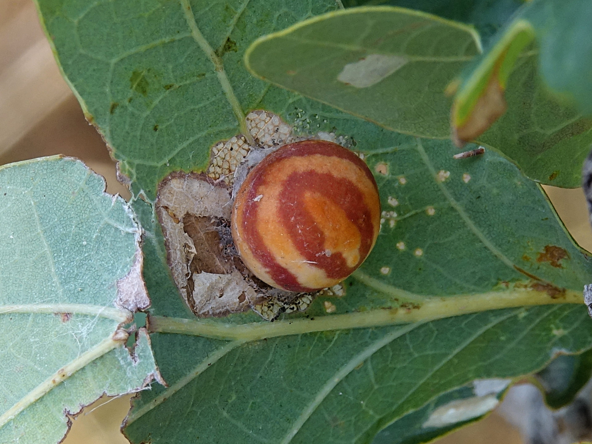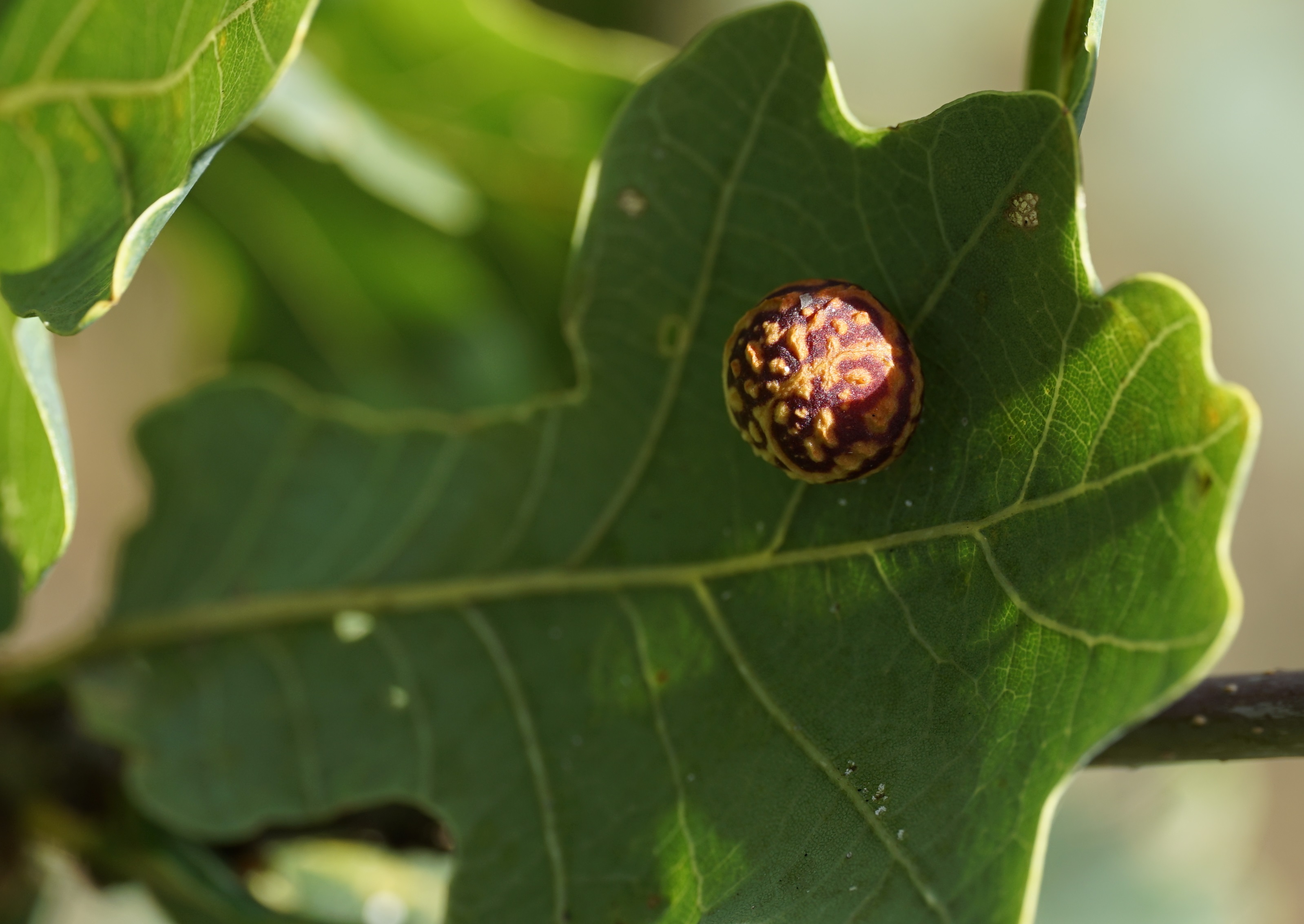 Gallen der Gestreiften Eichengallwespe (Cynips longiventris (Hartig, 1840)), bei Taubenheim, August 2016.