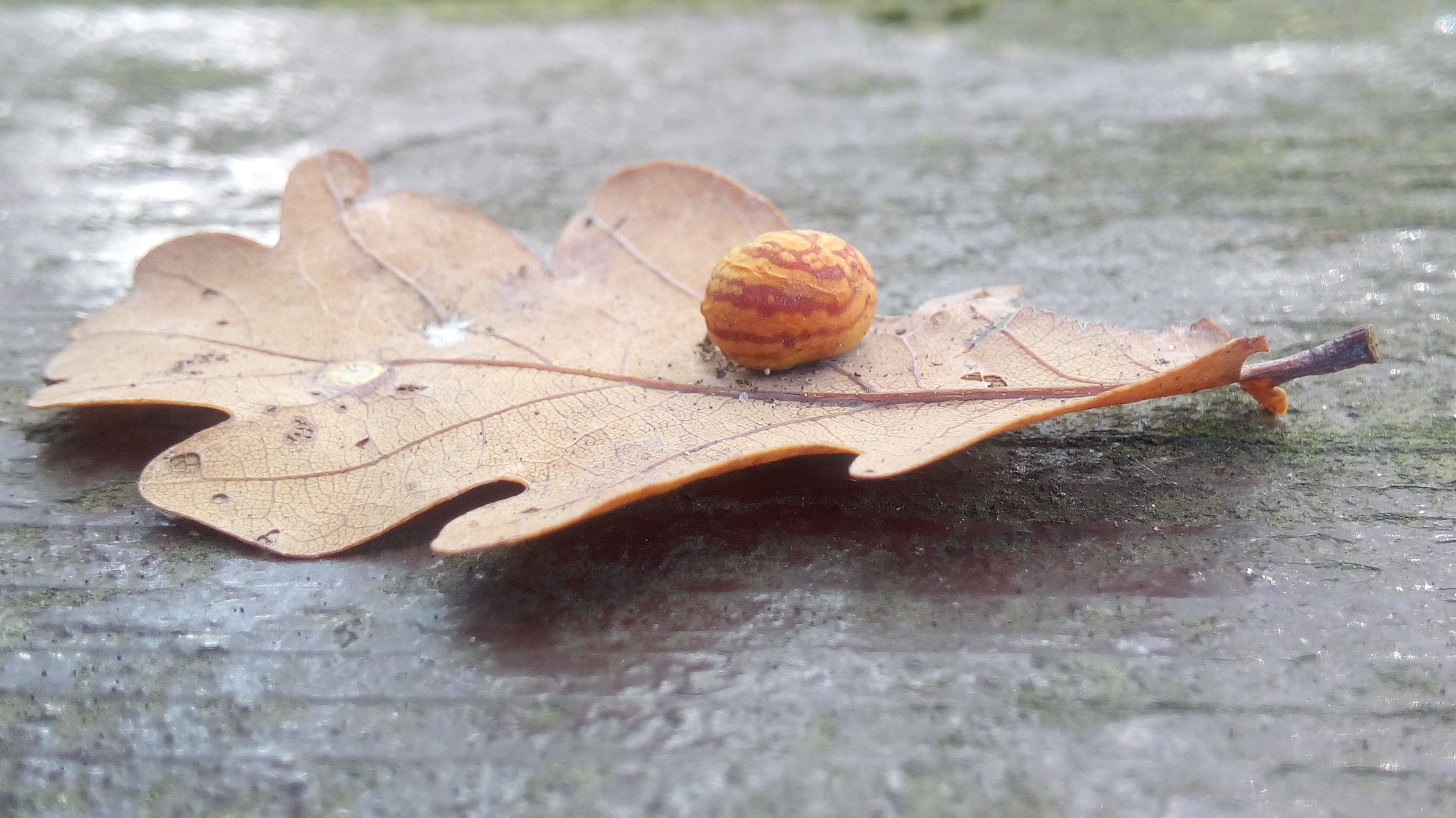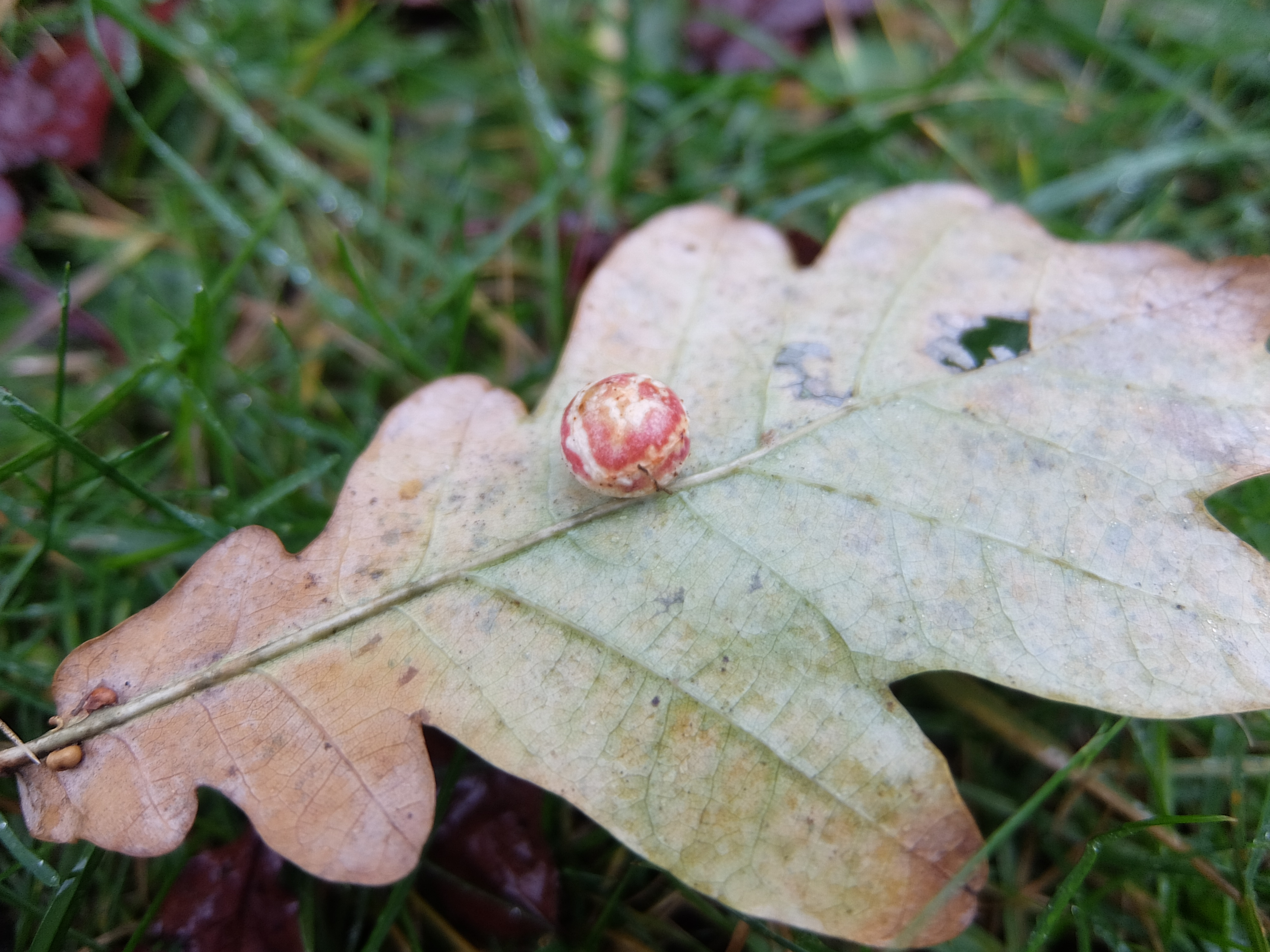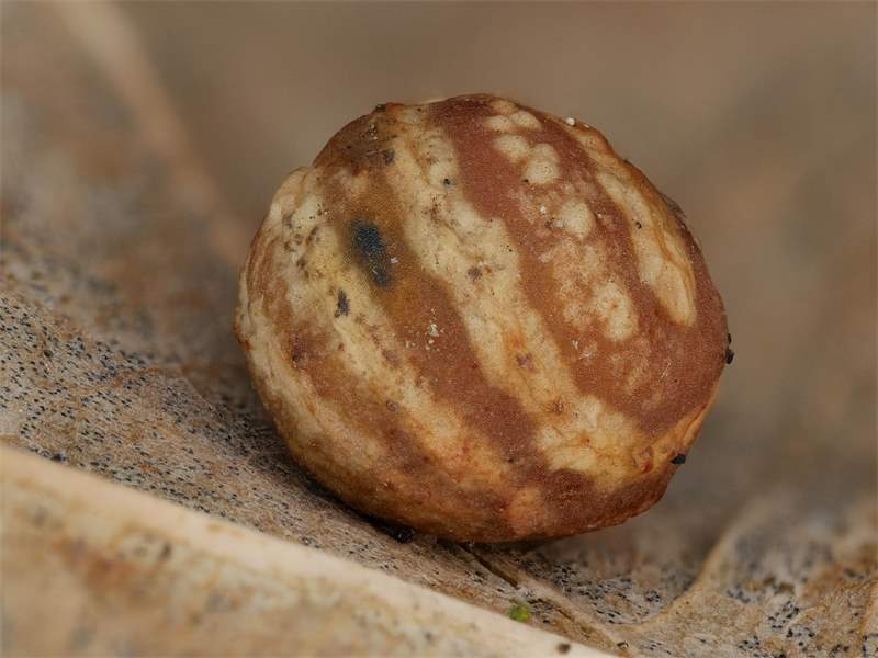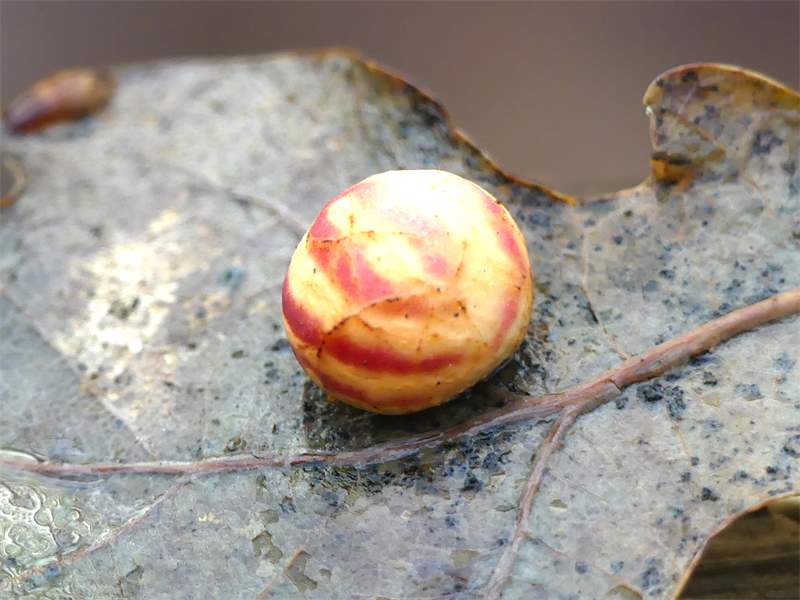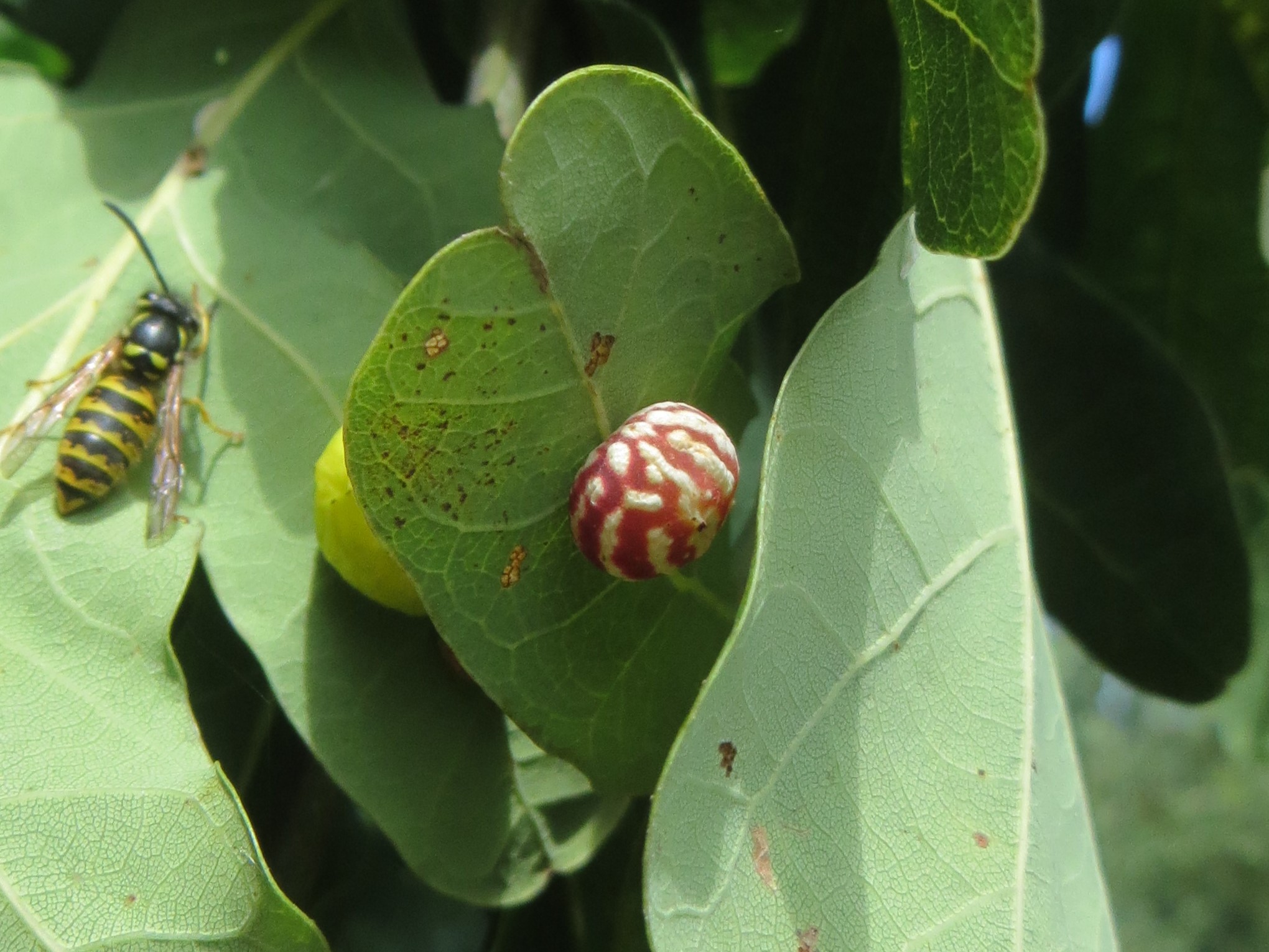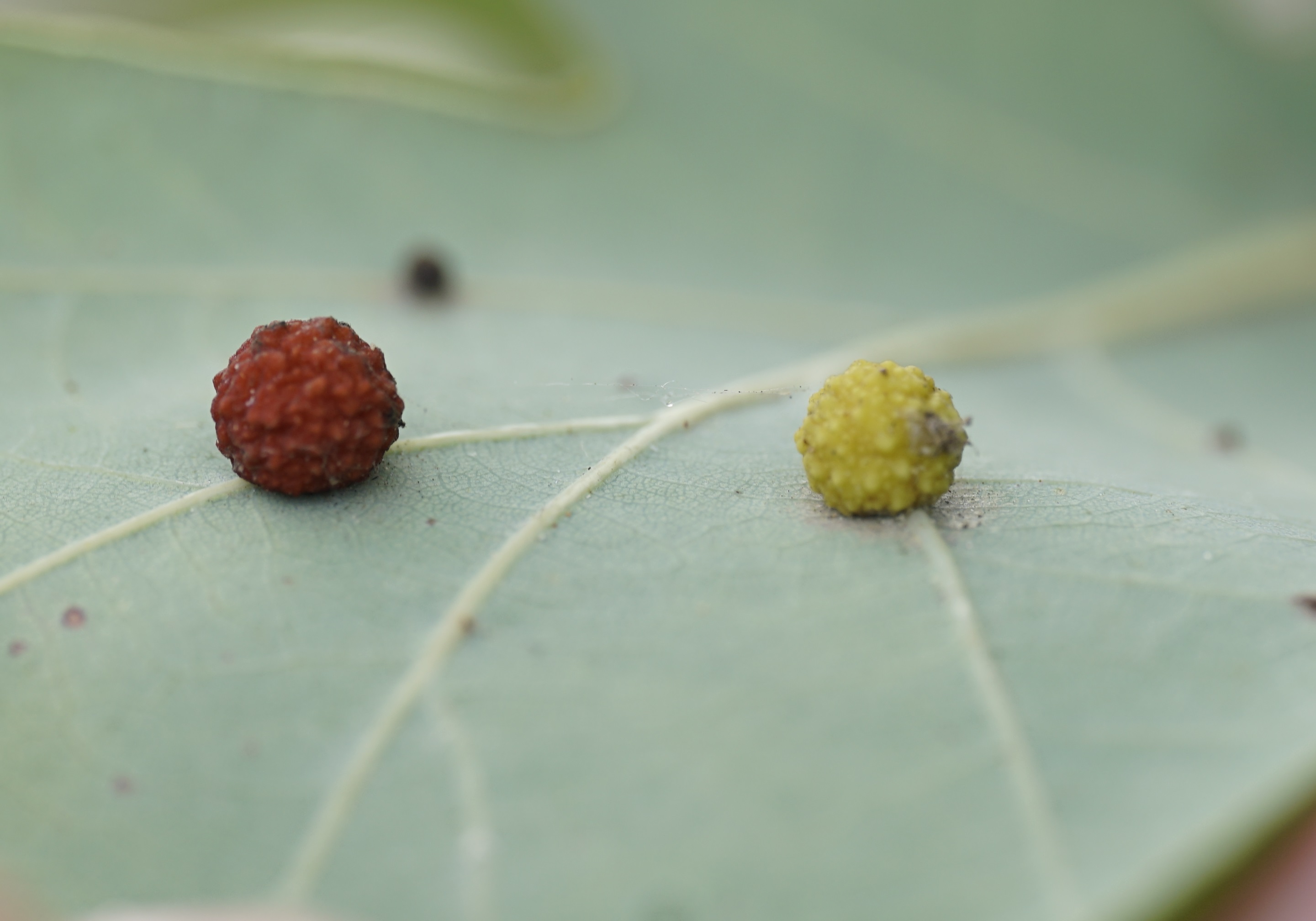 Gallen der Gestreiften Eichengallwespe (Cynips longiventris (Hartig, 1840)), bei Taubenheim, August 2016.