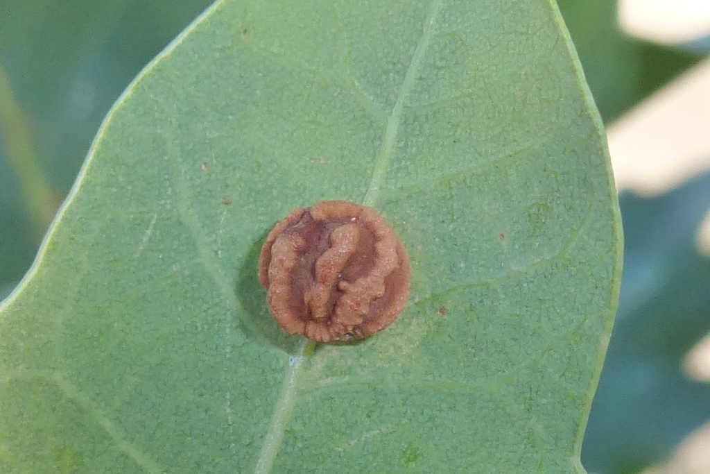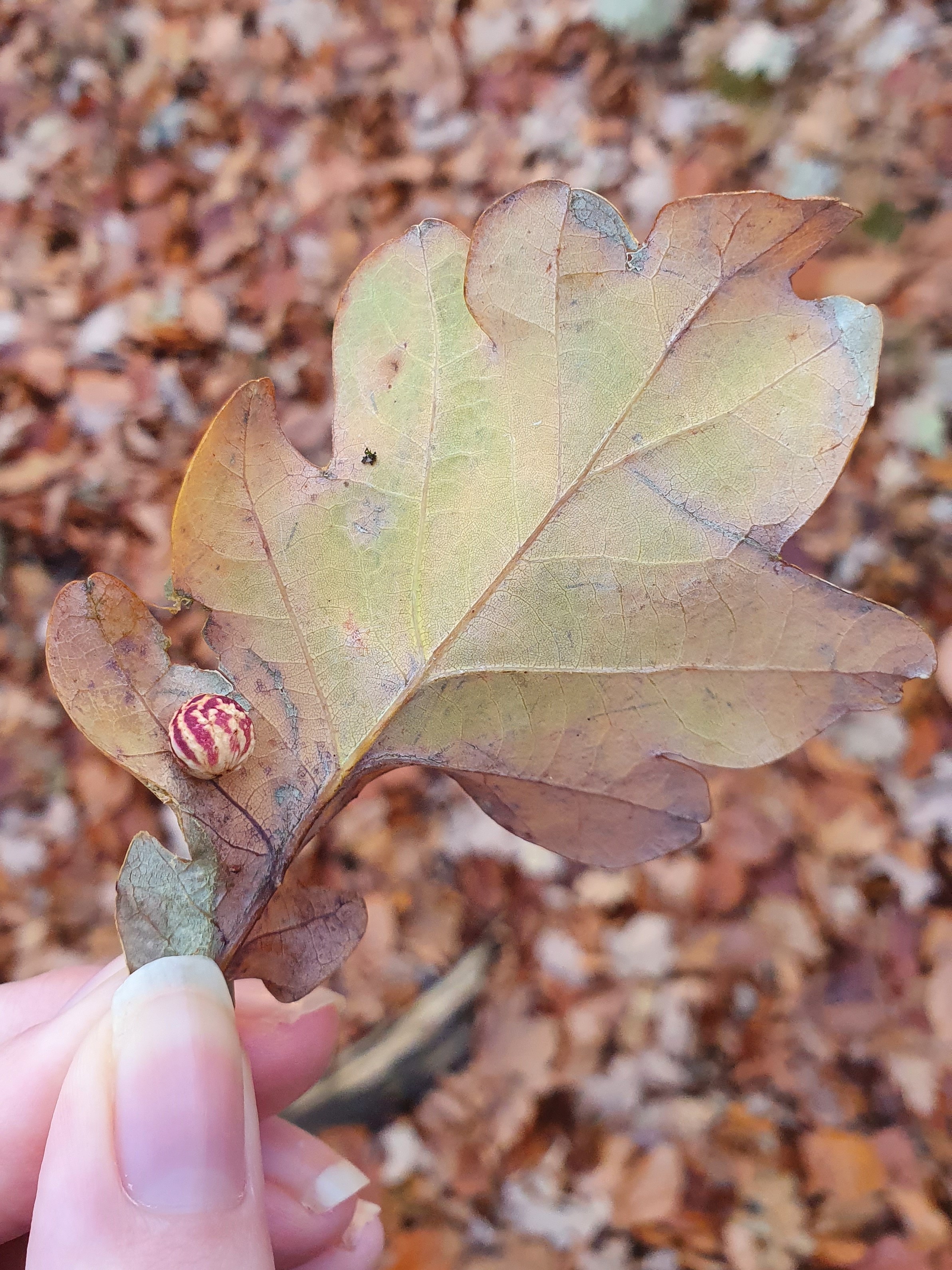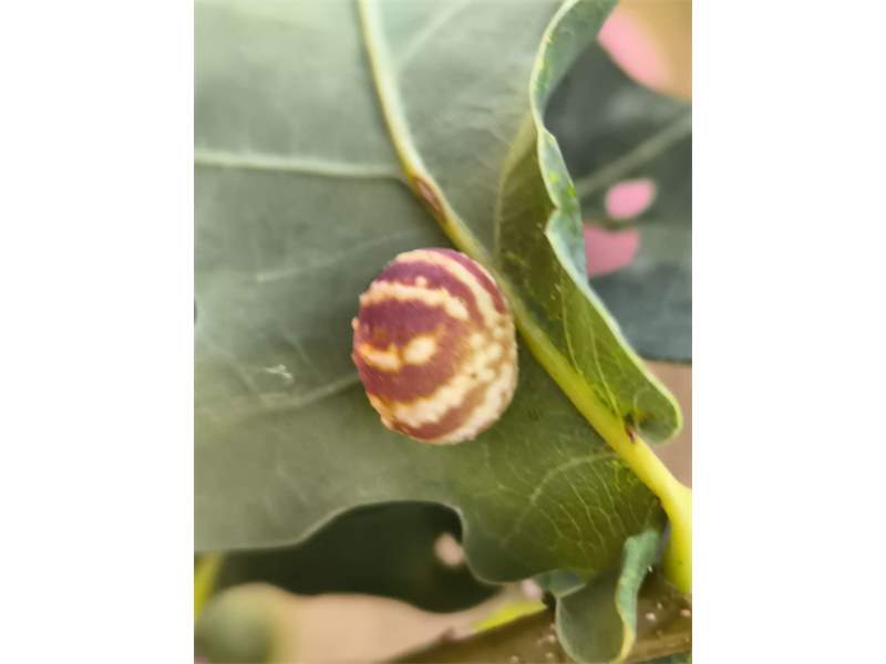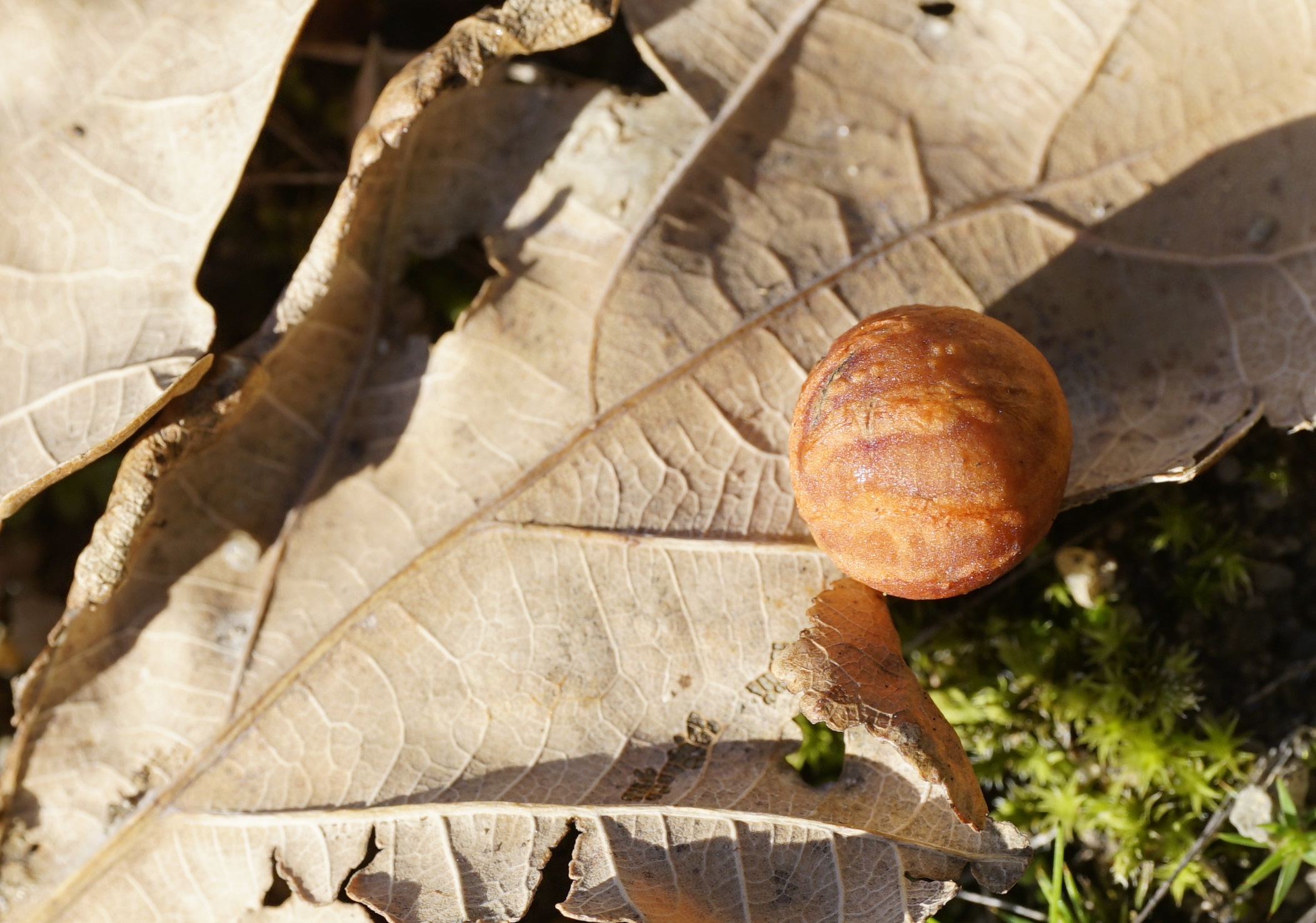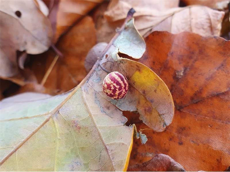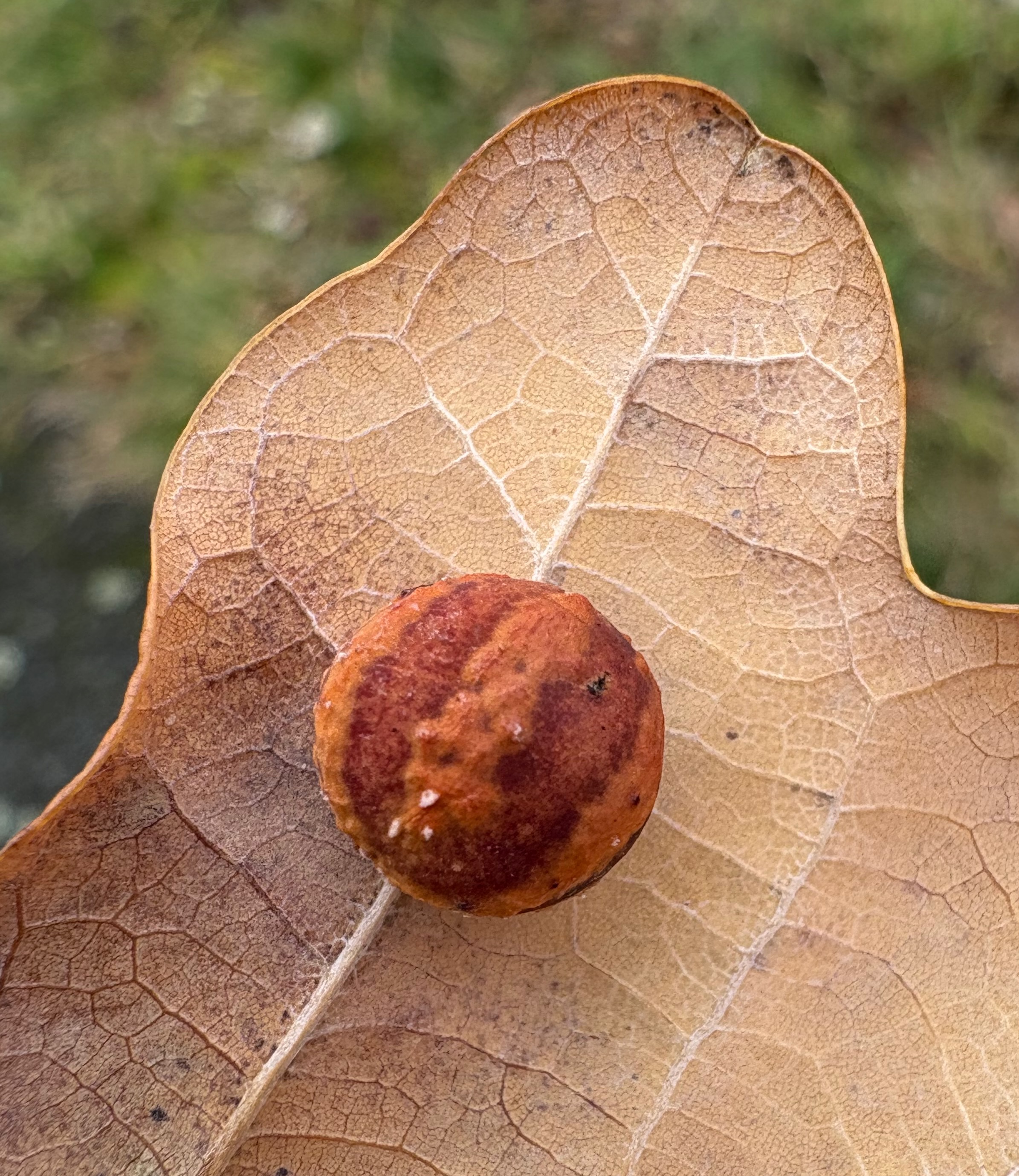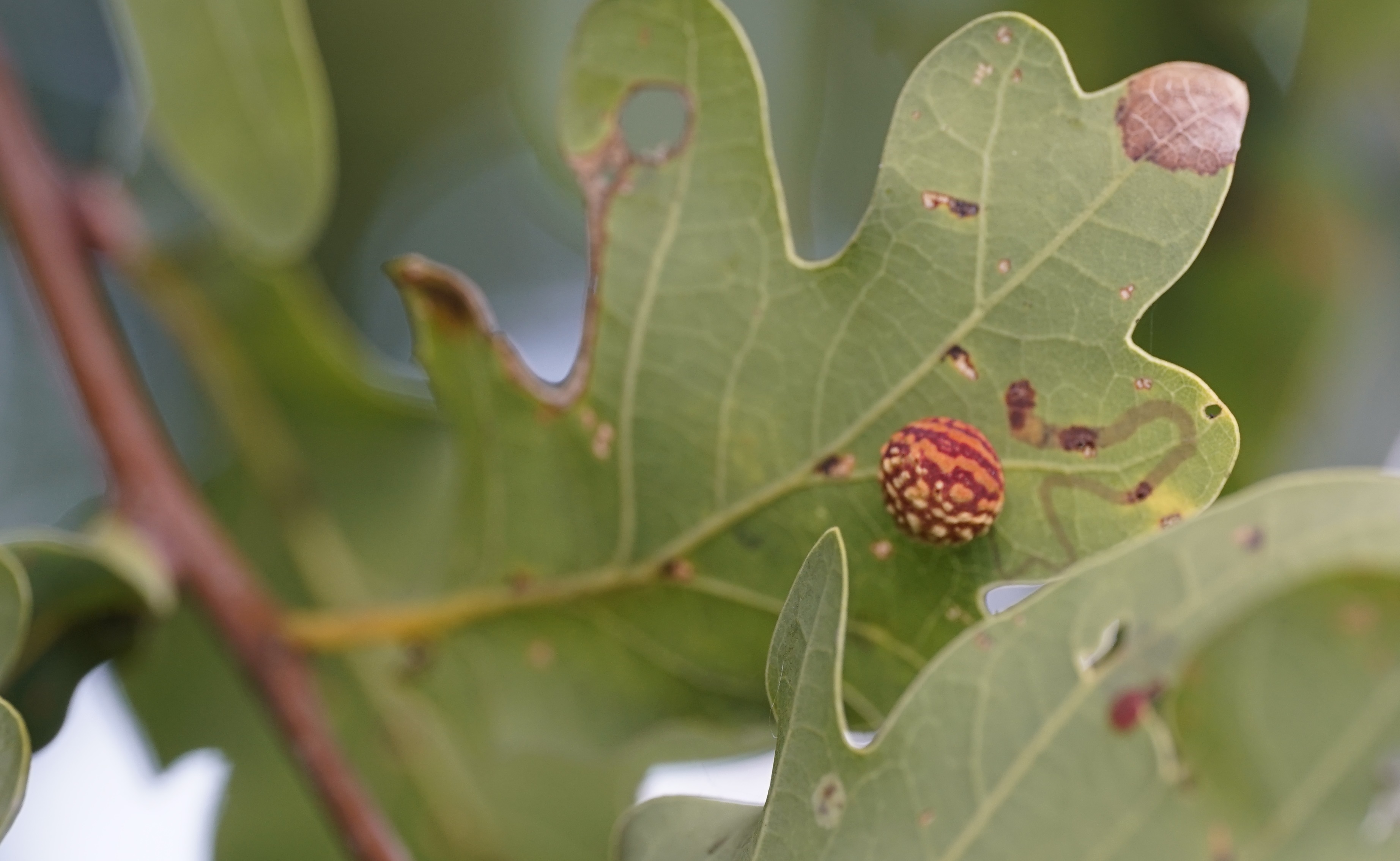 Gallen der Gestreiften Eichengallwespe (Cynips longiventris (Hartig, 1840)), bei Taubenheim, August 2016.