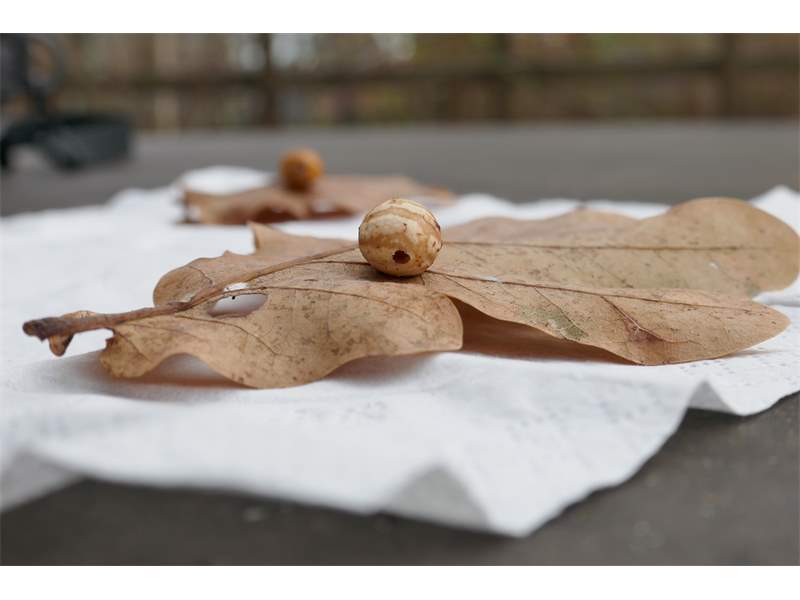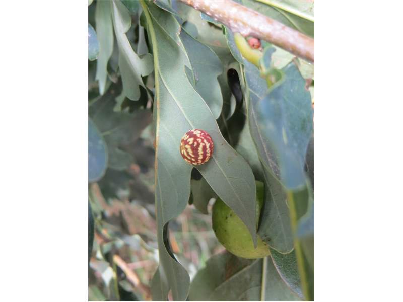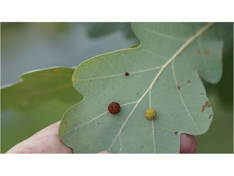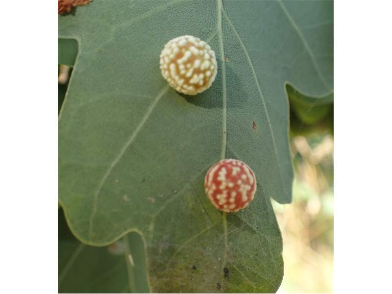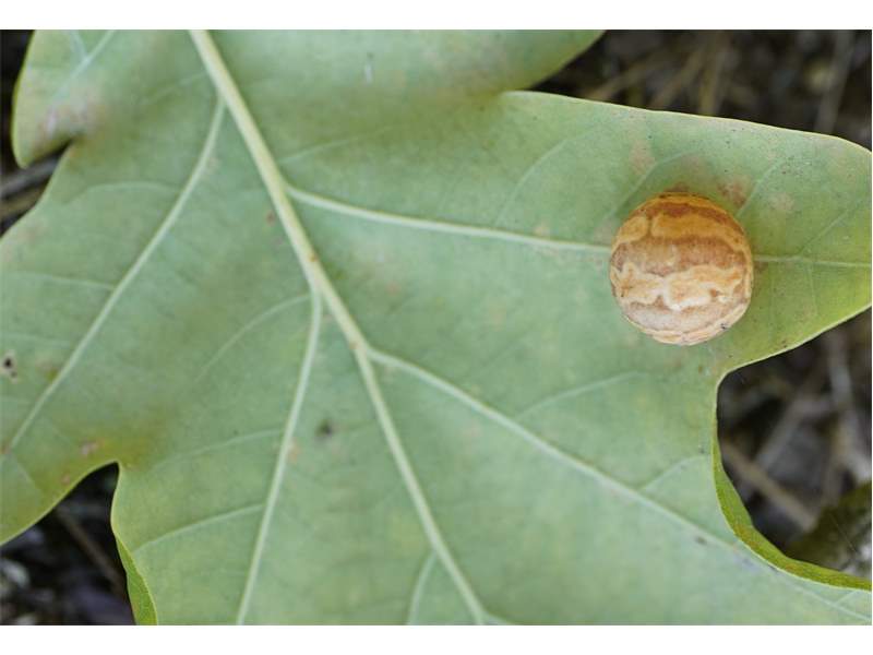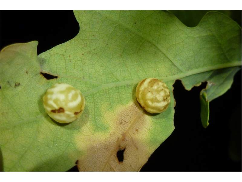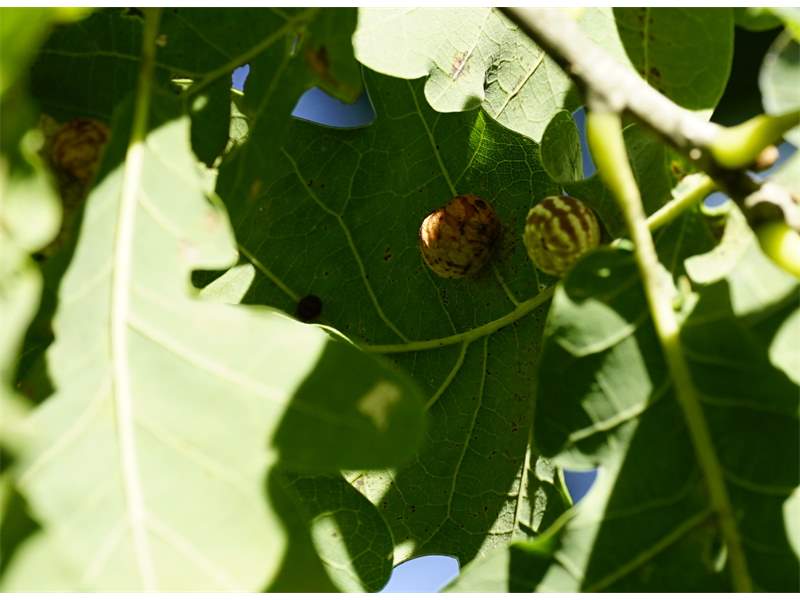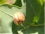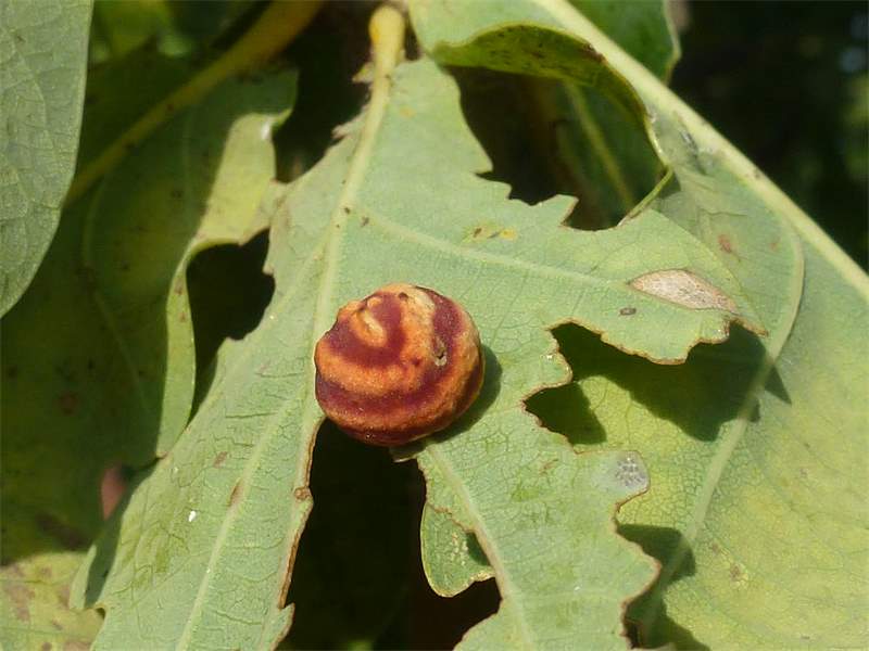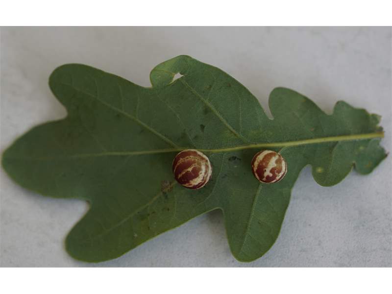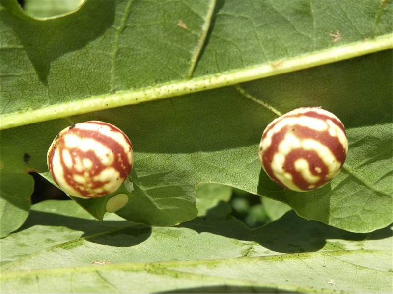 Gallen der Gestreiften Eichengallwespe (Cynips longiventris (Hartig, 1840)), bei Taubenheim, August 2016. (© Udo Lemke )( Bild vergrößern)