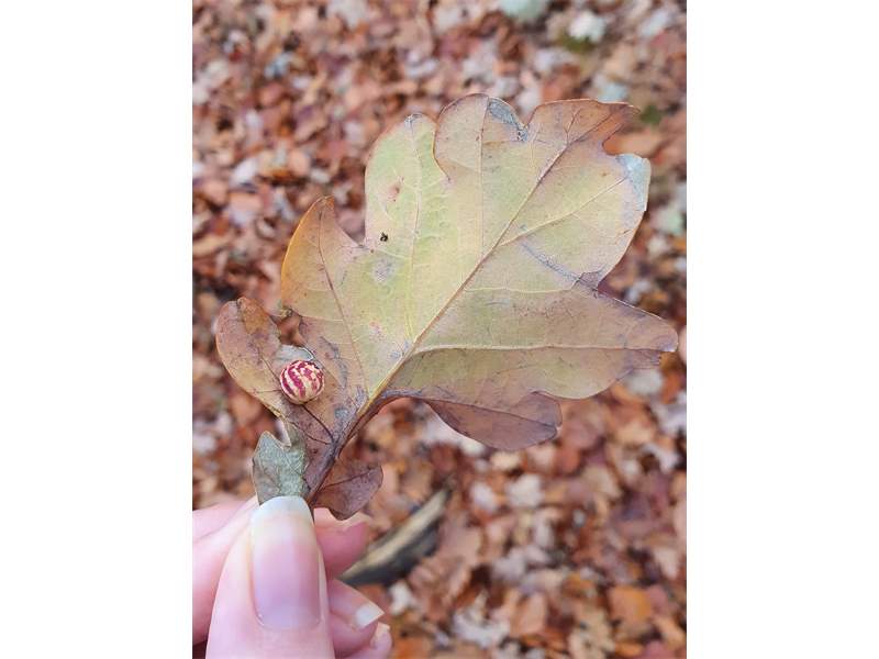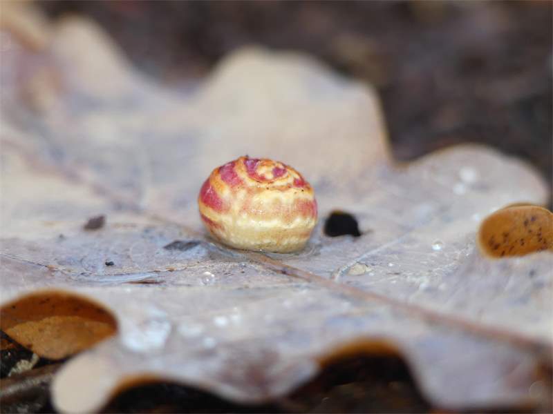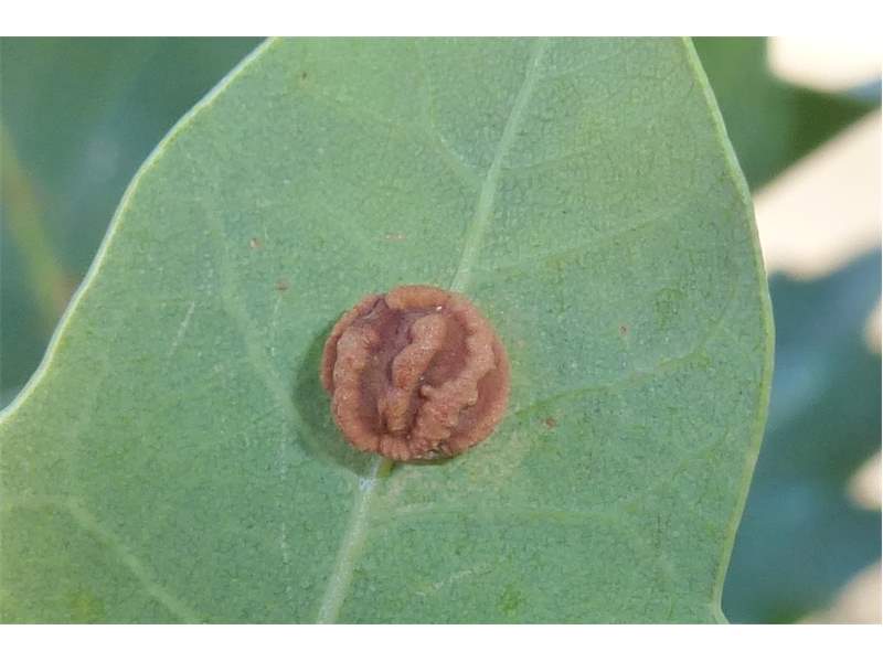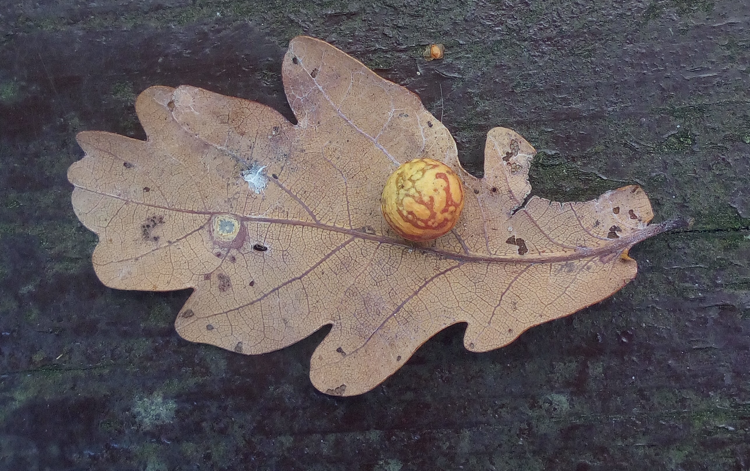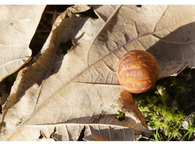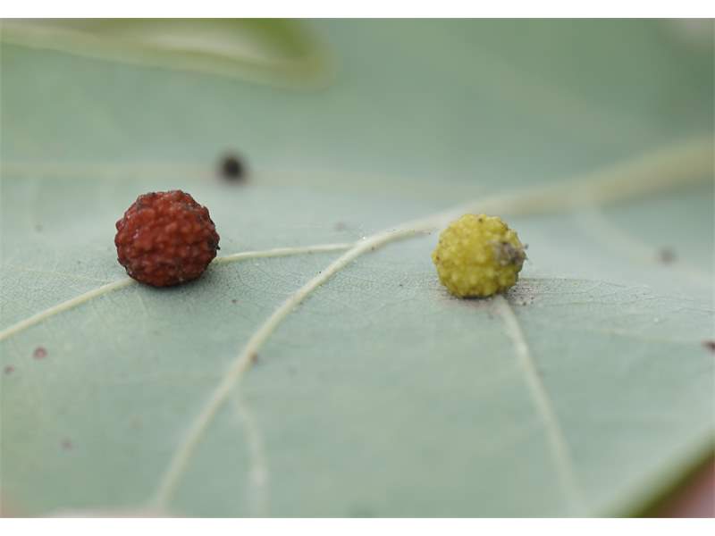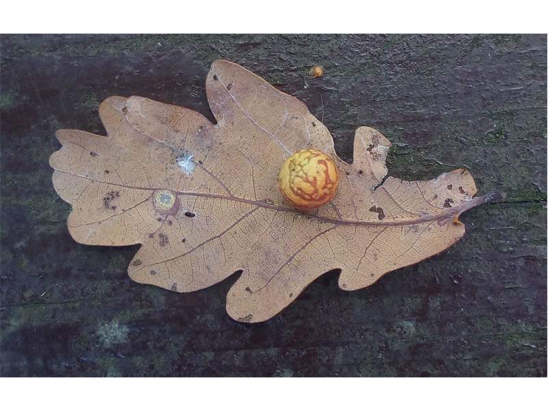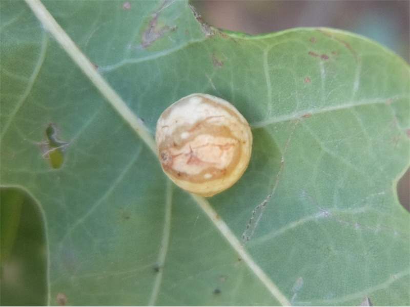 Gallen der Gestreiften Eichengallwespe (Cynips longiventris (Hartig, 1840)), bei Taubenheim, August 2016. (© Udo Lemke )( Bild vergrößern)