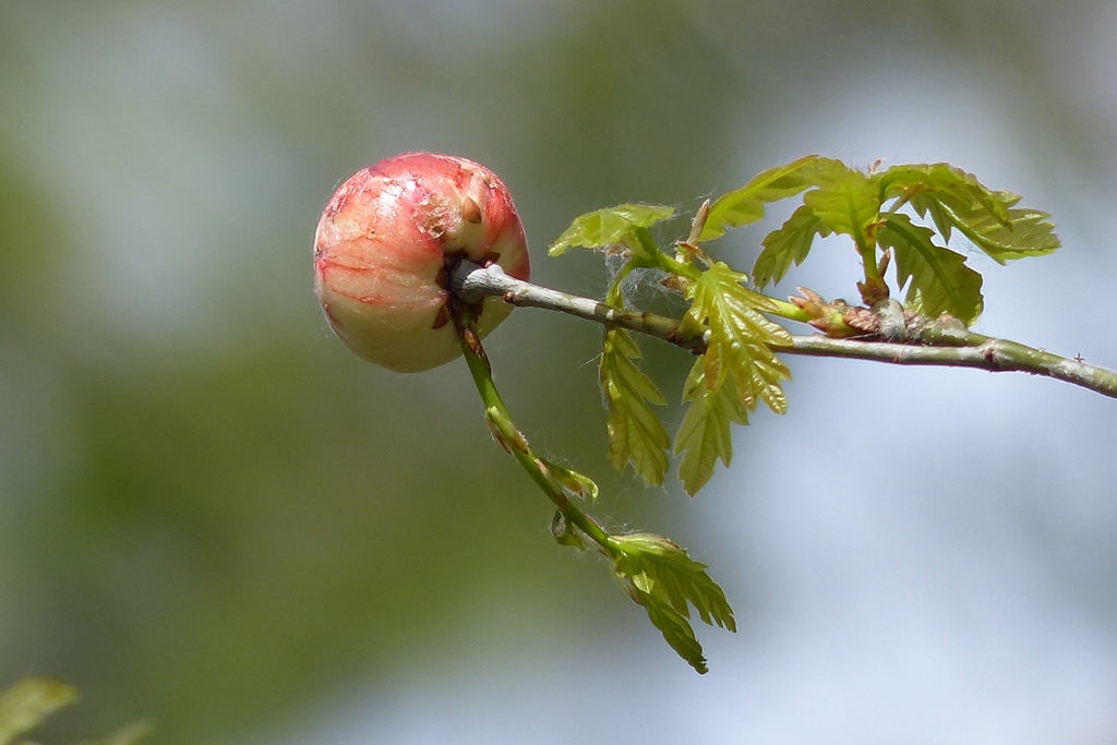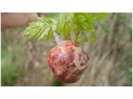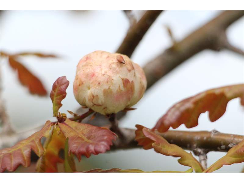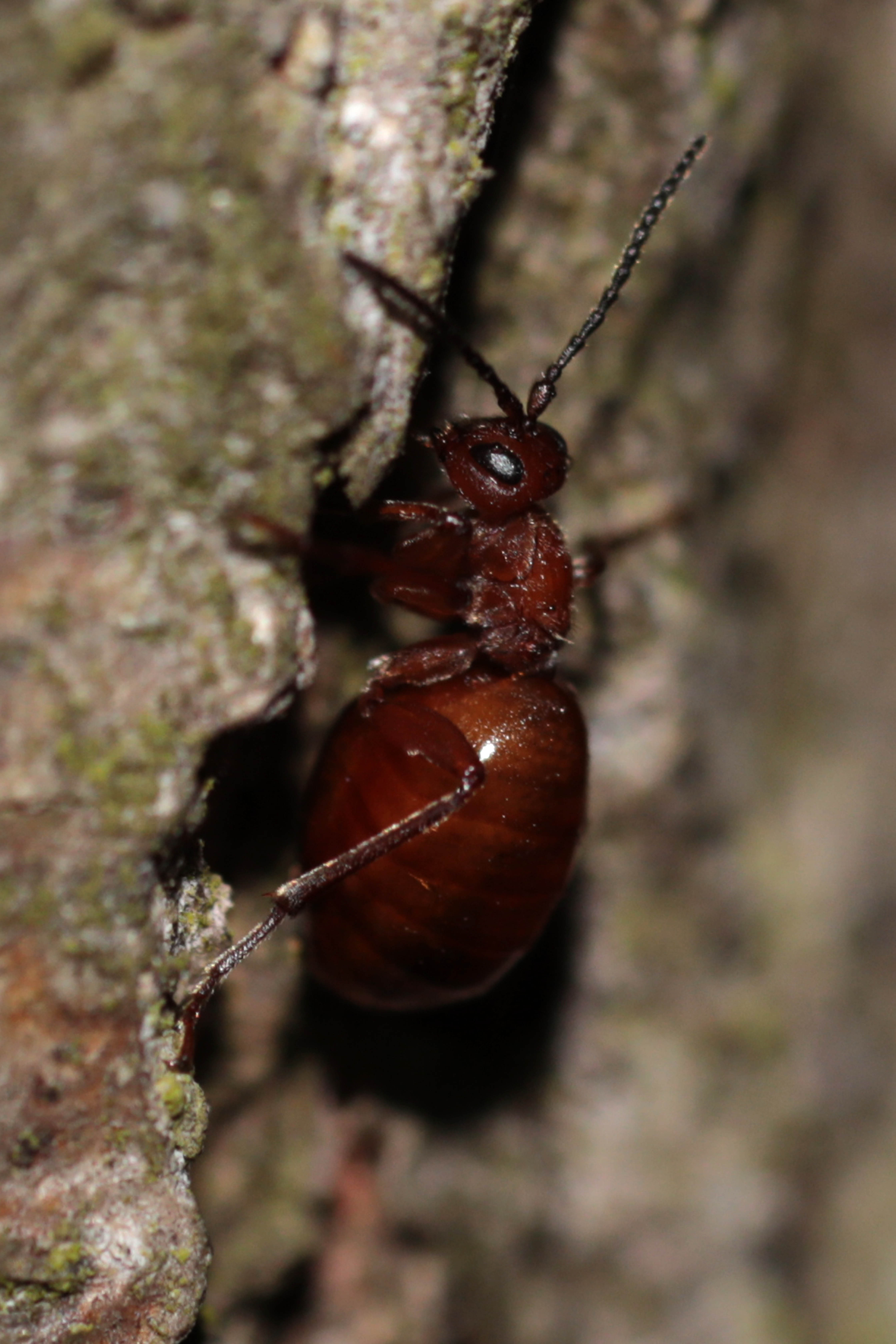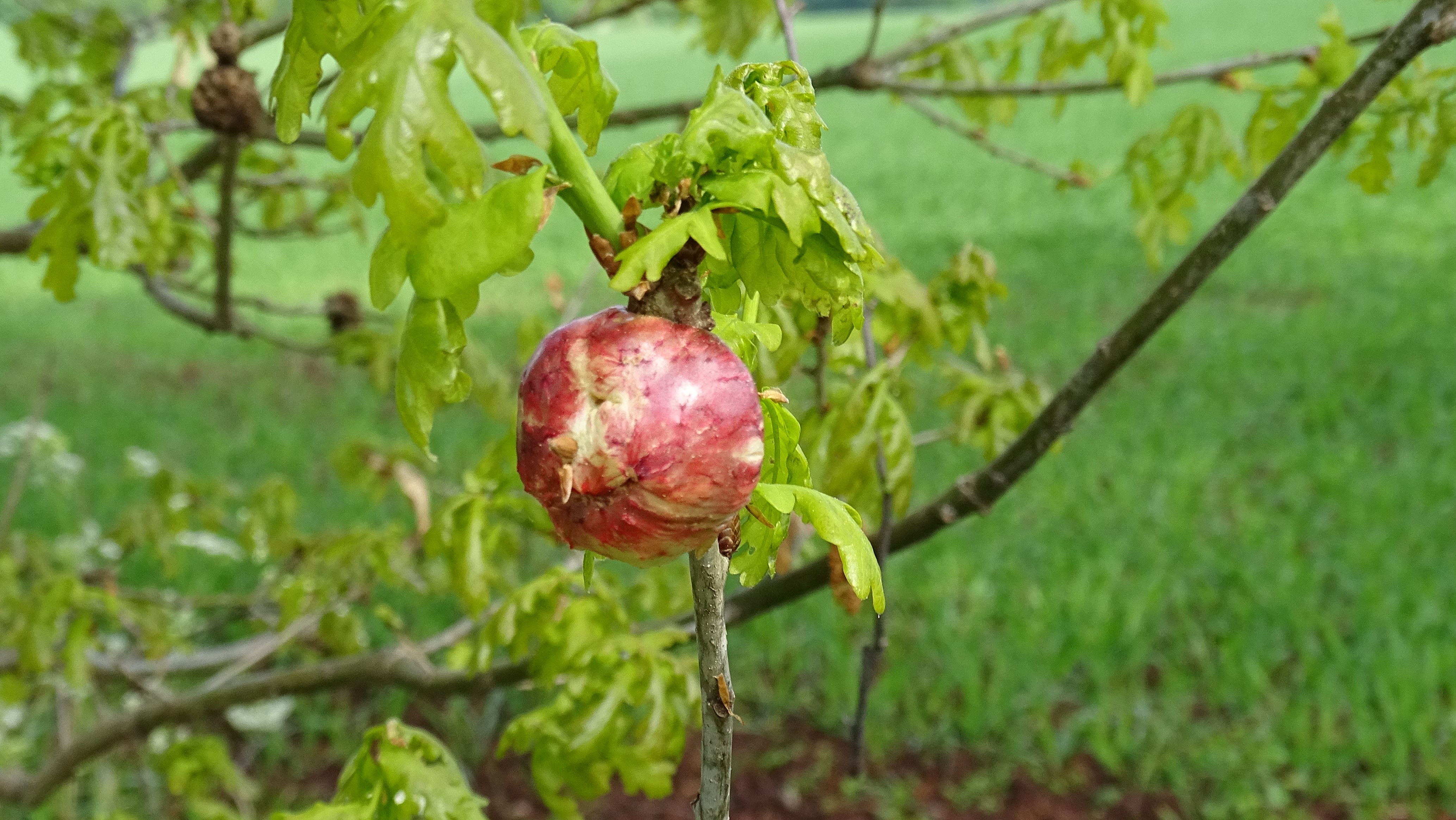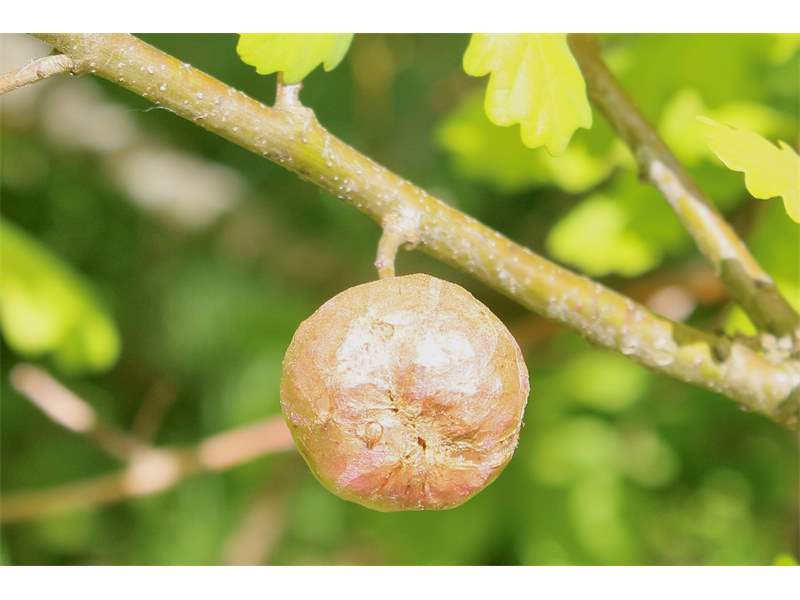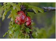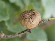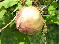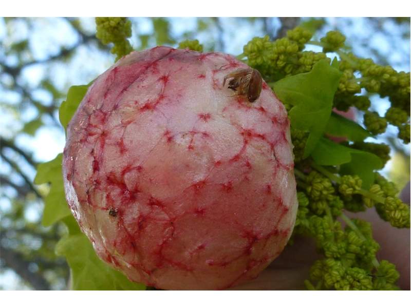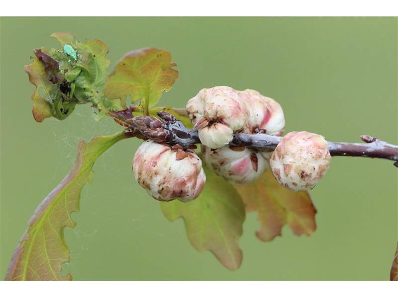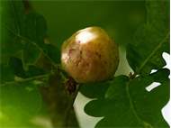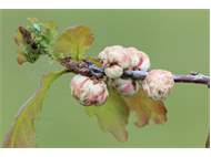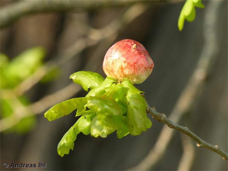Biorhiza pallida, flügelloses Weibchen der Wintergenaration am Stamm einer Stieleiche ( Quercus robur), bewegte sich in Richtung Baumkrone um in einer Knospe ihre Eier abzulegen. Gemarkung Hohenprießnitz, Schlosspark, November 2014 (© Michael Happ)( Bild vergrößern)