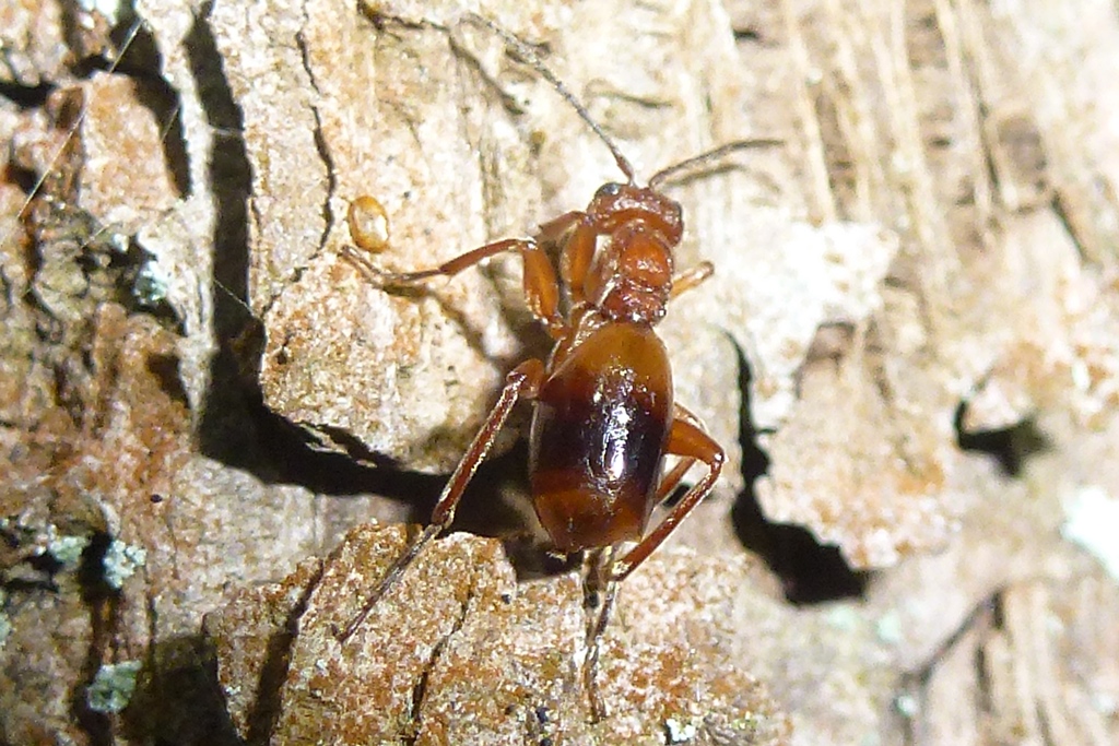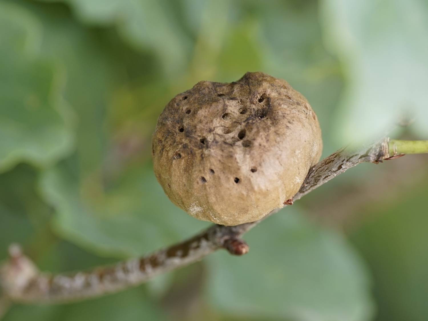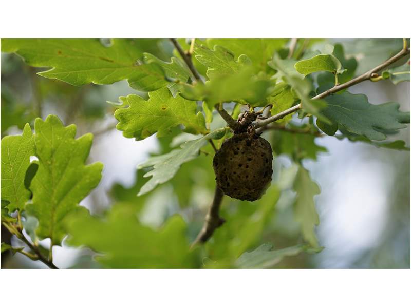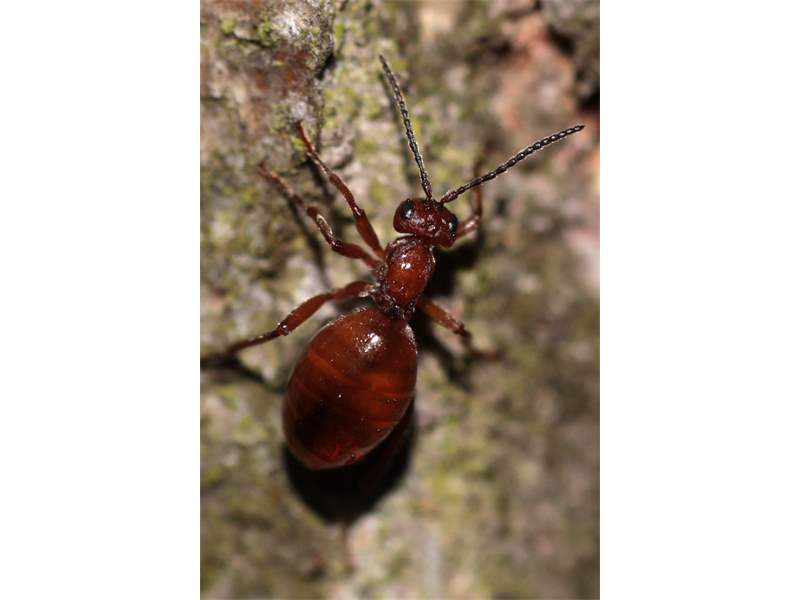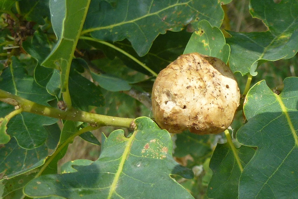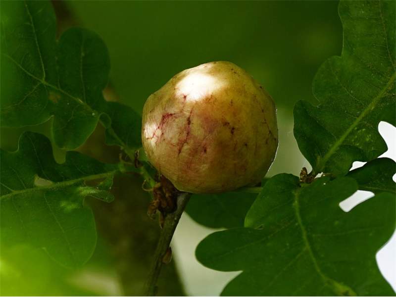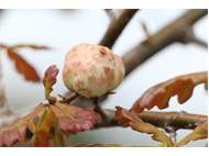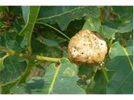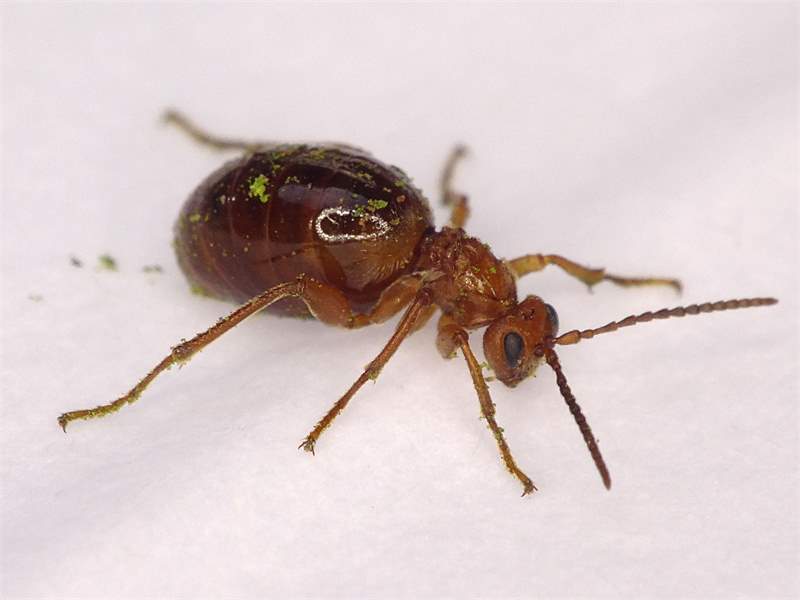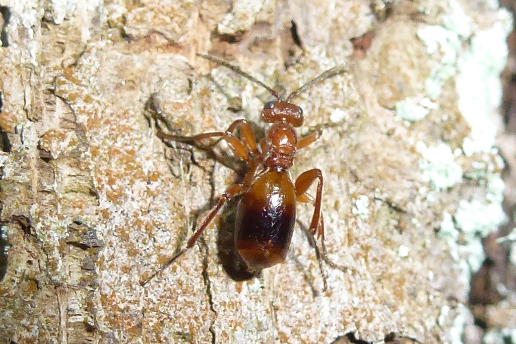 Biorhiza pallida, flügelloses Weibchen der Wintergenaration am Stamm einer Stieleiche ( Quercus robur), bewegte sich in Richtung Baumkrone um in einer Knospe ihre Eier abzulegen. Gemarkung Hohenprießnitz, Schlosspark, November 2014 (© Michael Happ)( Bild vergrößern)