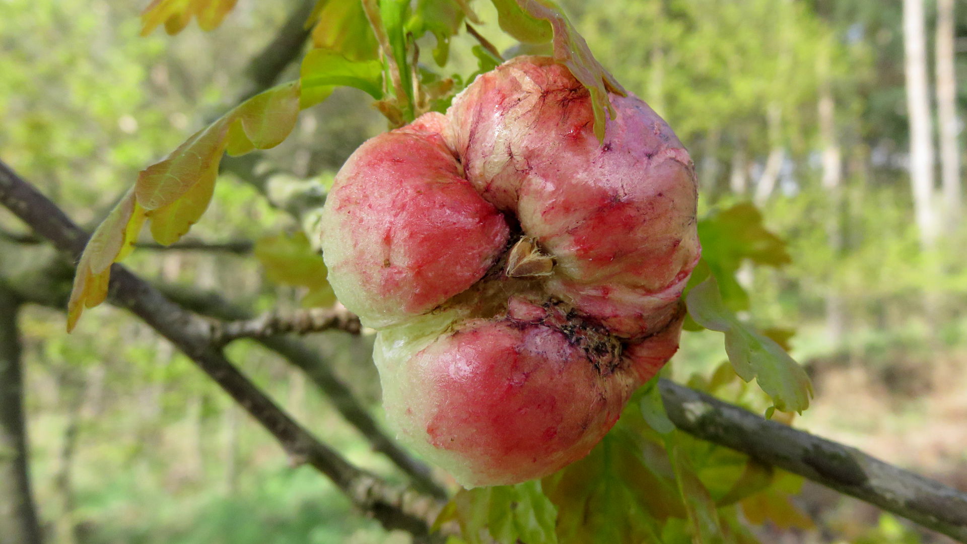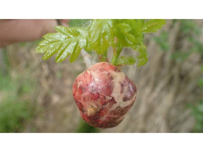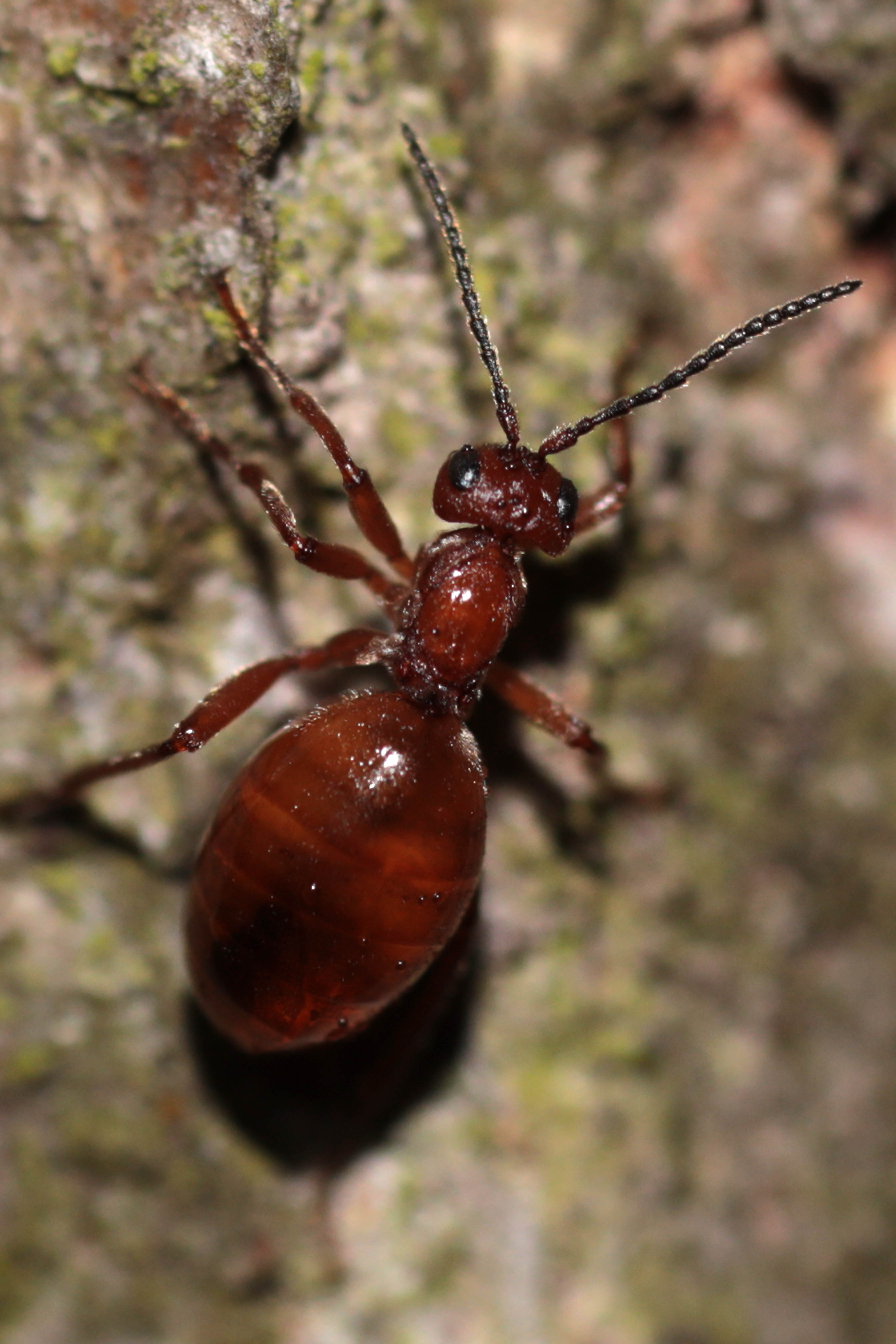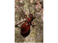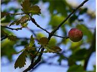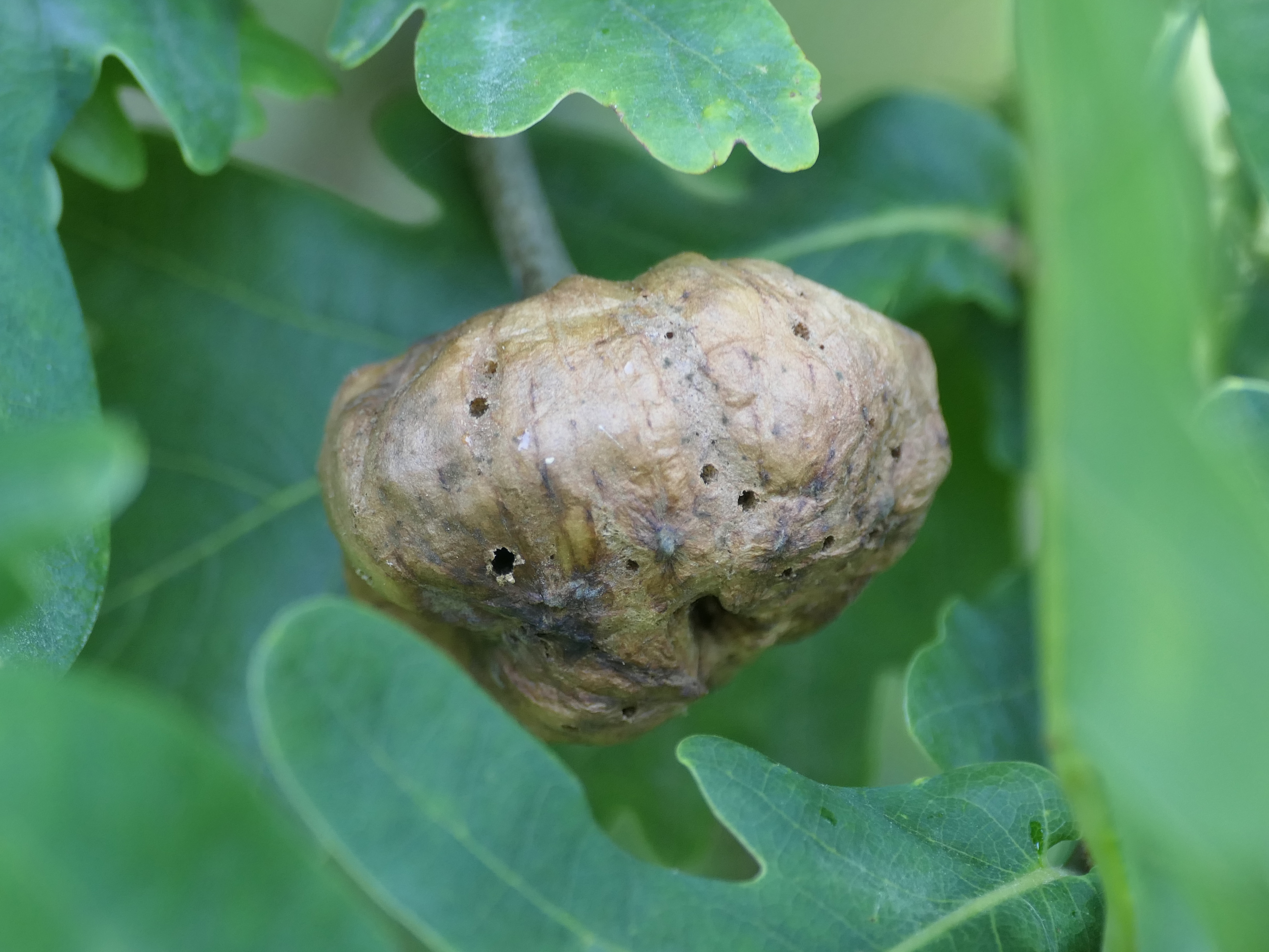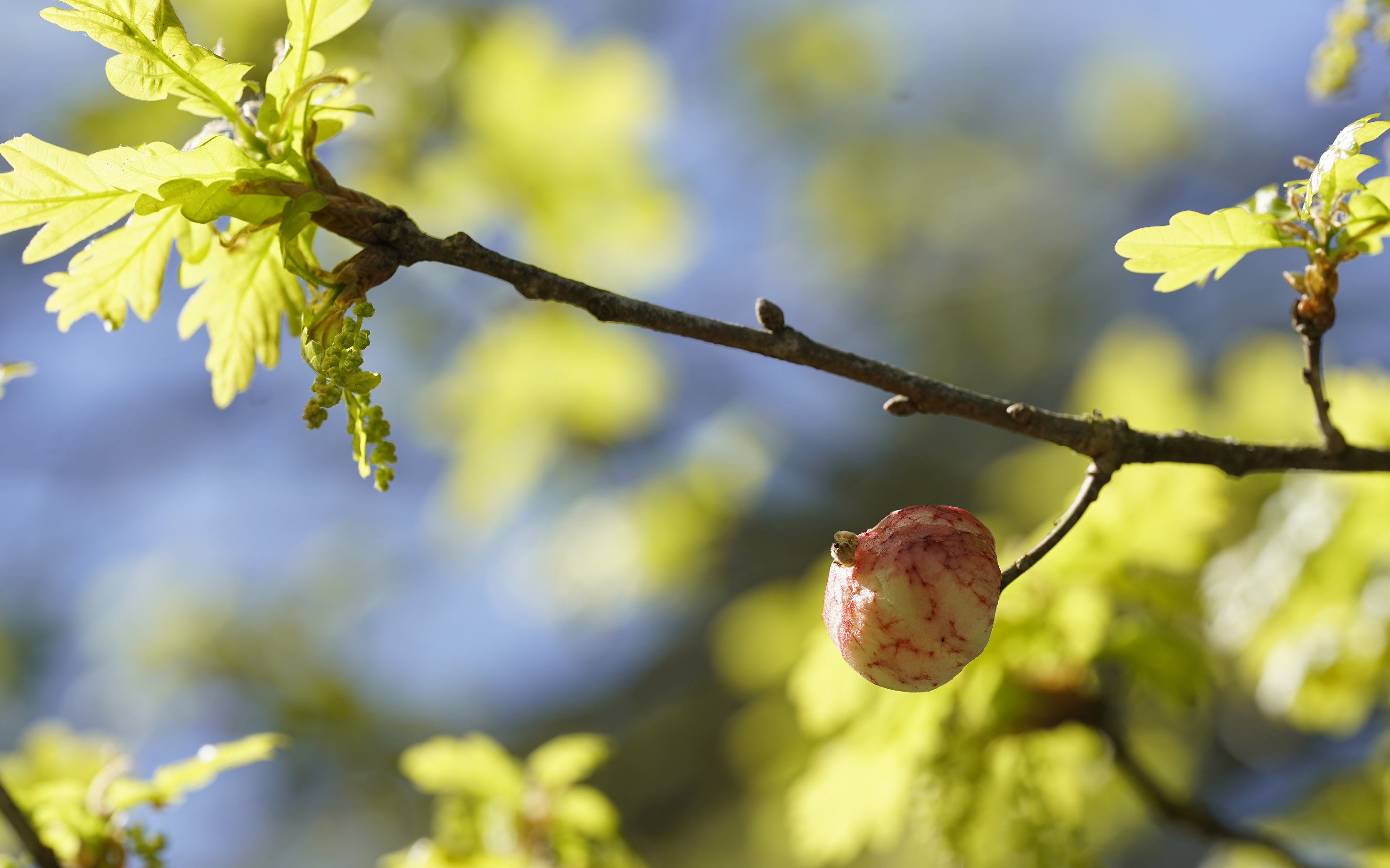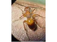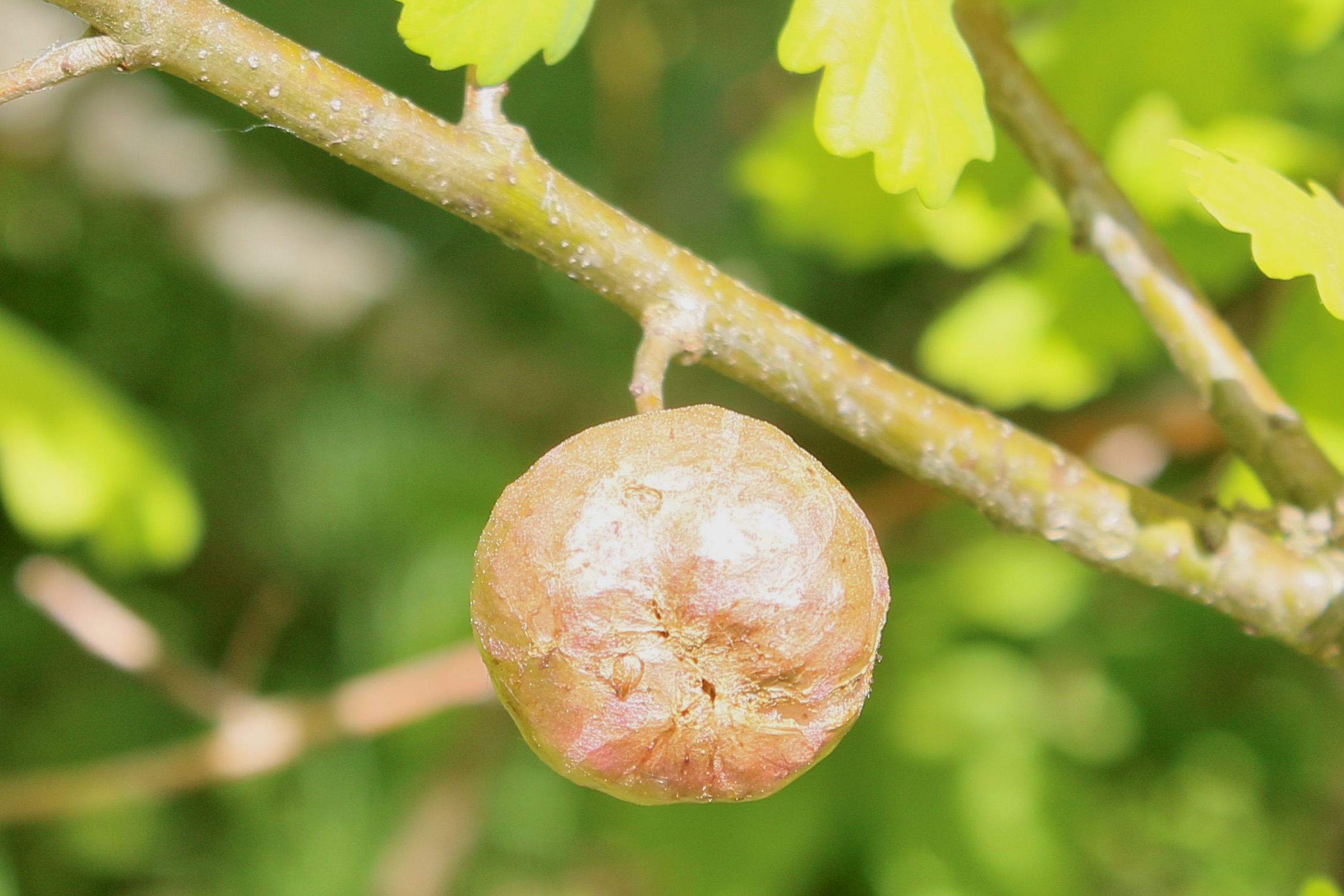 Biorhiza pallida, flügelloses Weibchen der Wintergenaration am Stamm einer Stieleiche ( Quercus robur), bewegte sich in Richtung Baumkrone um in einer Knospe ihre Eier abzulegen. Gemarkung Hohenprießnitz, Schlosspark, November 2014 (© Michael Happ)( Bild vergrößern)