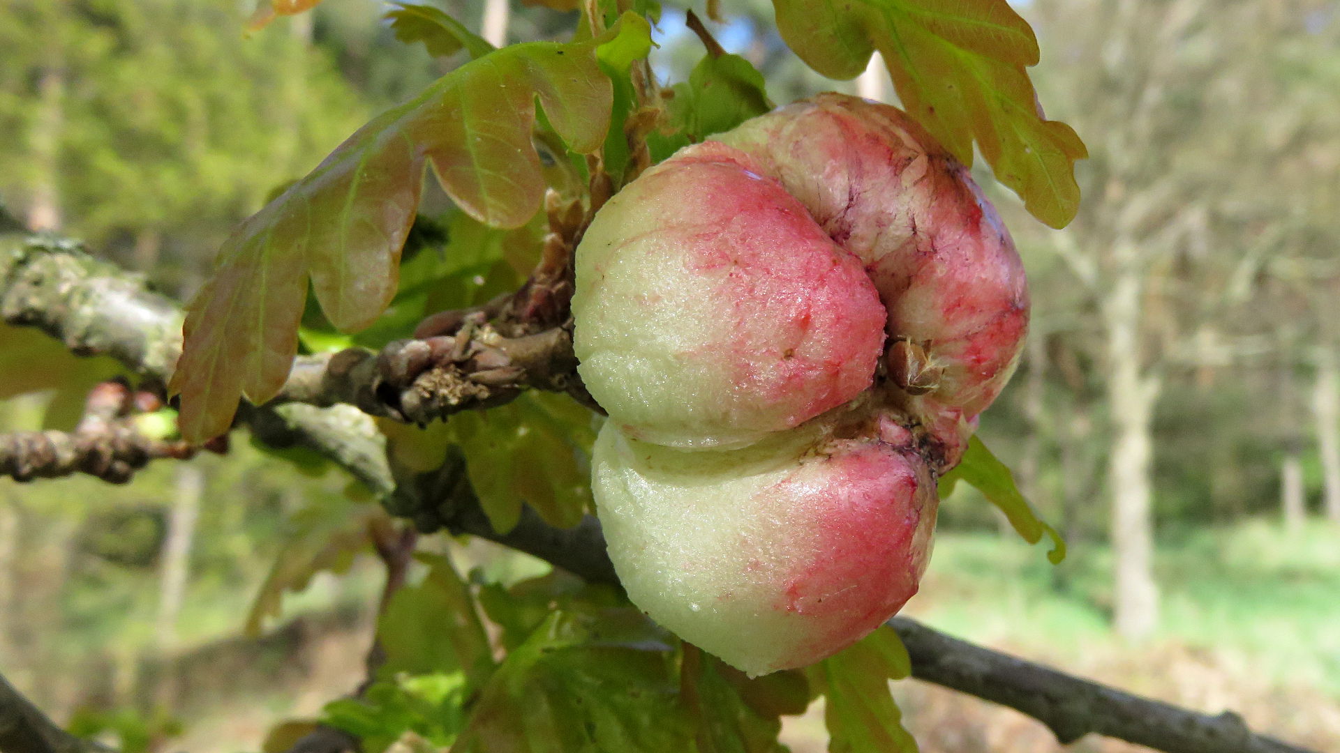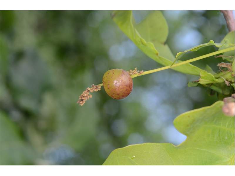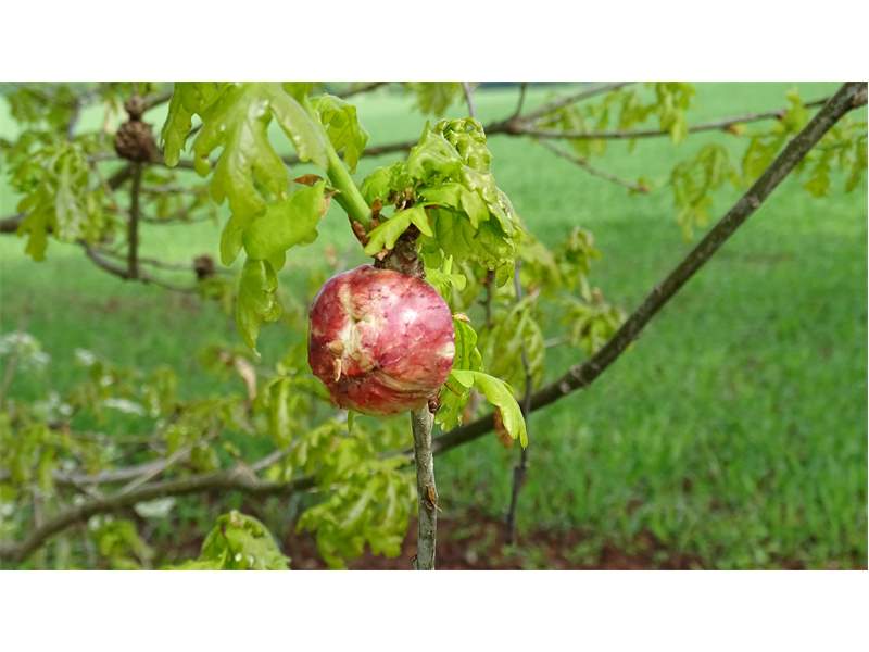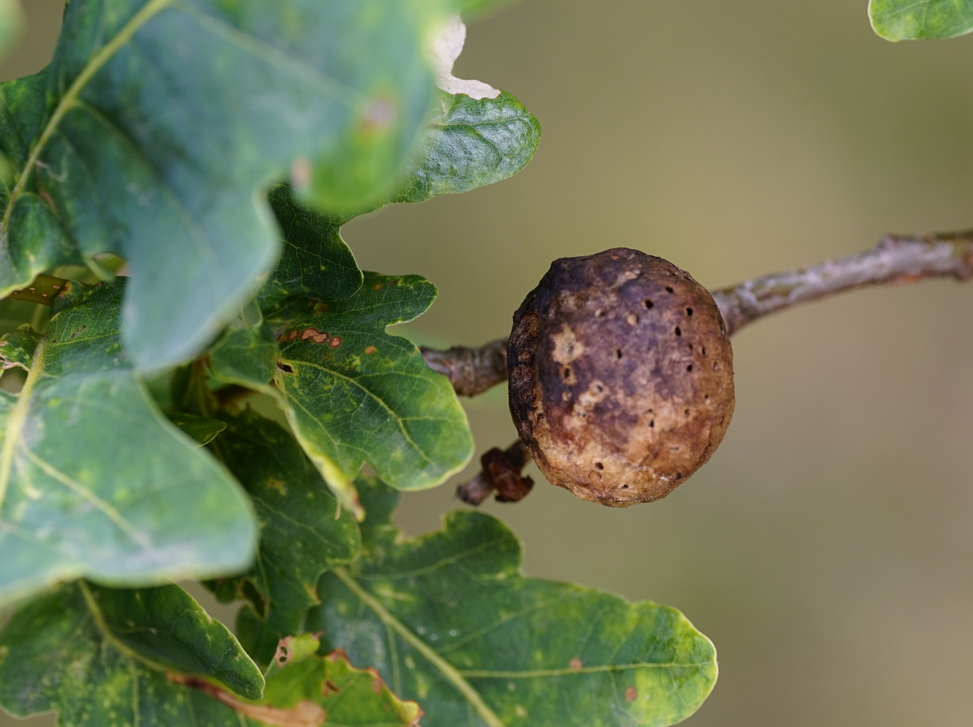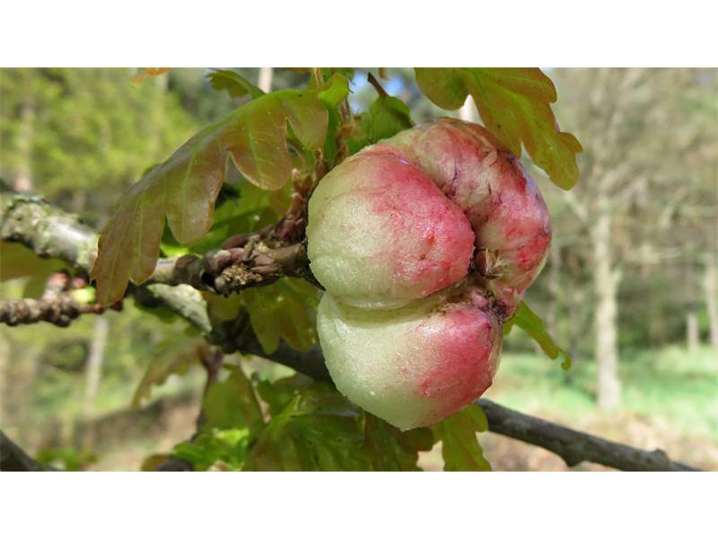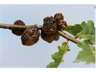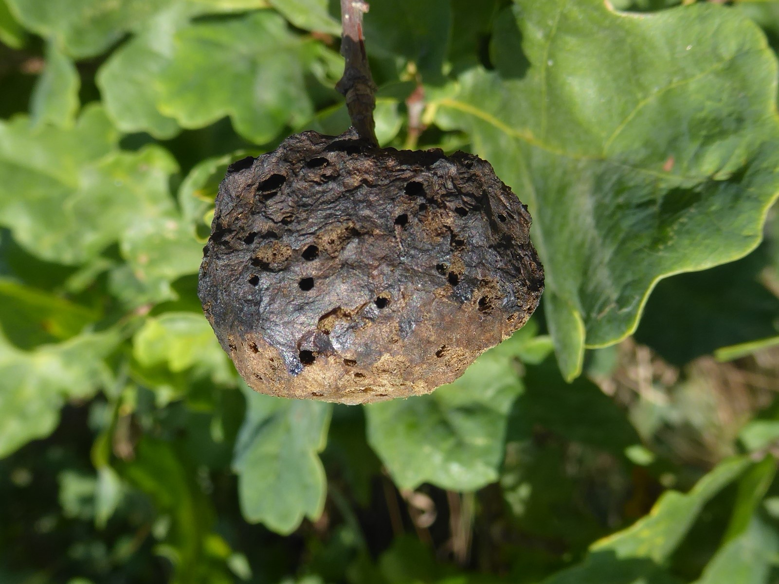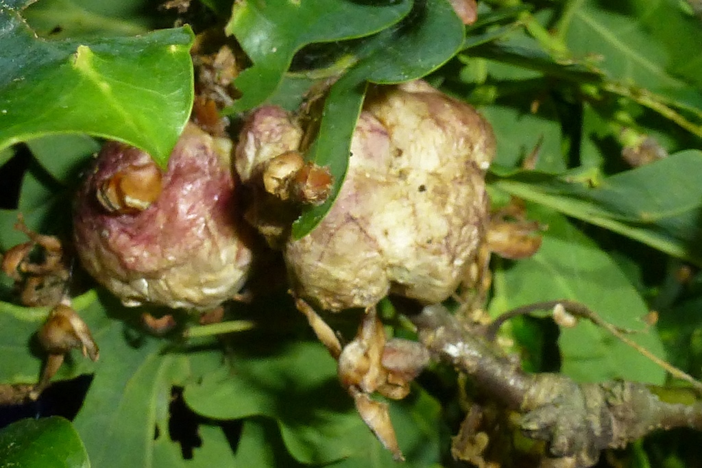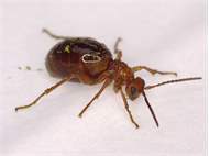 Biorhiza pallida, flügelloses Weibchen der Wintergenaration am Stamm einer Stieleiche ( Quercus robur), bewegte sich in Richtung Baumkrone um in einer Knospe ihre Eier abzulegen. Gemarkung Hohenprießnitz, Schlosspark, November 2014 (© Michael Happ)( Bild vergrößern)