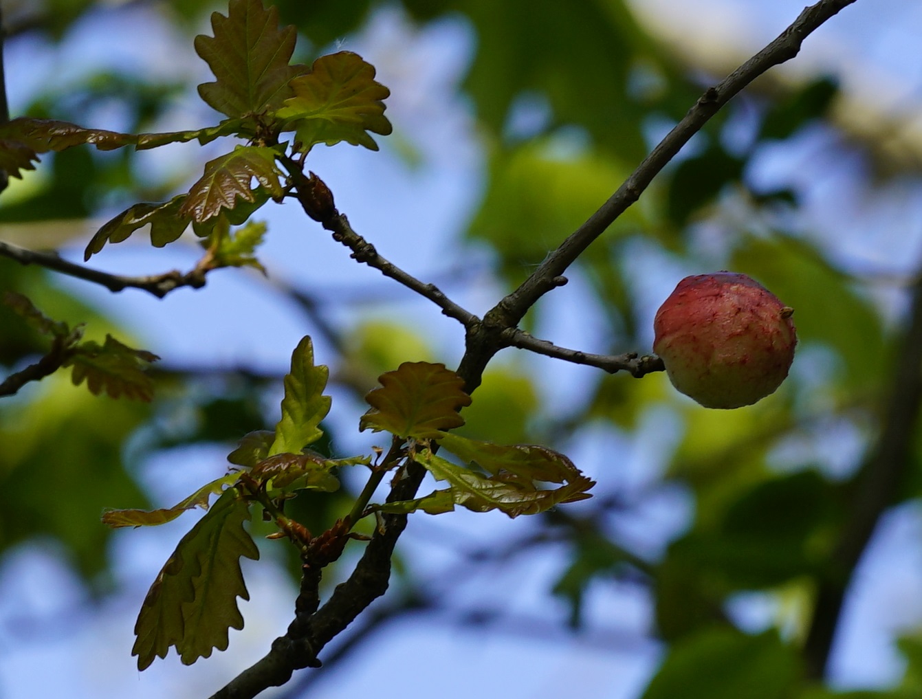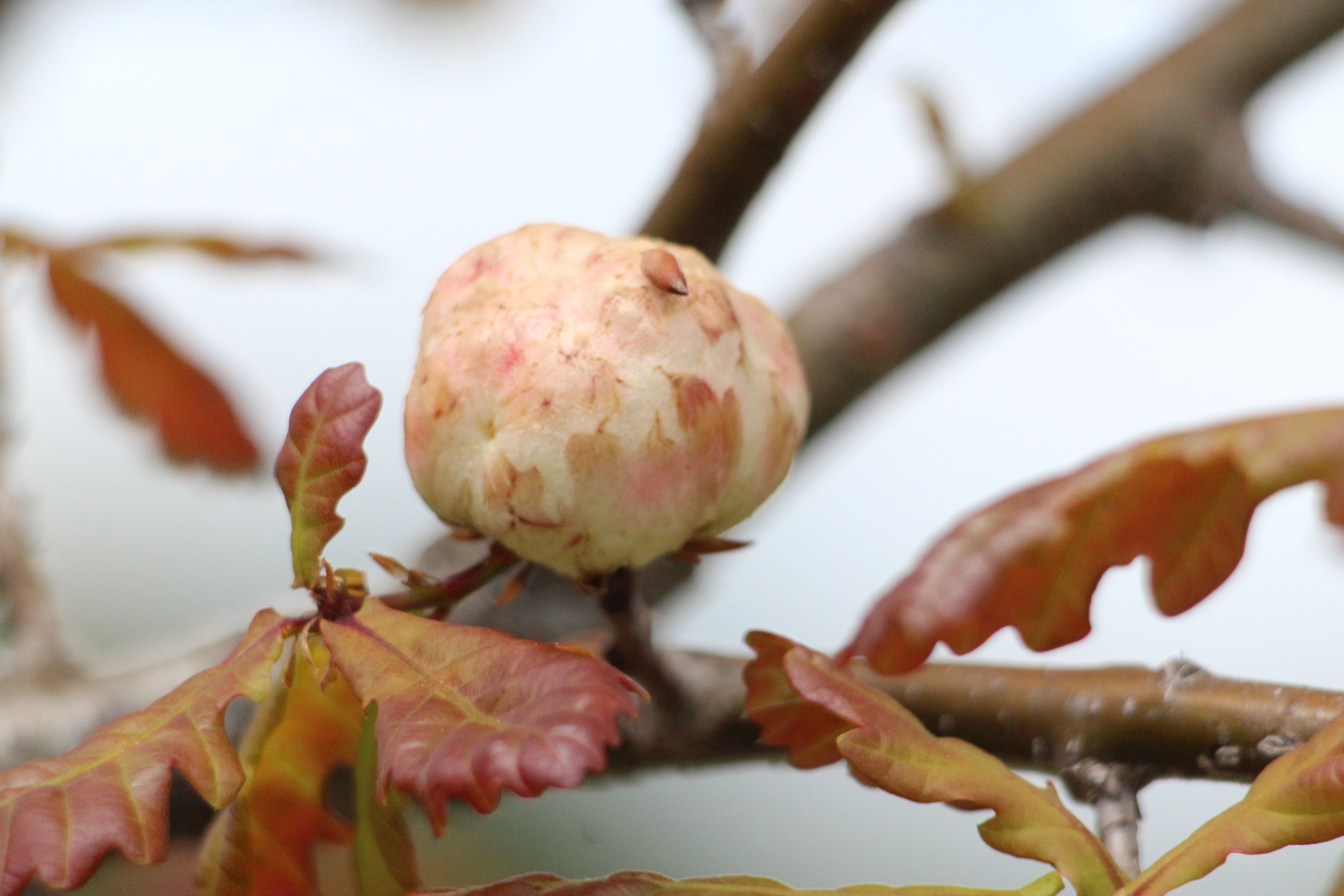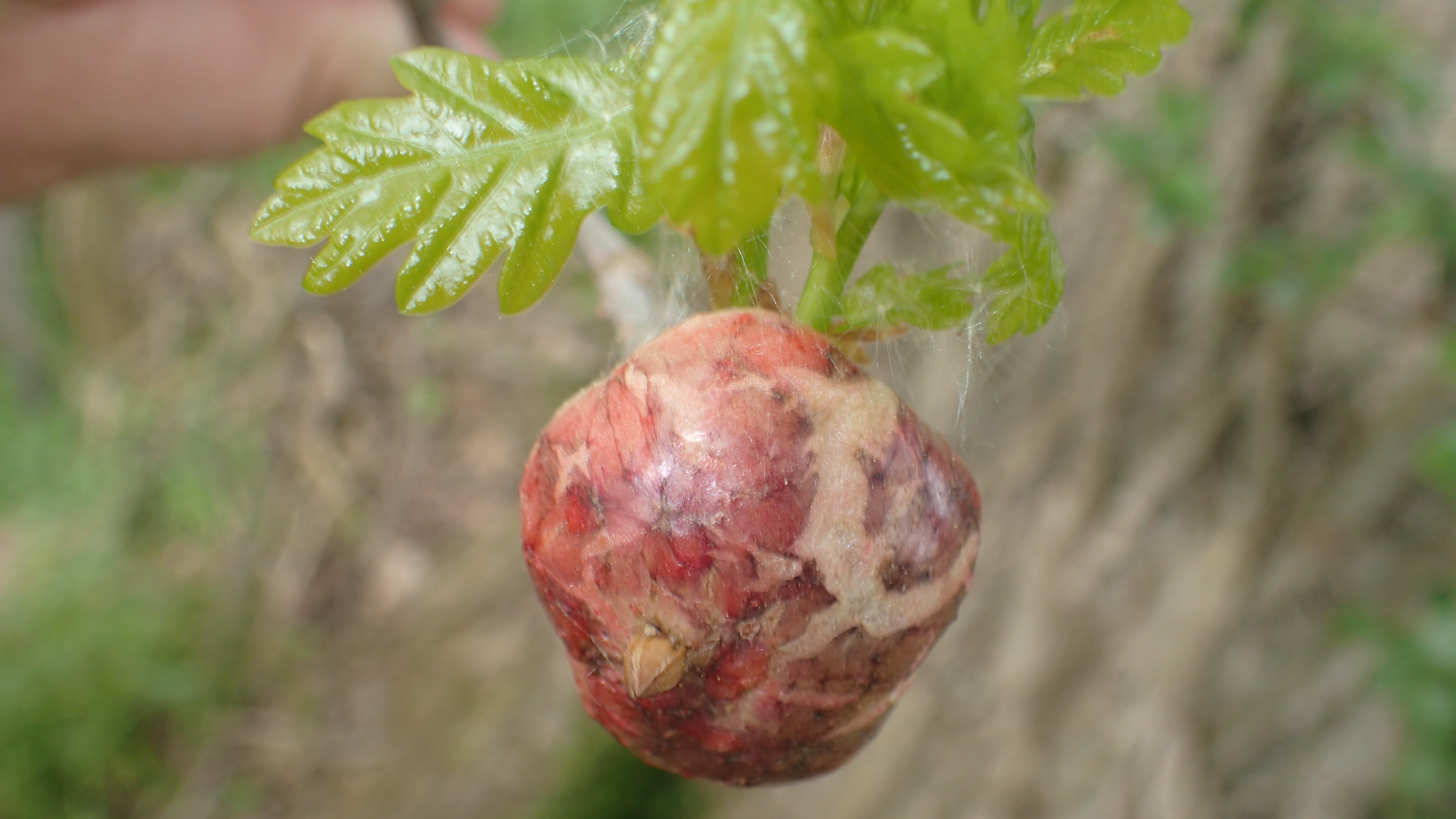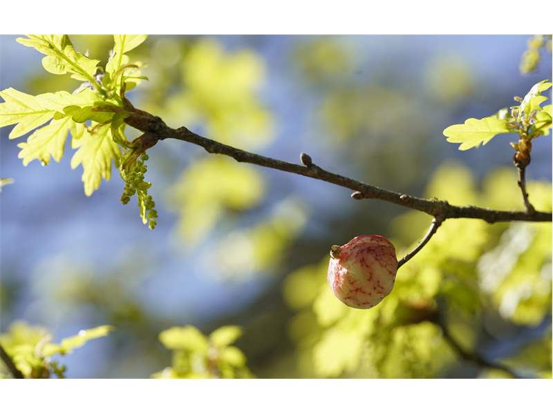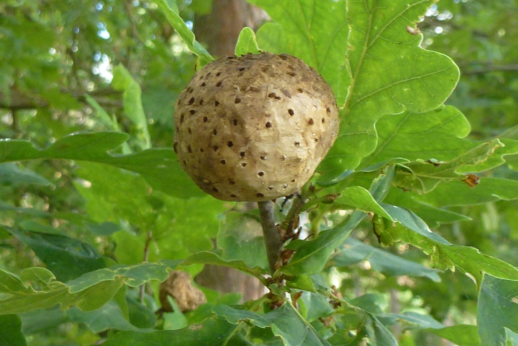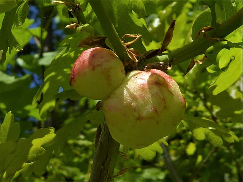 Biorhiza pallida, flügelloses Weibchen der Wintergenaration am Stamm einer Stieleiche ( Quercus robur), bewegte sich in Richtung Baumkrone um in einer Knospe ihre Eier abzulegen. Gemarkung Hohenprießnitz, Schlosspark, November 2014 (© Michael Happ)( Bild vergrößern)