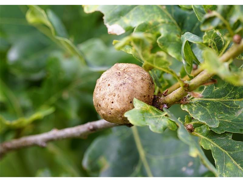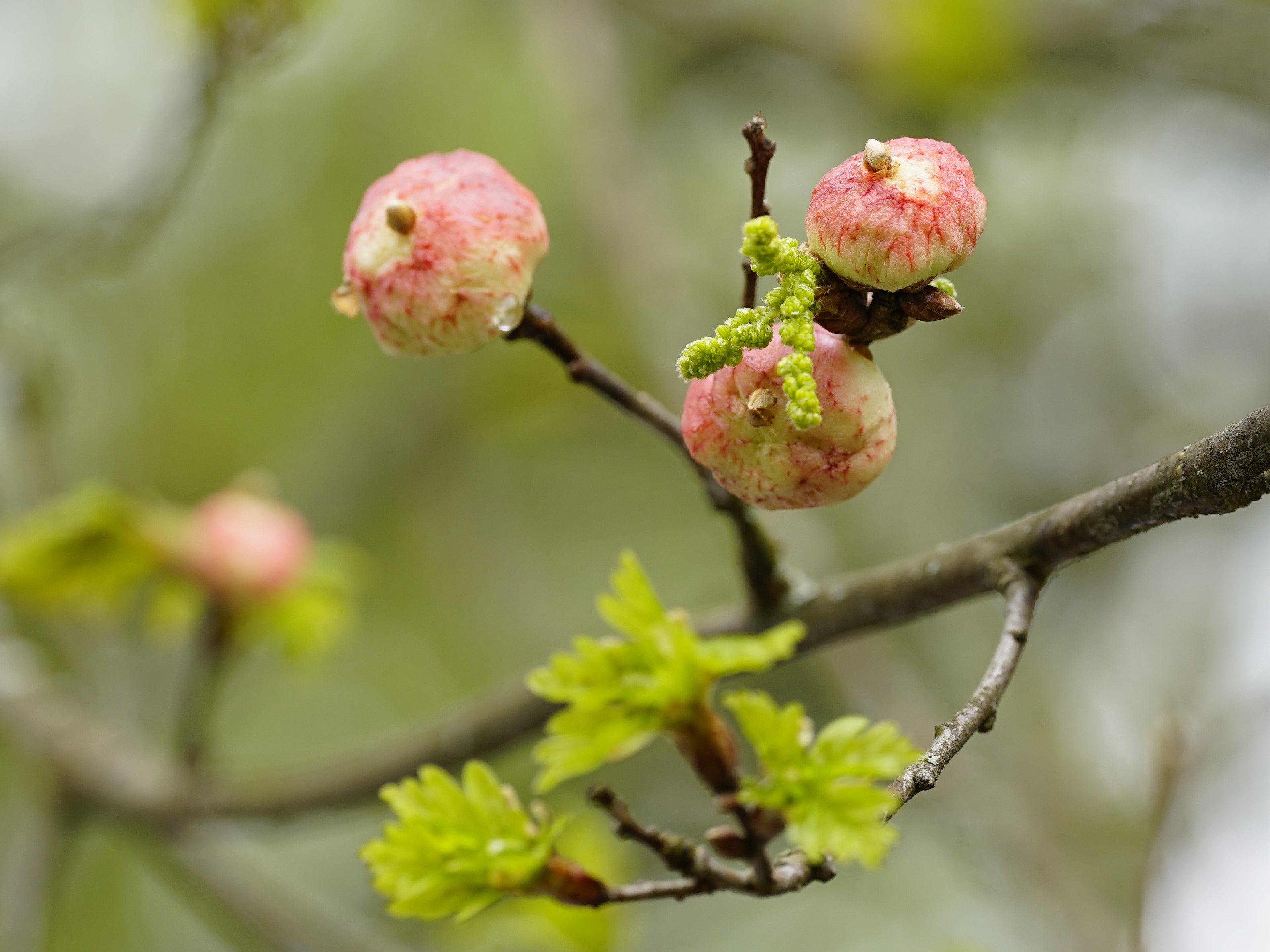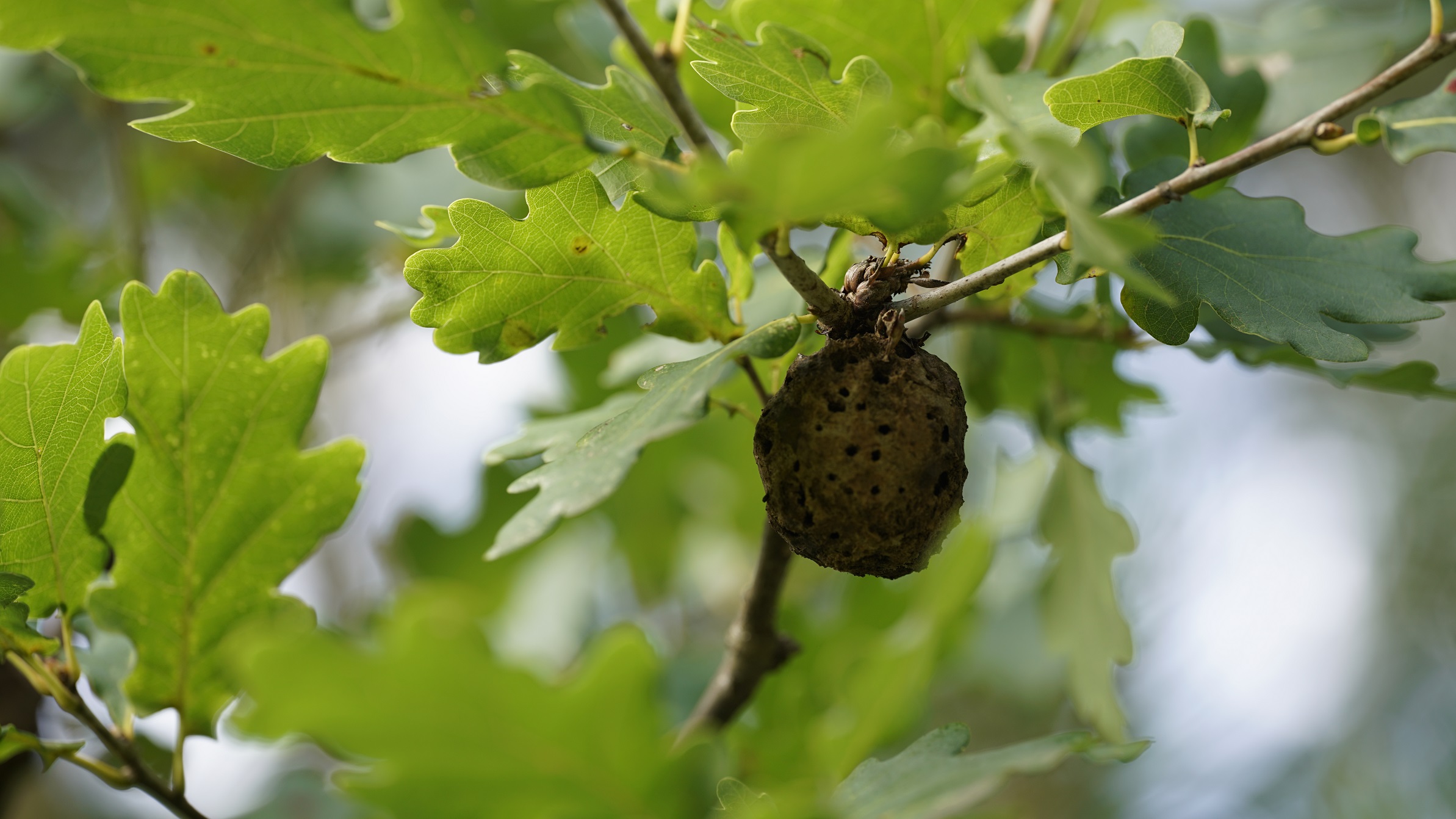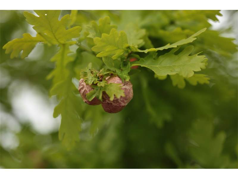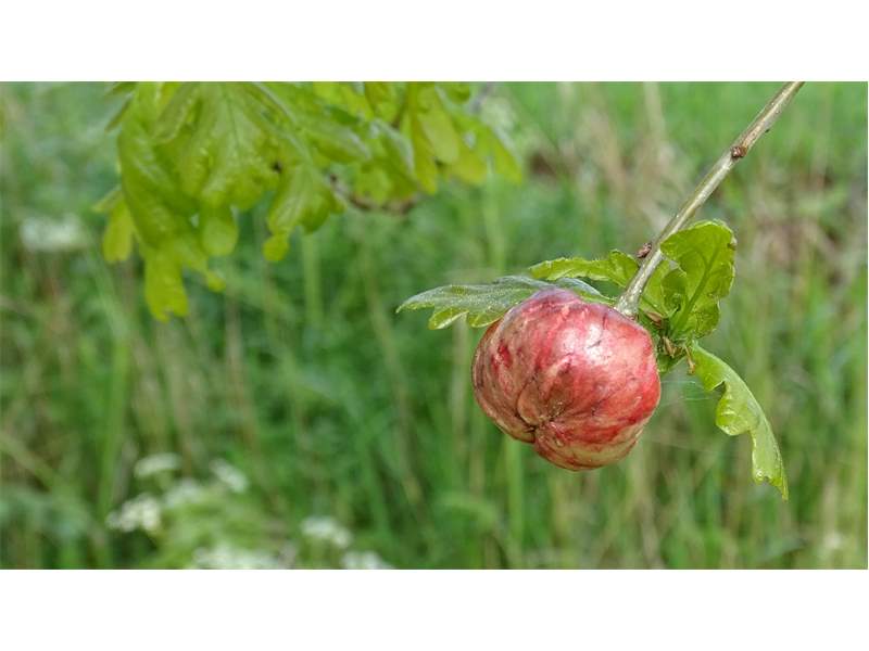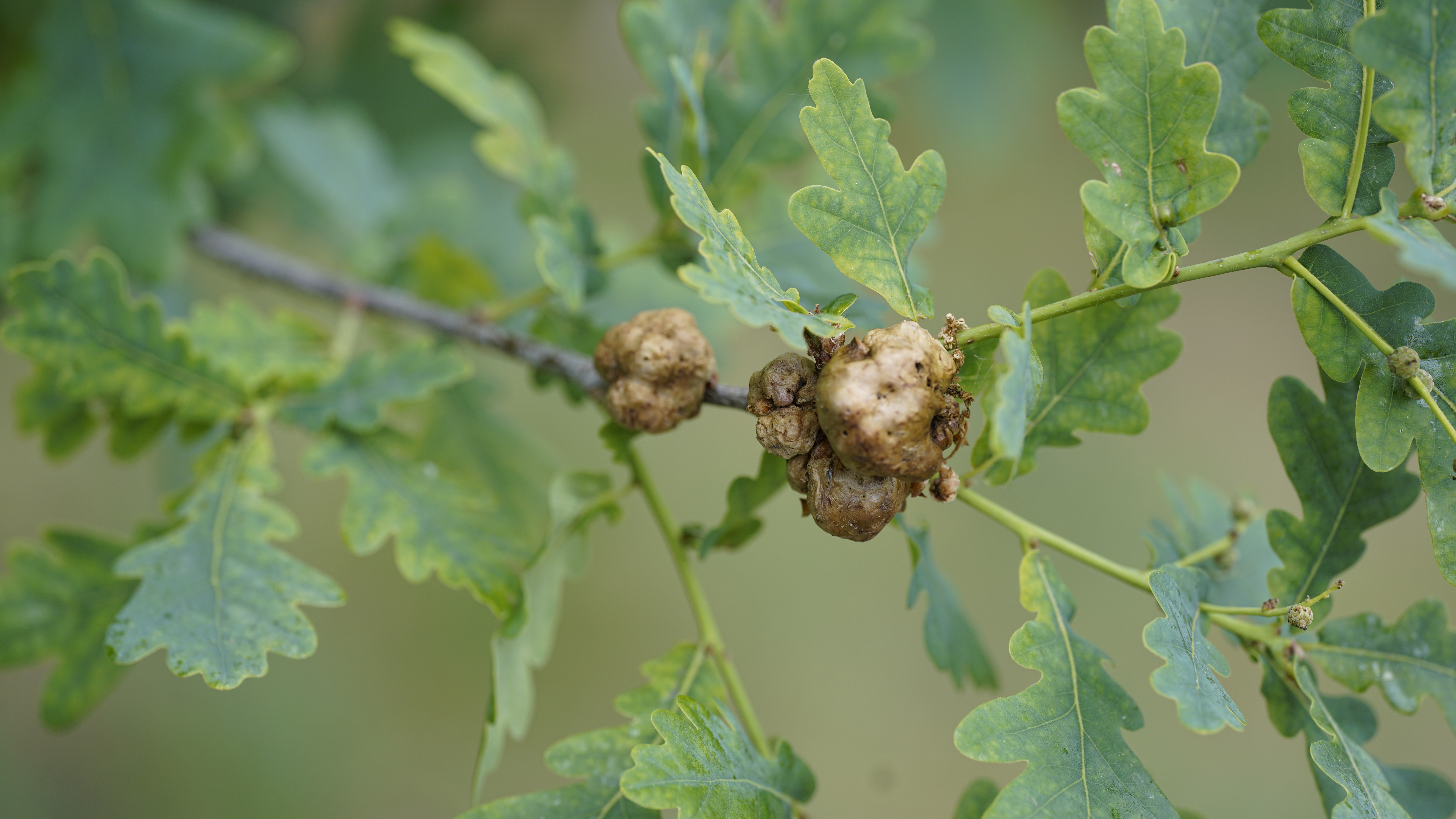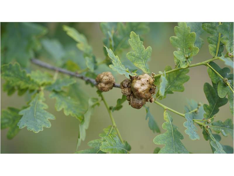 Biorhiza pallida, flügelloses Weibchen der Wintergenaration am Stamm einer Stieleiche ( Quercus robur), bewegte sich in Richtung Baumkrone um in einer Knospe ihre Eier abzulegen. Gemarkung Hohenprießnitz, Schlosspark, November 2014 (© Michael Happ)( Bild vergrößern)