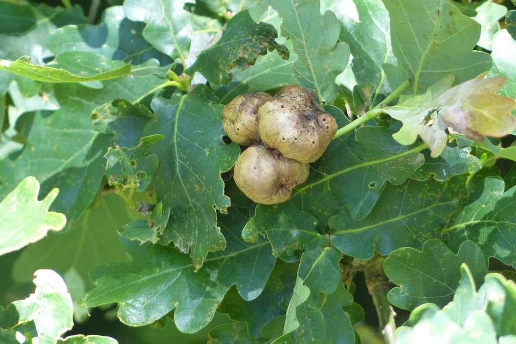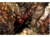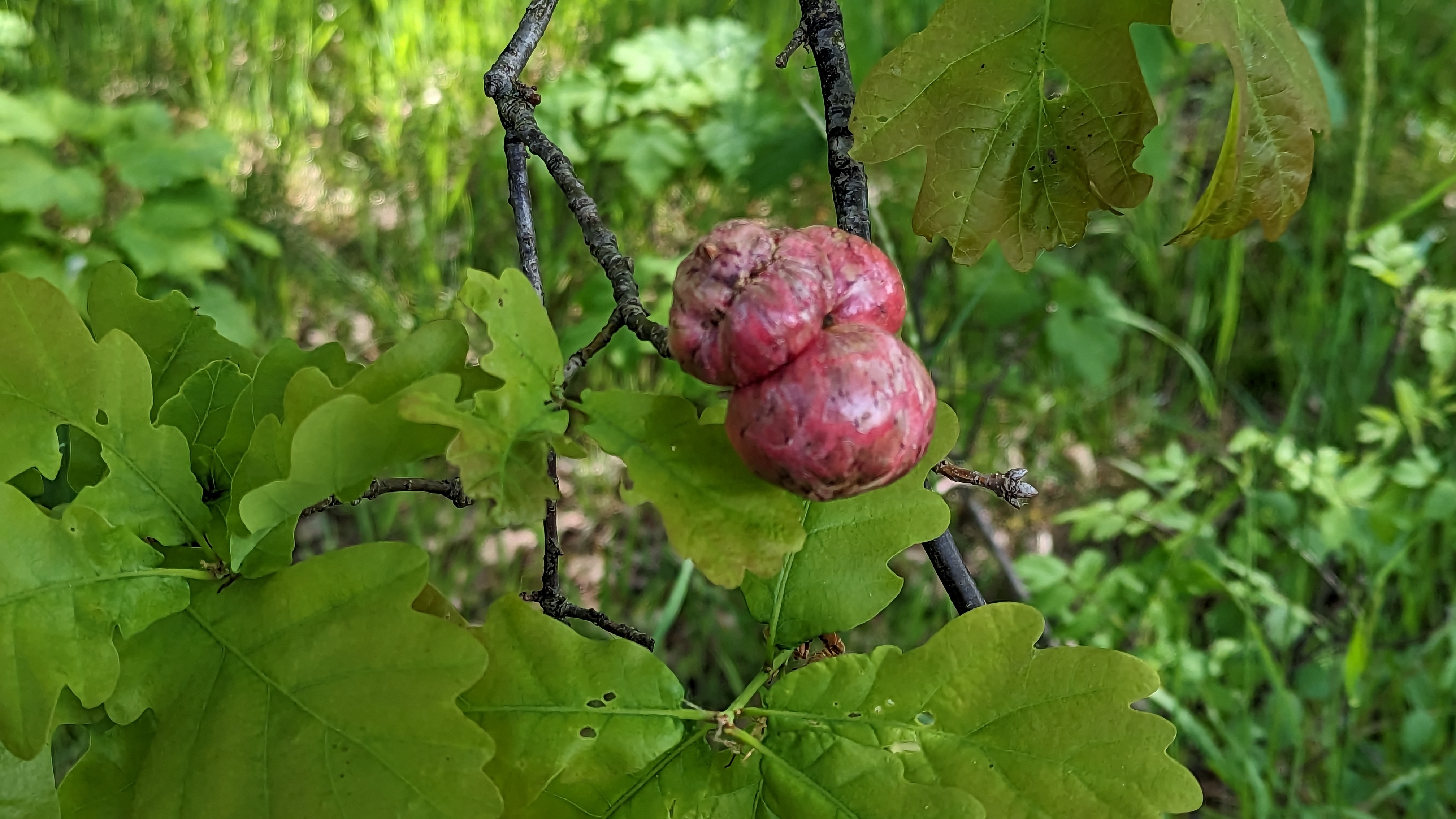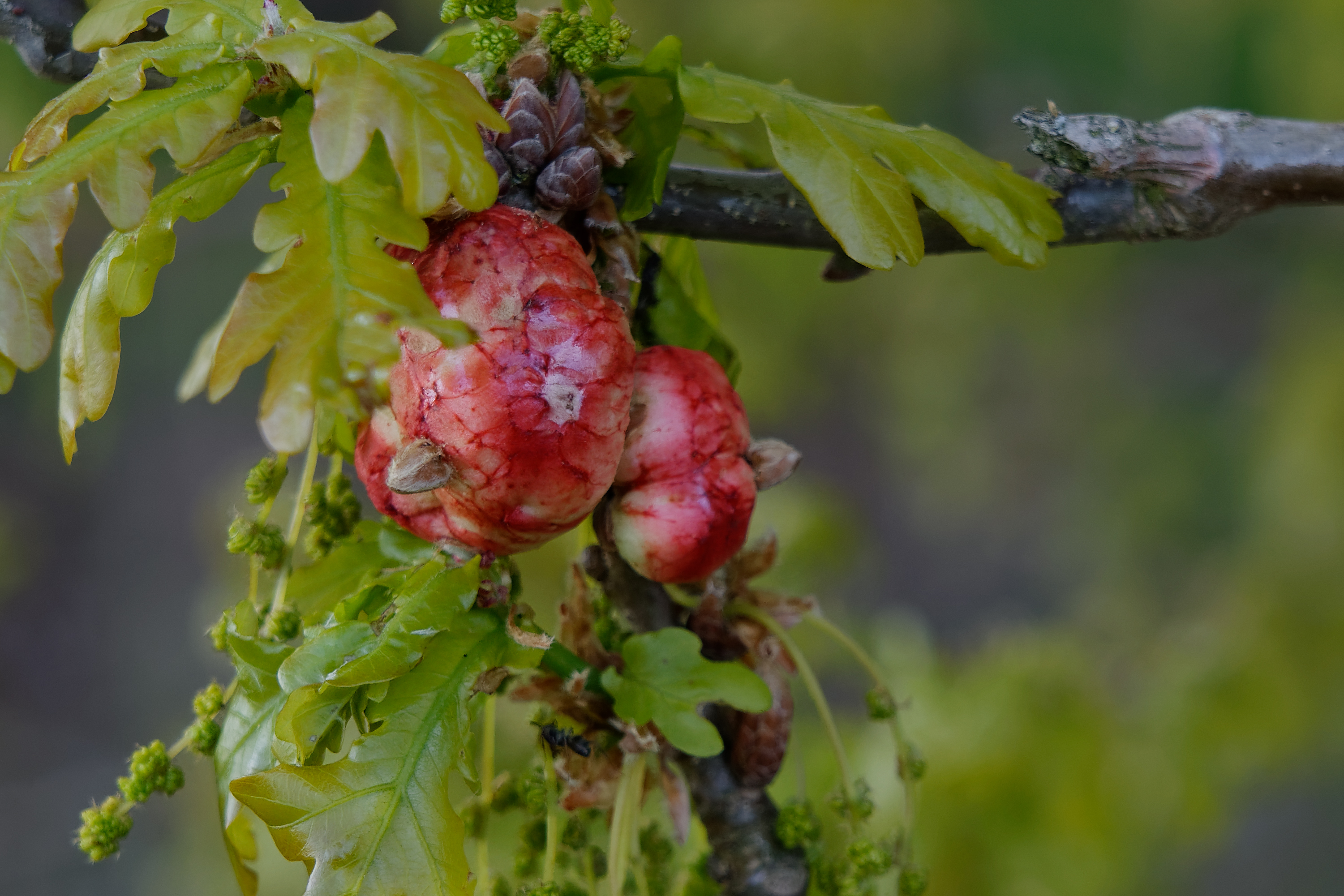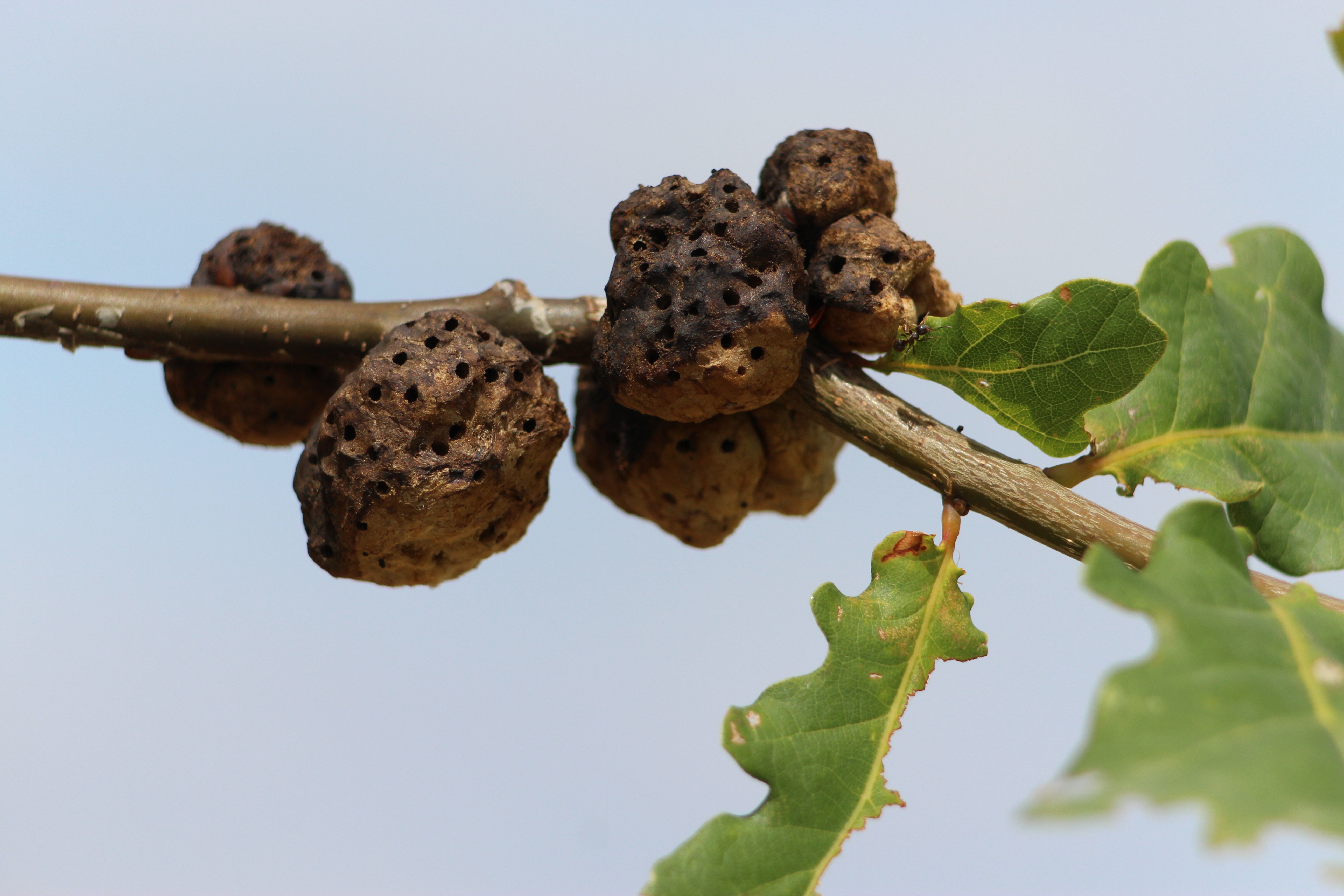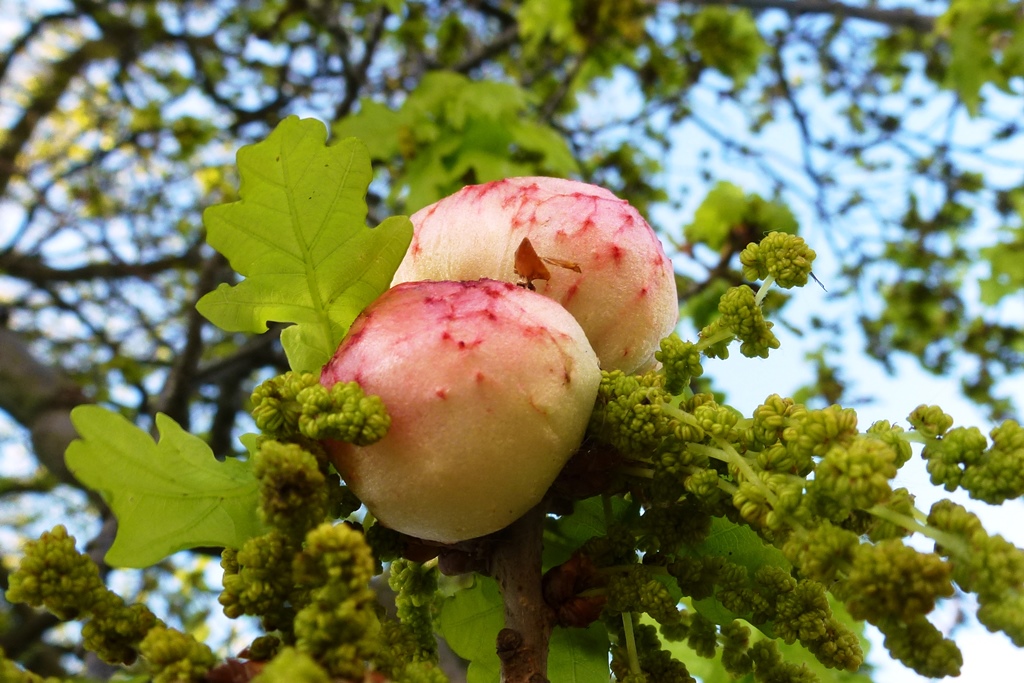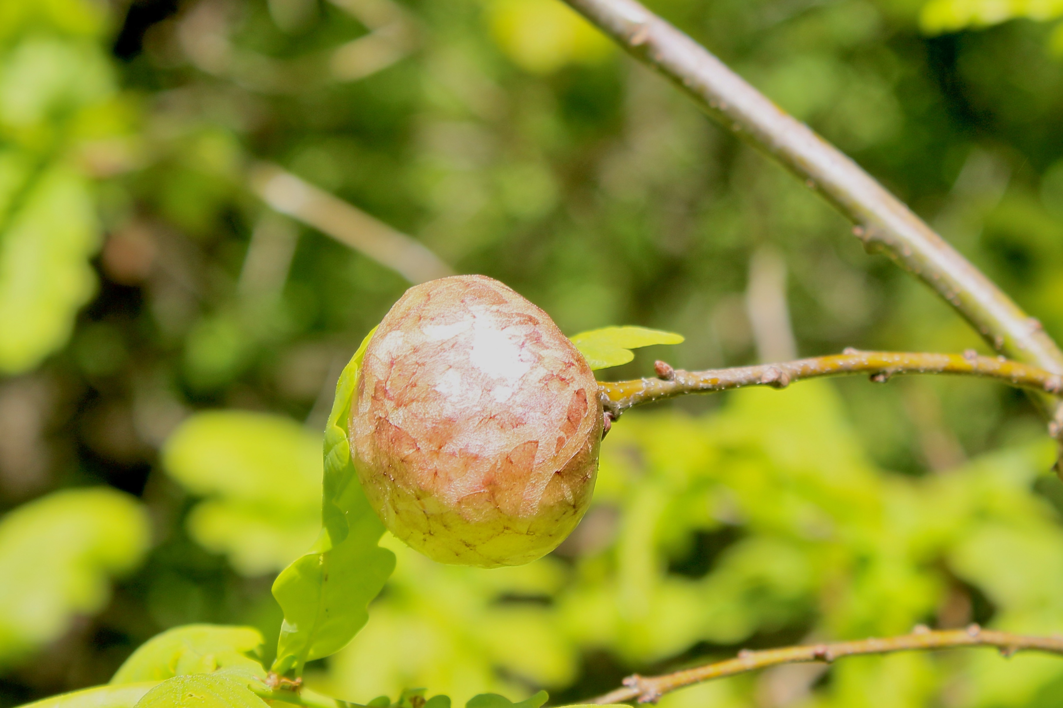 Biorhiza pallida, flügelloses Weibchen der Wintergenaration am Stamm einer Stieleiche ( Quercus robur), bewegte sich in Richtung Baumkrone um in einer Knospe ihre Eier abzulegen. Gemarkung Hohenprießnitz, Schlosspark, November 2014 (© Michael Happ)( Bild vergrößern)
