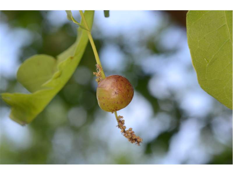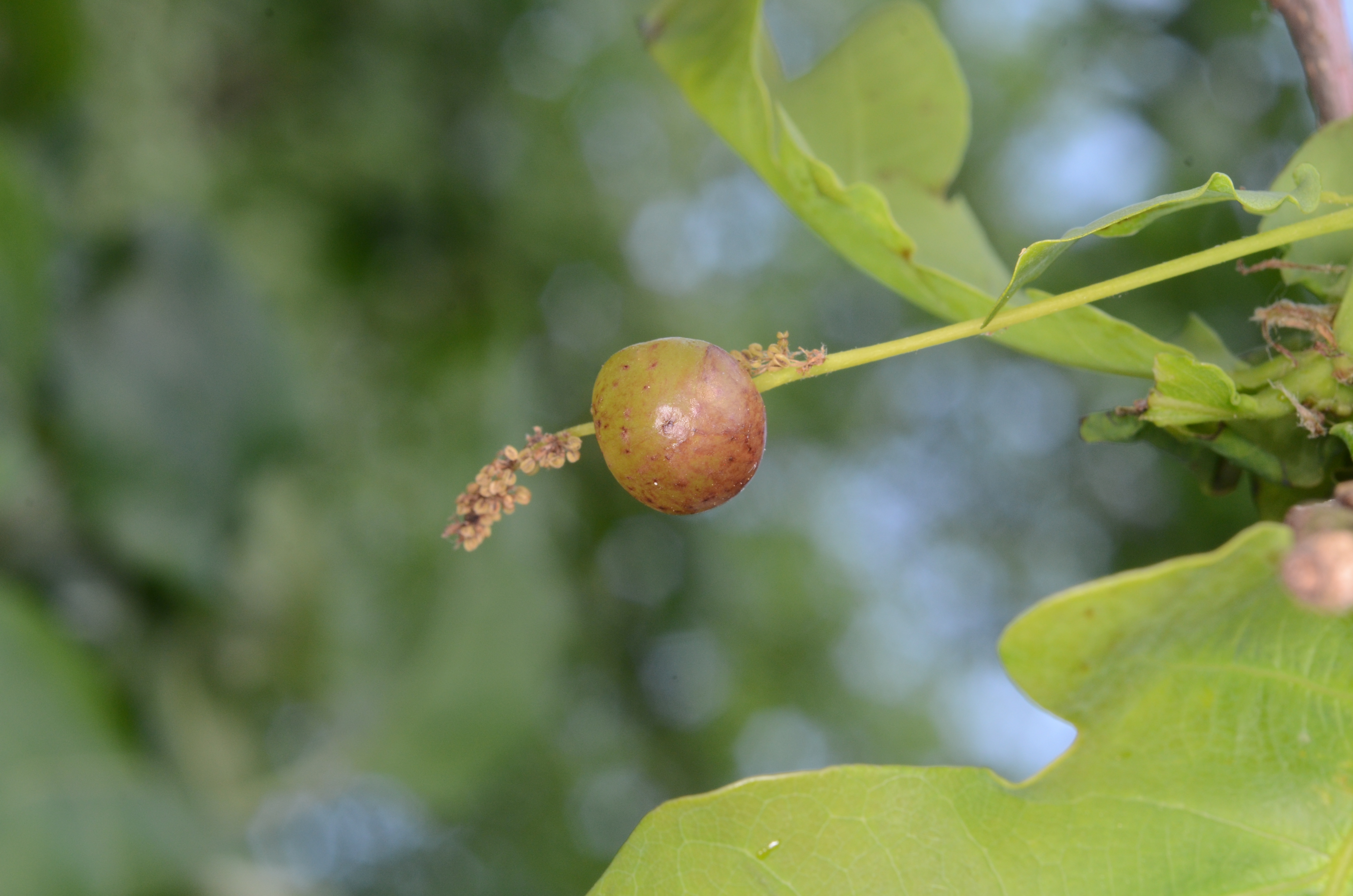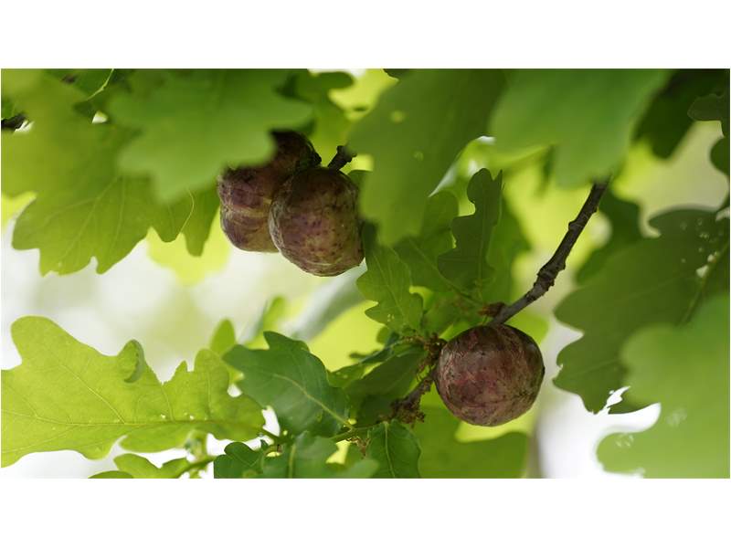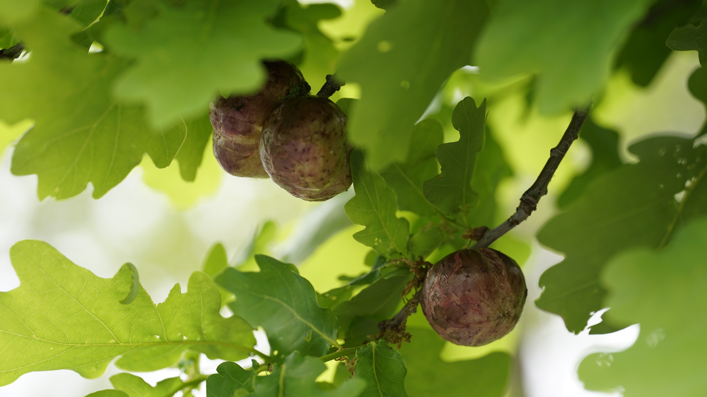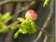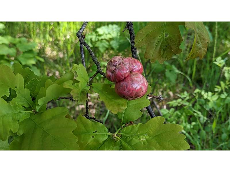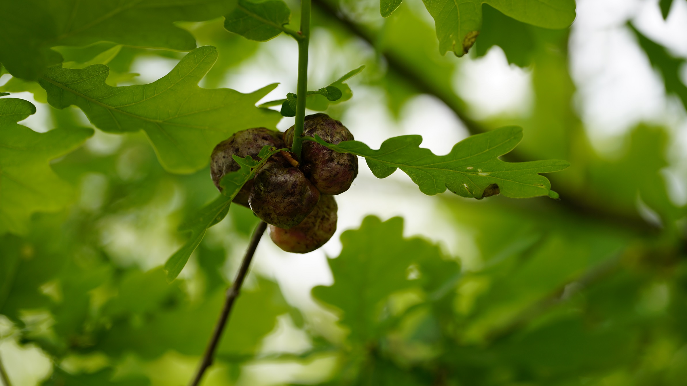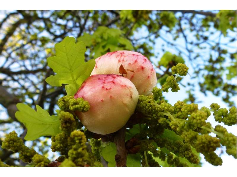 Biorhiza pallida, flügelloses Weibchen der Wintergenaration am Stamm einer Stieleiche ( Quercus robur), bewegte sich in Richtung Baumkrone um in einer Knospe ihre Eier abzulegen. Gemarkung Hohenprießnitz, Schlosspark, November 2014 (© Michael Happ)( Bild vergrößern)