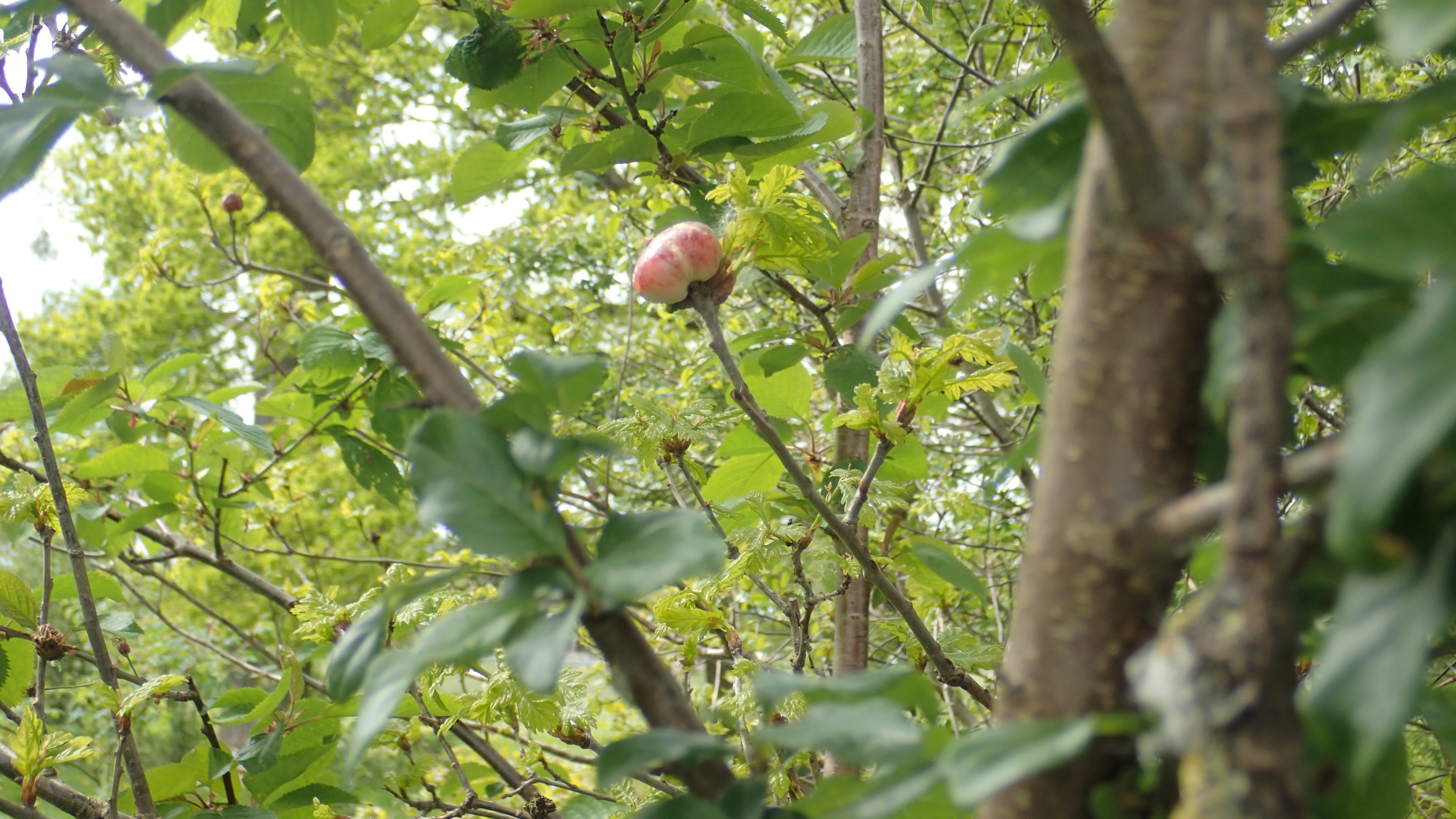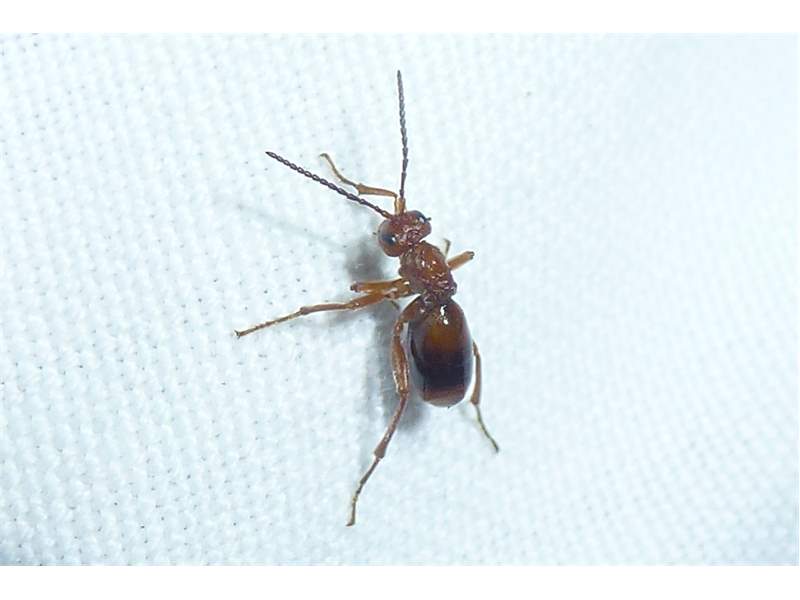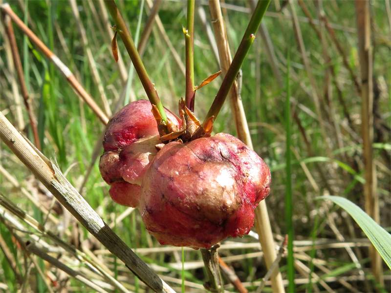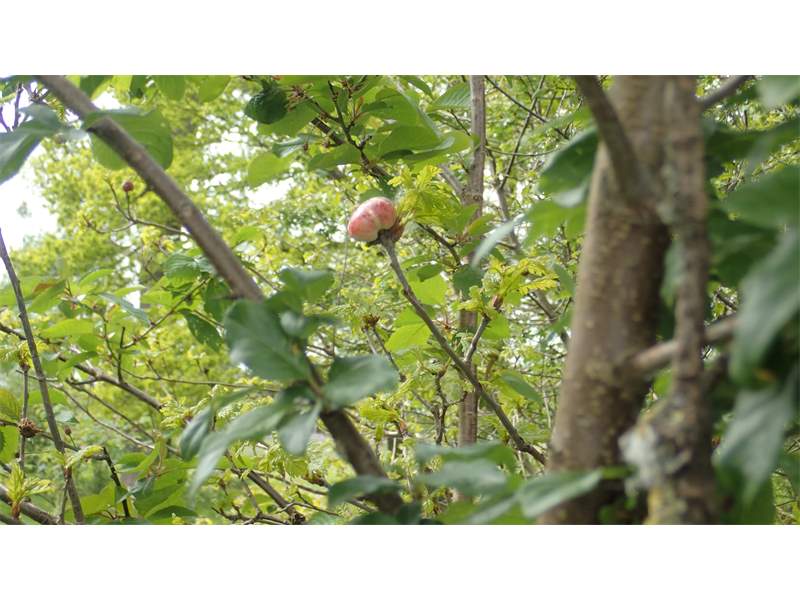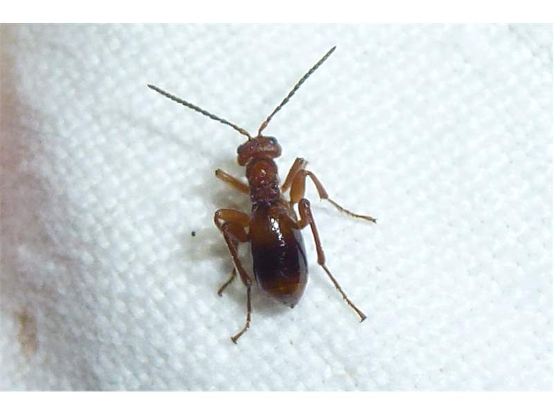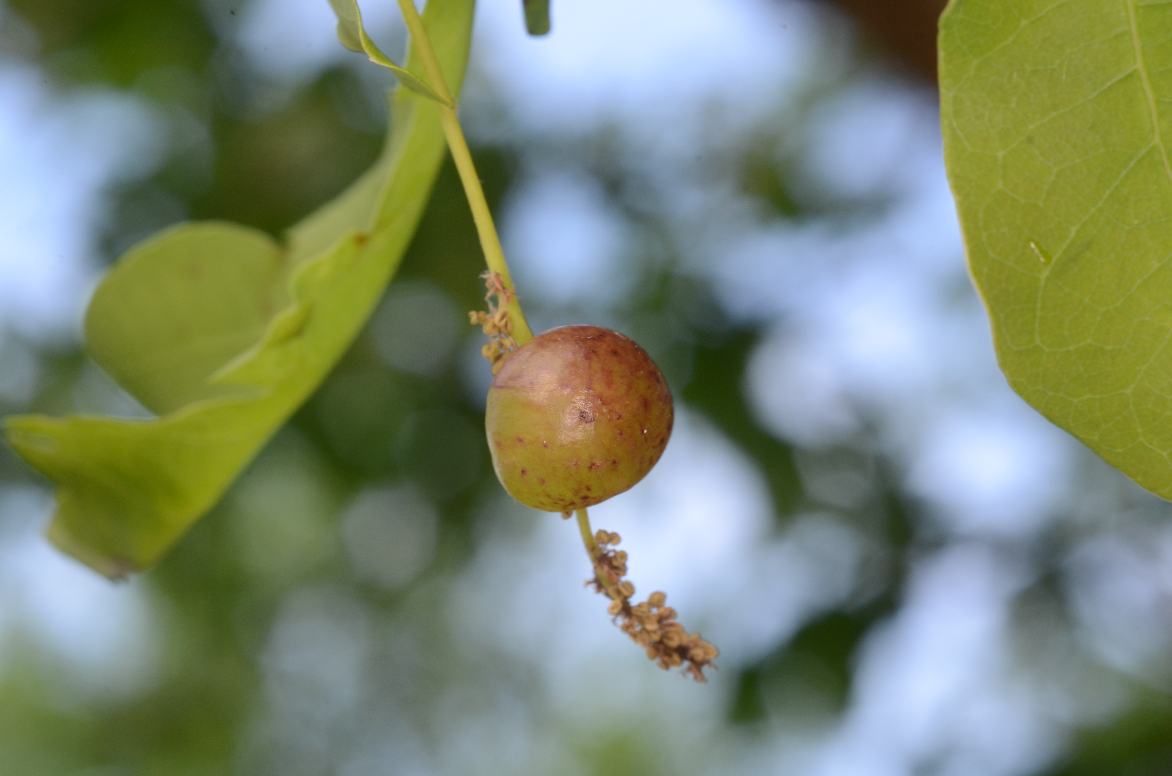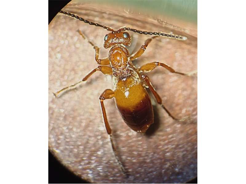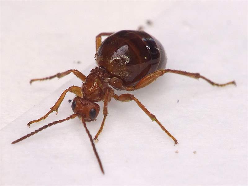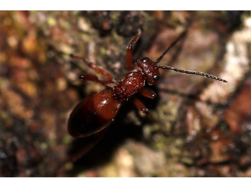 Biorhiza pallida, flügelloses Weibchen der Wintergenaration am Stamm einer Stieleiche ( Quercus robur), bewegte sich in Richtung Baumkrone um in einer Knospe ihre Eier abzulegen. Gemarkung Hohenprießnitz, Schlosspark, November 2014 (© Michael Happ)( Bild vergrößern)