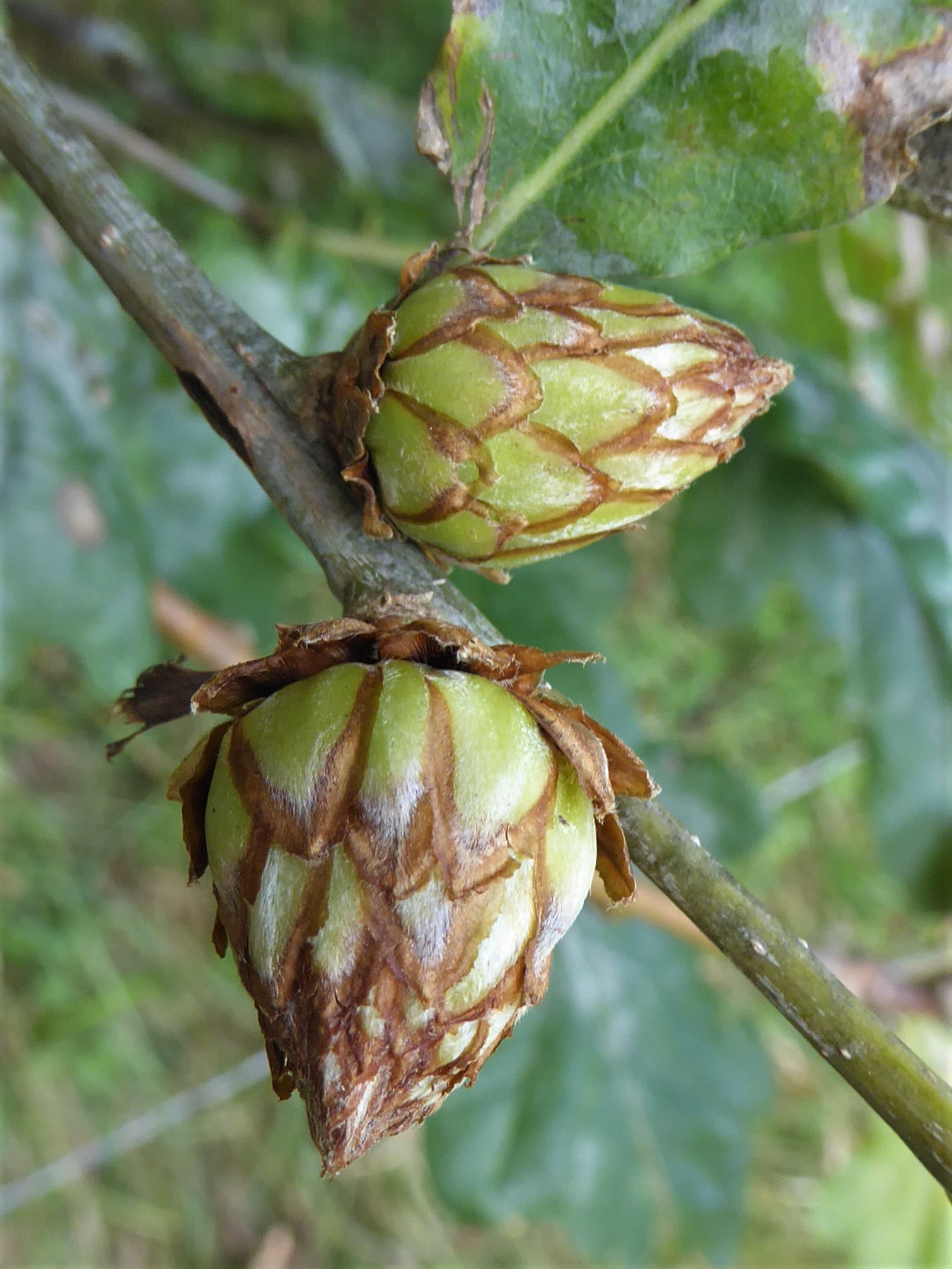Hopfenzapfengalle bzw. Eichenrose von einer Eichenrosengallwespe im September 2016, Talsperre Wallroda