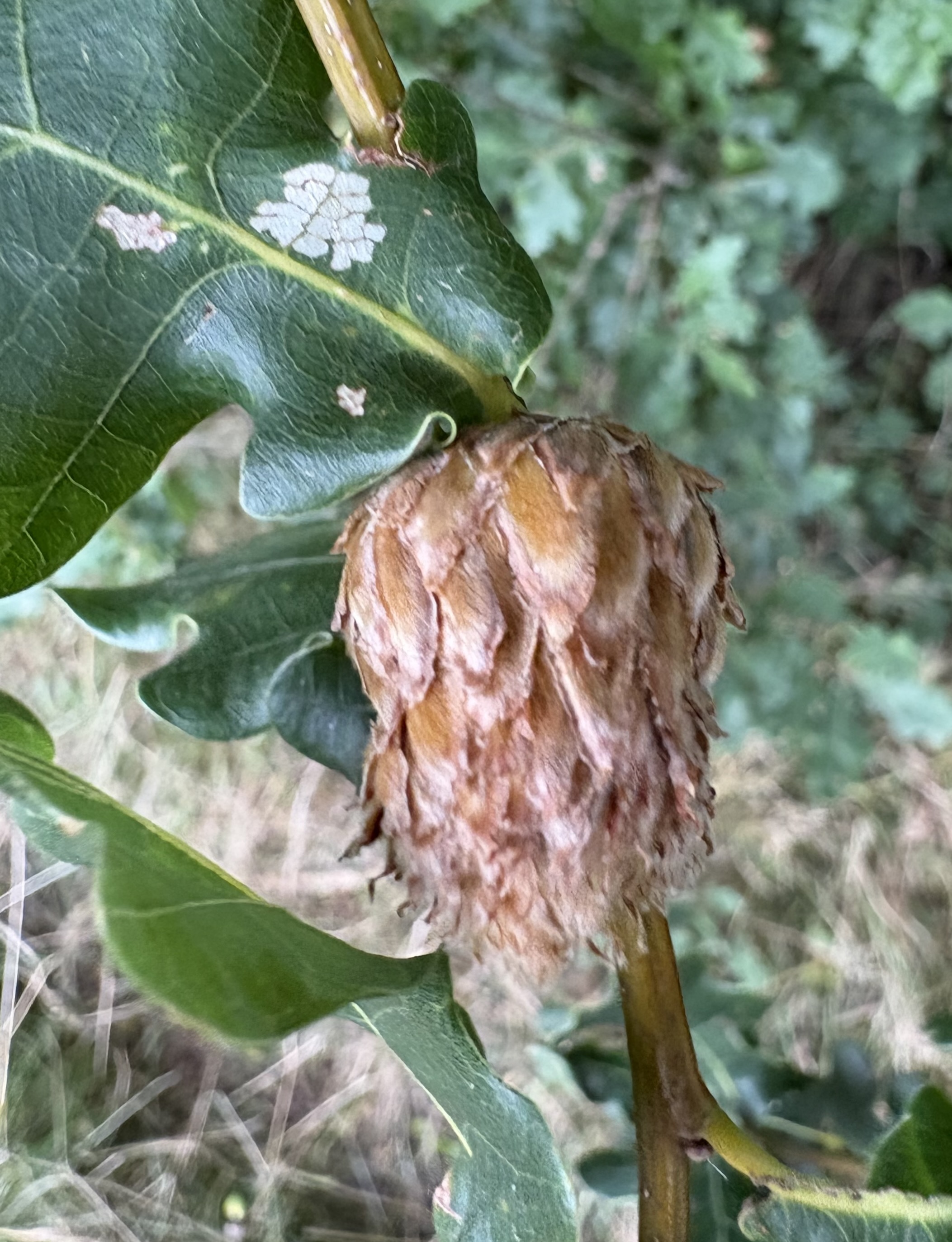bei Geyer, NSG "Hermannsdorfer Wiesen", alte Galle an Quercus robur, 10. August 2024