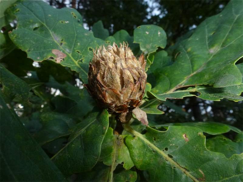 Hopfenzapfengalle bzw. Eichenrose von einer Eichenrosengallwespe im September 2014, Laußnitzer Heide