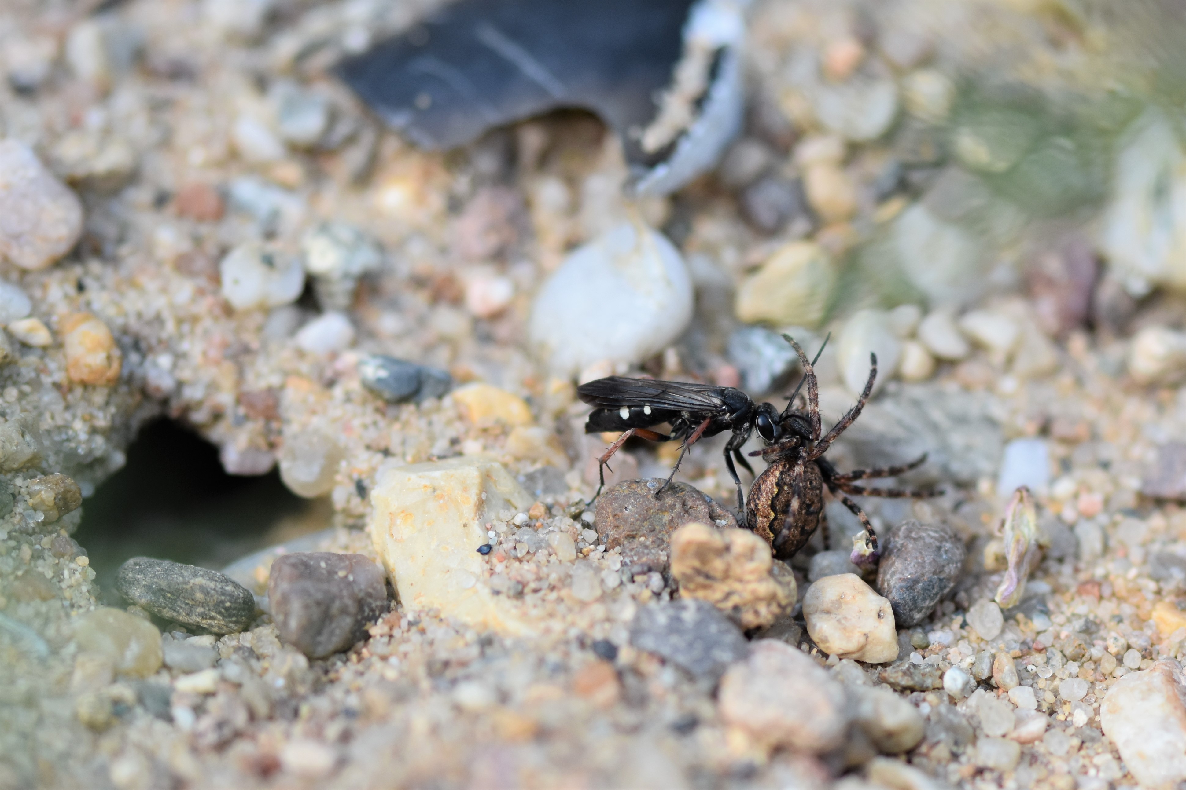 Rotbeinige Wegwespe (Episyron rufipes), Stadt Chemnitz, Juli 2020