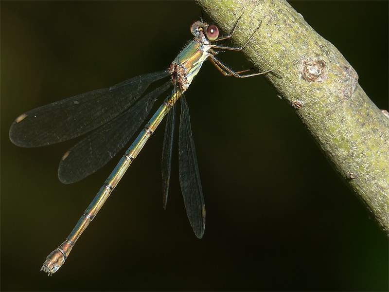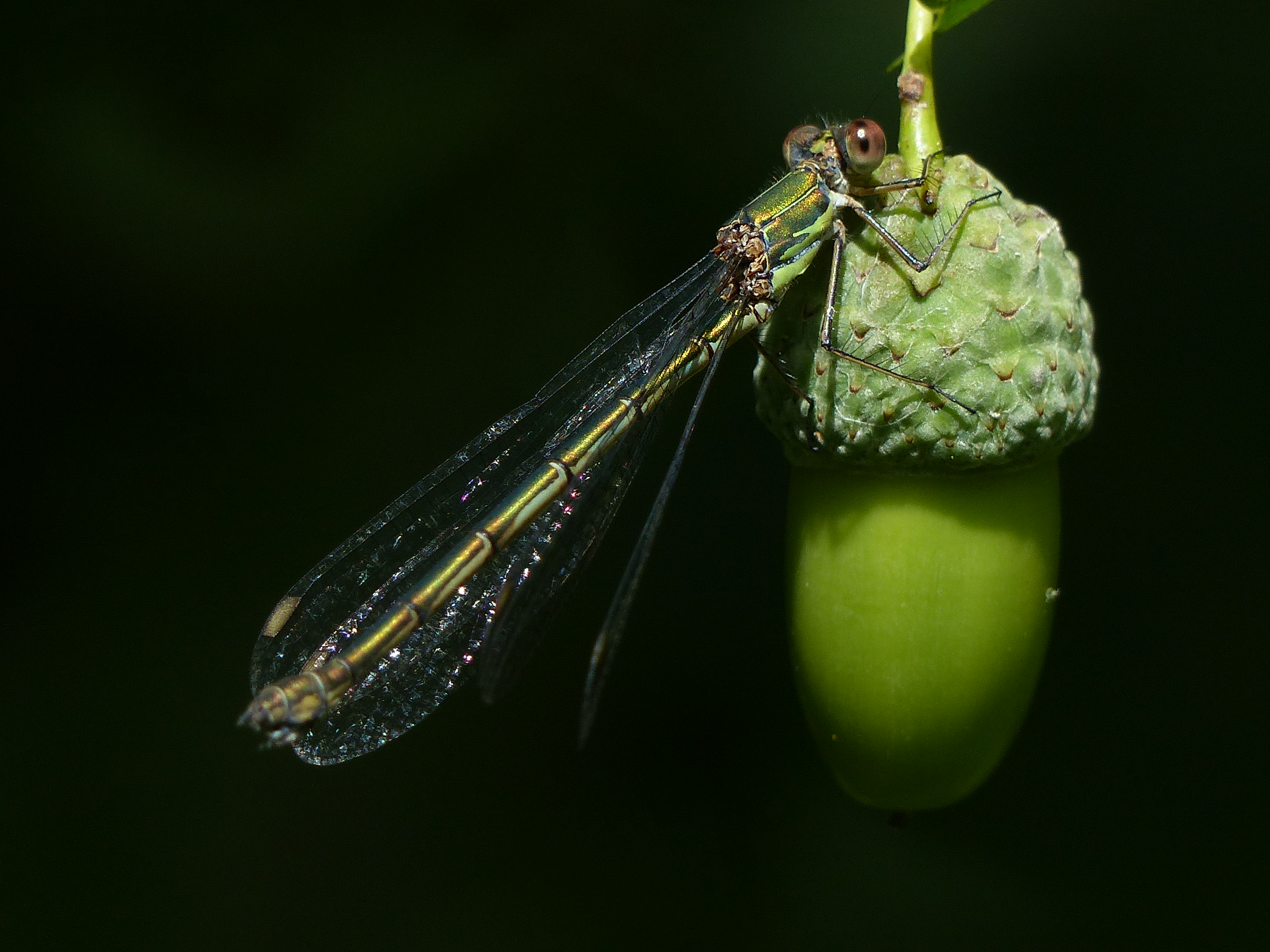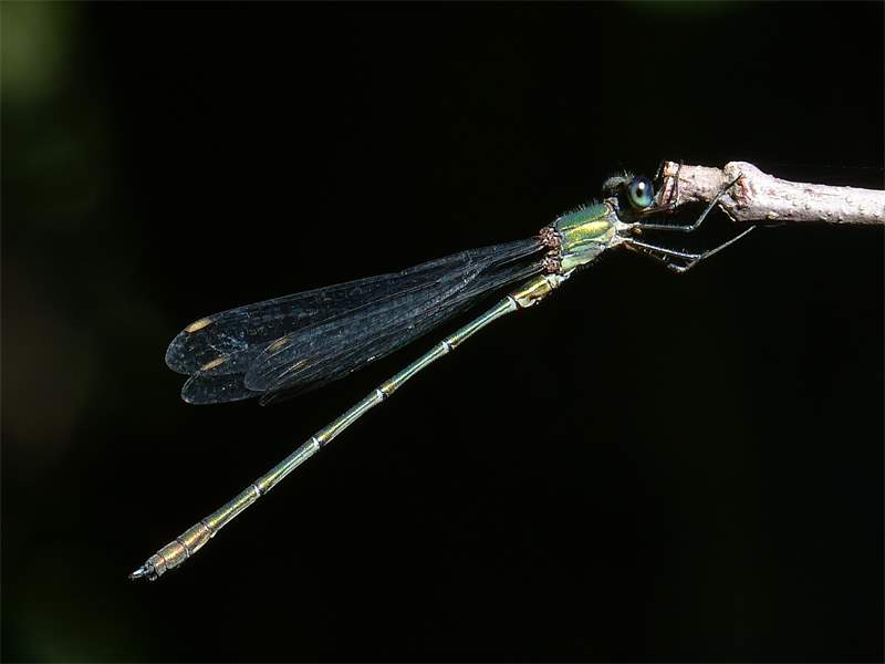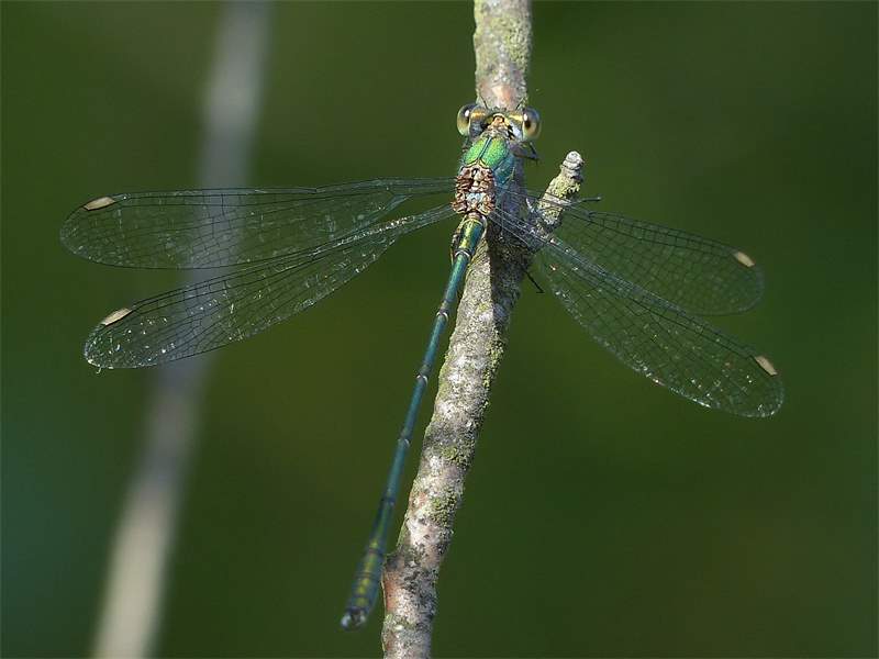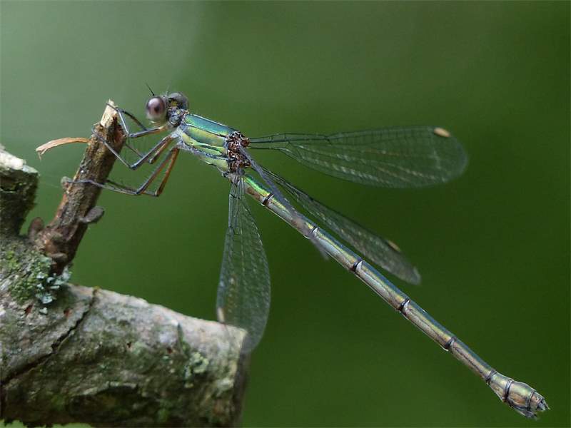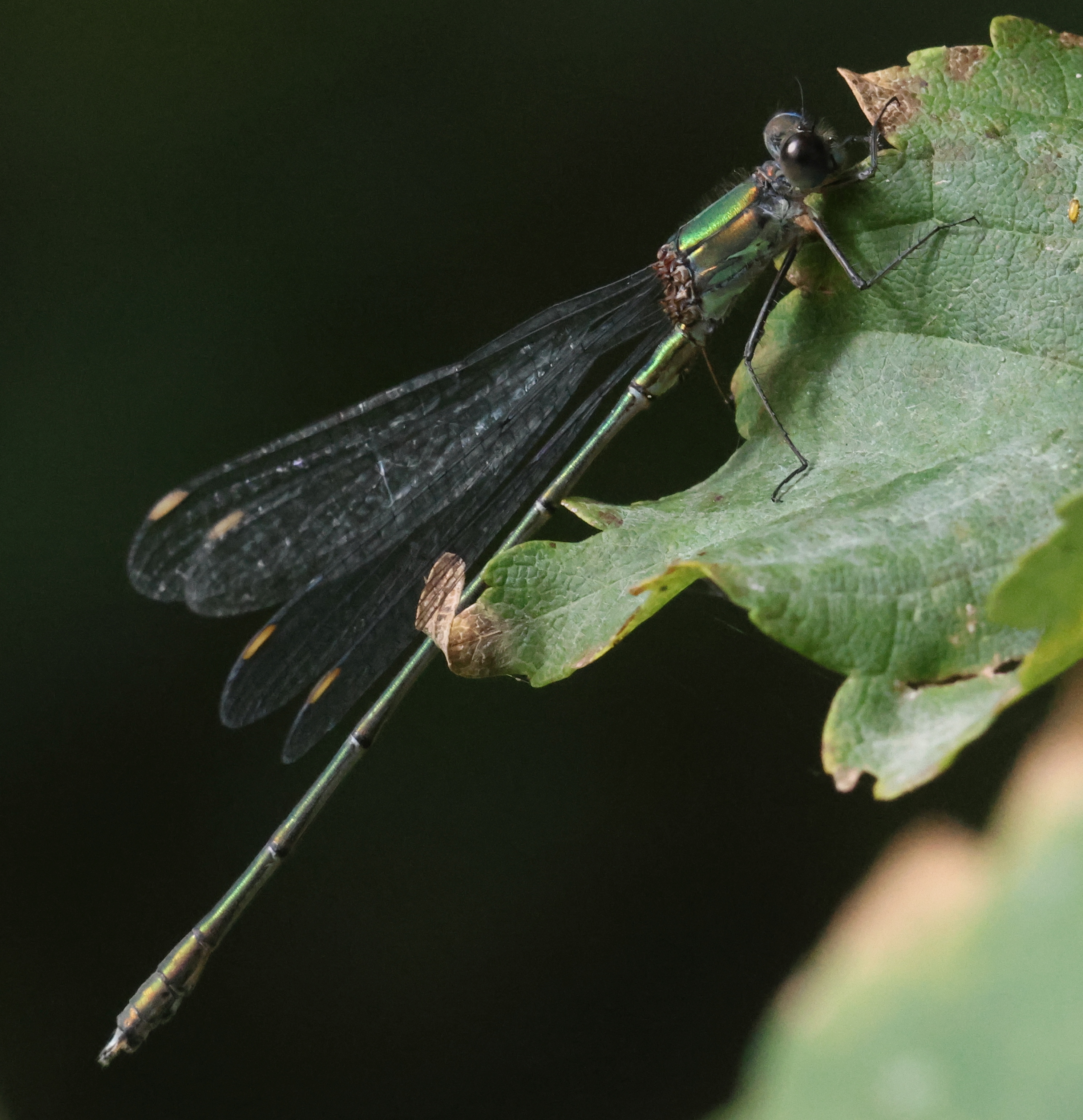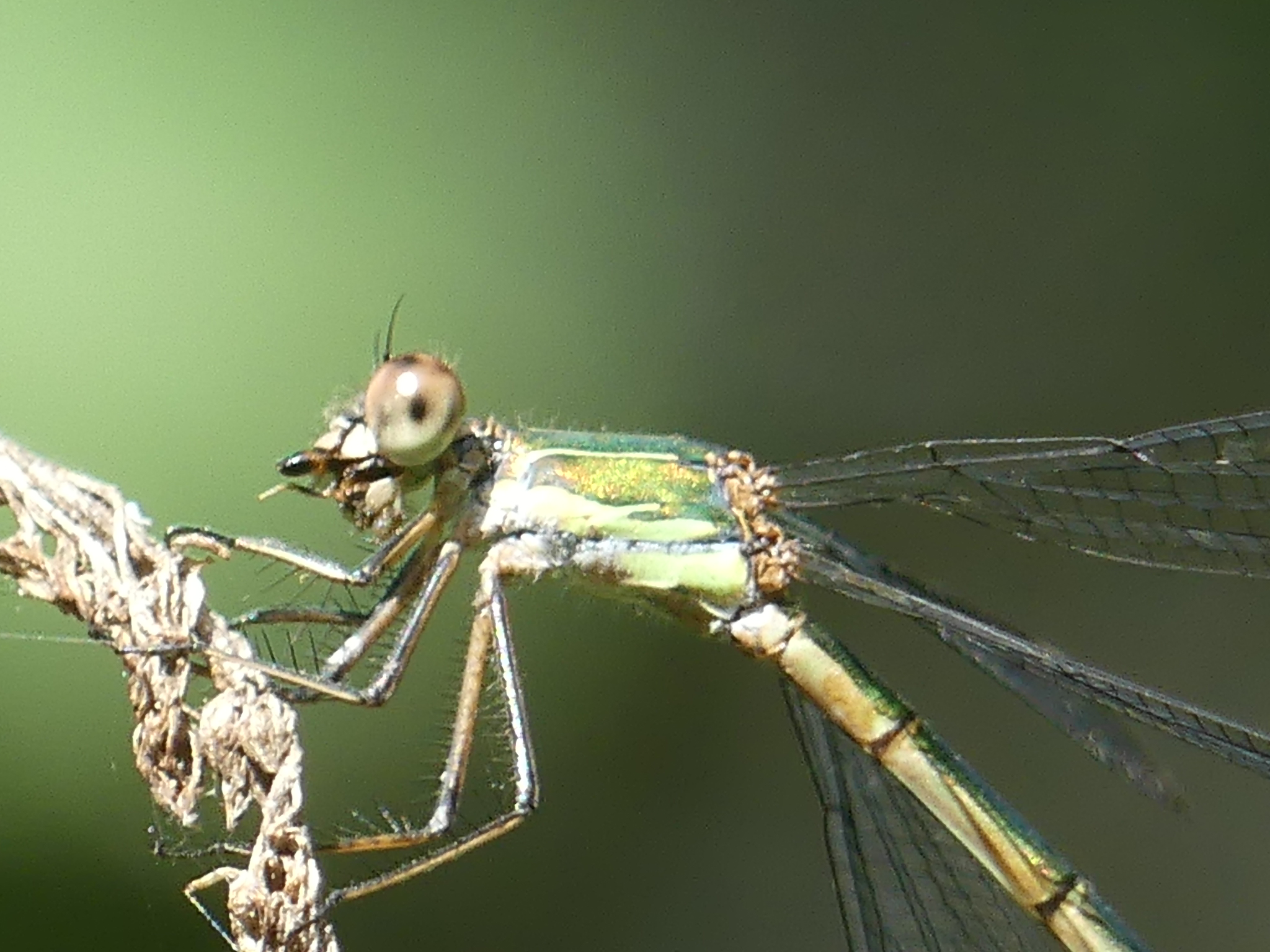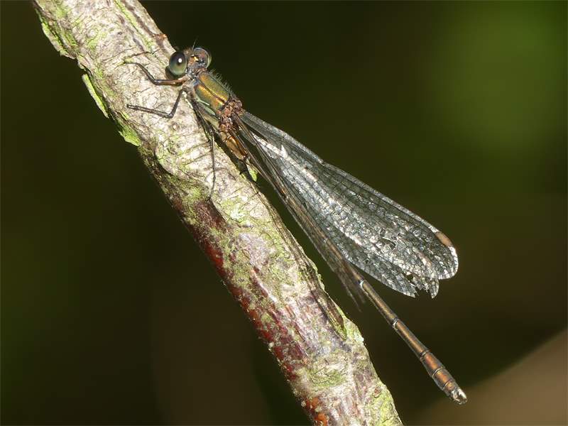 Weidenjungfer am 07.09.2016 im Tharandter Wald am Triebischsee. Die arttypische grüne Spitze der Thoraxzeichnung wollte ich mit dieser Aufnahme zeigen.