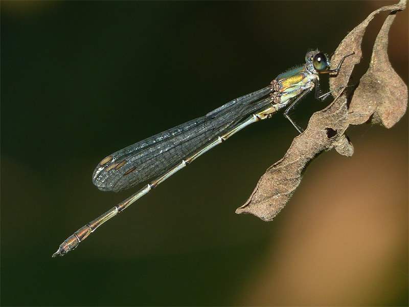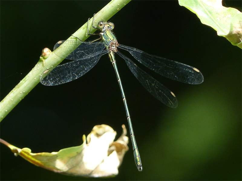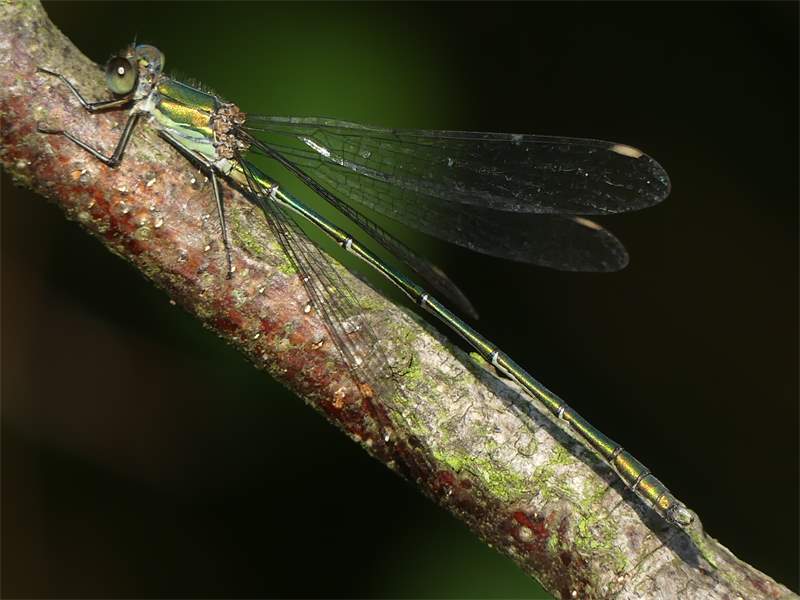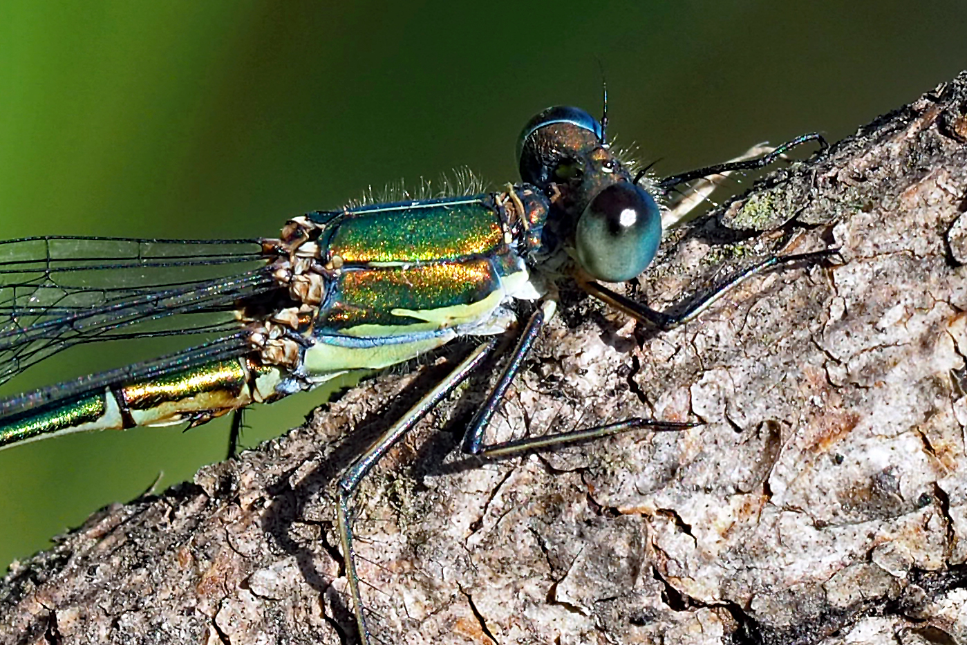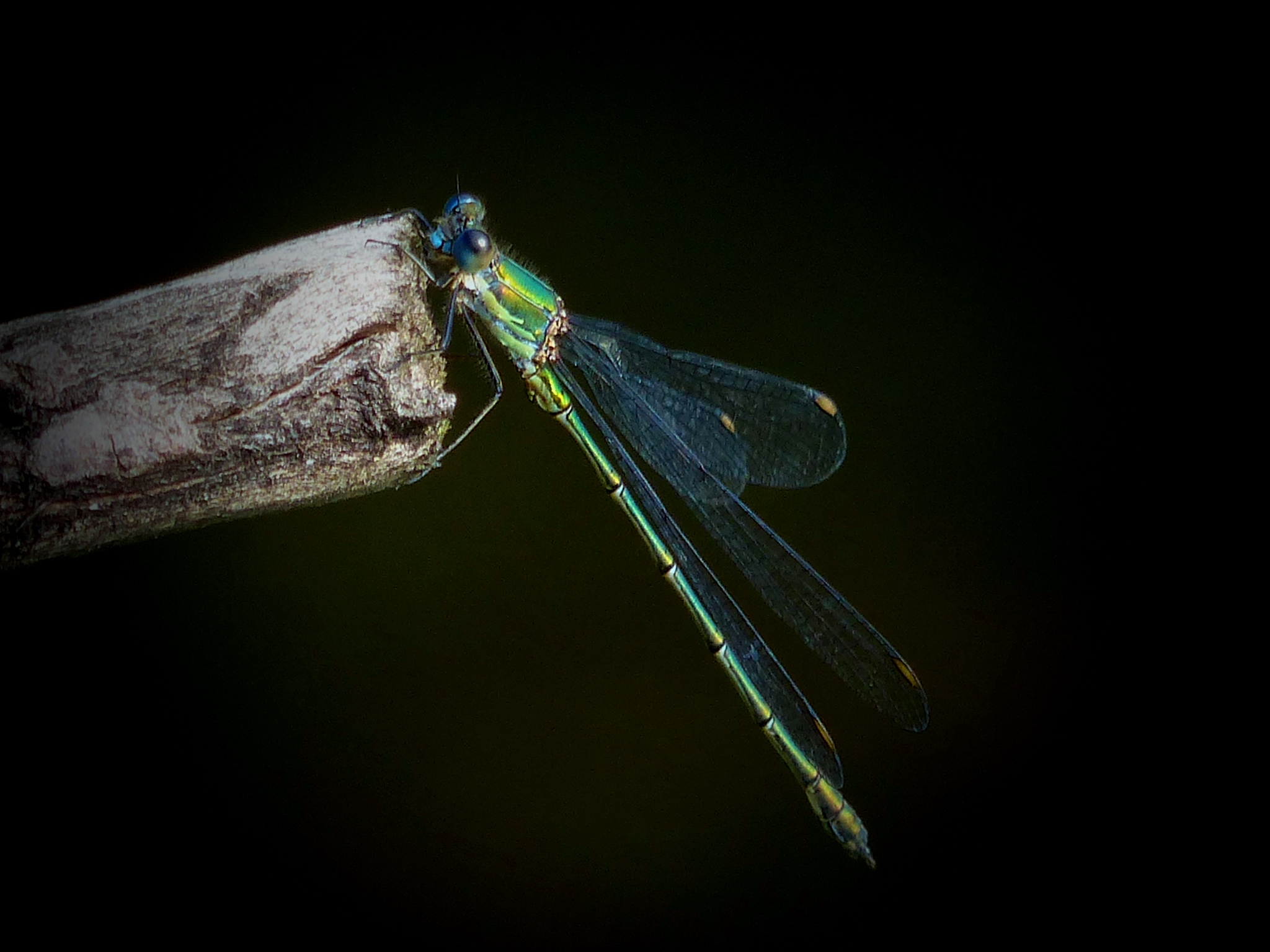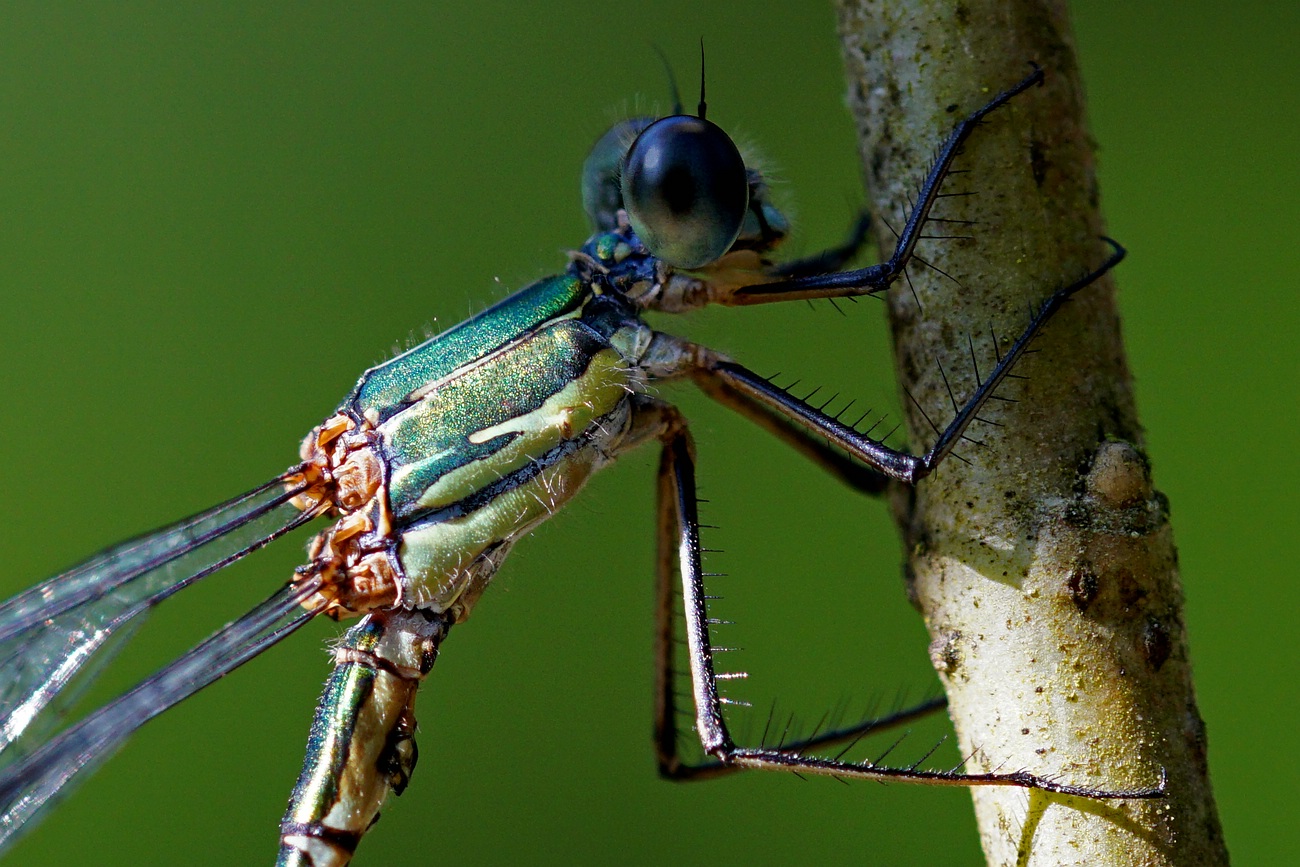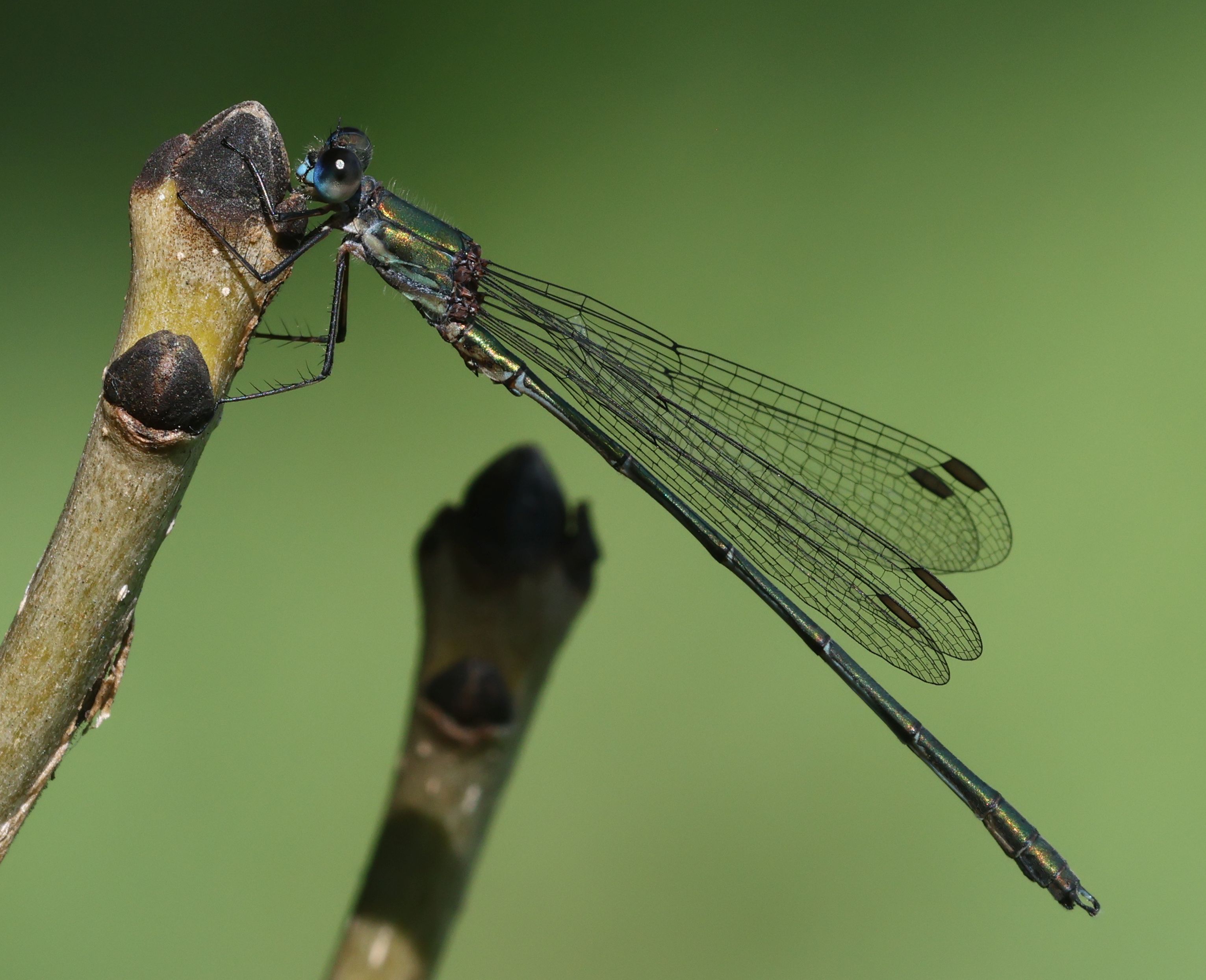 Weidenjungfer am 07.09.2016 im Tharandter Wald am Triebischsee. Die arttypische grüne Spitze der Thoraxzeichnung wollte ich mit dieser Aufnahme zeigen.