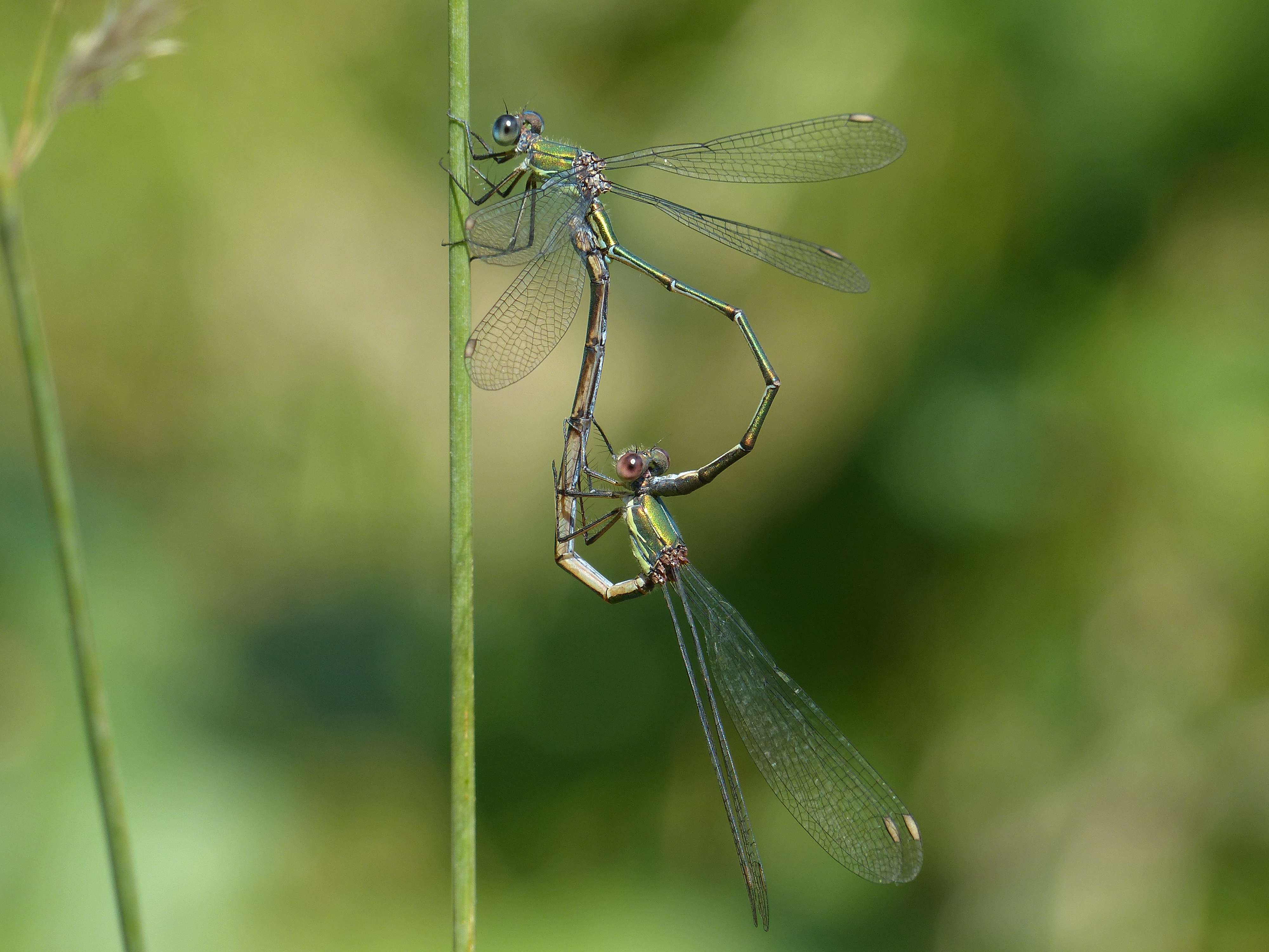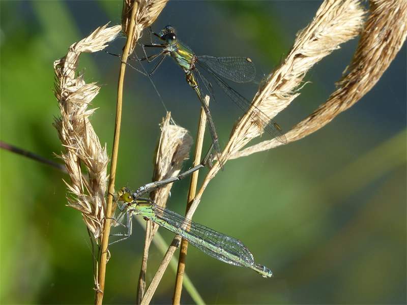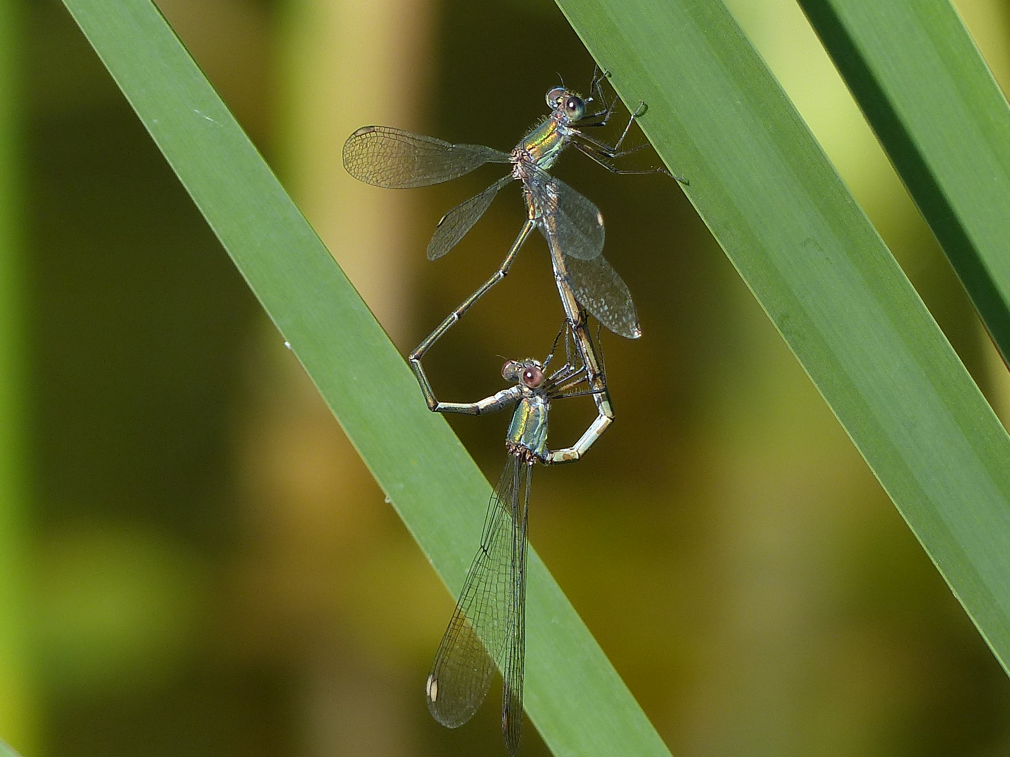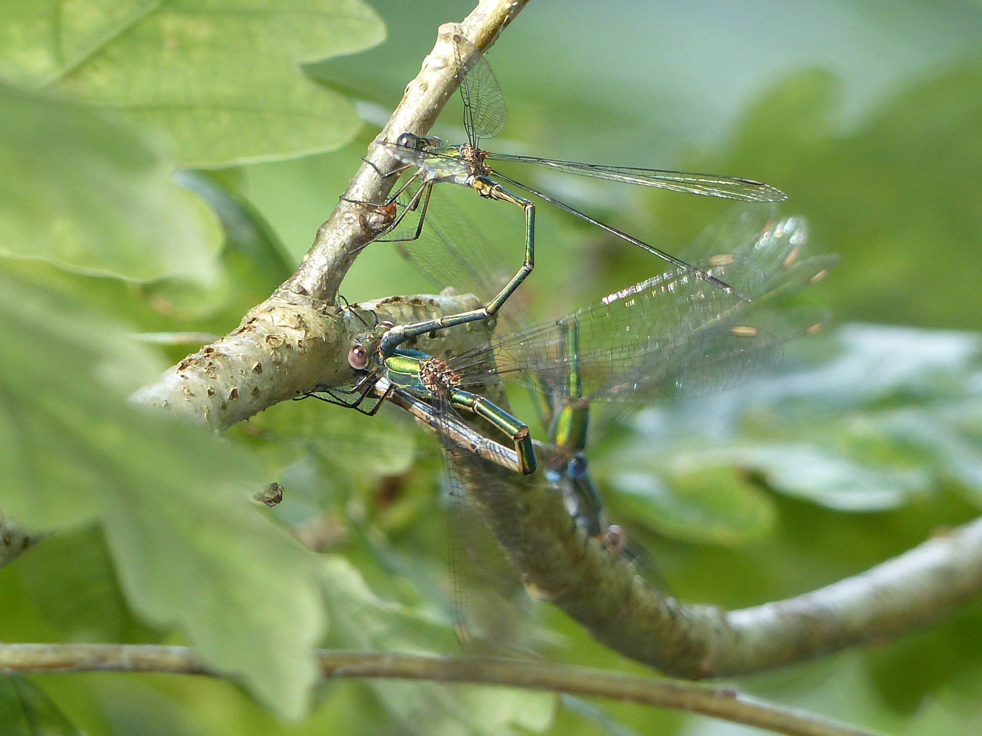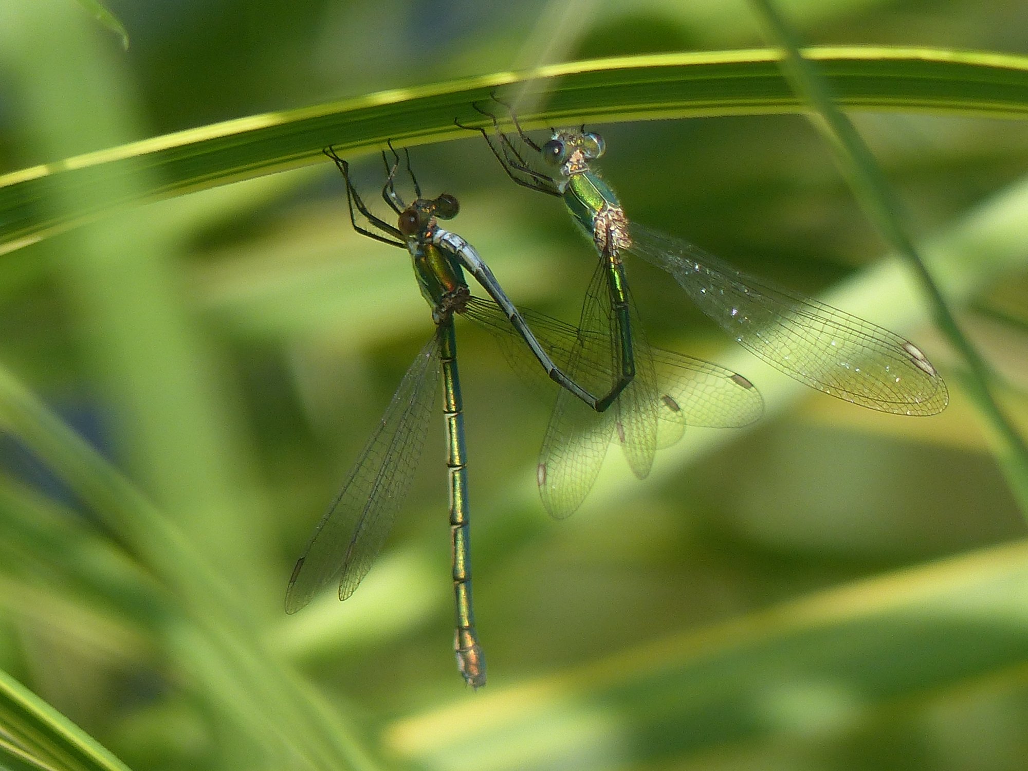 Radpaar von L. viridis in der Ufervegetation des kleinen Nebenteiches des Kleinen Filzteiches bei Hirschfeld OT Niedercrinitz. August 2012