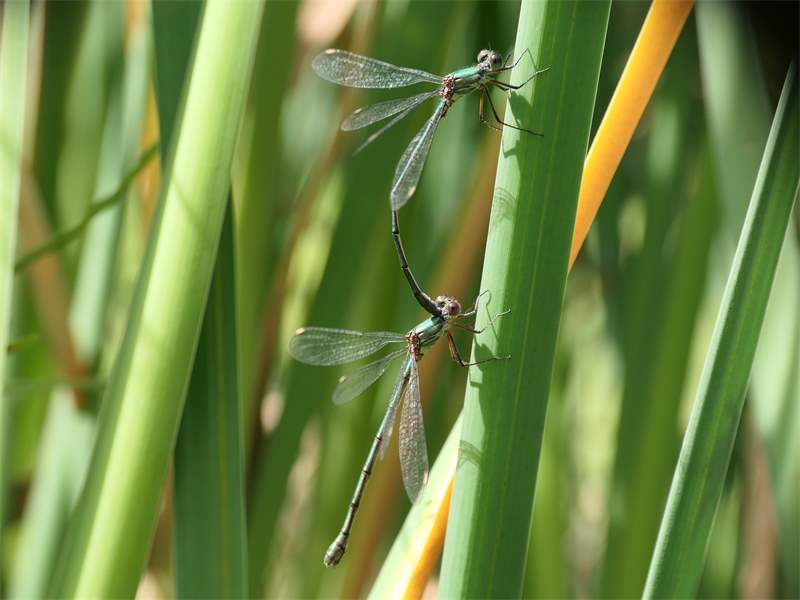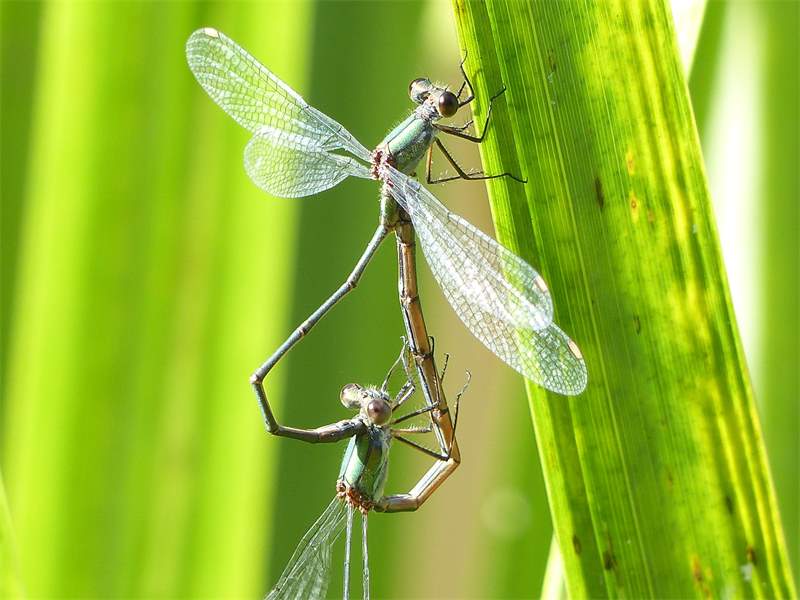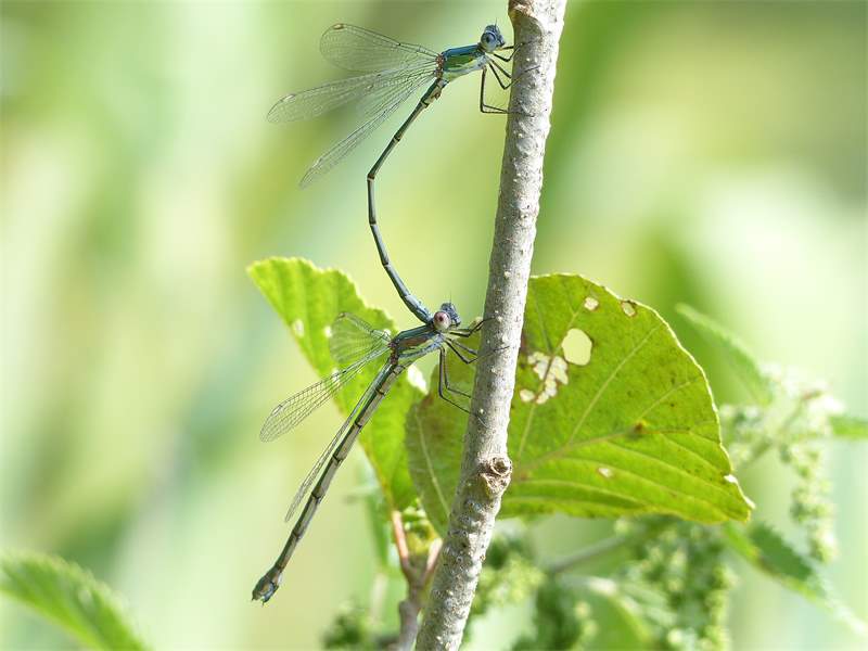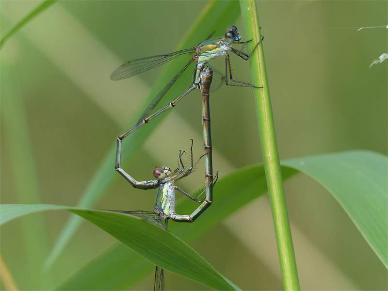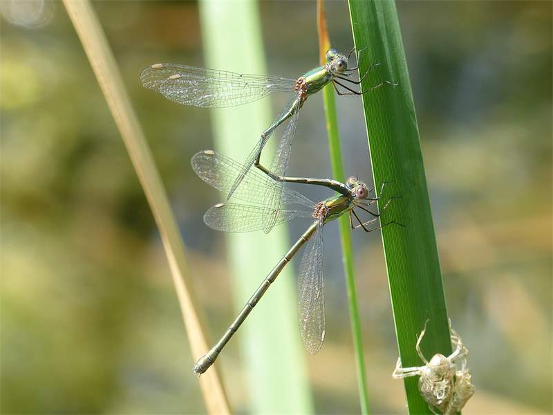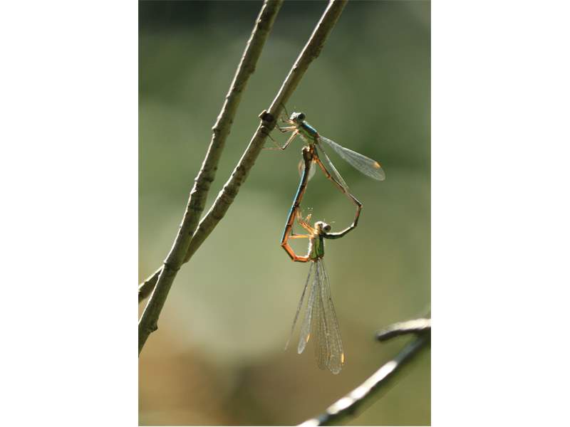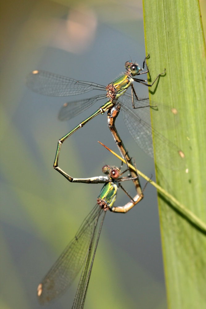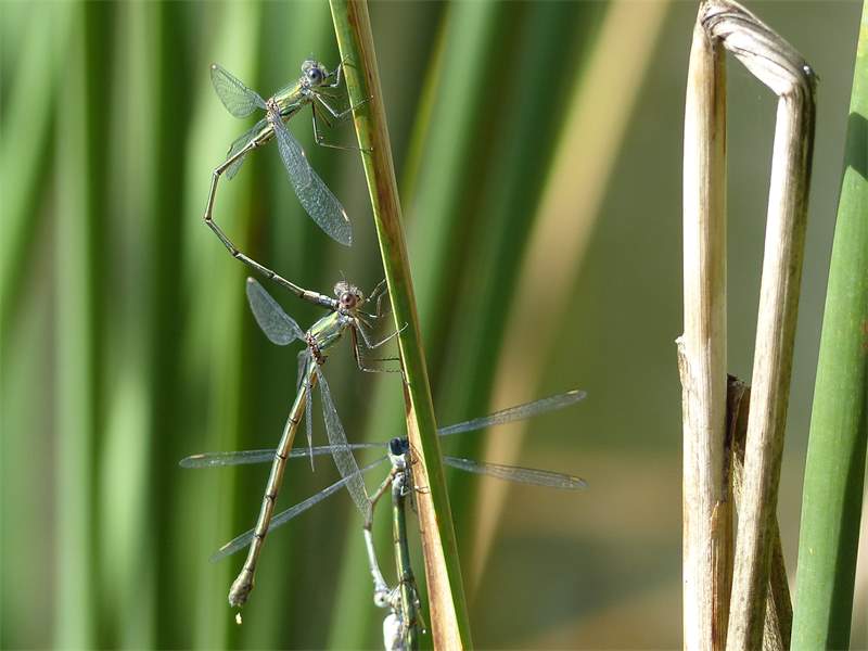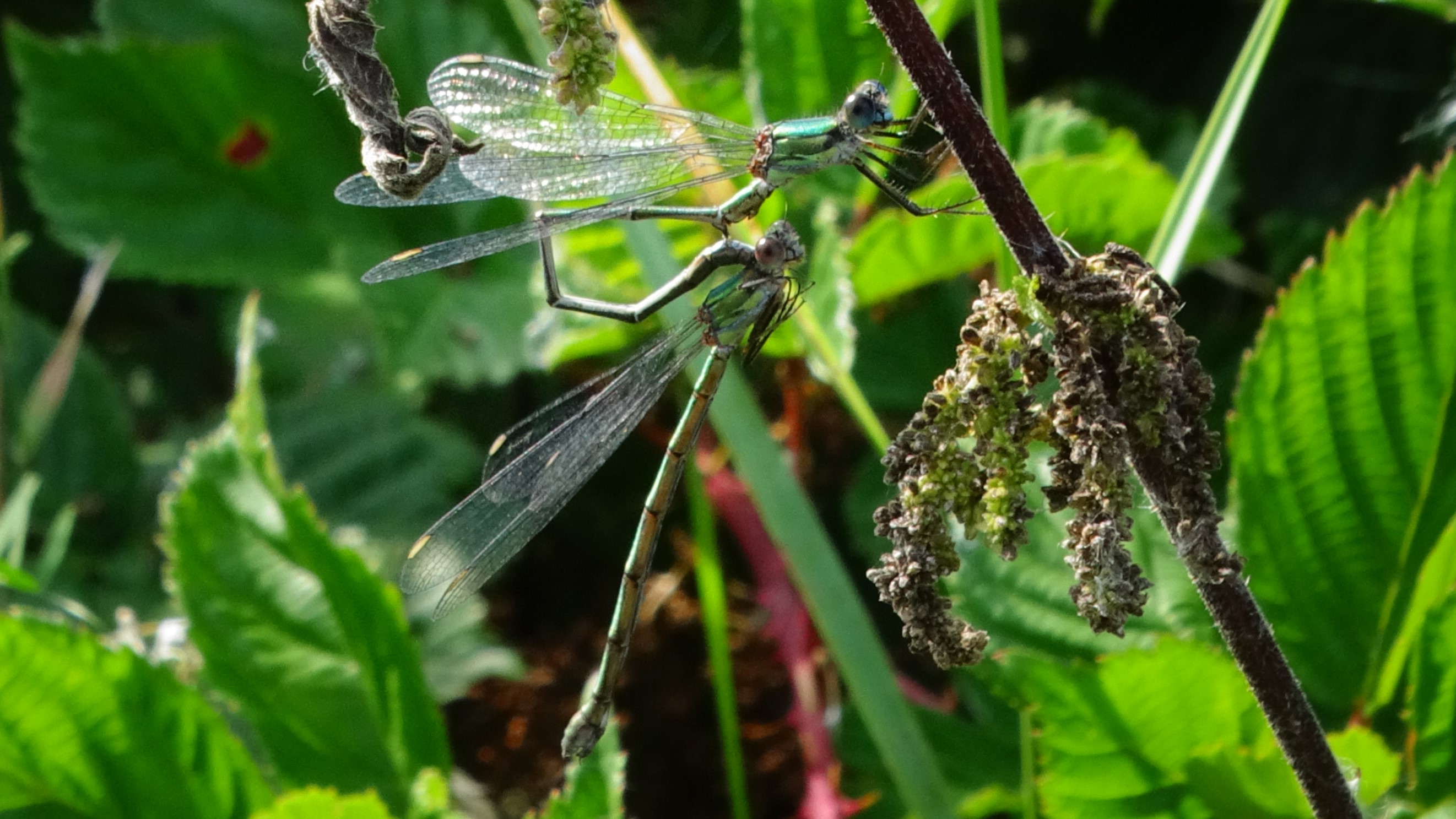 Radpaar von L. viridis in der Ufervegetation des kleinen Nebenteiches des Kleinen Filzteiches bei Hirschfeld OT Niedercrinitz. August 2012