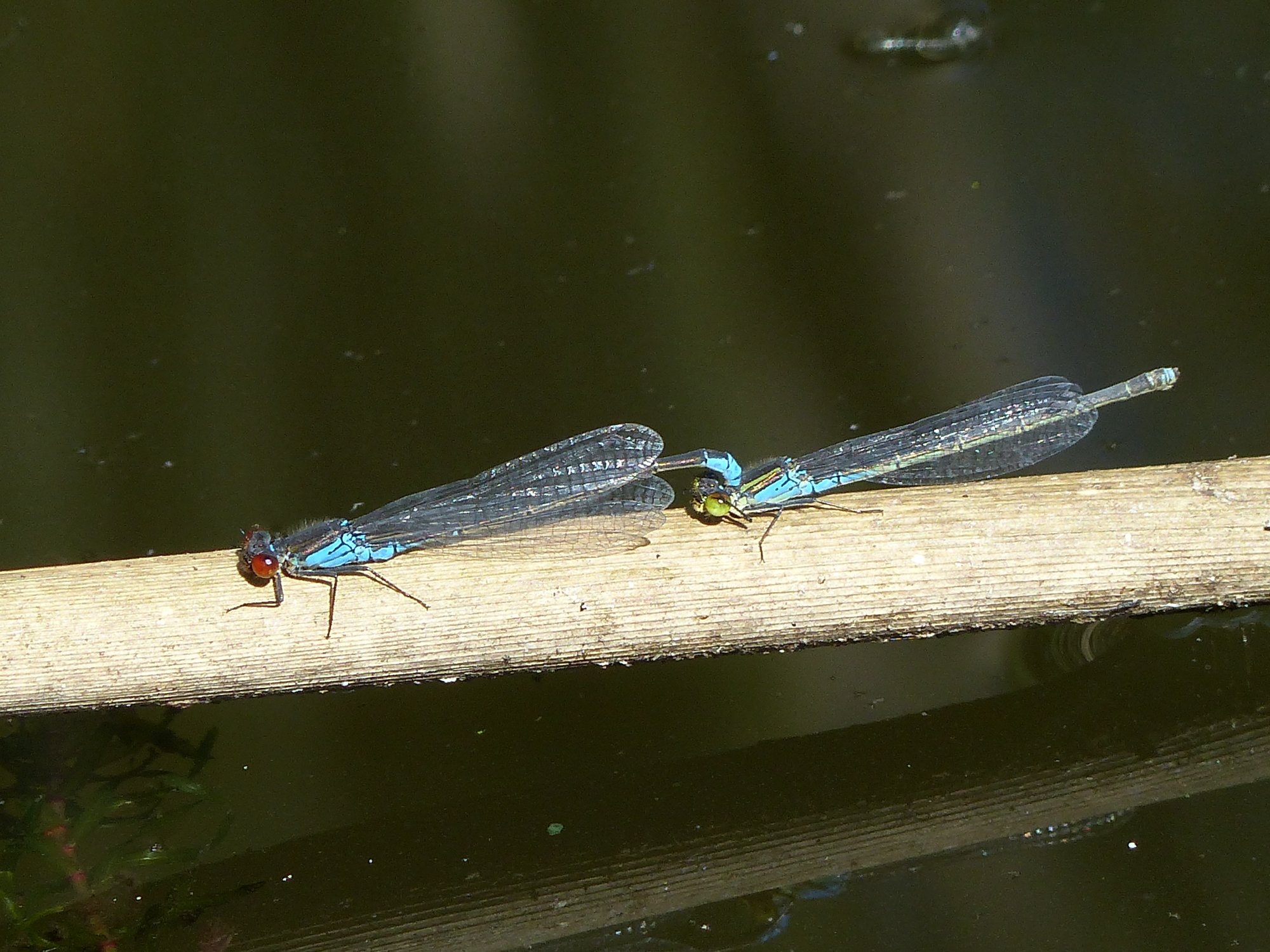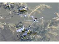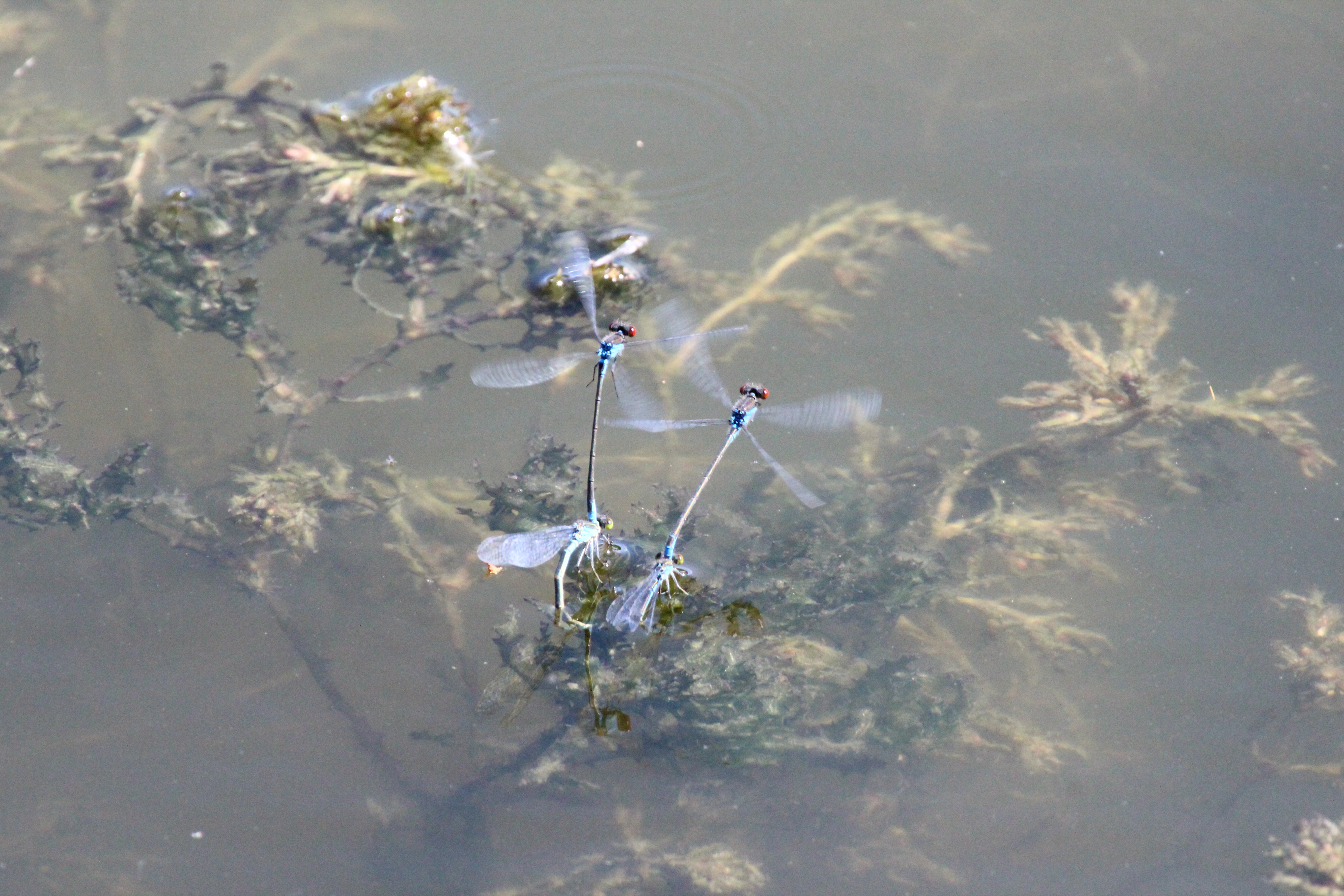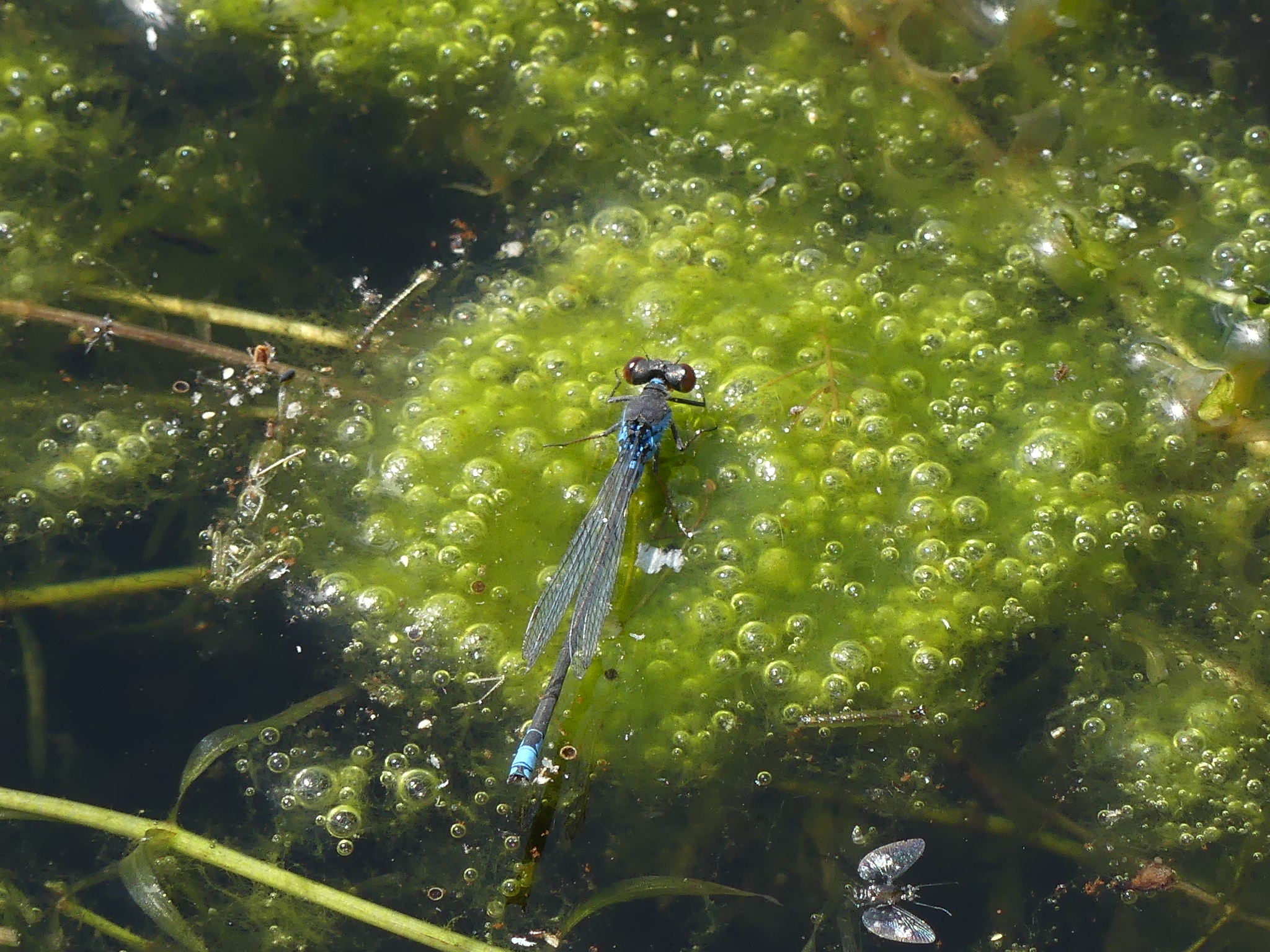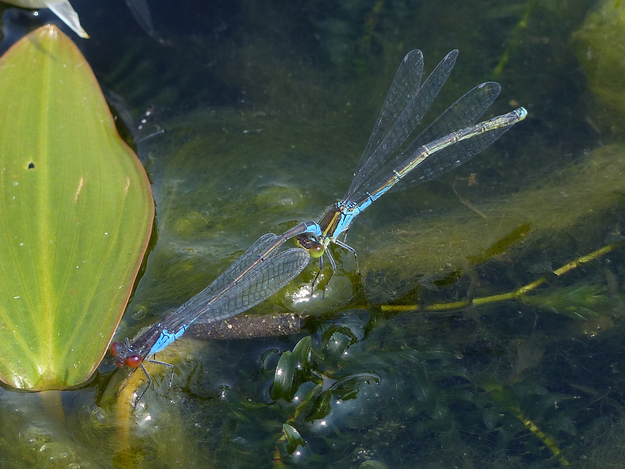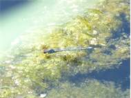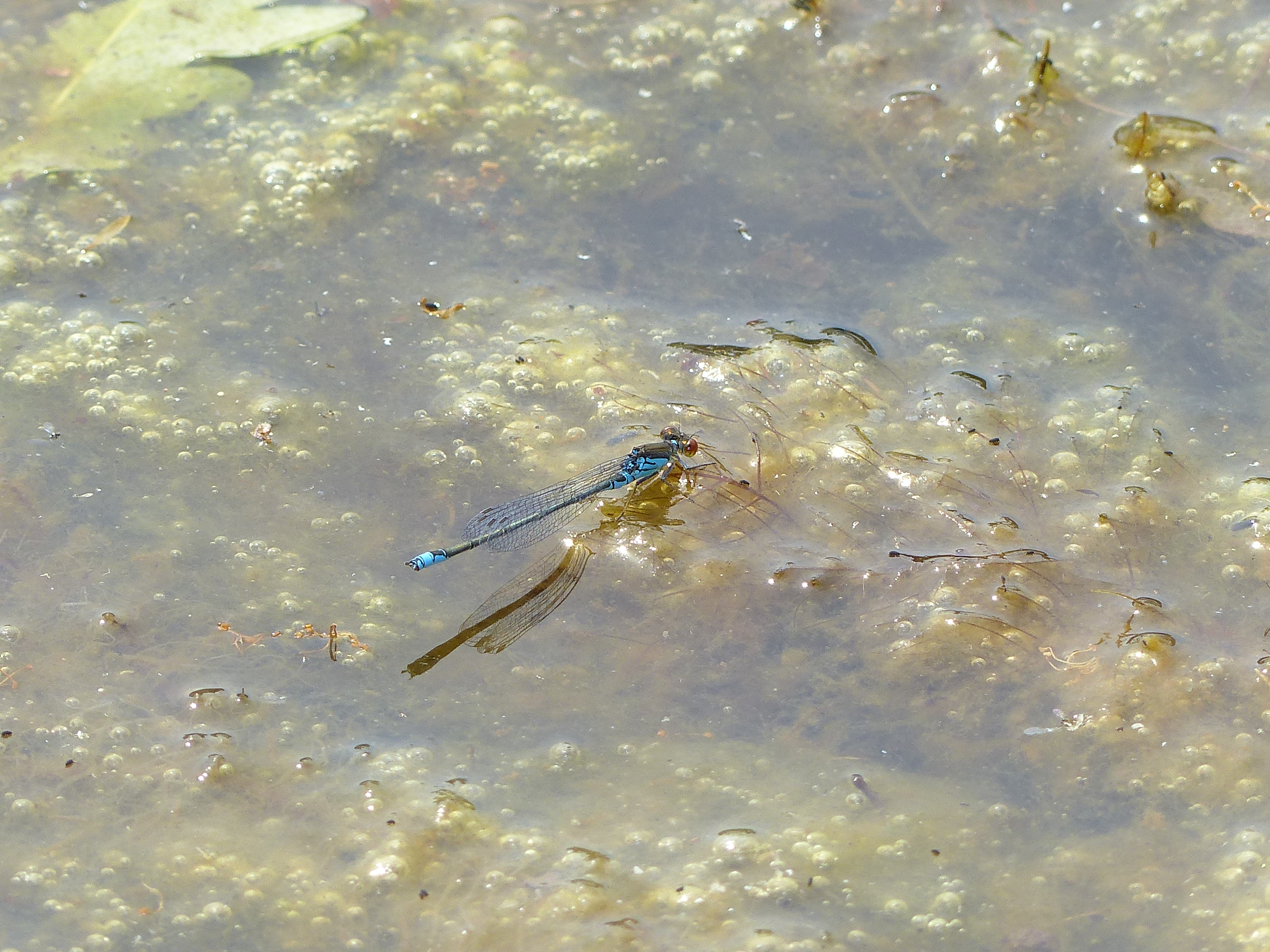 Kleiner Ausschnitt einer Massen-Eiablage des Kleinen Granatauge am Libellenteich an der Halde Berzdorf im August 2016, dazwischen einzelne Paare des Großen Granatauge