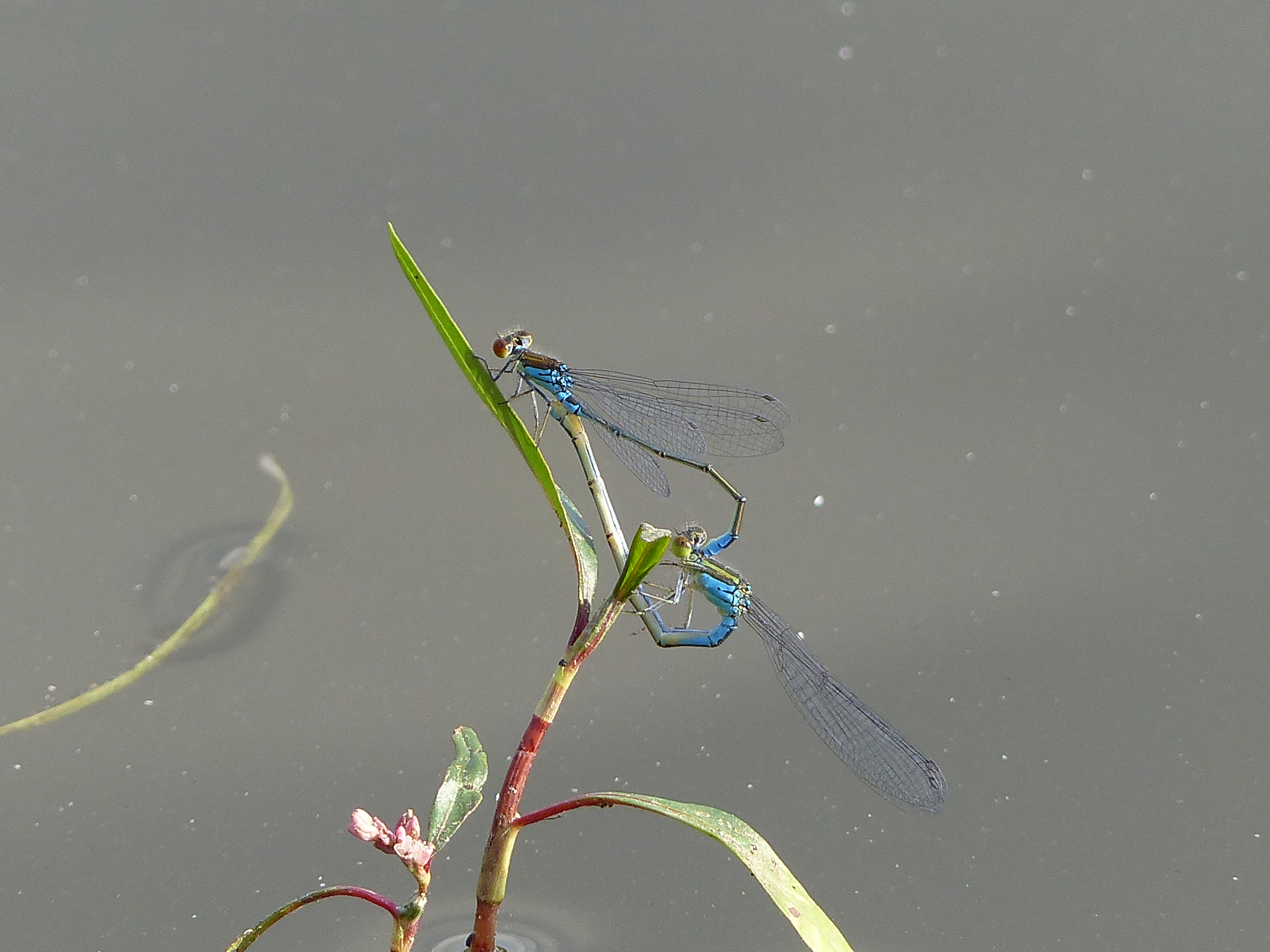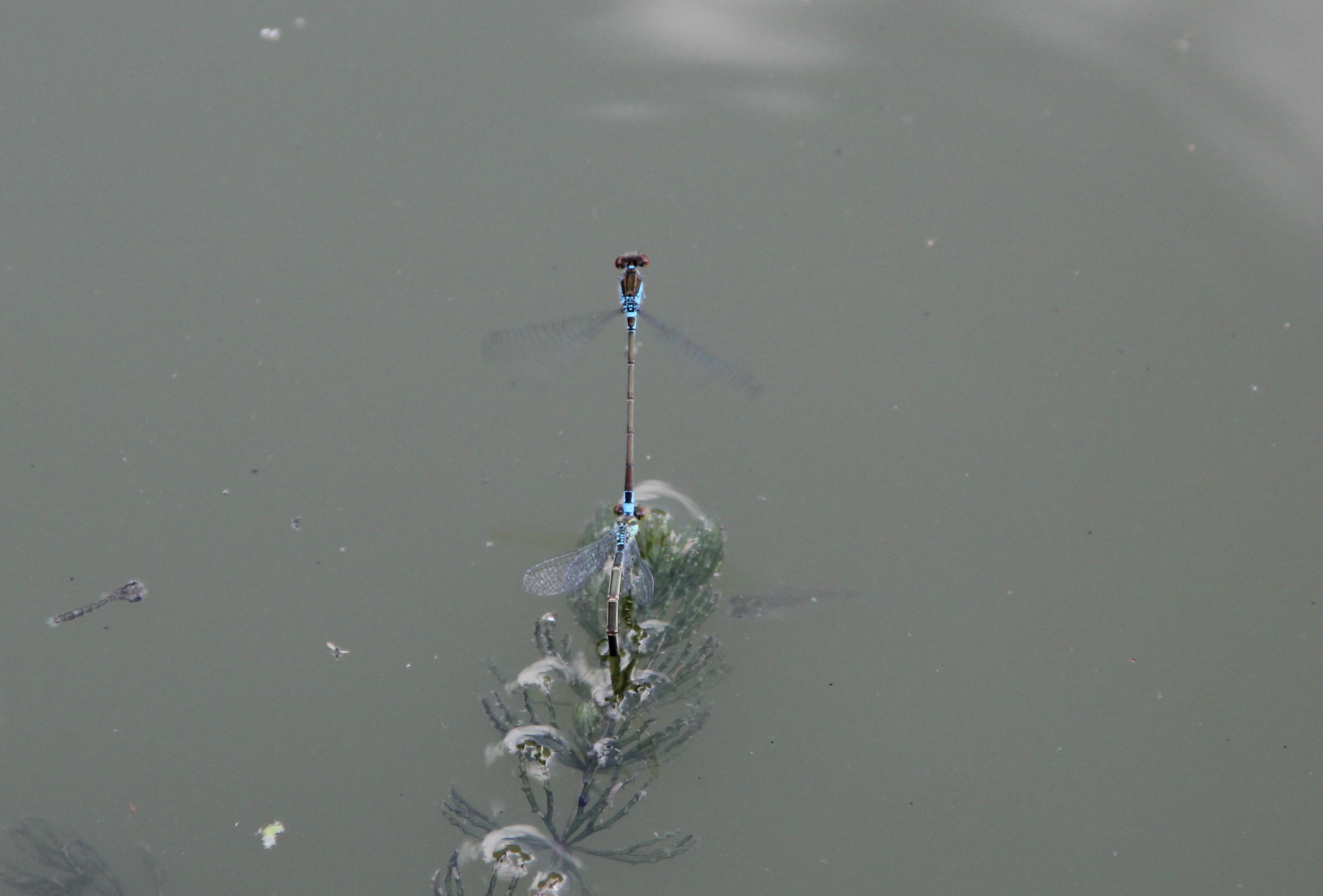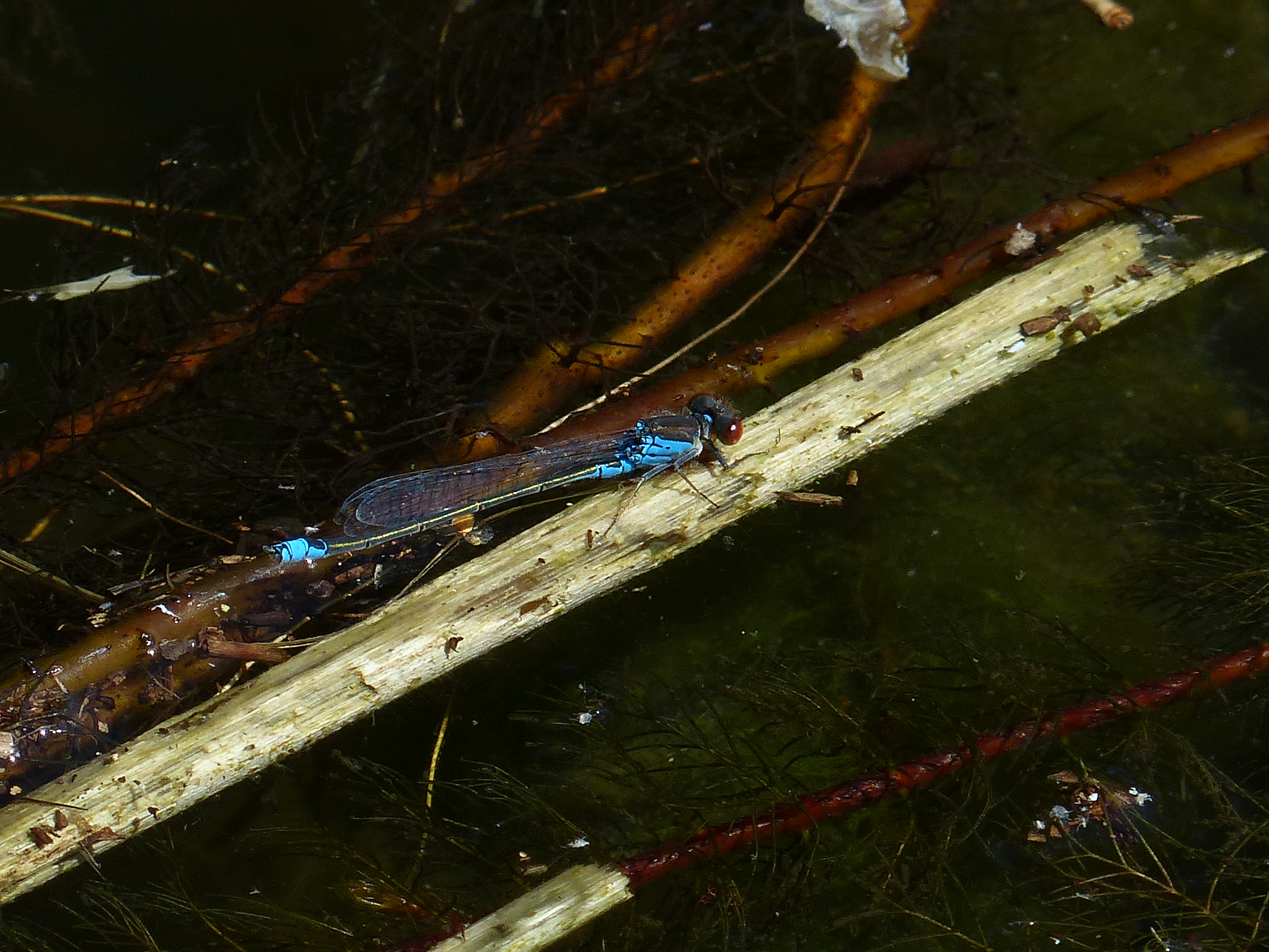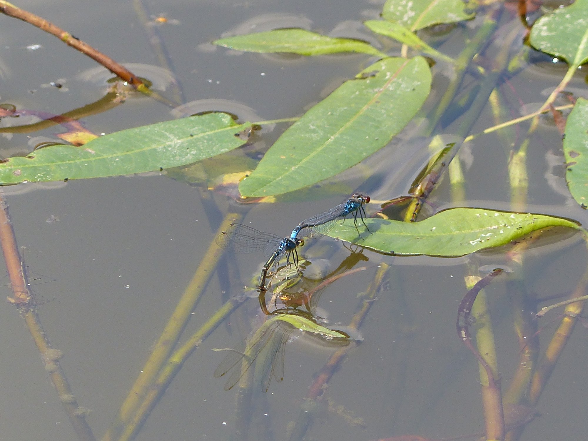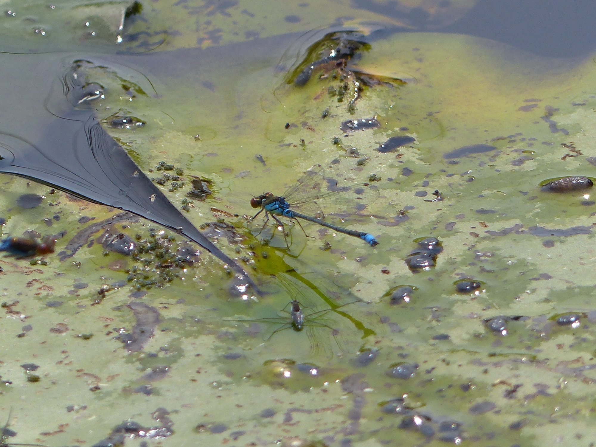 Kleiner Ausschnitt einer Massen-Eiablage des Kleinen Granatauge am Libellenteich an der Halde Berzdorf im August 2016, dazwischen einzelne Paare des Großen Granatauge