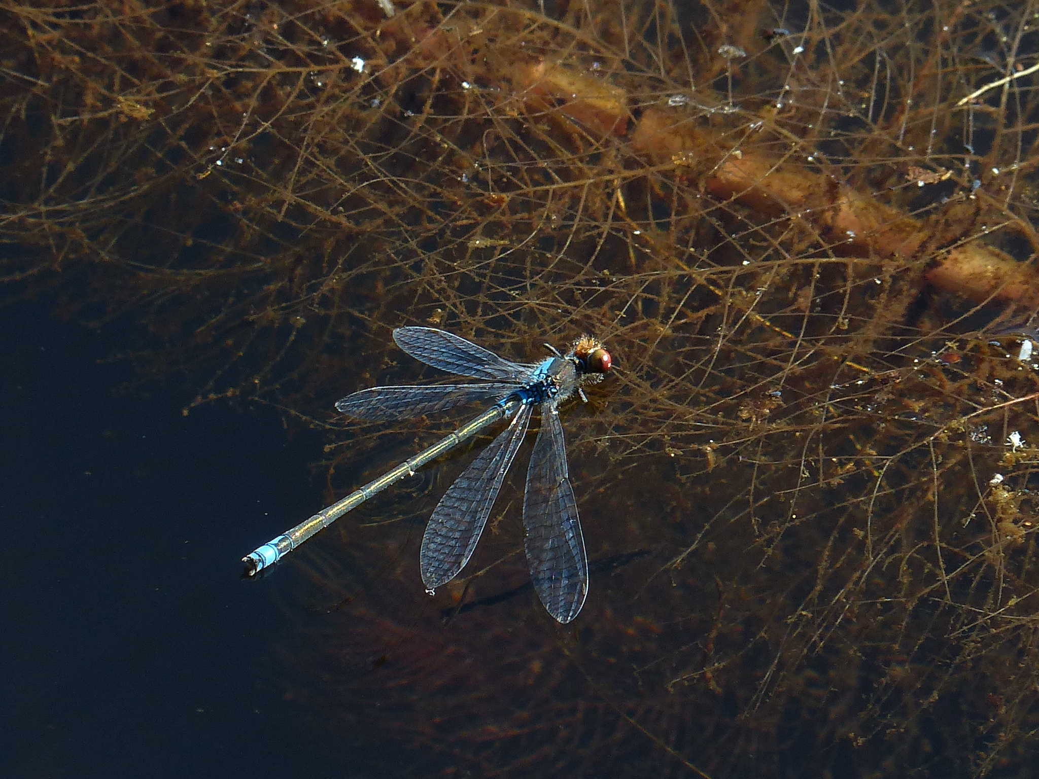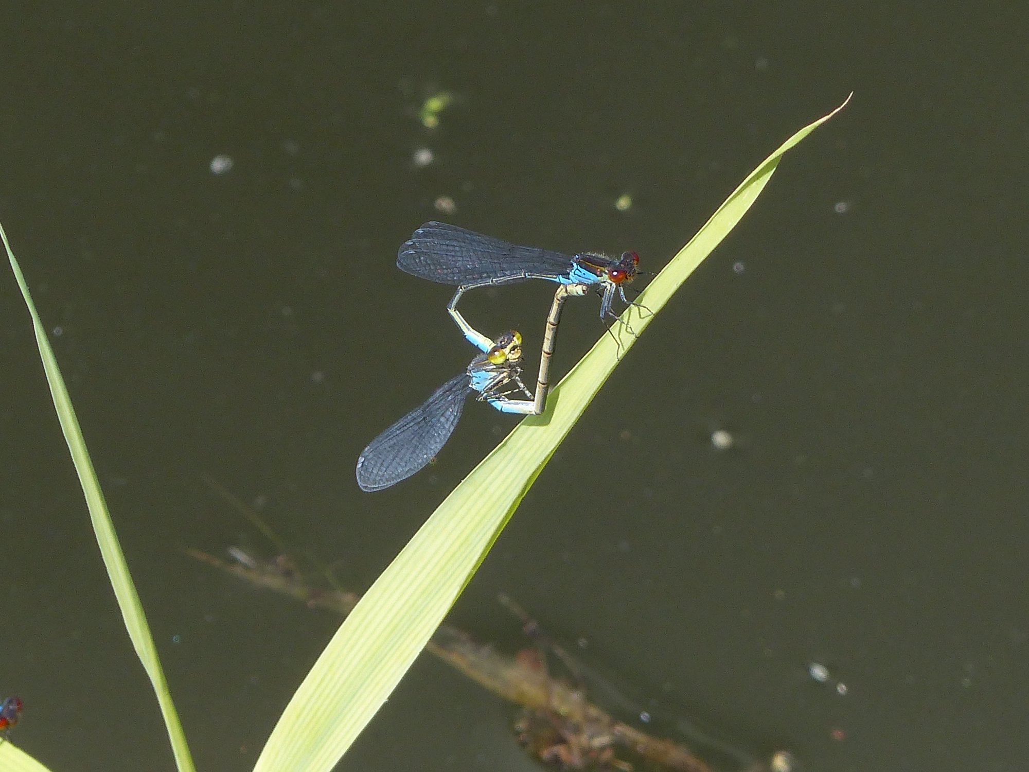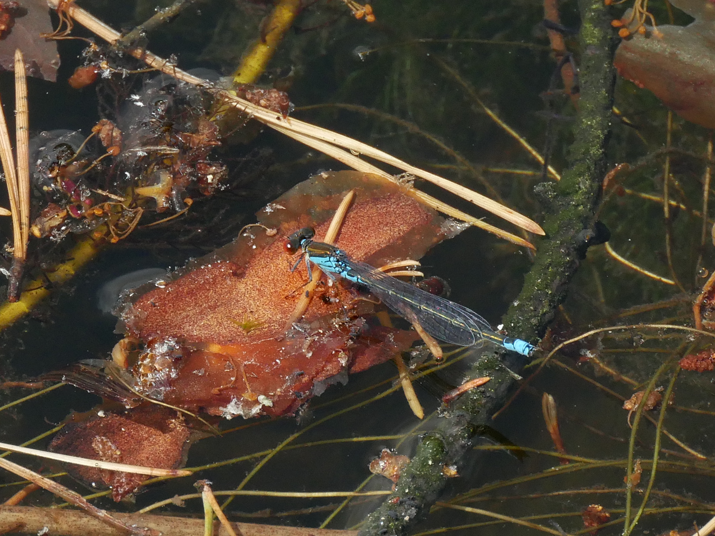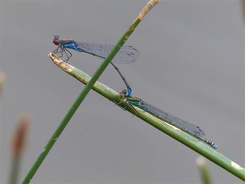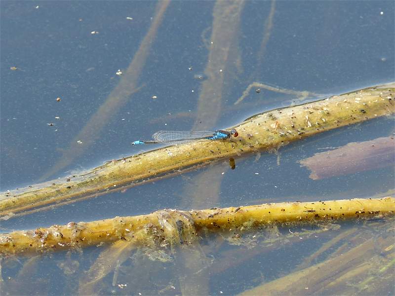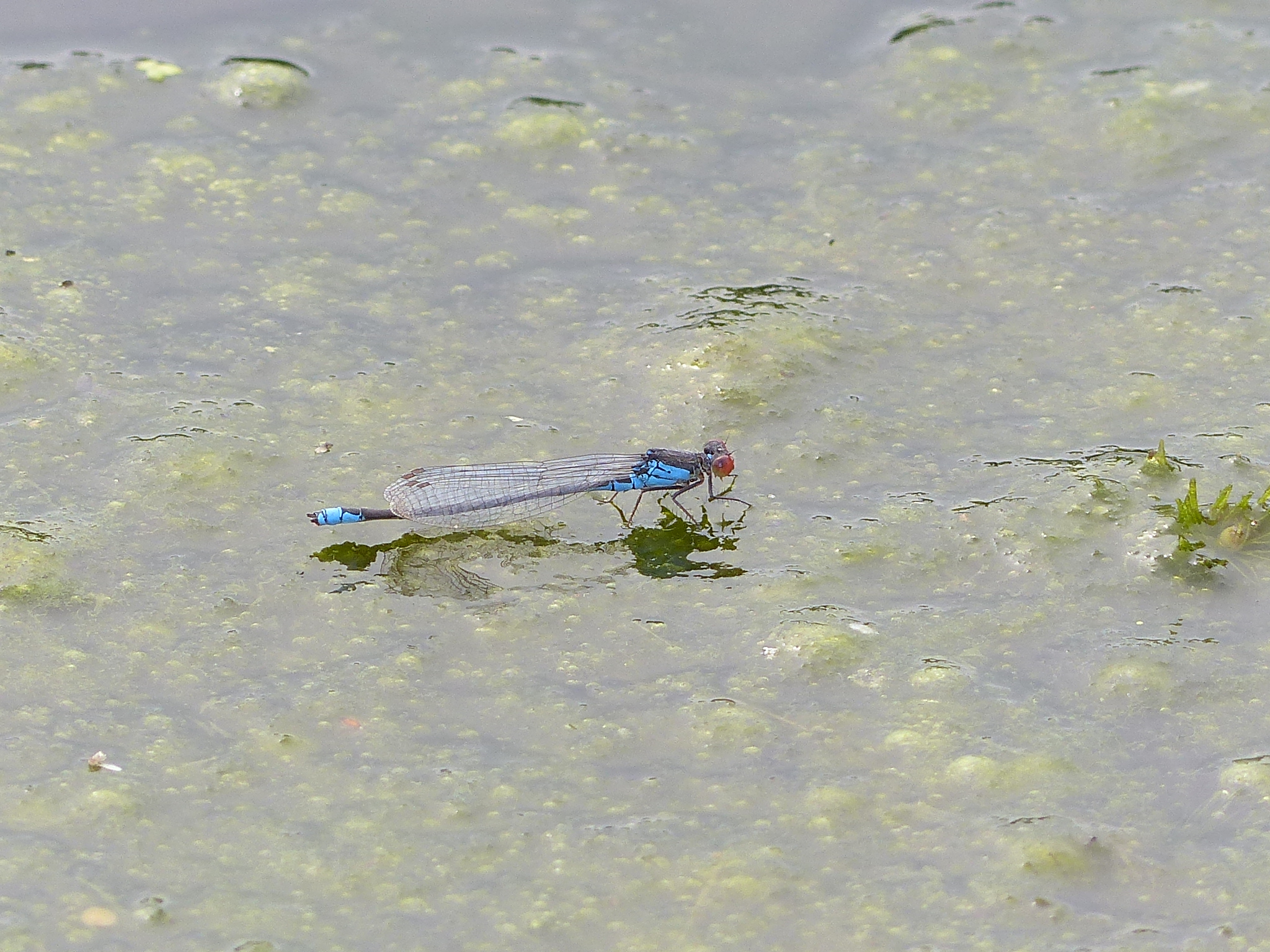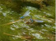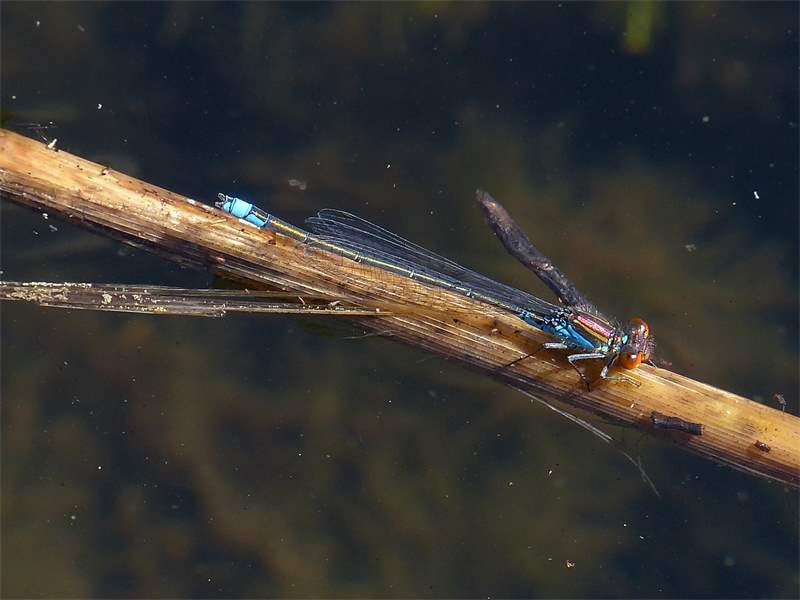 Kleiner Ausschnitt einer Massen-Eiablage des Kleinen Granatauge am Libellenteich an der Halde Berzdorf im August 2016, dazwischen einzelne Paare des Großen Granatauge