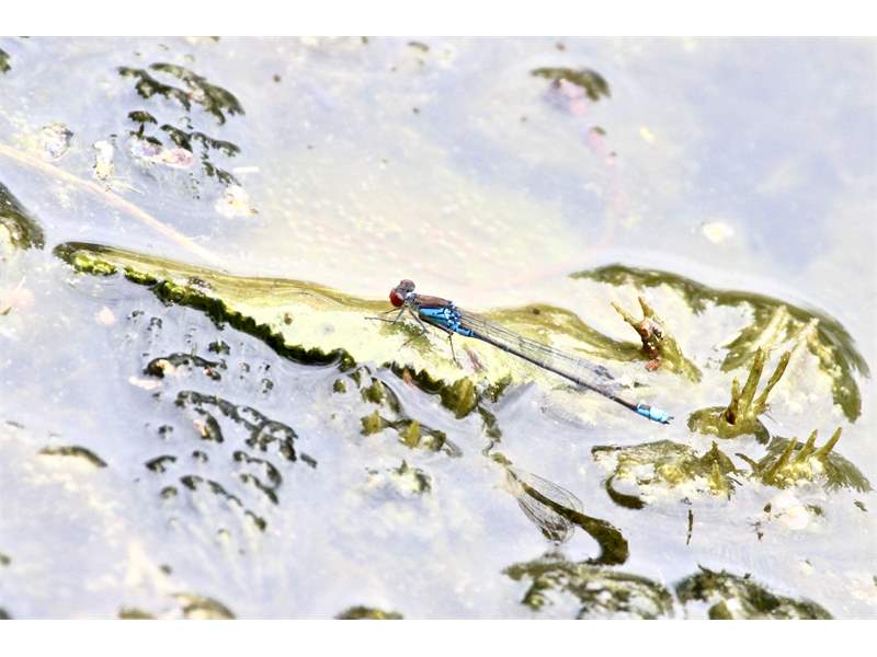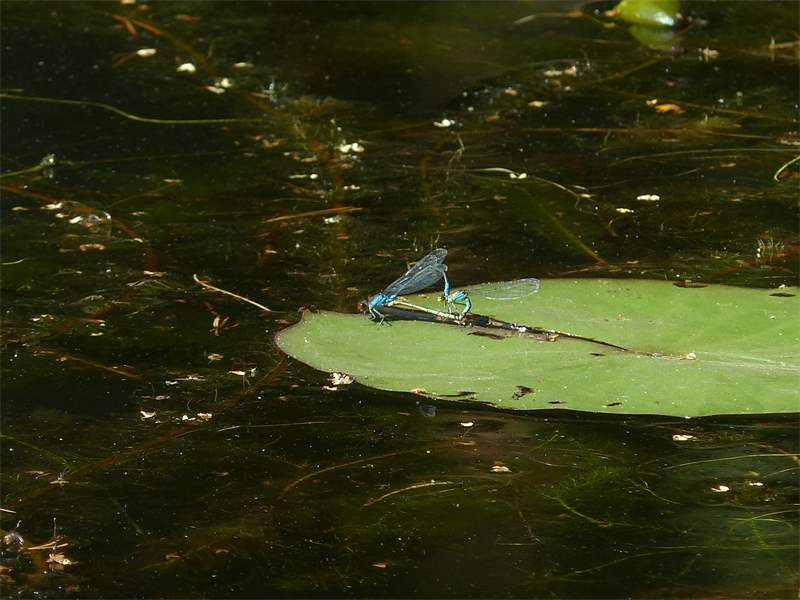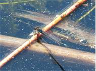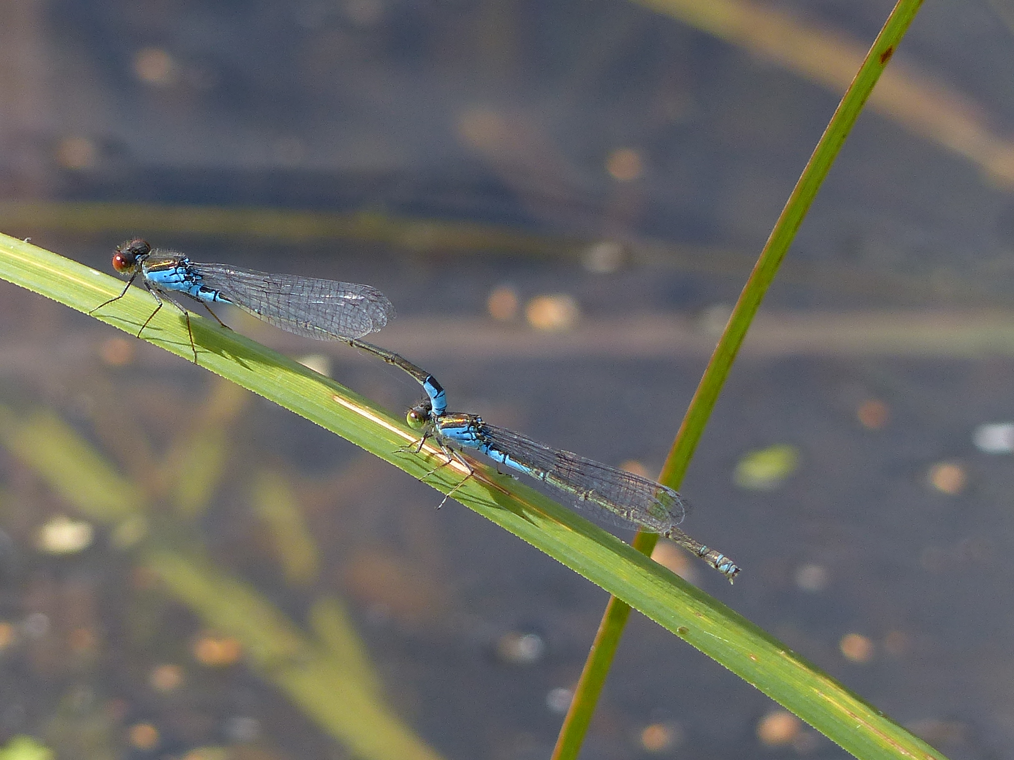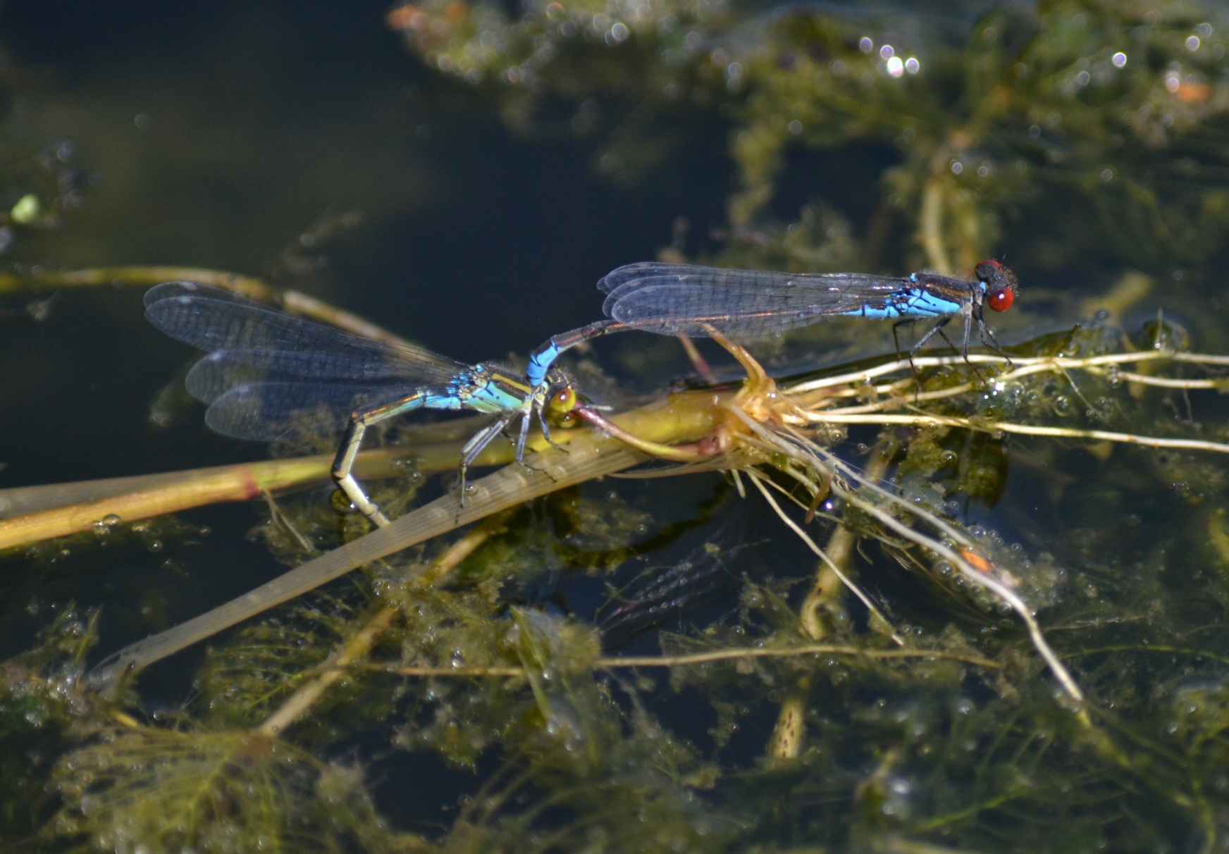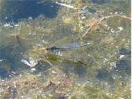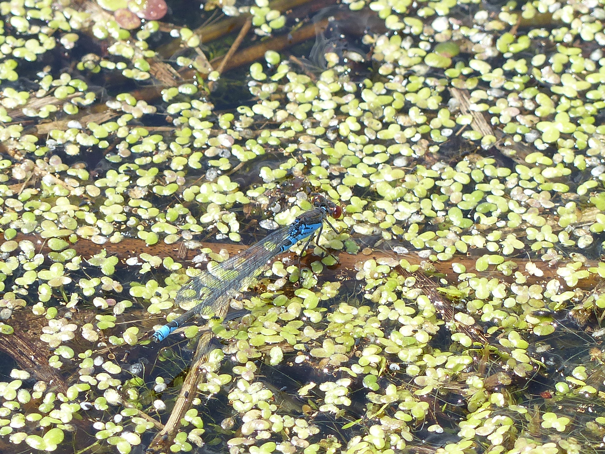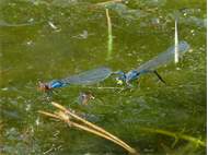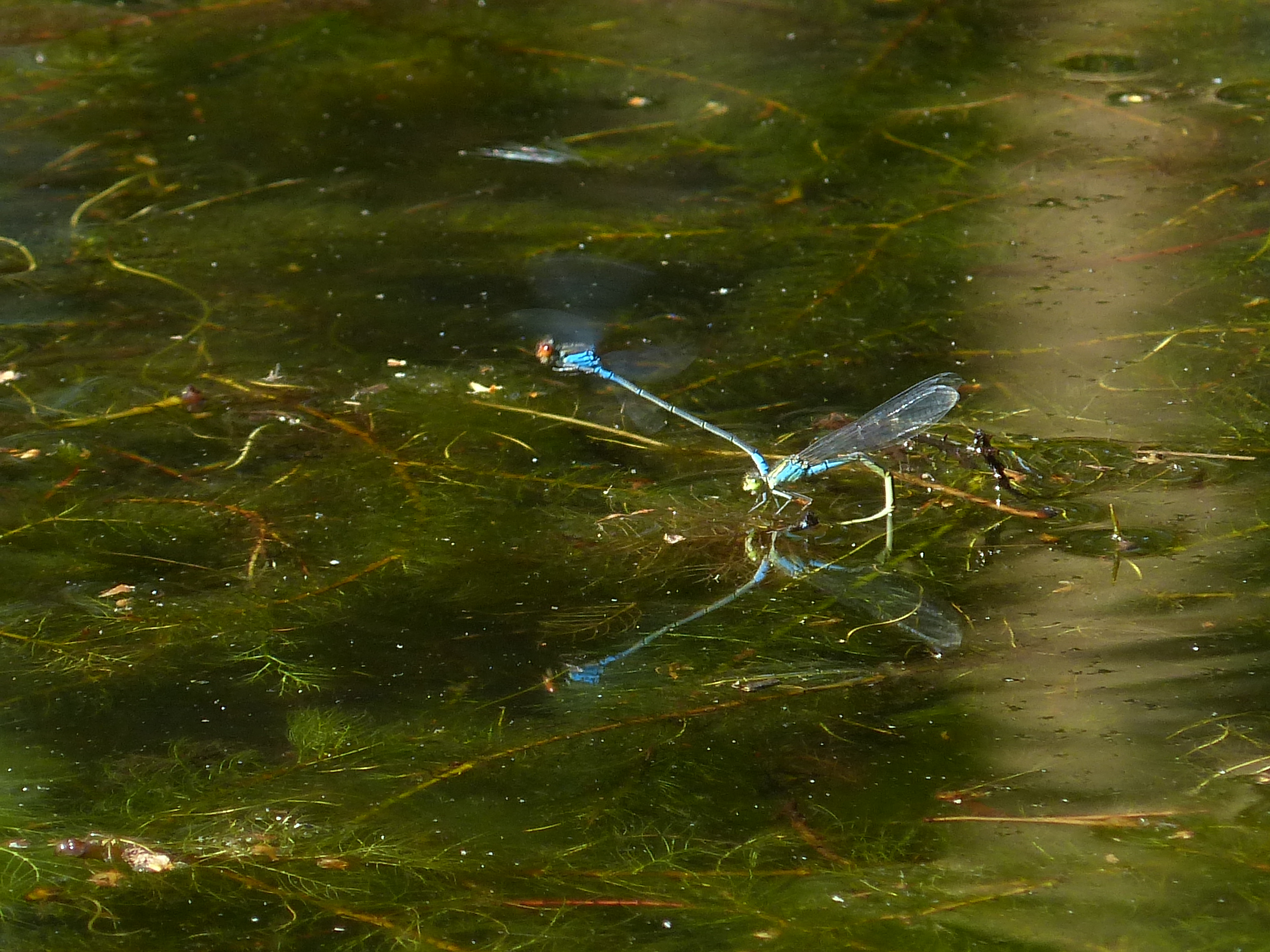 Kleiner Ausschnitt einer Massen-Eiablage des Kleinen Granatauge am Libellenteich an der Halde Berzdorf im August 2016, dazwischen einzelne Paare des Großen Granatauge
