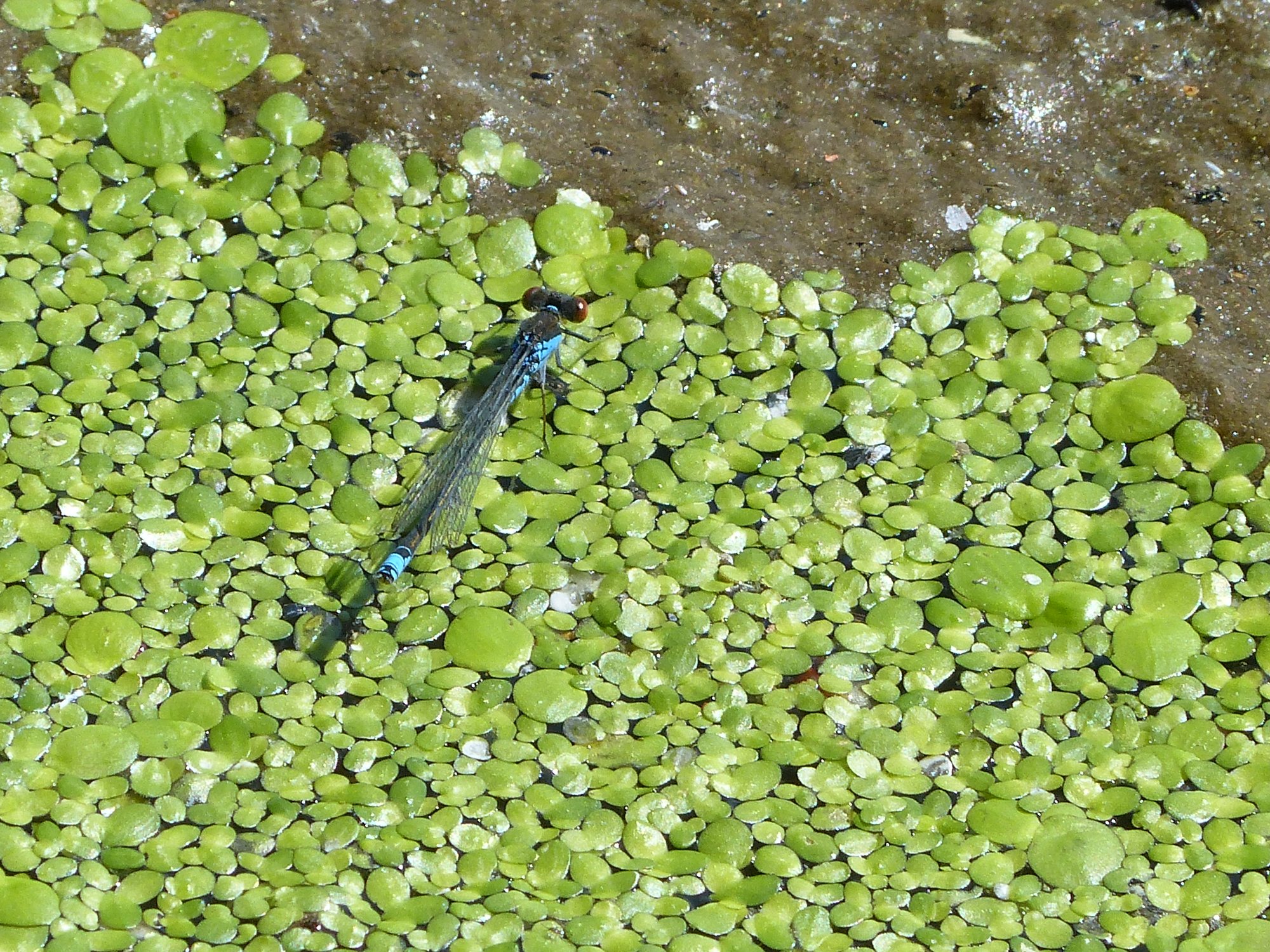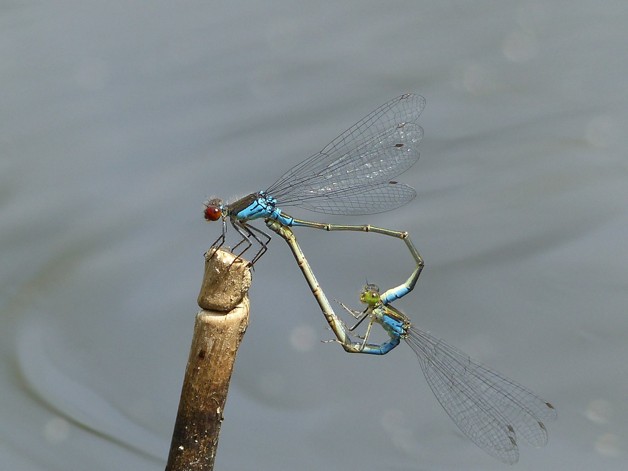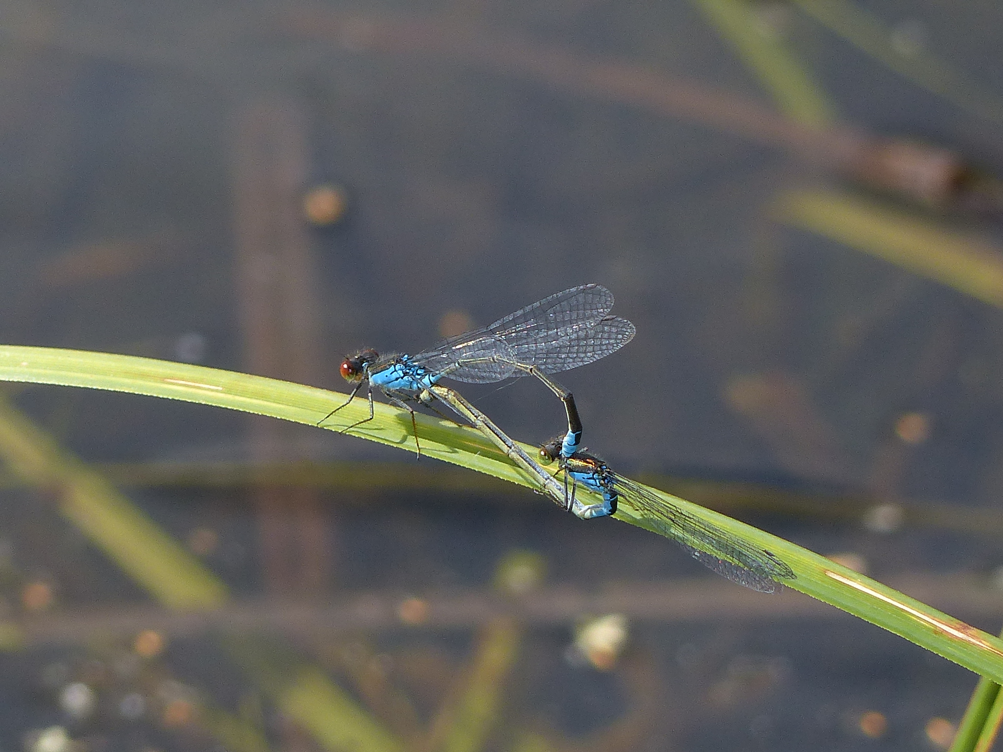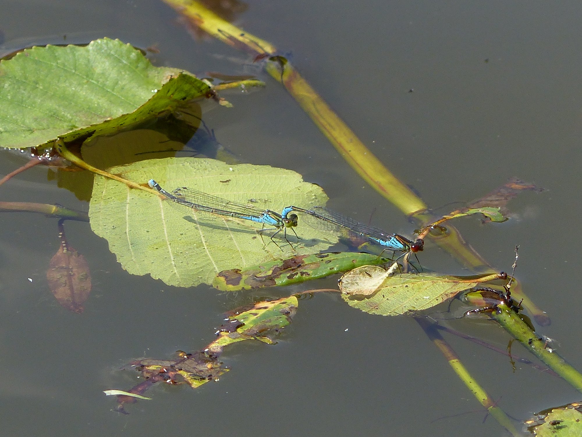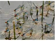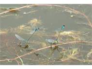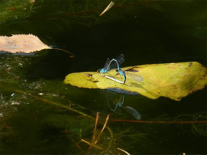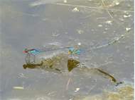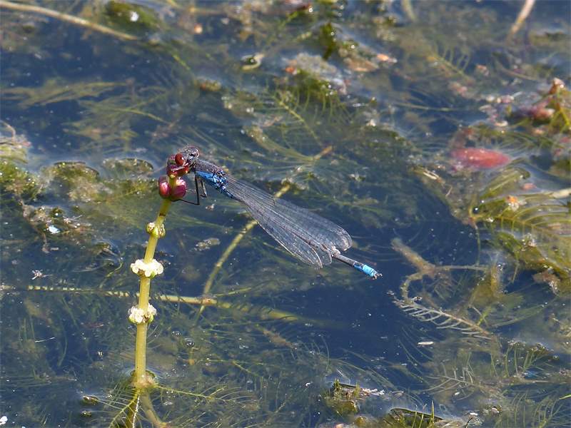 Kleiner Ausschnitt einer Massen-Eiablage des Kleinen Granatauge am Libellenteich an der Halde Berzdorf im August 2016, dazwischen einzelne Paare des Großen Granatauge