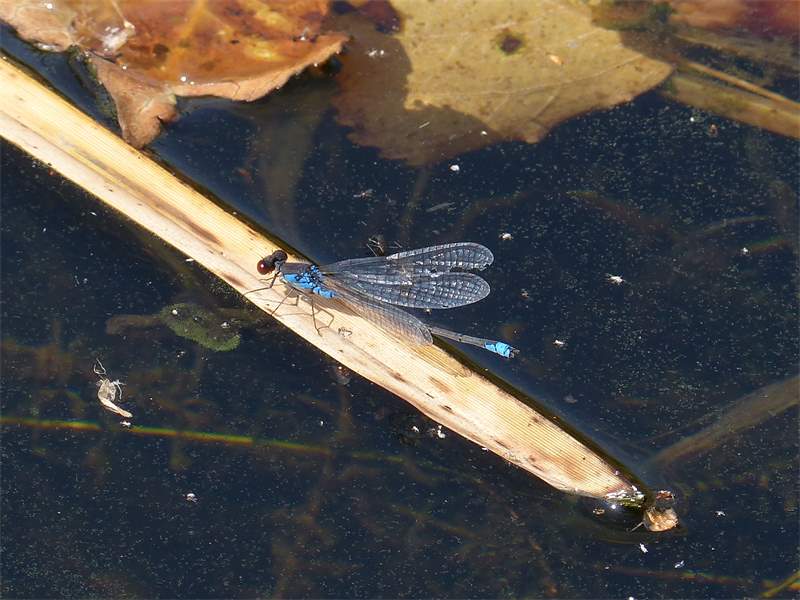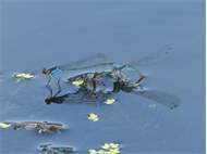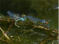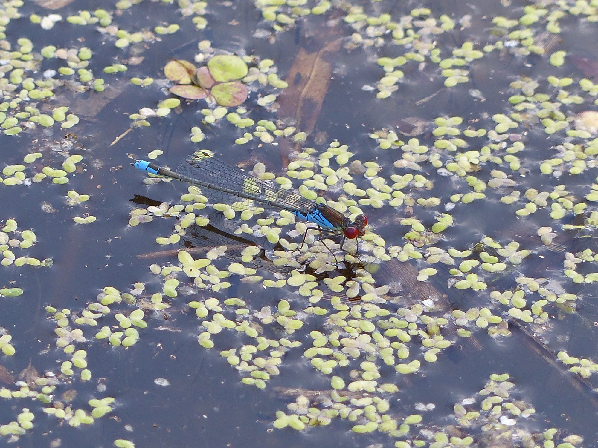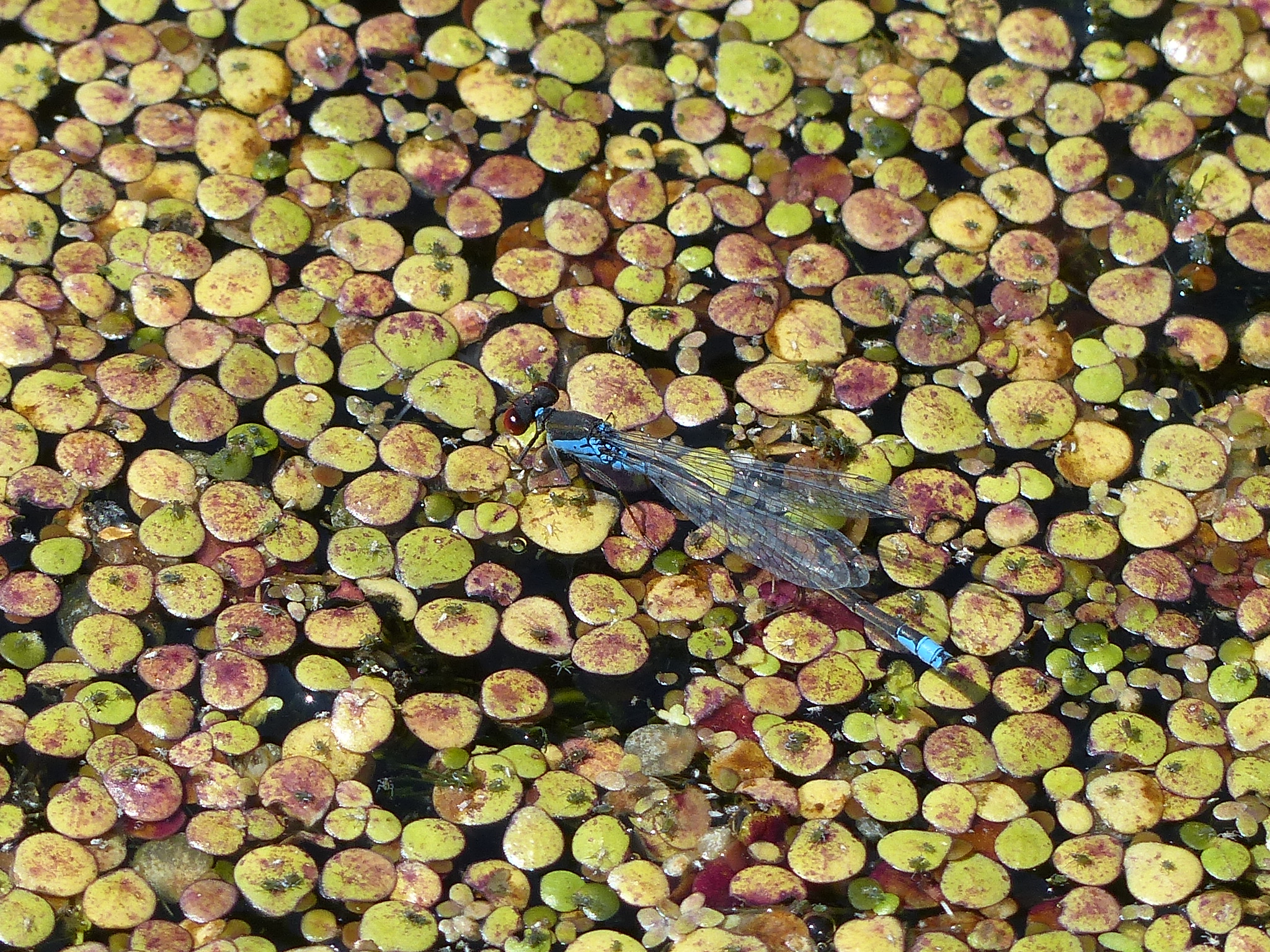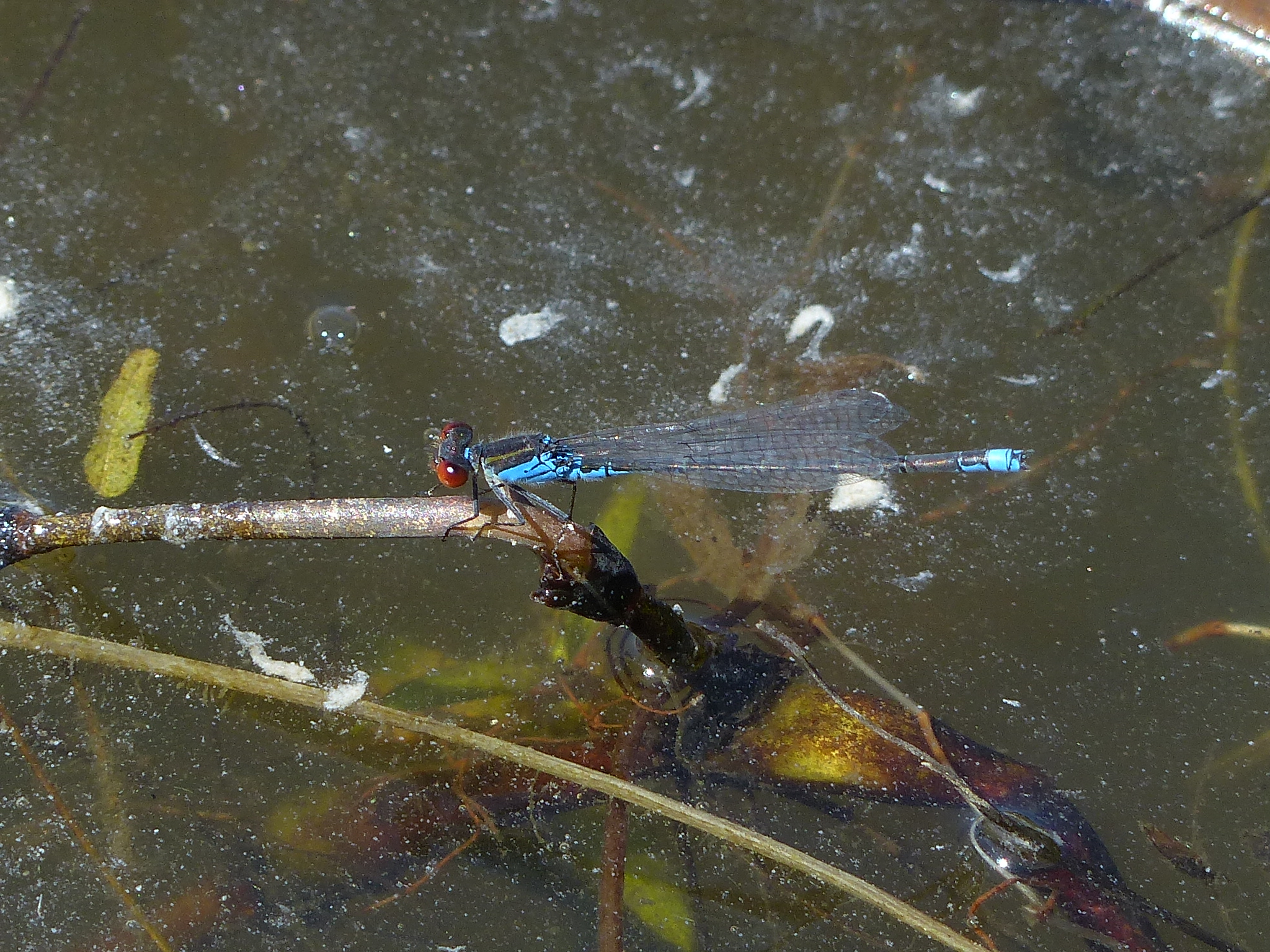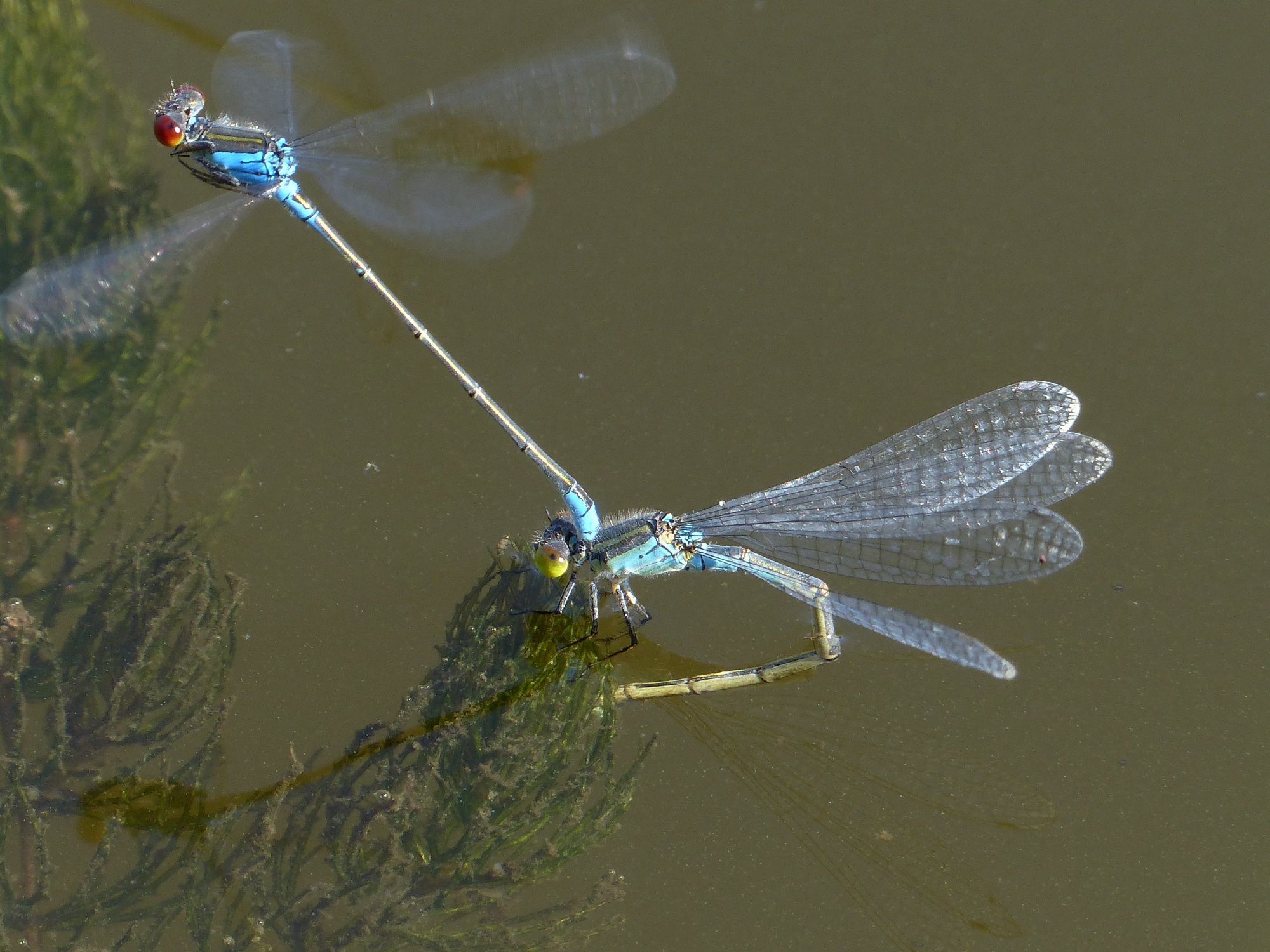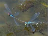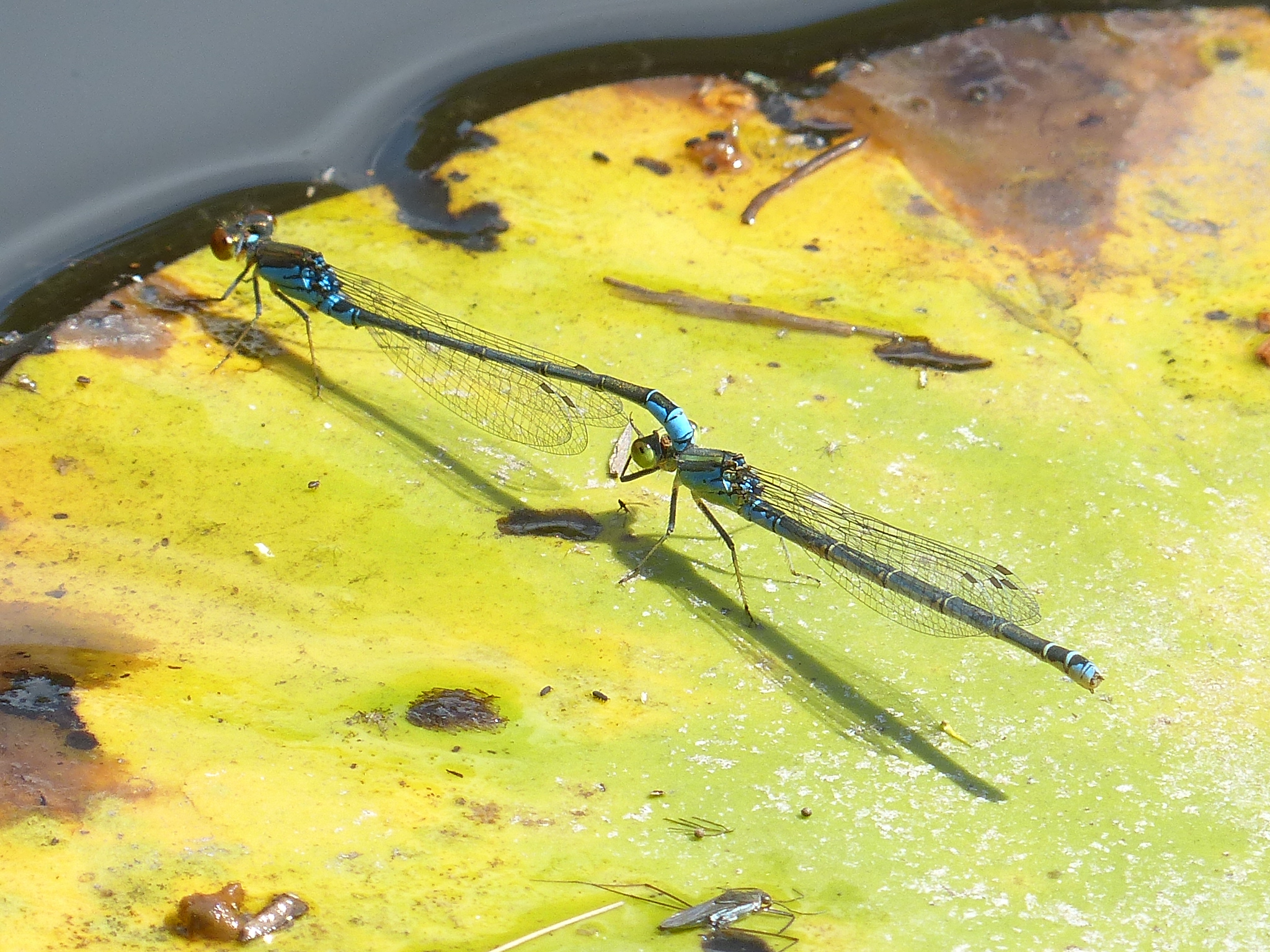 Kleiner Ausschnitt einer Massen-Eiablage des Kleinen Granatauge am Libellenteich an der Halde Berzdorf im August 2016, dazwischen einzelne Paare des Großen Granatauge