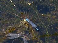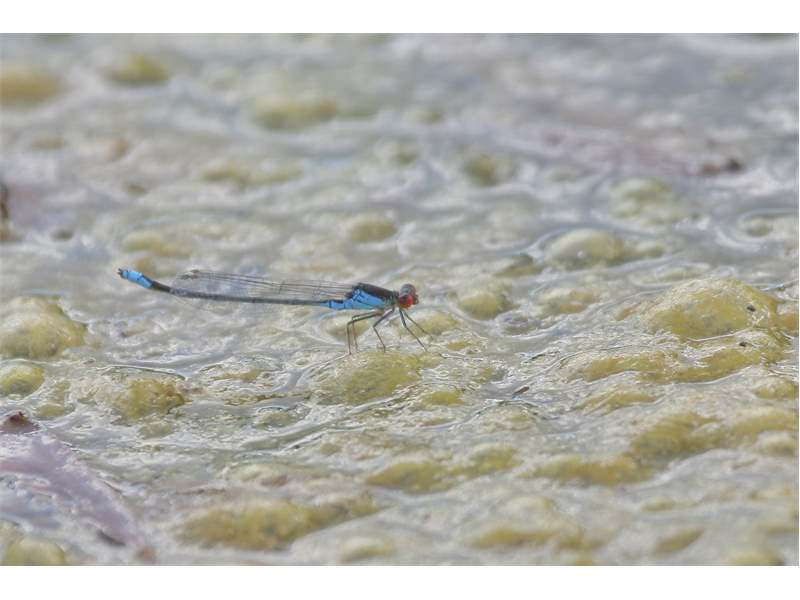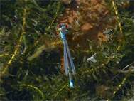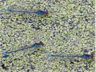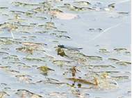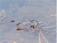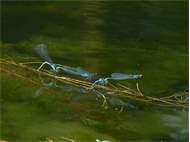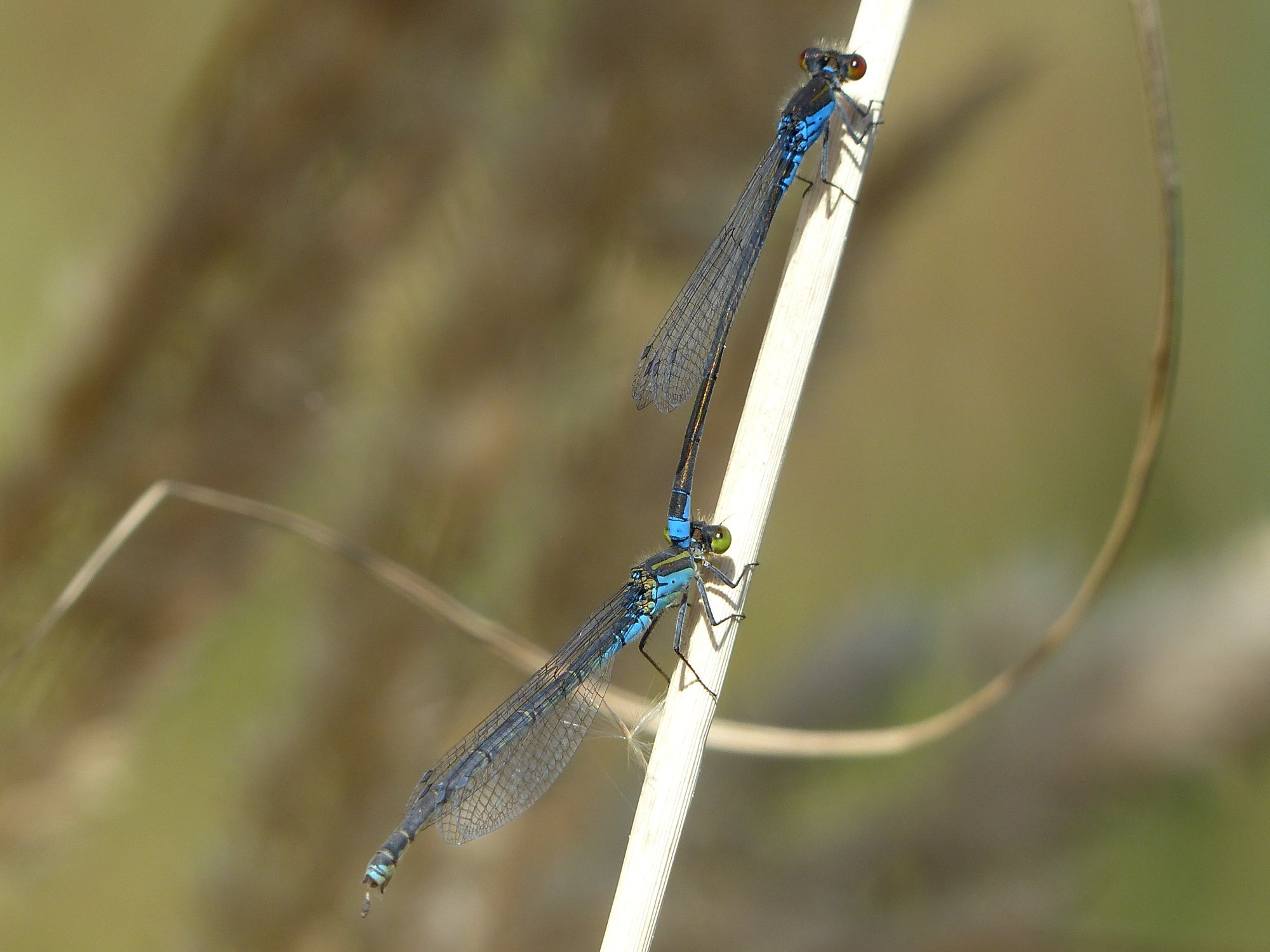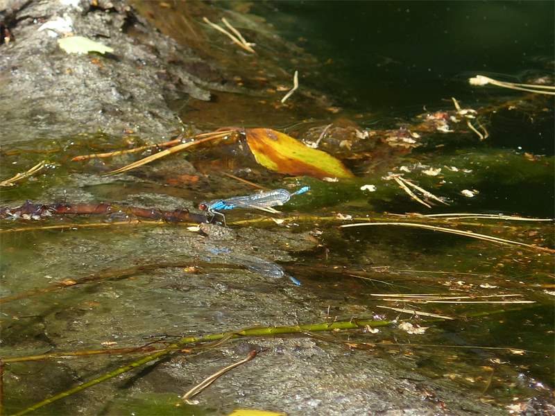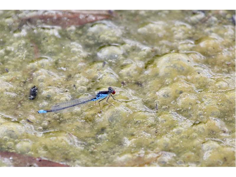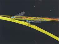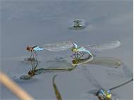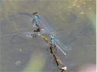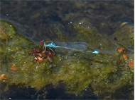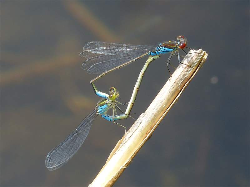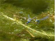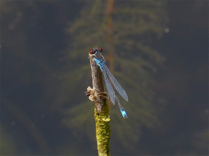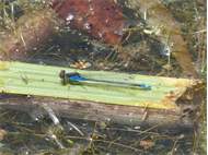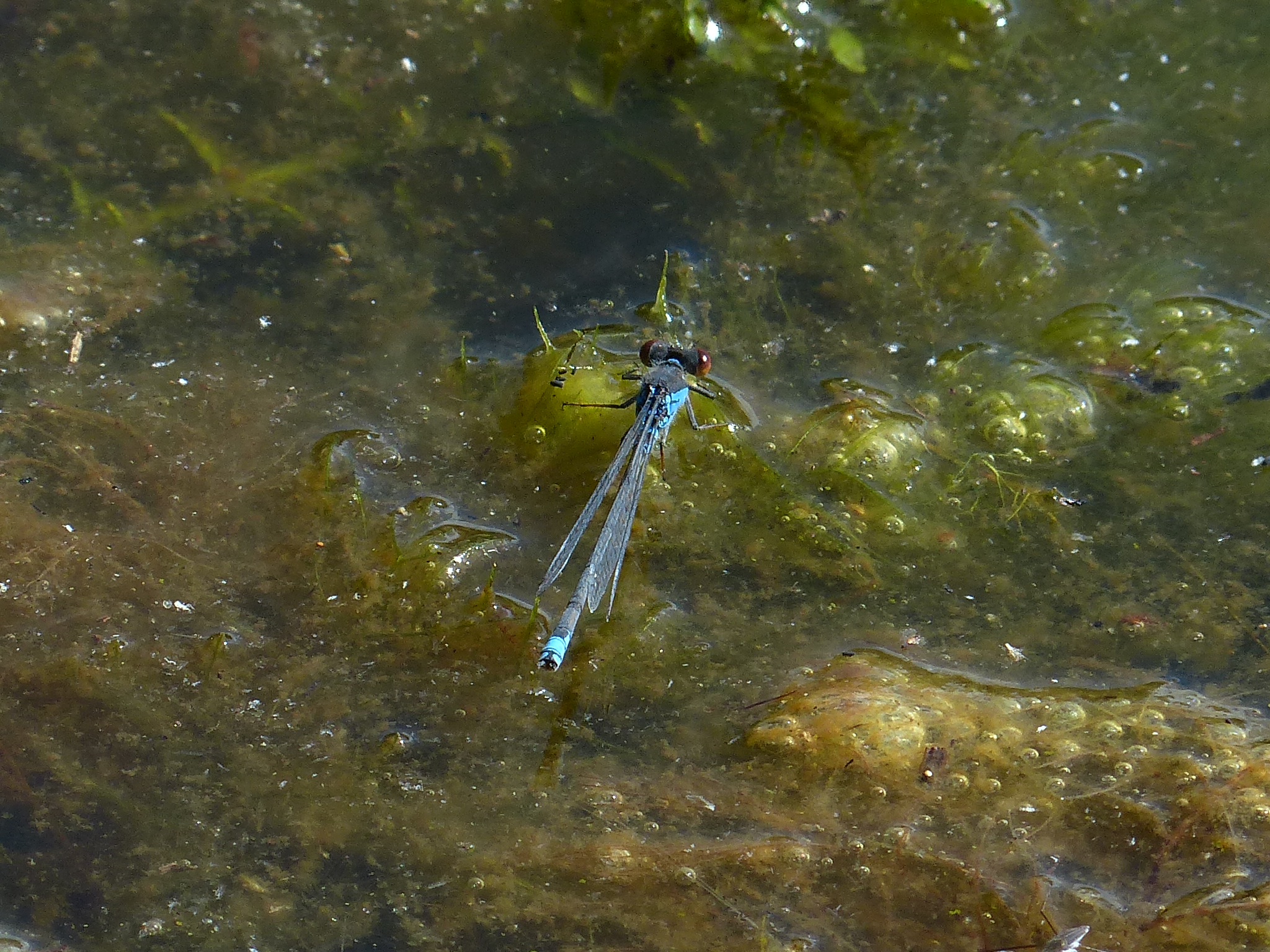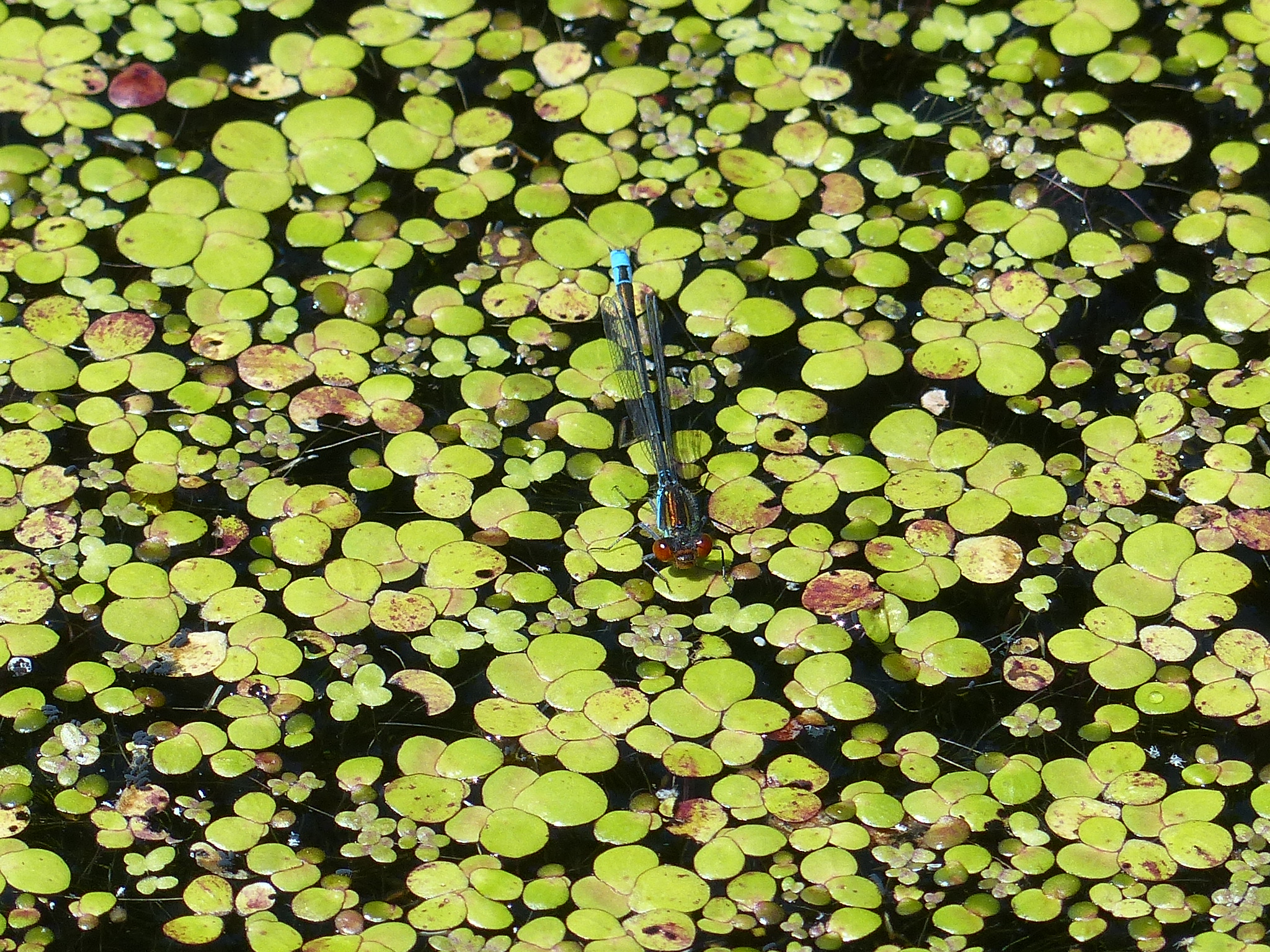 Kleiner Ausschnitt einer Massen-Eiablage des Kleinen Granatauge am Libellenteich an der Halde Berzdorf im August 2016, dazwischen einzelne Paare des Großen Granatauge