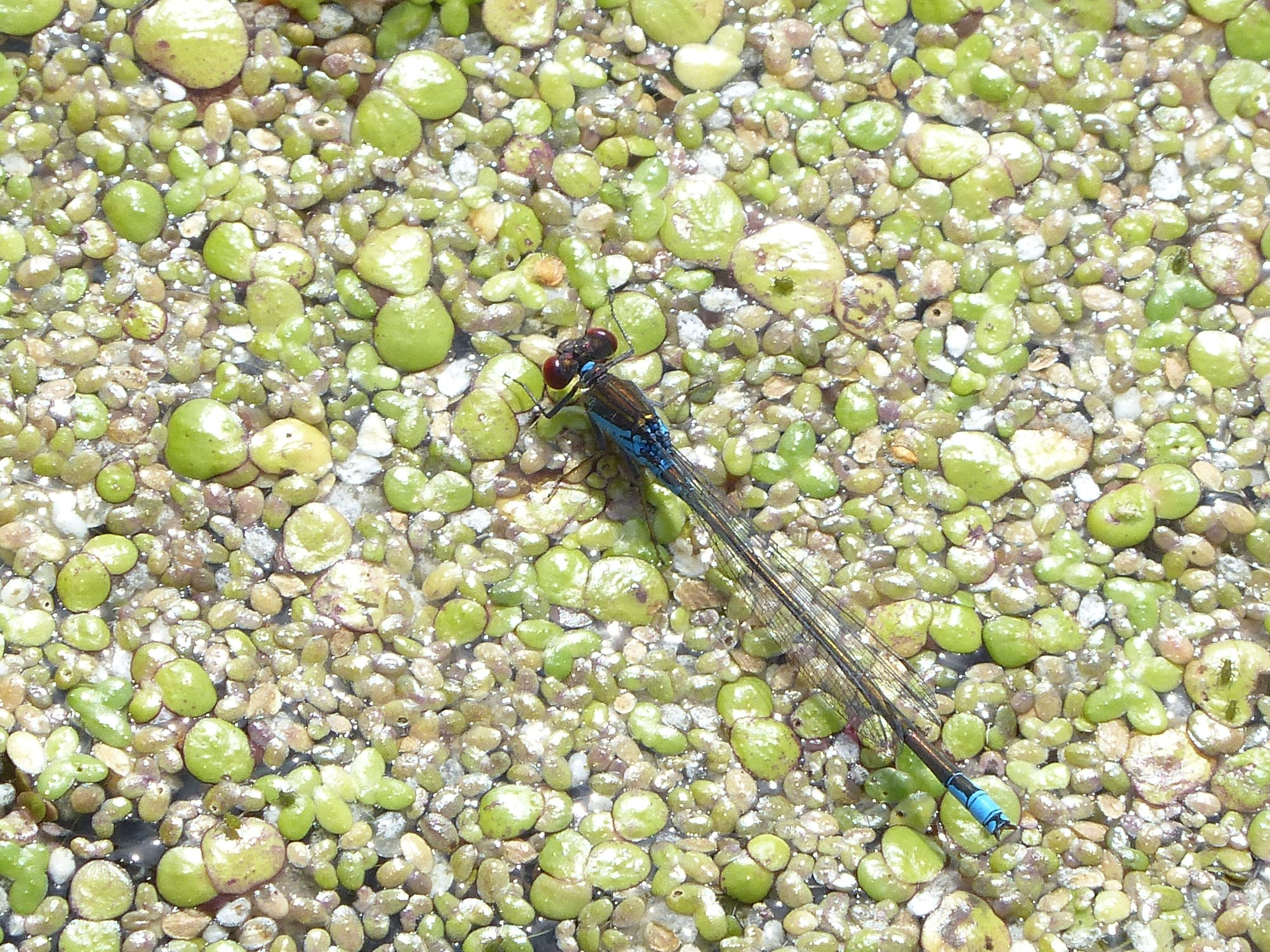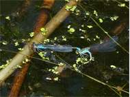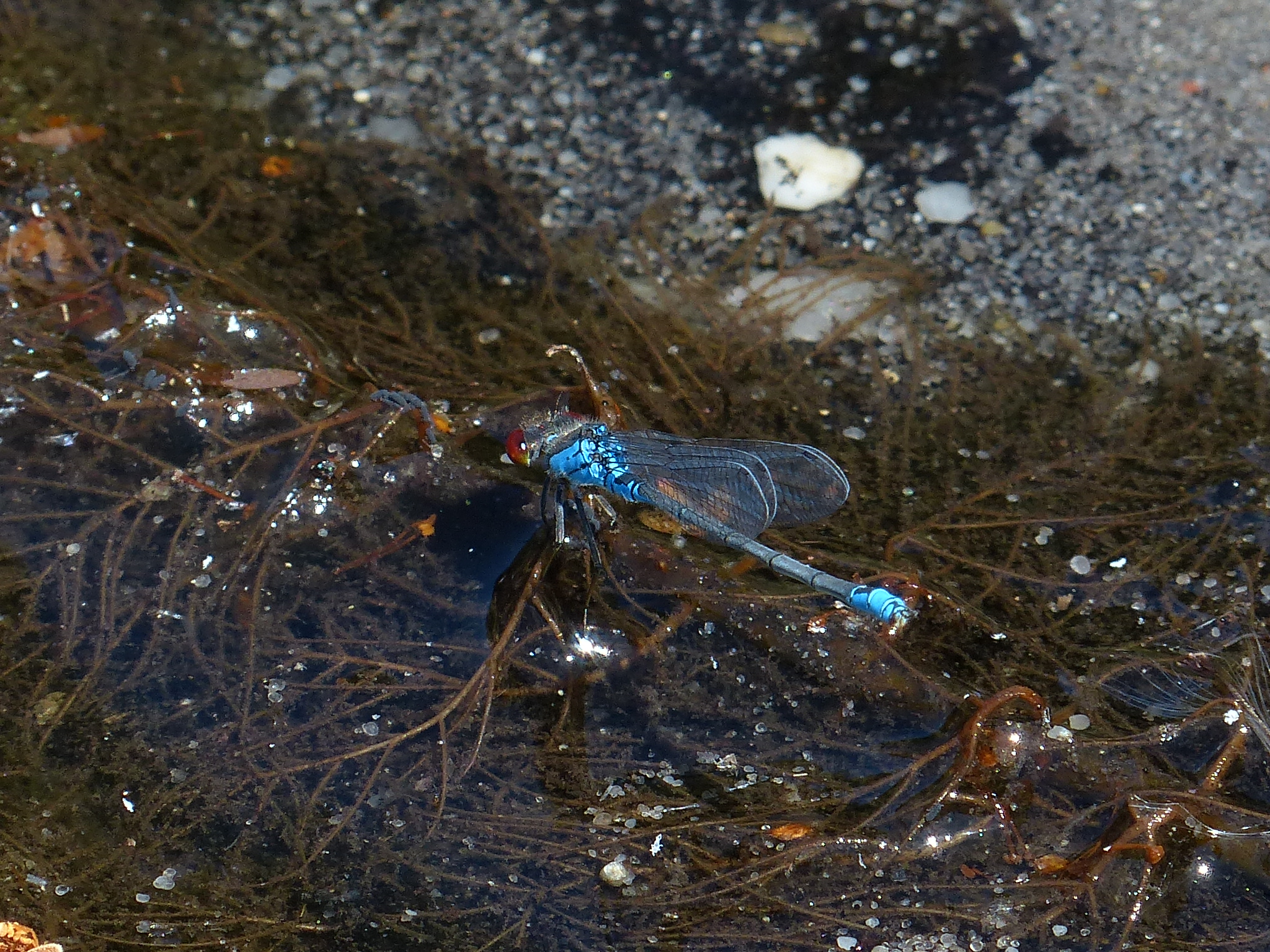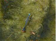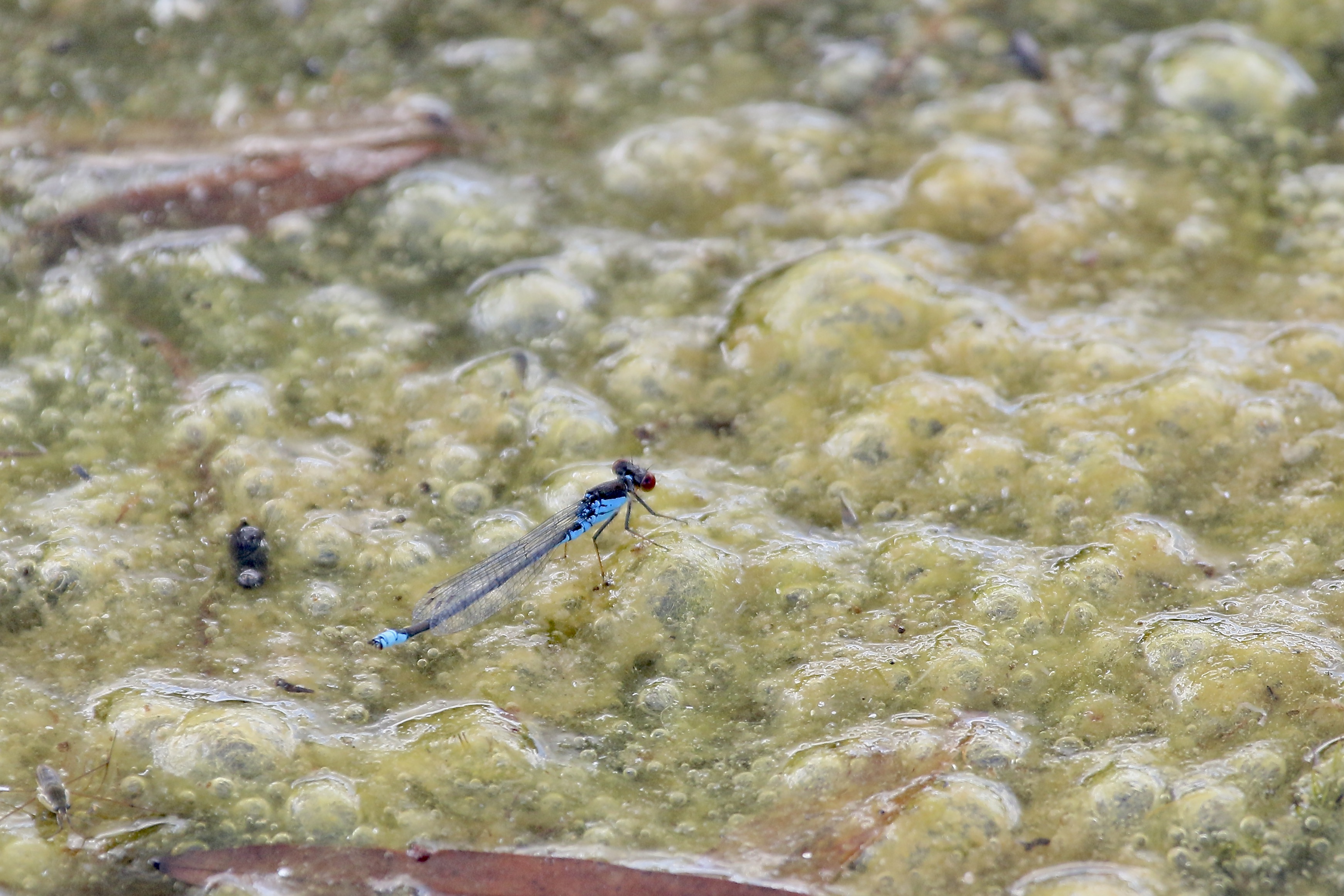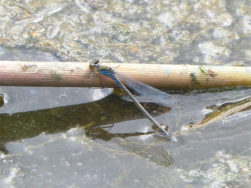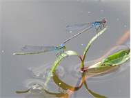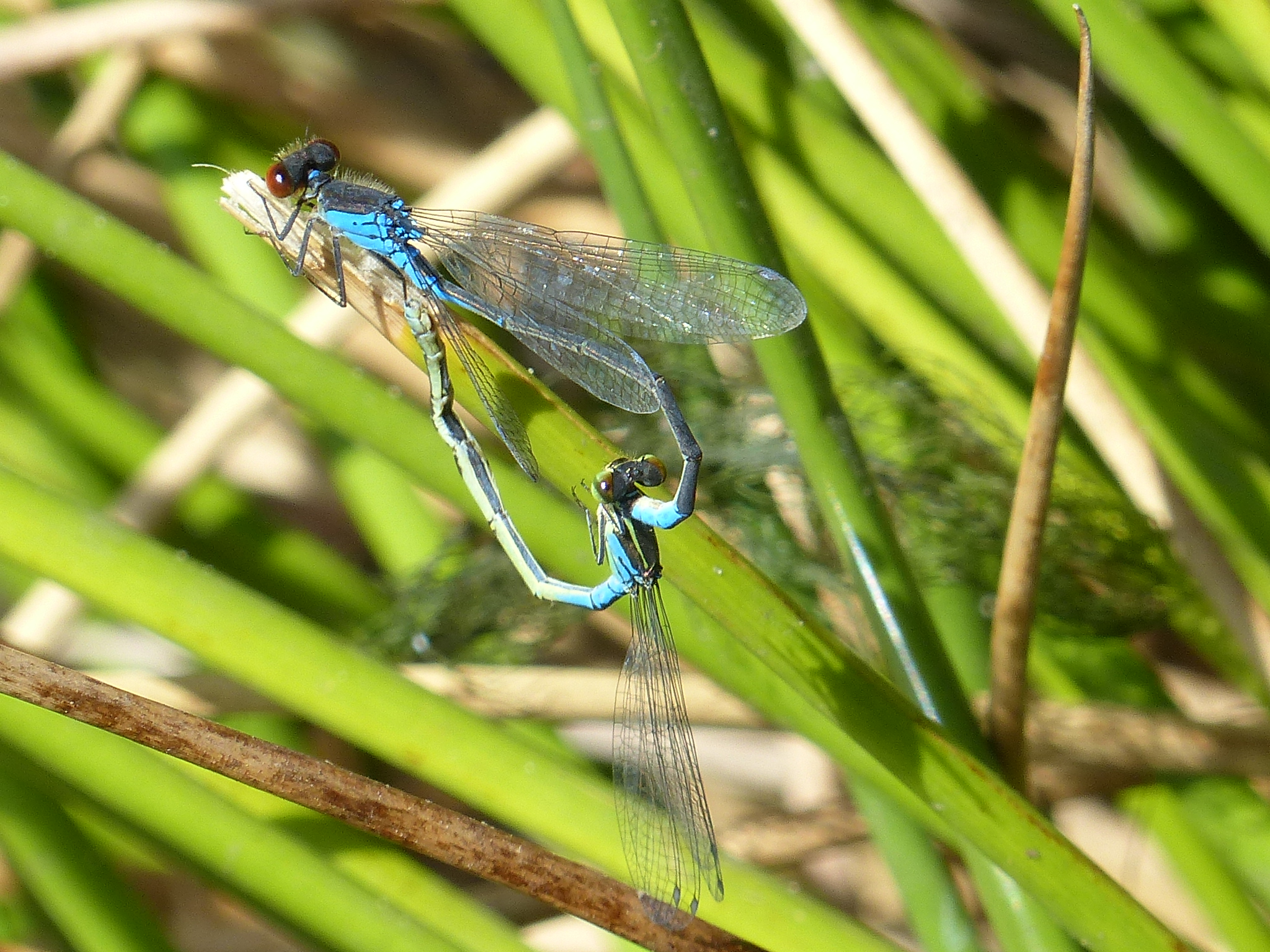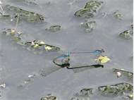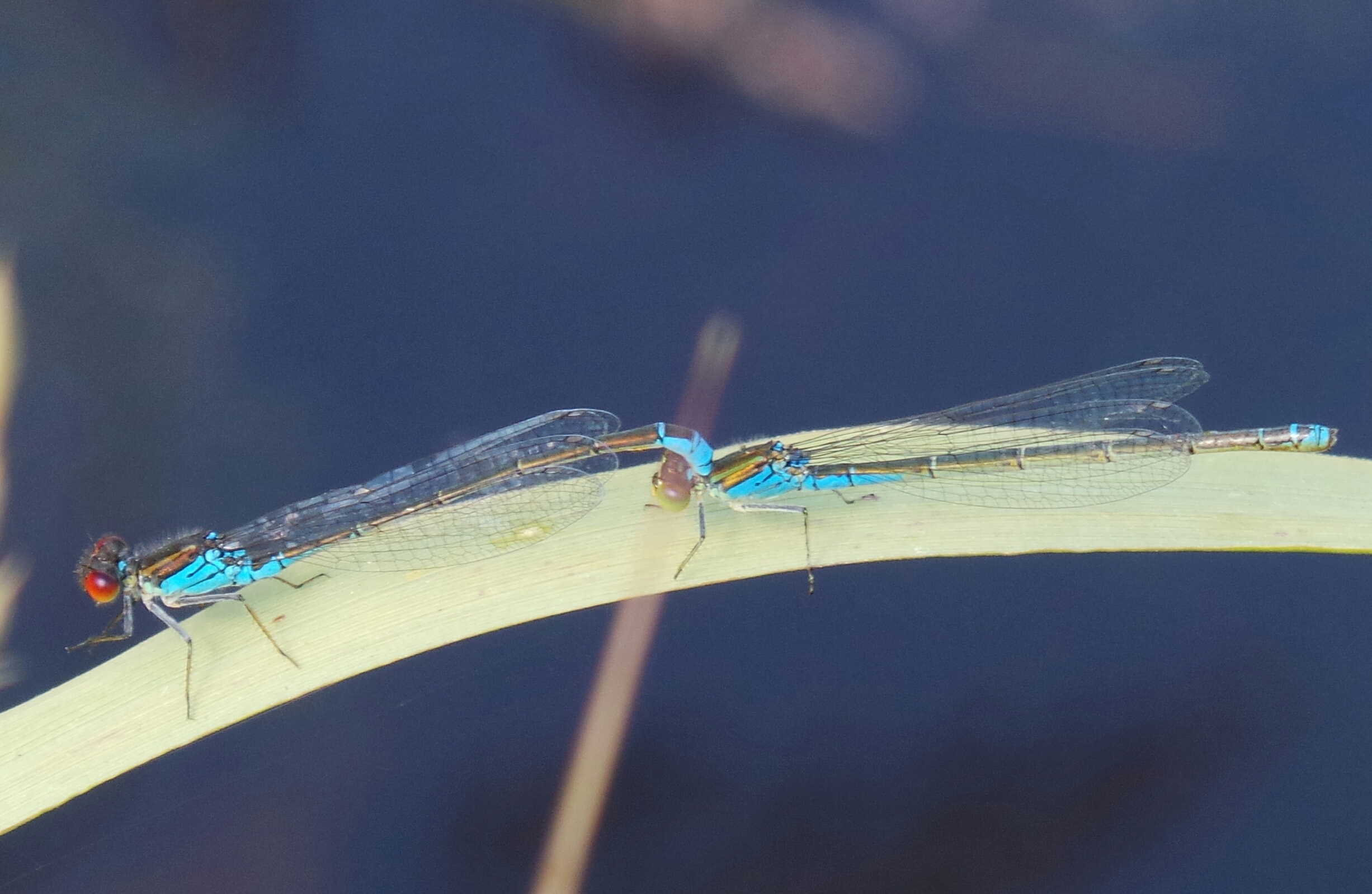 Kleiner Ausschnitt einer Massen-Eiablage des Kleinen Granatauge am Libellenteich an der Halde Berzdorf im August 2016, dazwischen einzelne Paare des Großen Granatauge