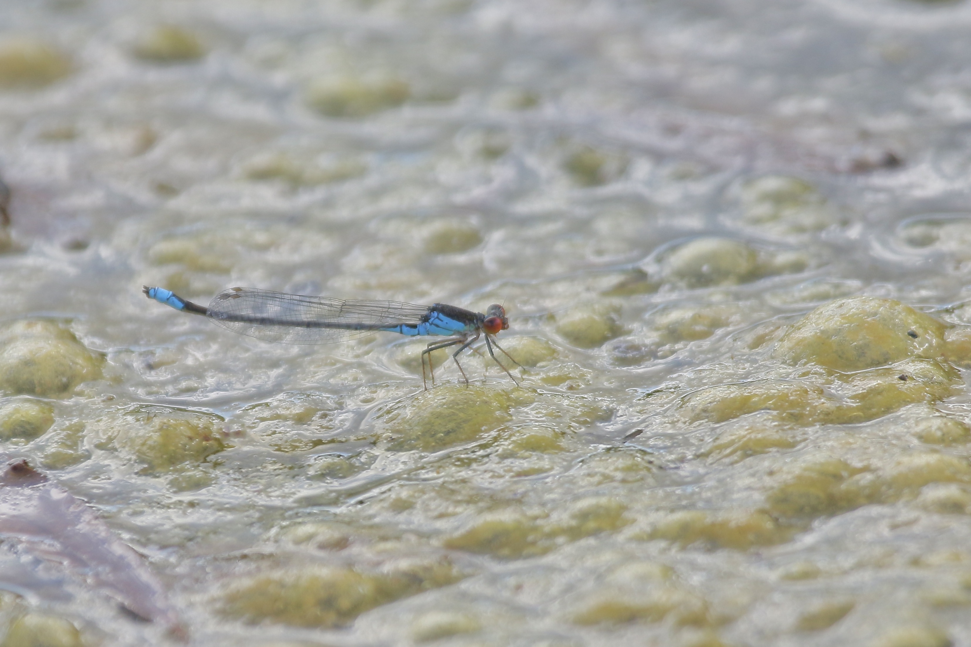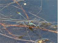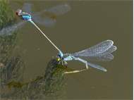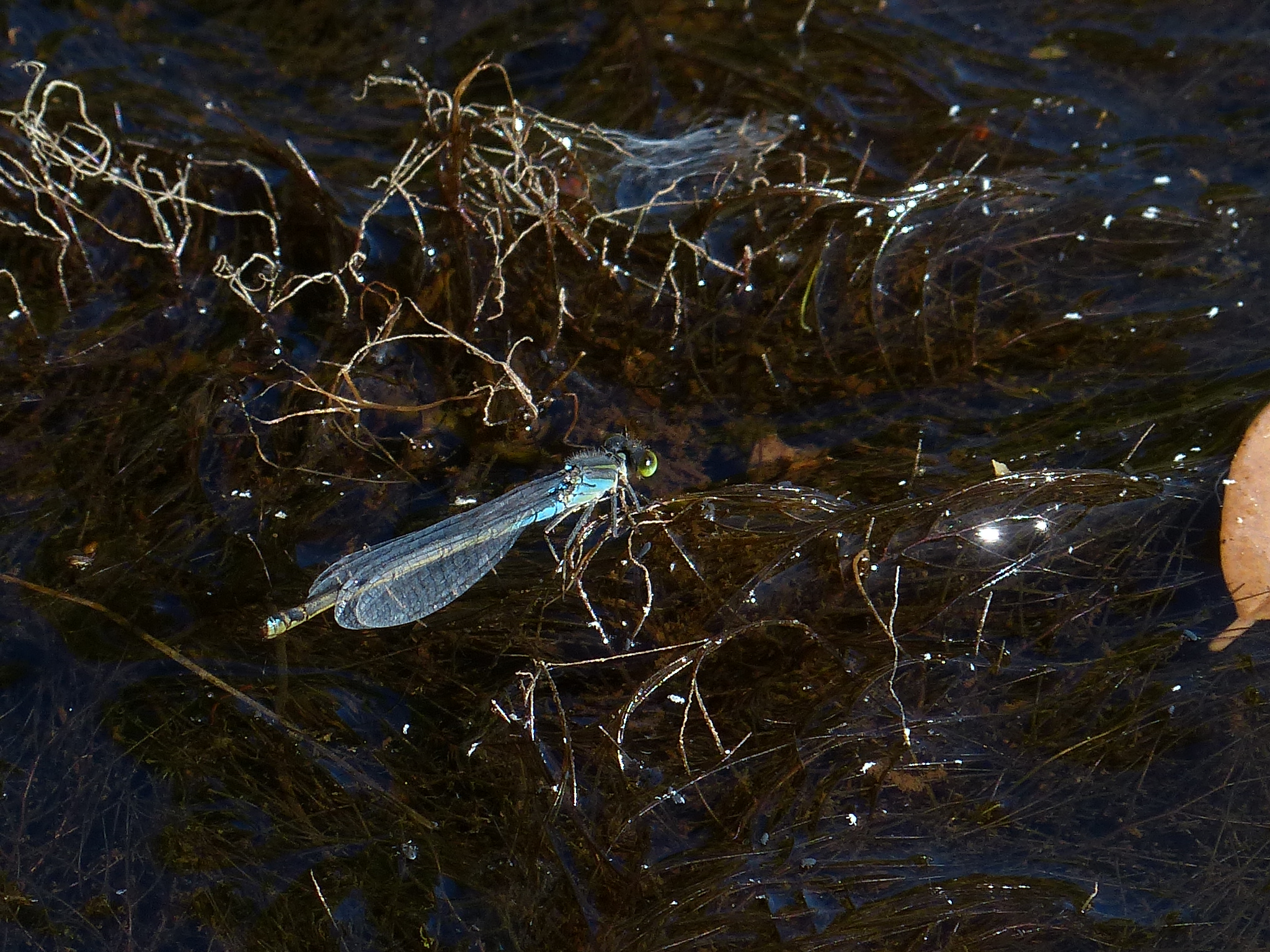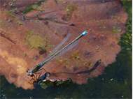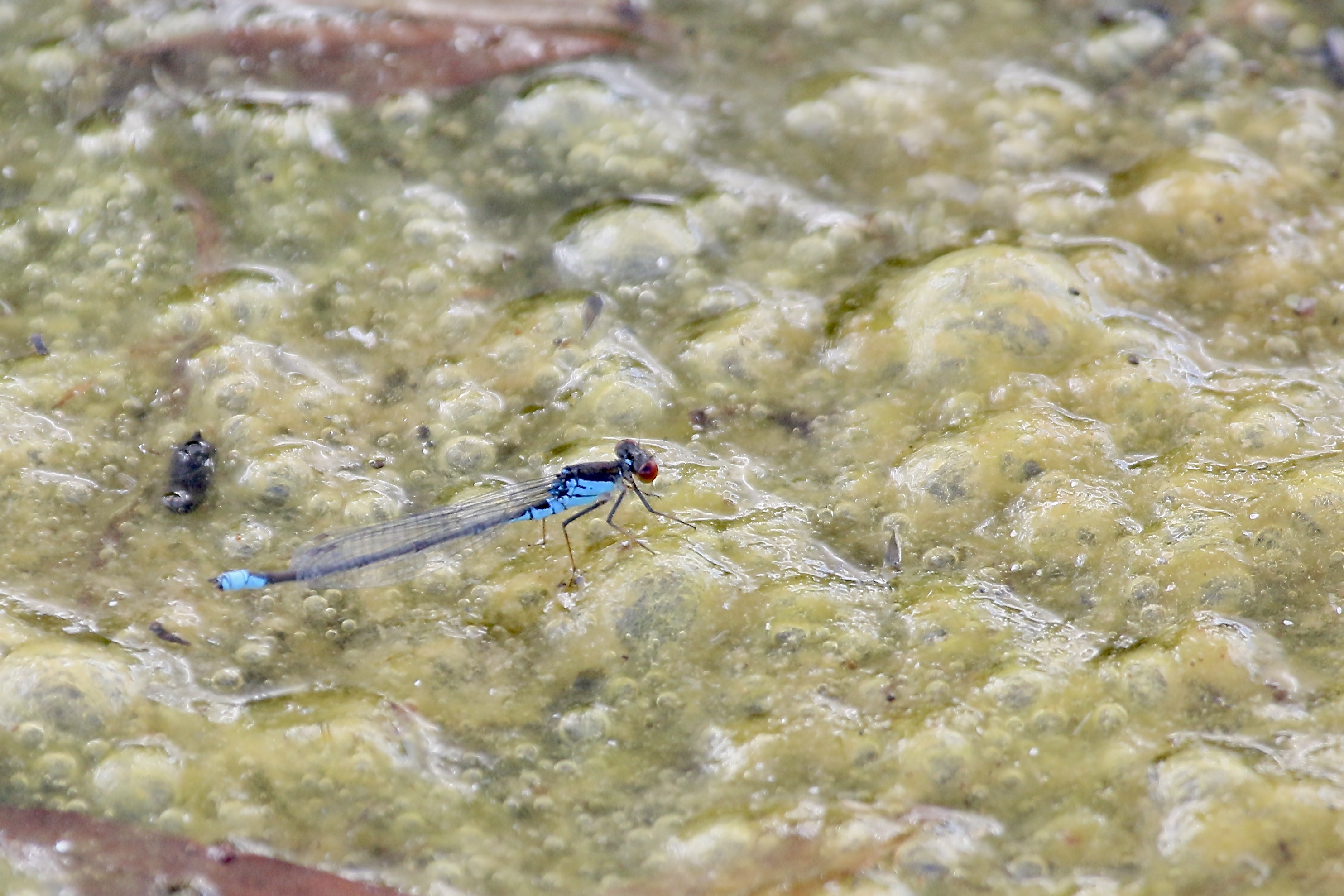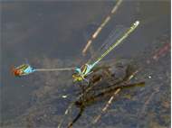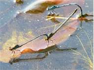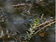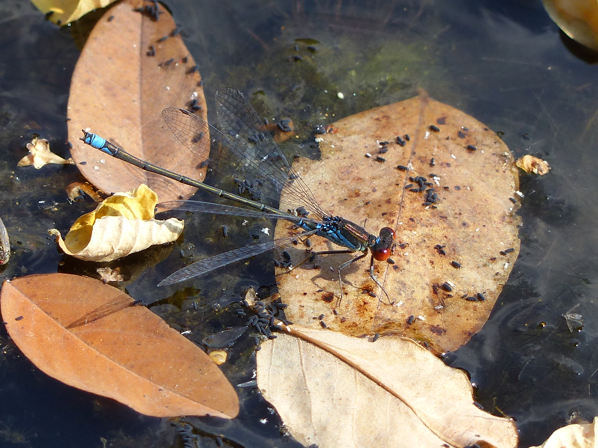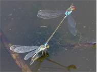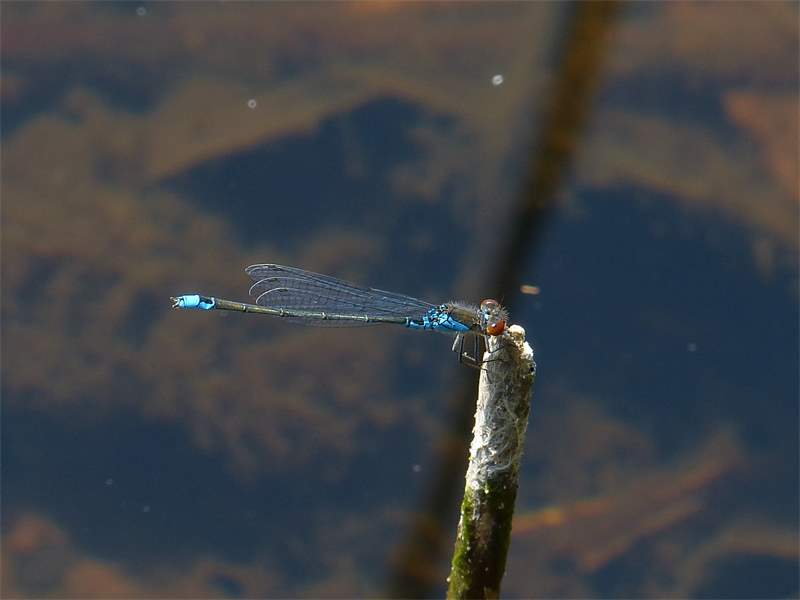 Kleiner Ausschnitt einer Massen-Eiablage des Kleinen Granatauge am Libellenteich an der Halde Berzdorf im August 2016, dazwischen einzelne Paare des Großen Granatauge