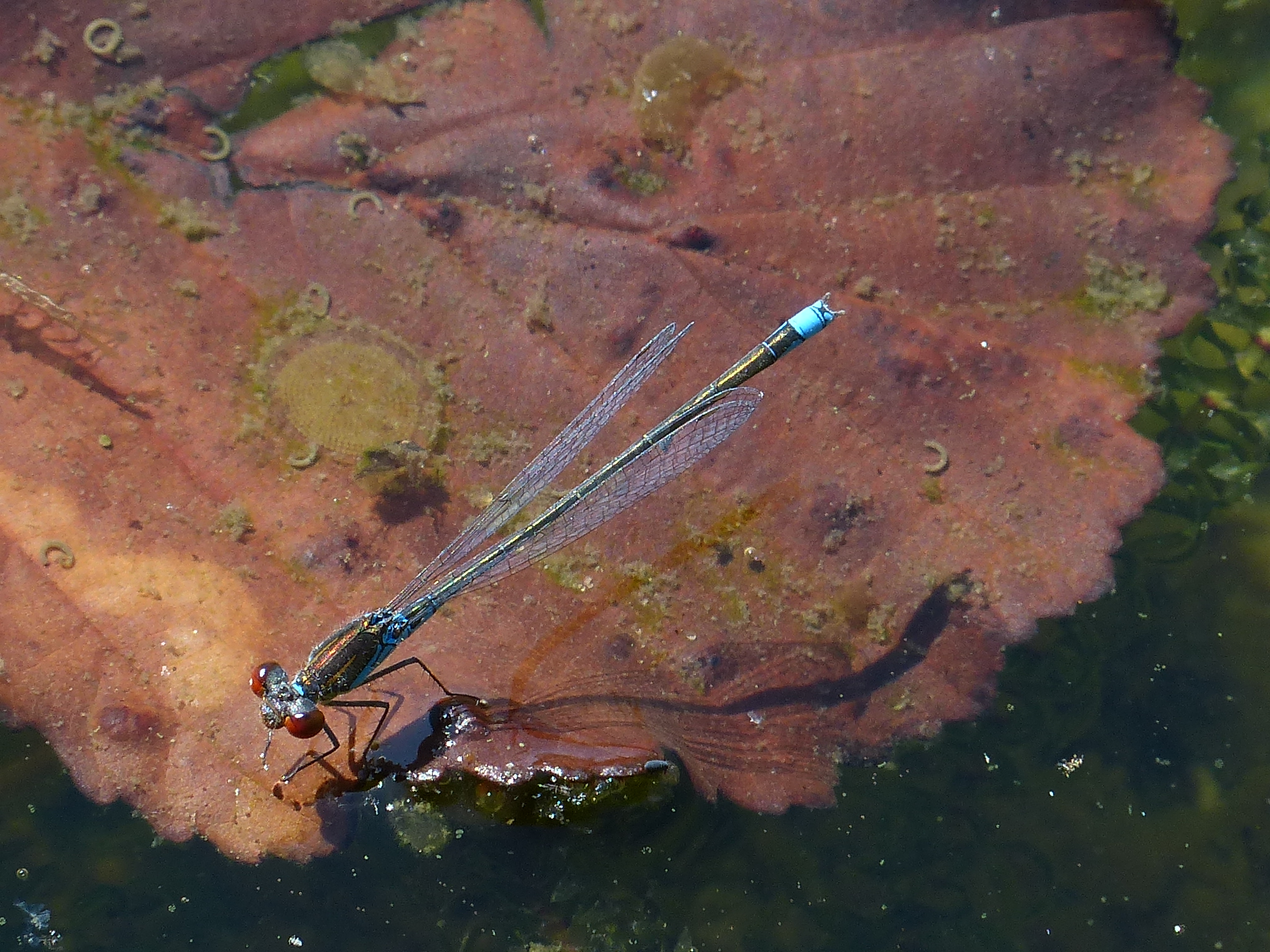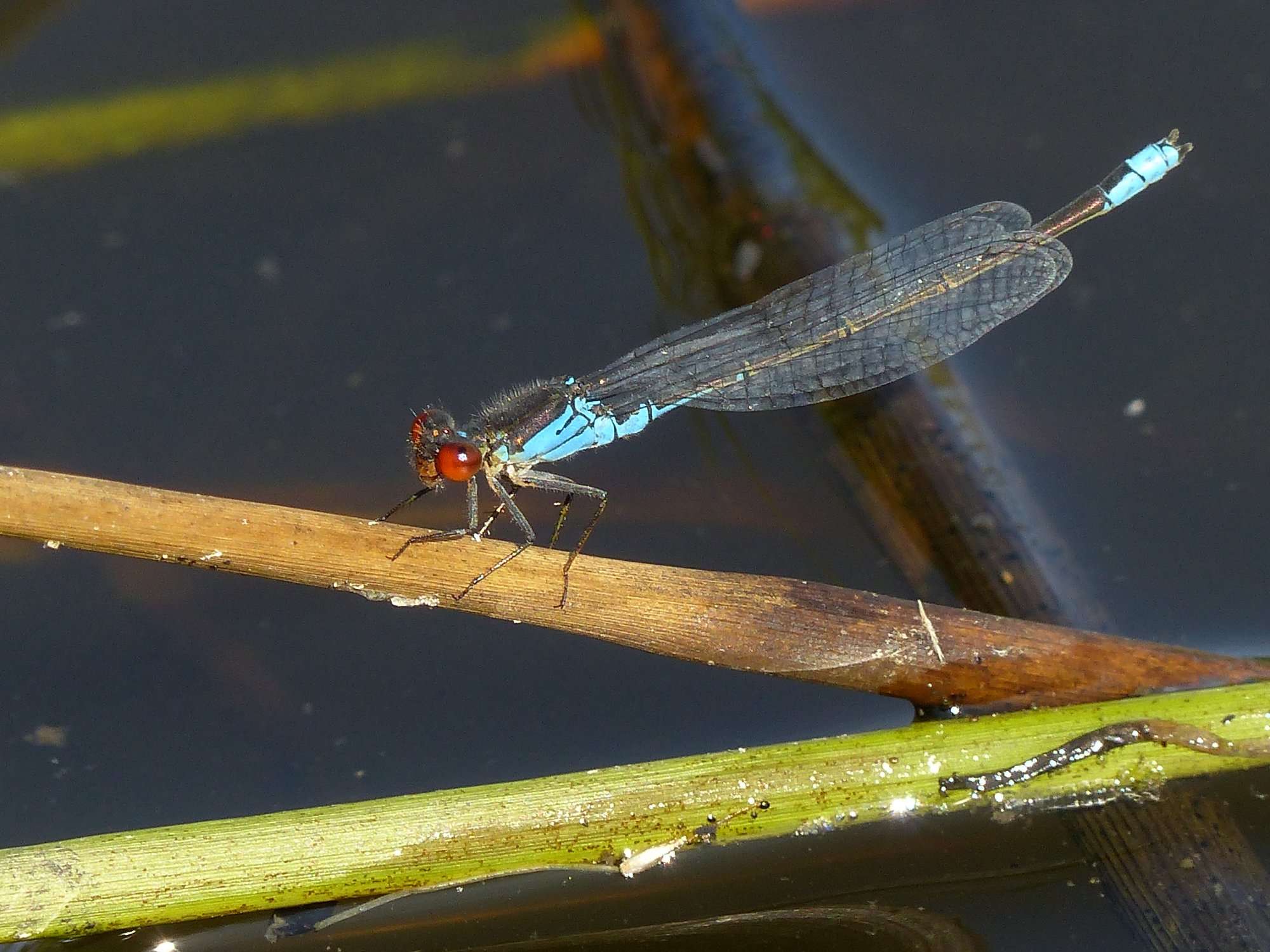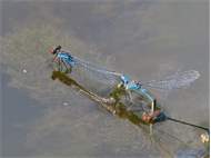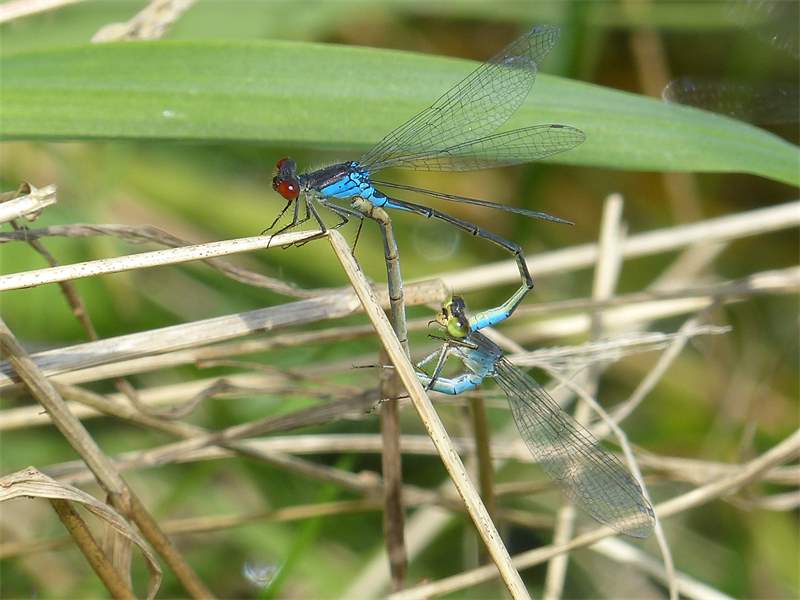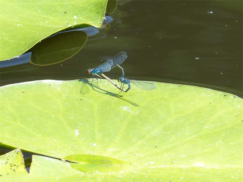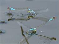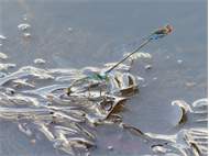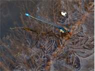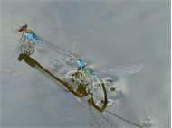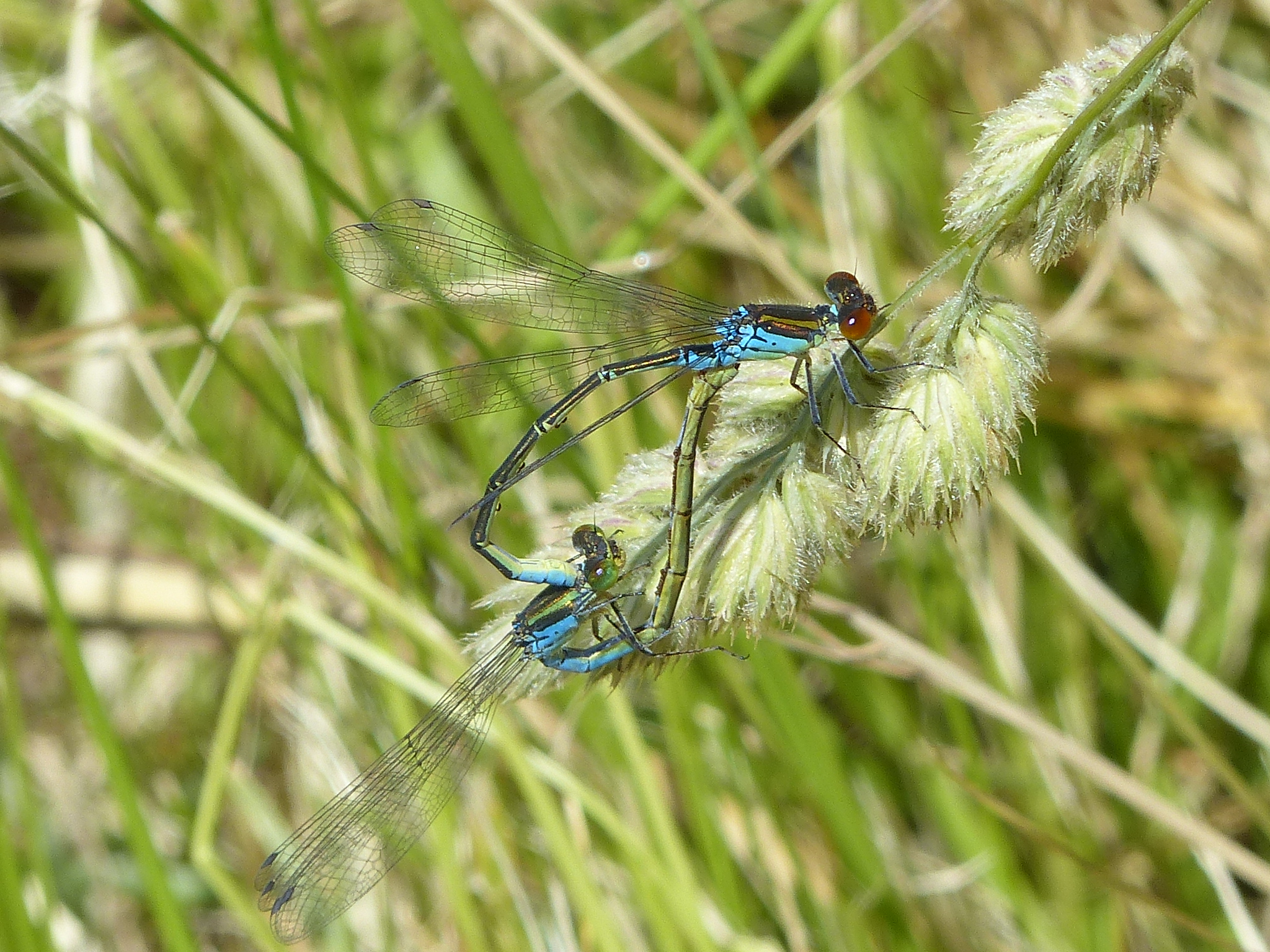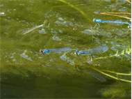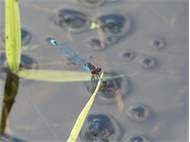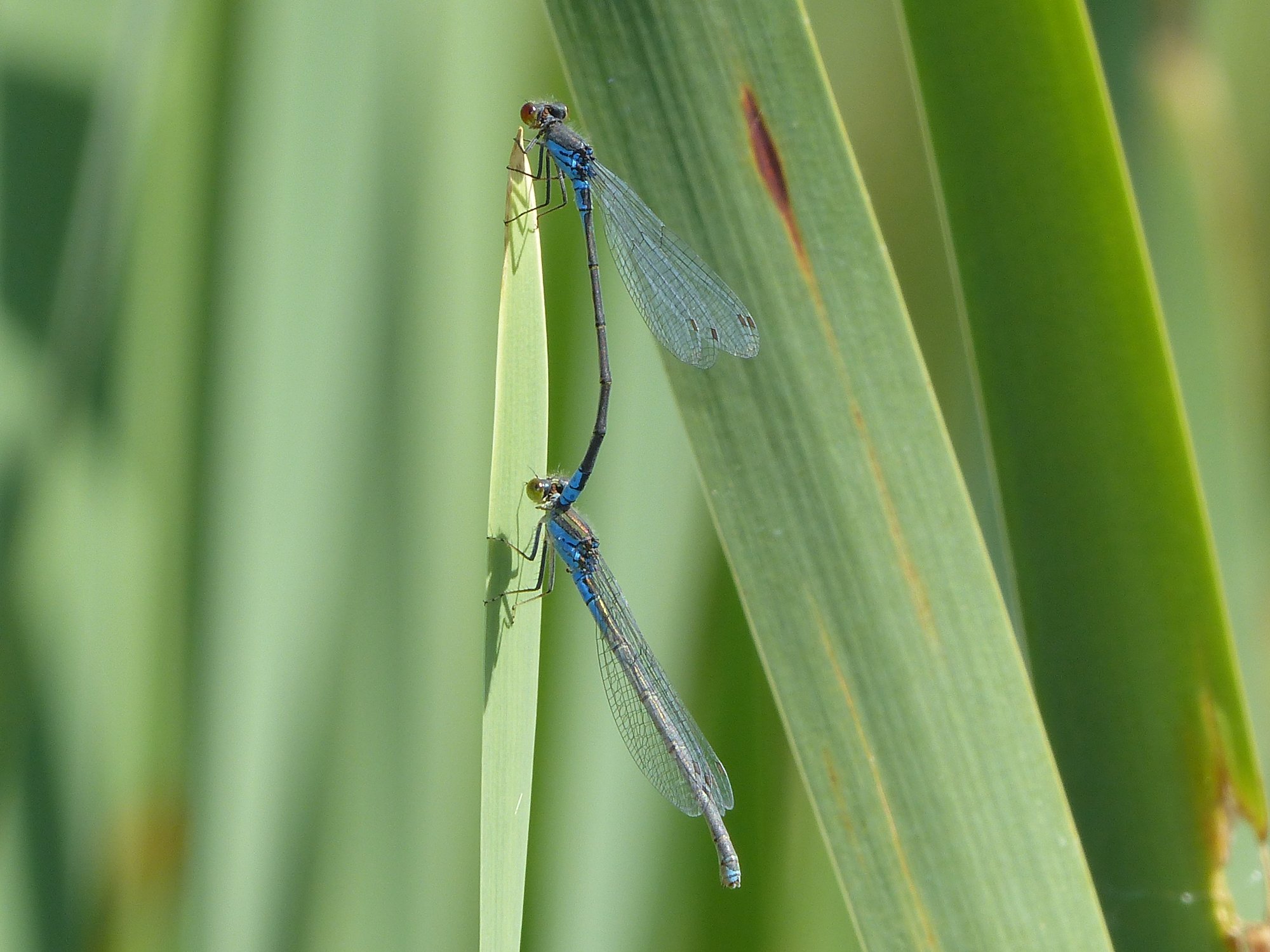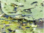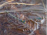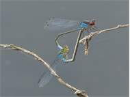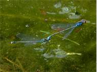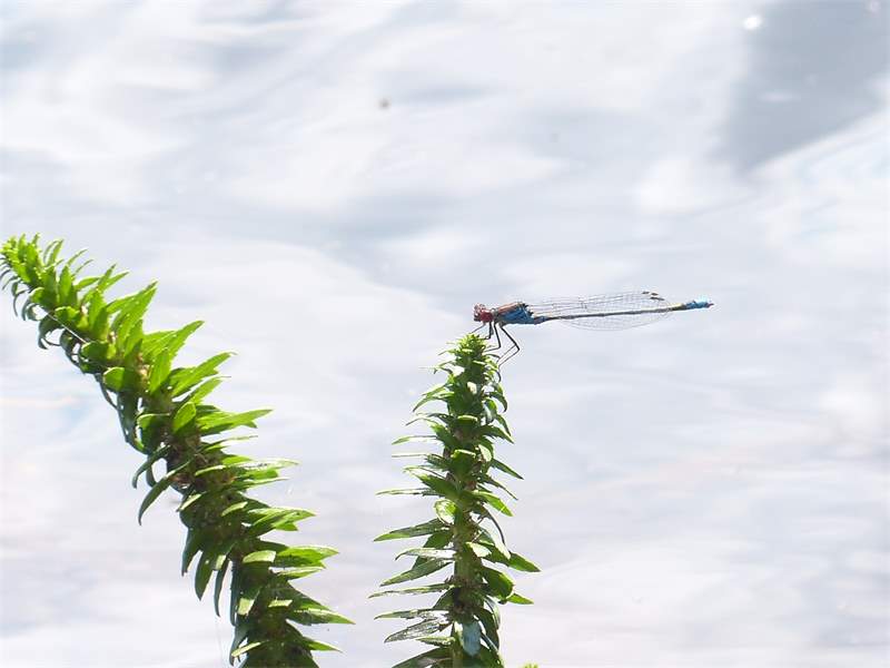 Kleiner Ausschnitt einer Massen-Eiablage des Kleinen Granatauge am Libellenteich an der Halde Berzdorf im August 2016, dazwischen einzelne Paare des Großen Granatauge