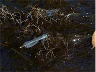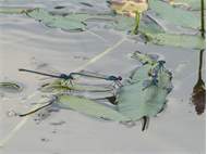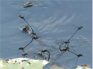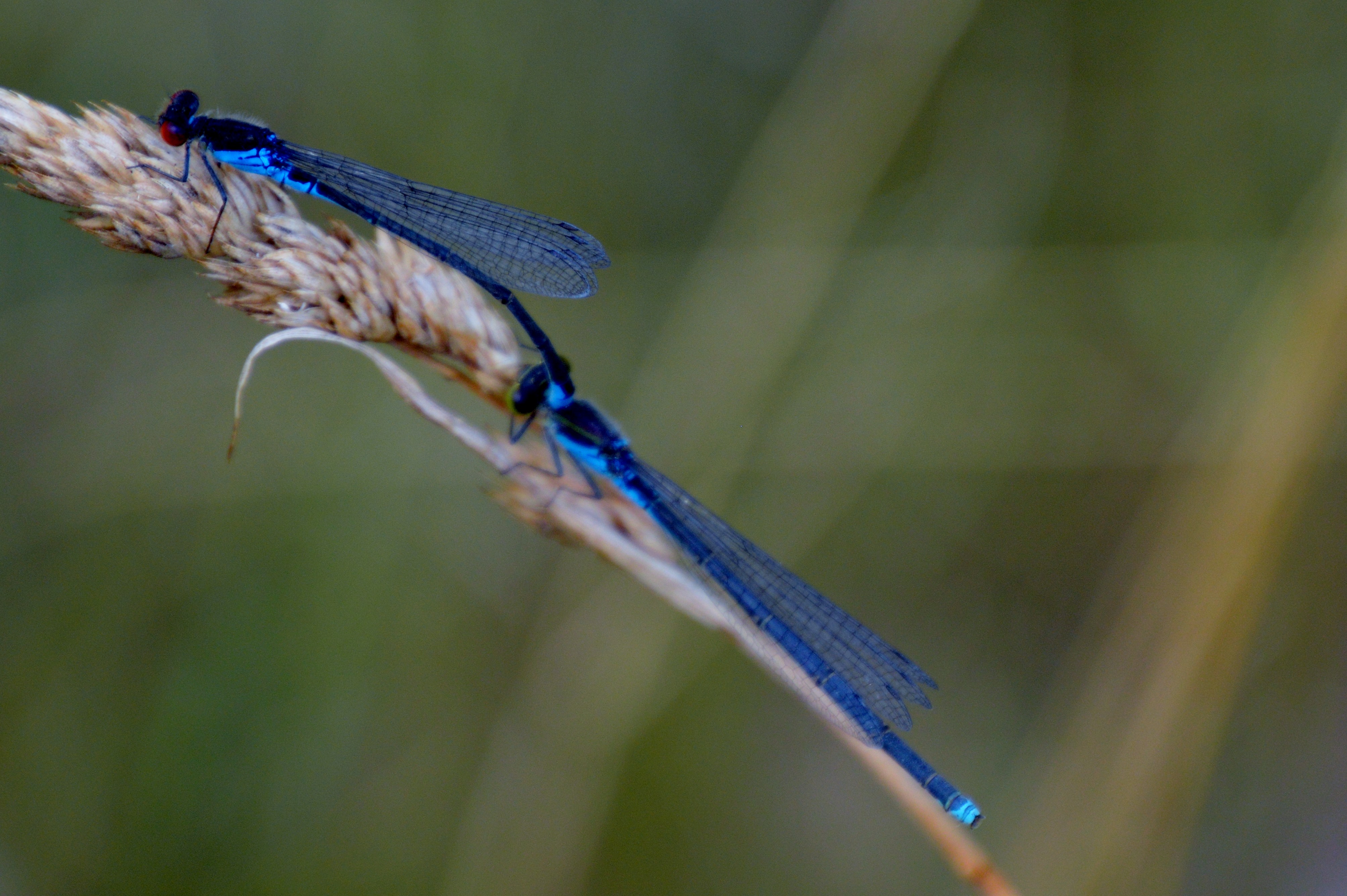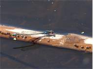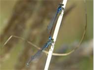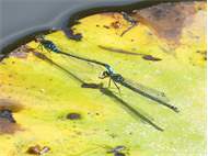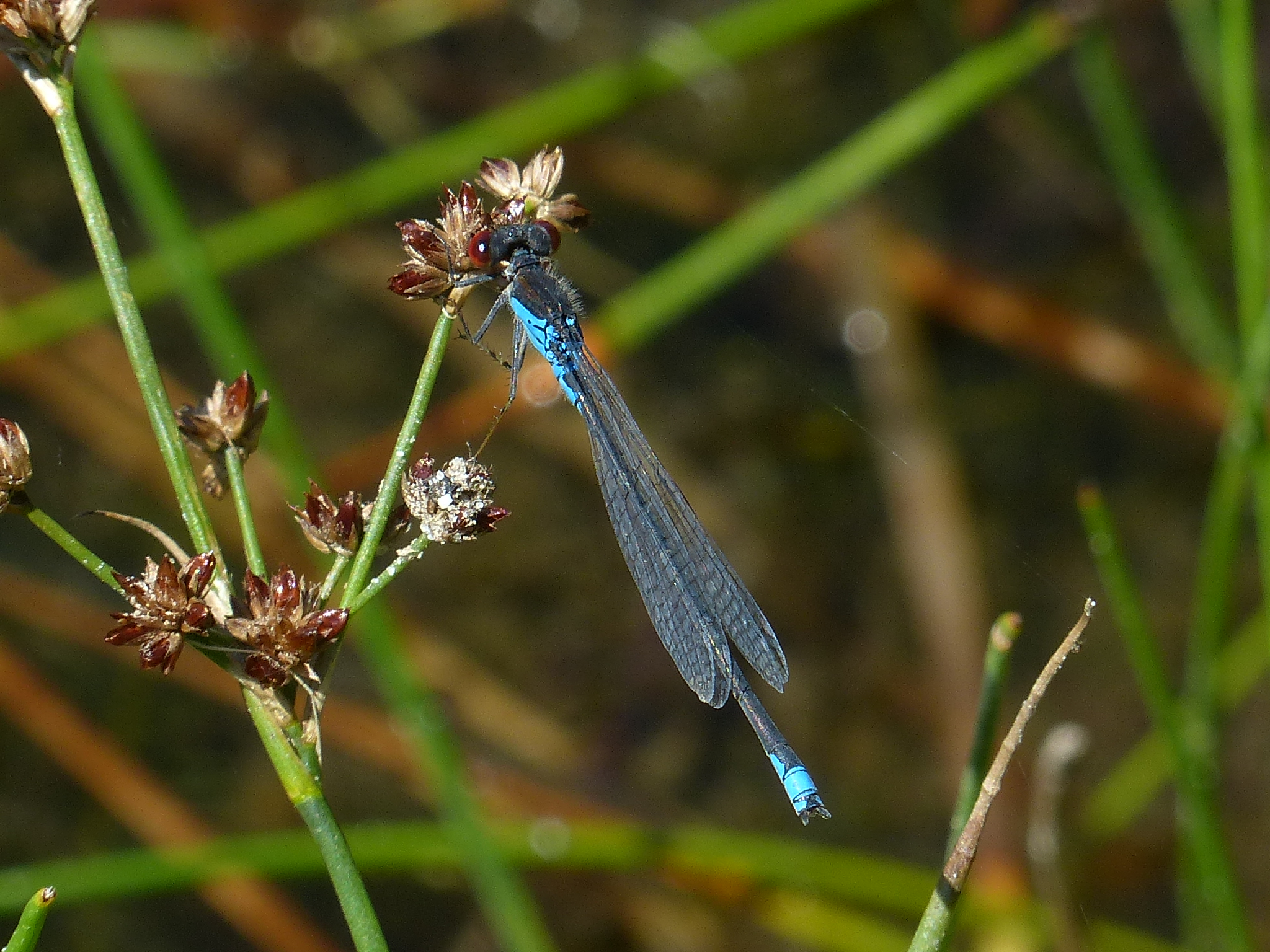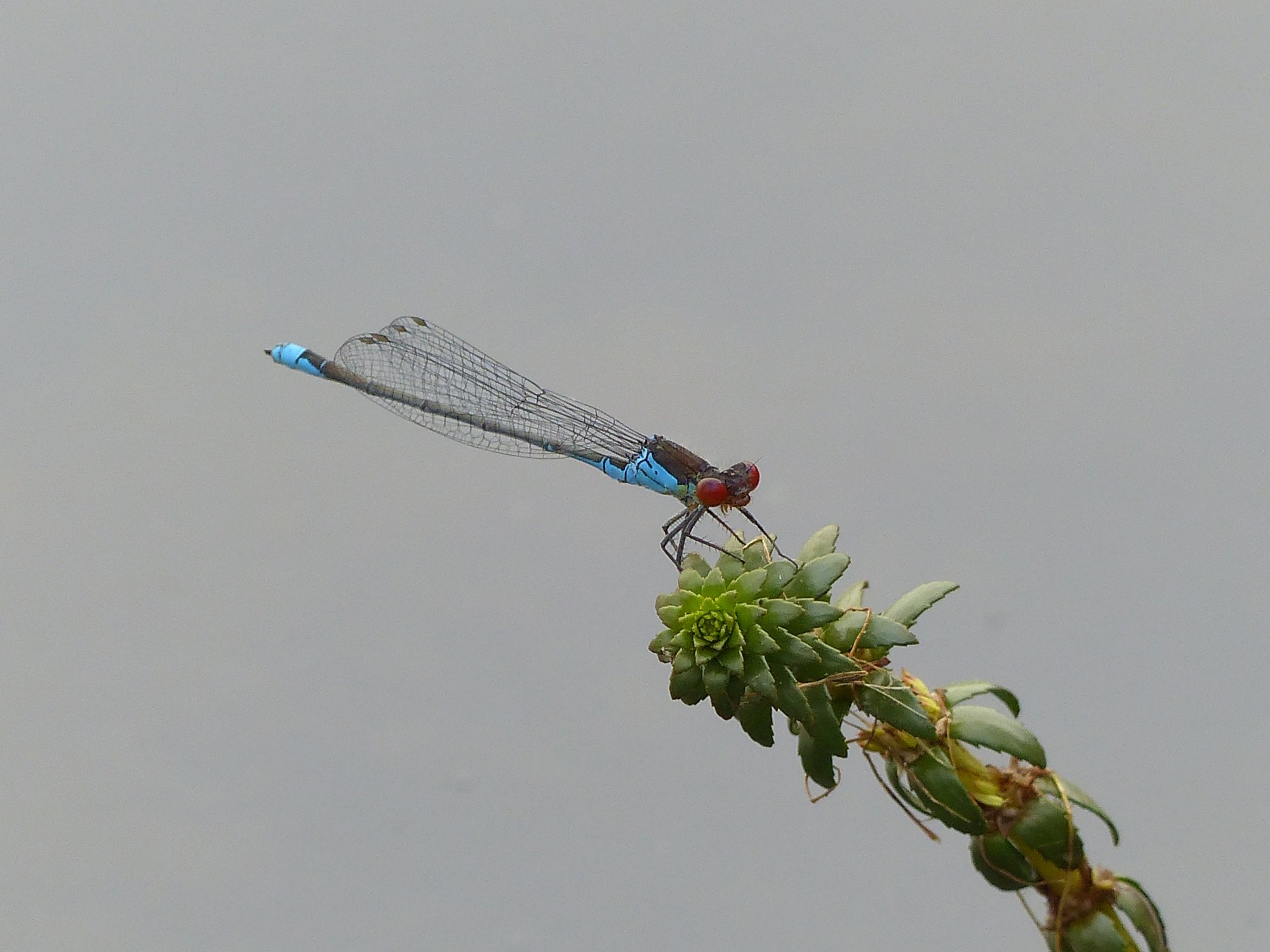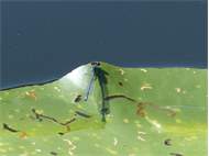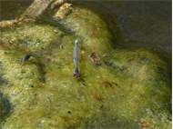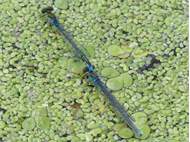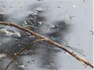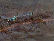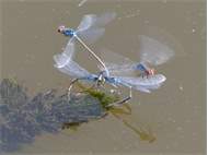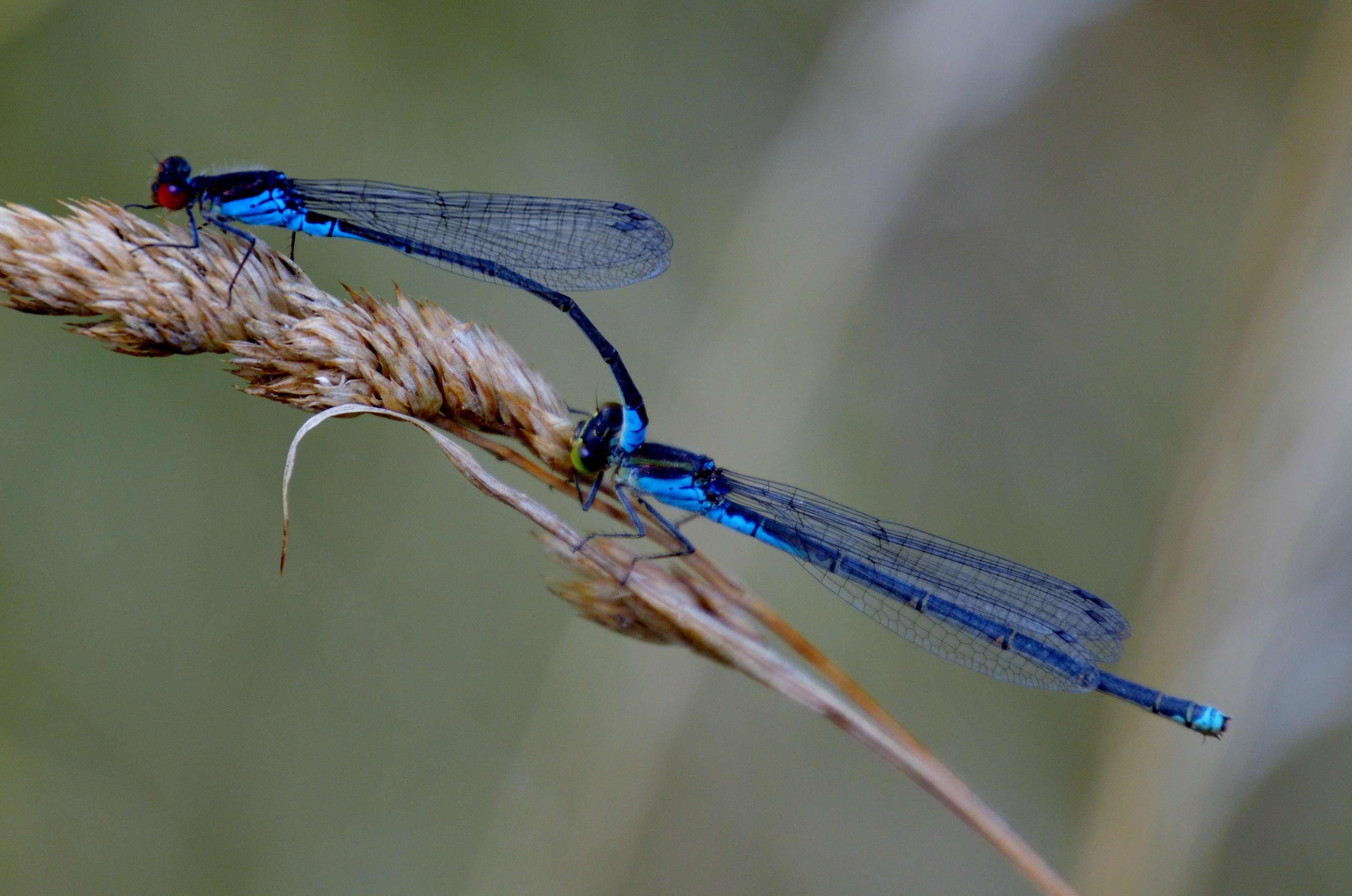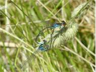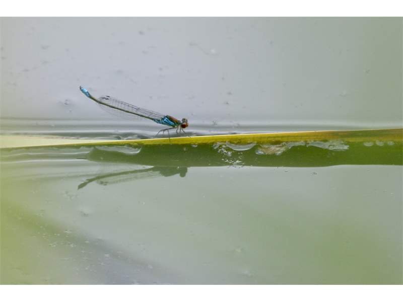 Kleiner Ausschnitt einer Massen-Eiablage des Kleinen Granatauge am Libellenteich an der Halde Berzdorf im August 2016, dazwischen einzelne Paare des Großen Granatauge