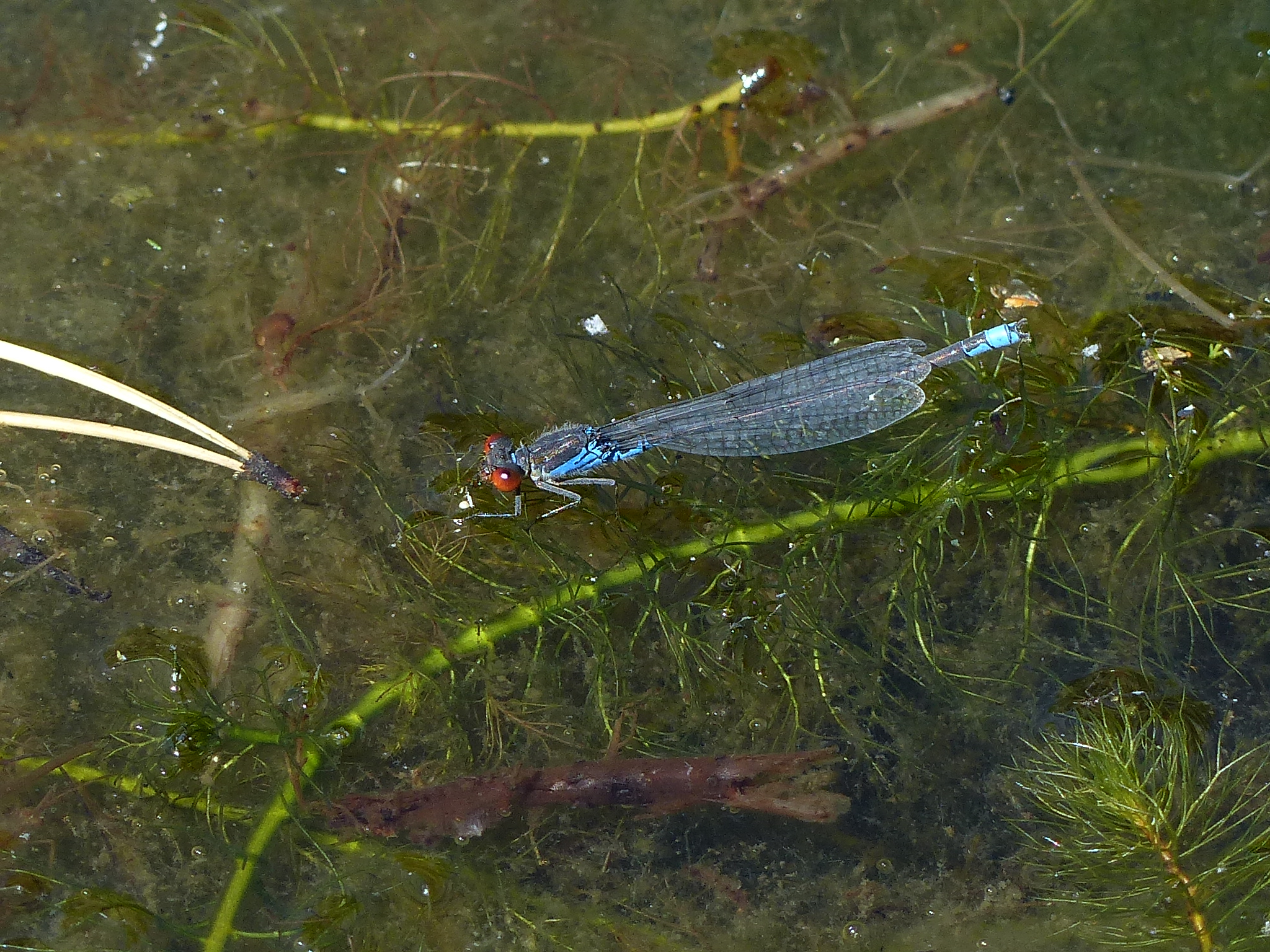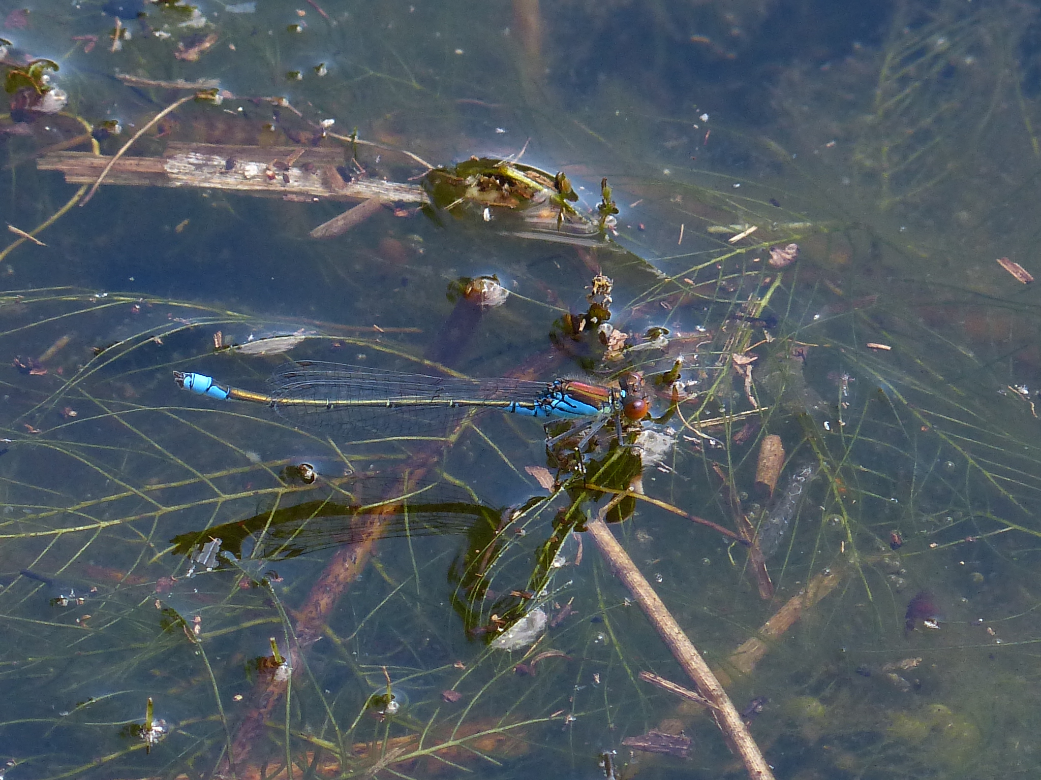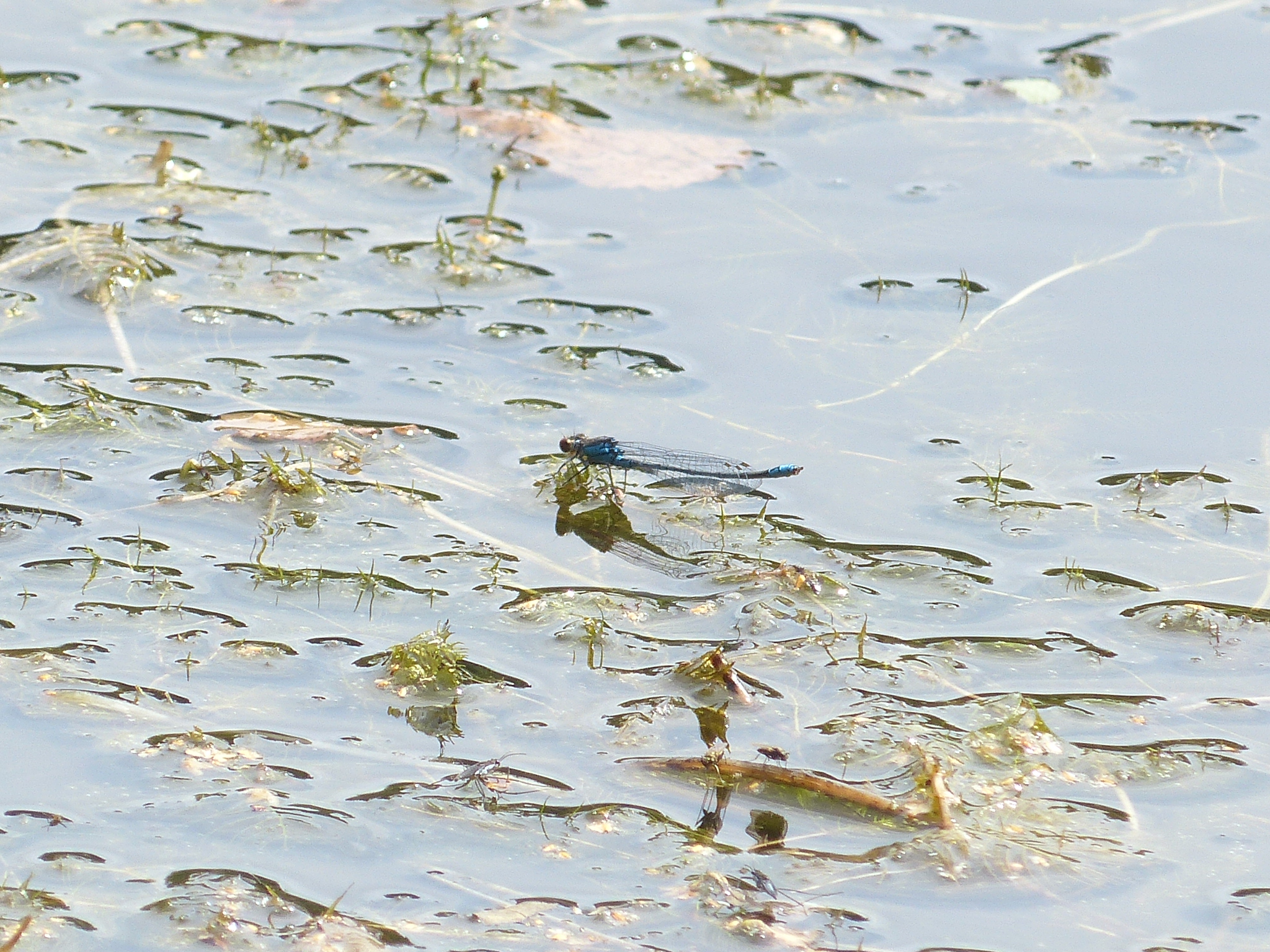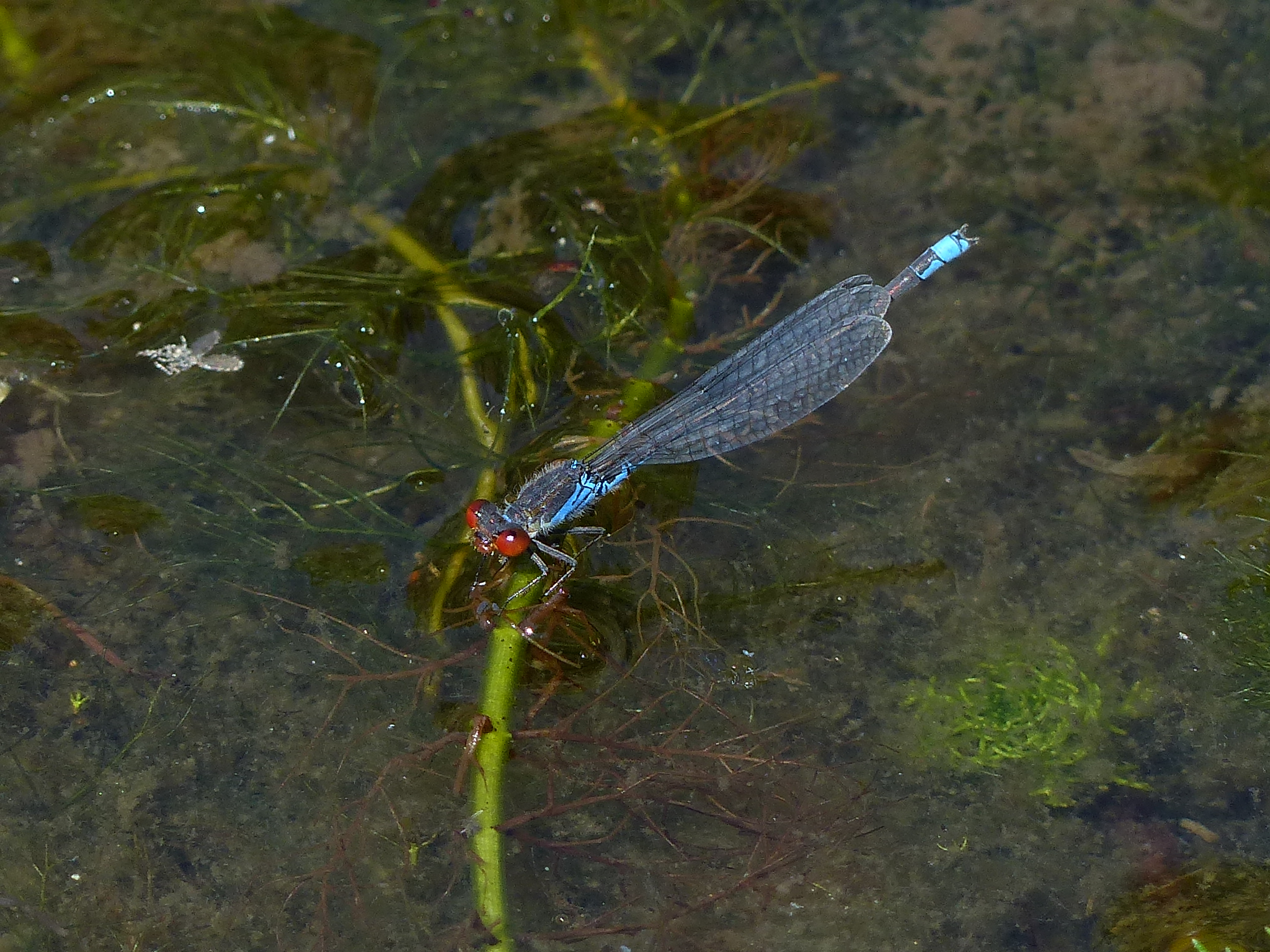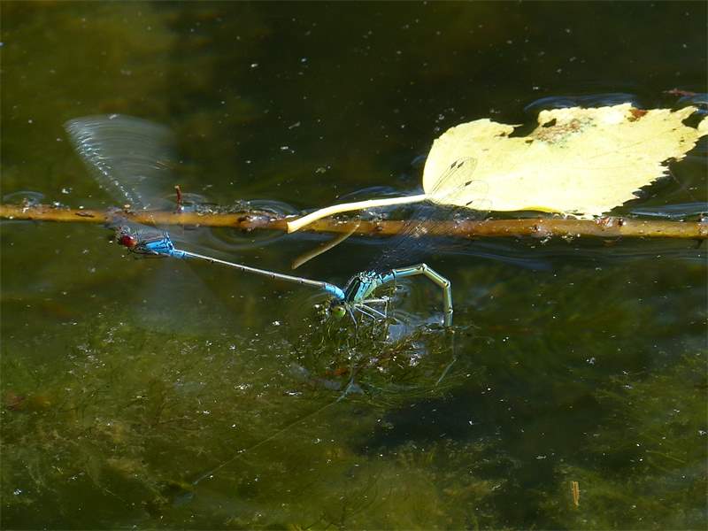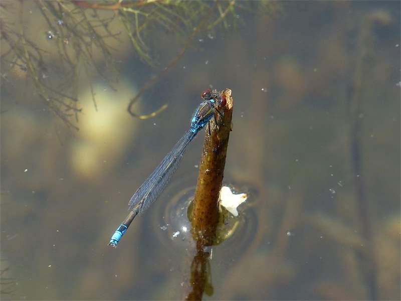 Kleines Granatauge bei der Eiablage am Schloßteich Pulsnitz, Weibchen beim ersten Bild bis auf die Flügelspitzen untergetaucht