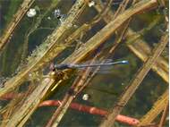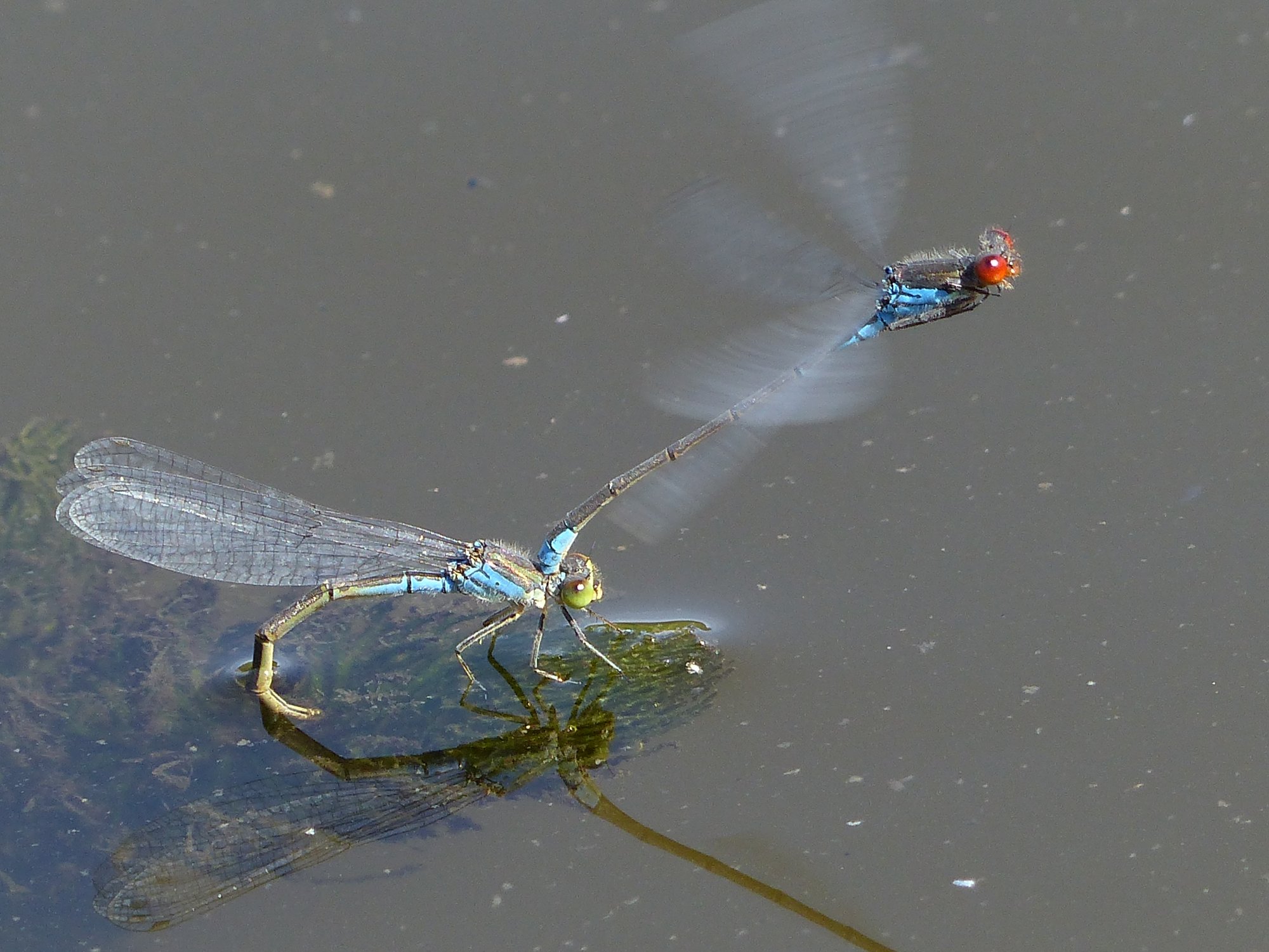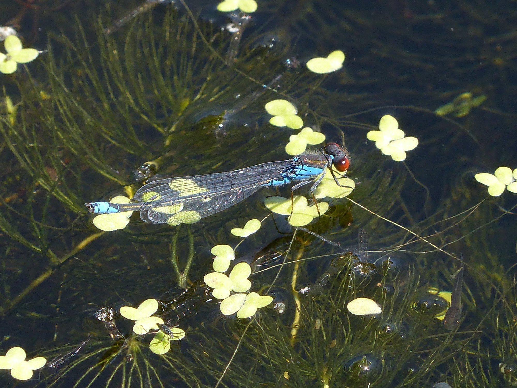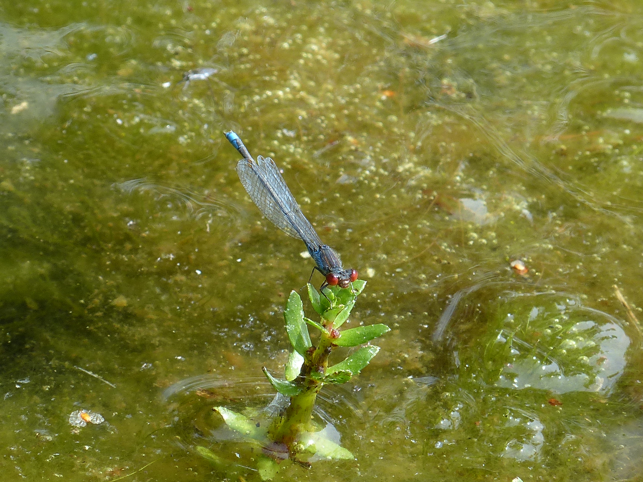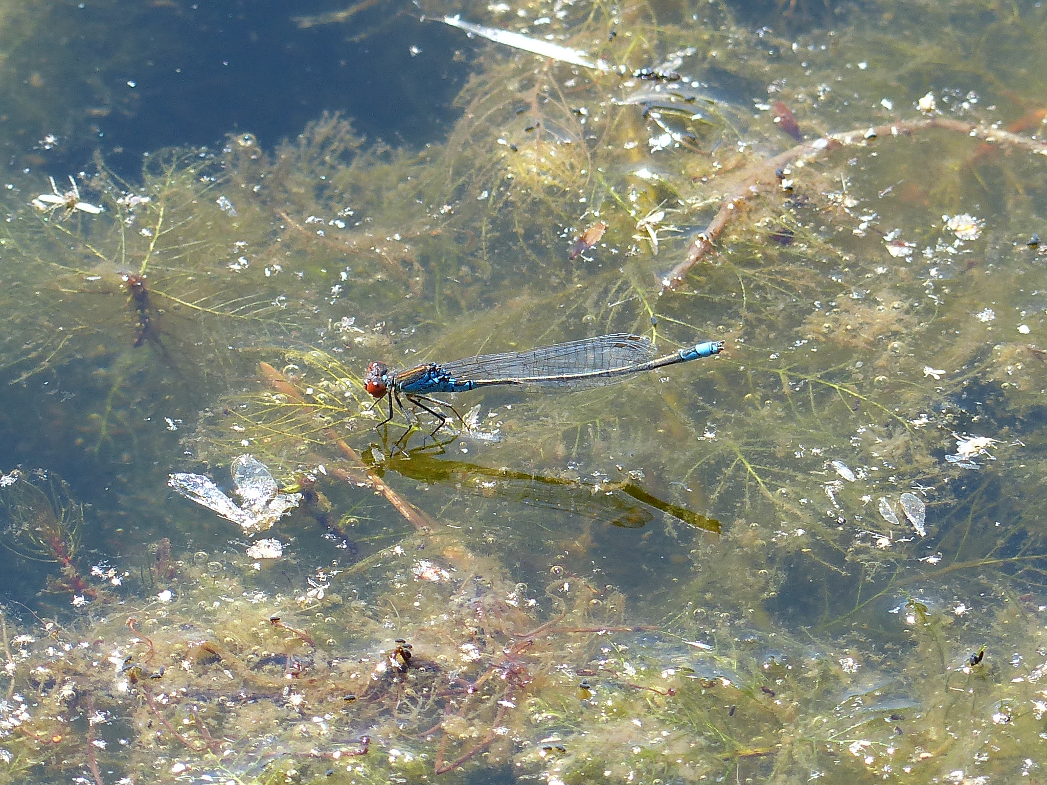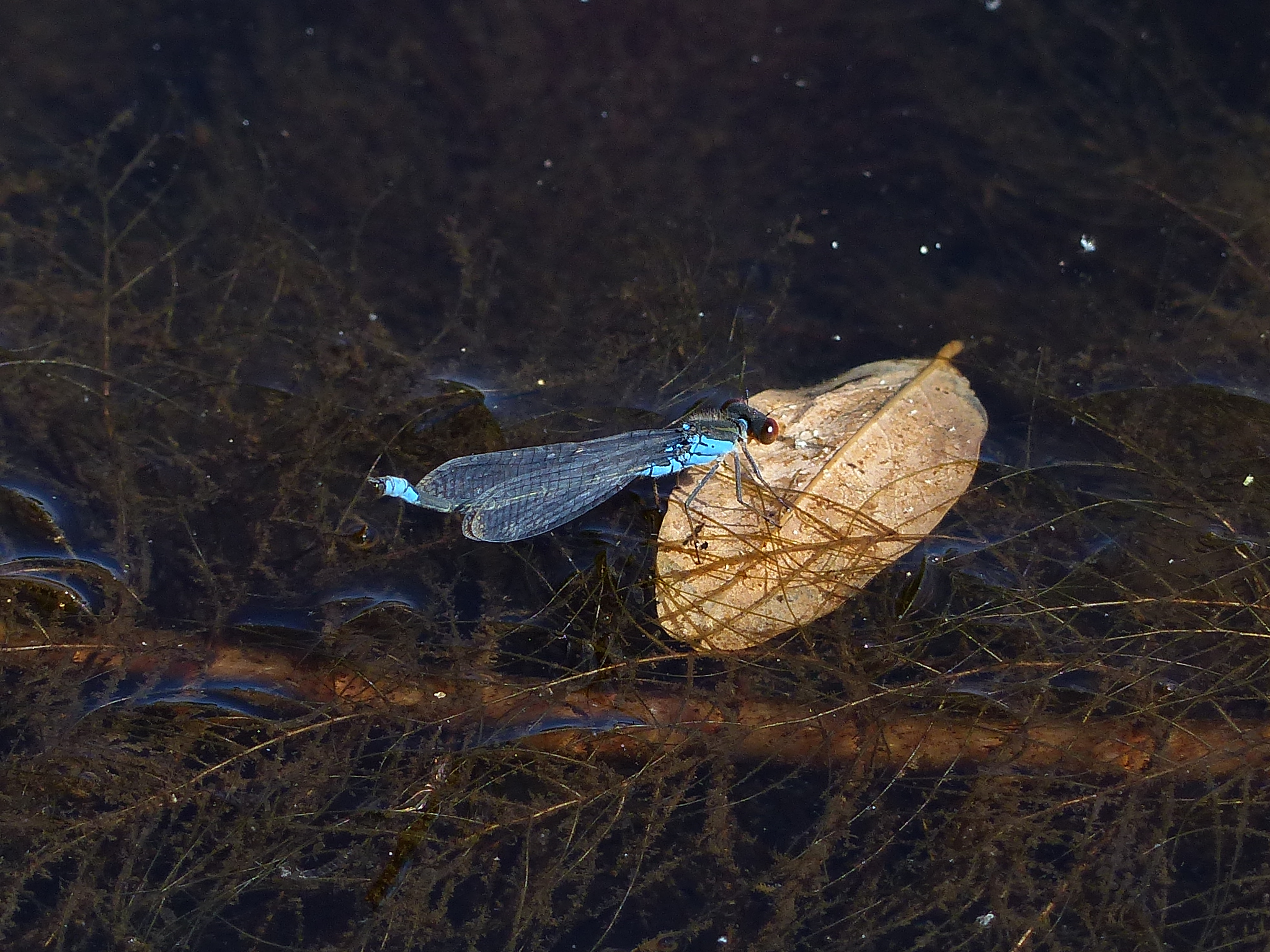 Kleines Granatauge bei der Eiablage am Schloßteich Pulsnitz, Weibchen beim ersten Bild bis auf die Flügelspitzen untergetaucht