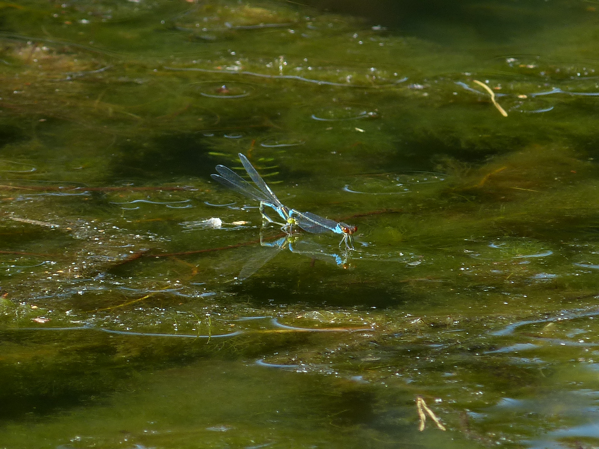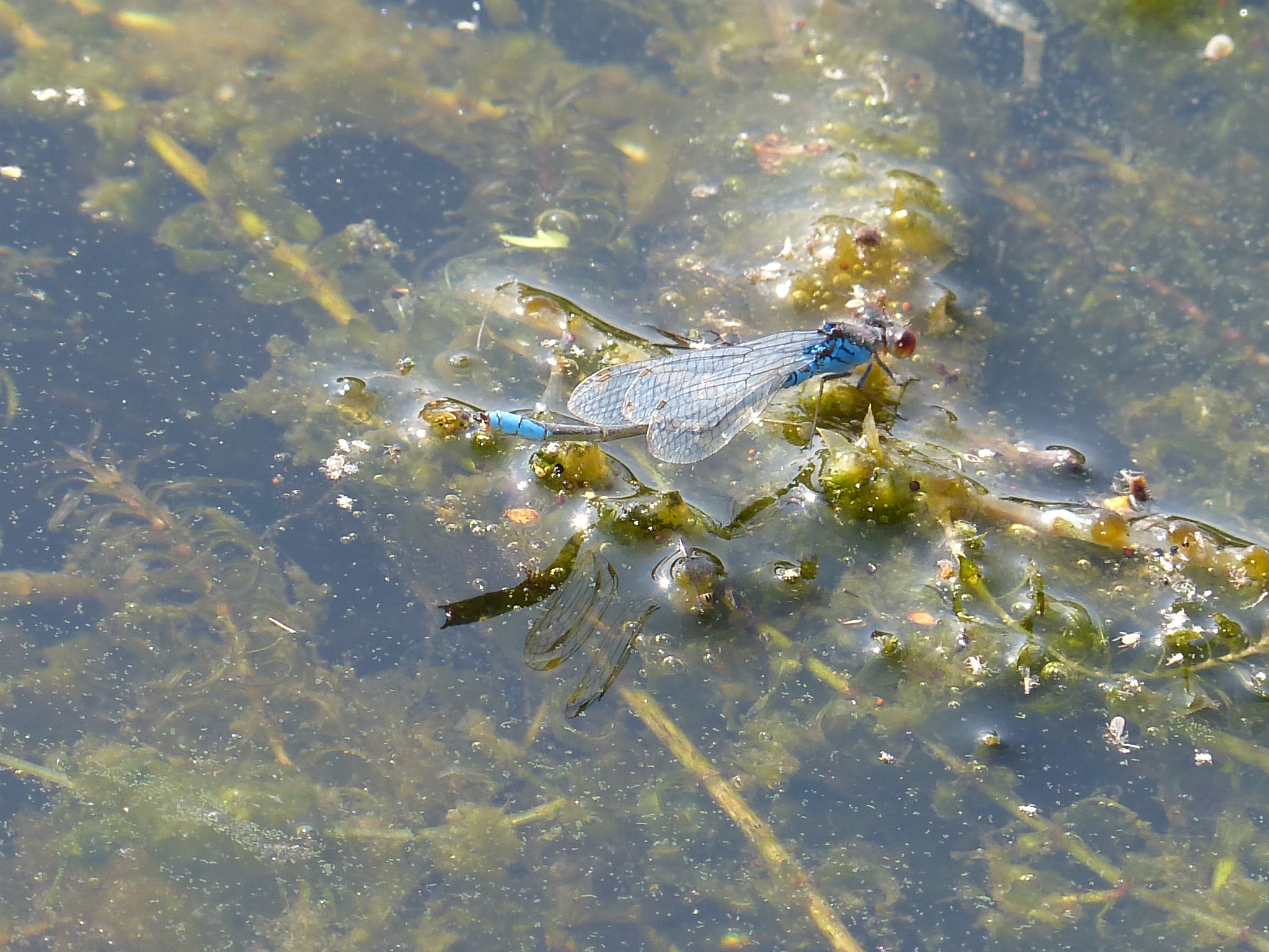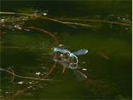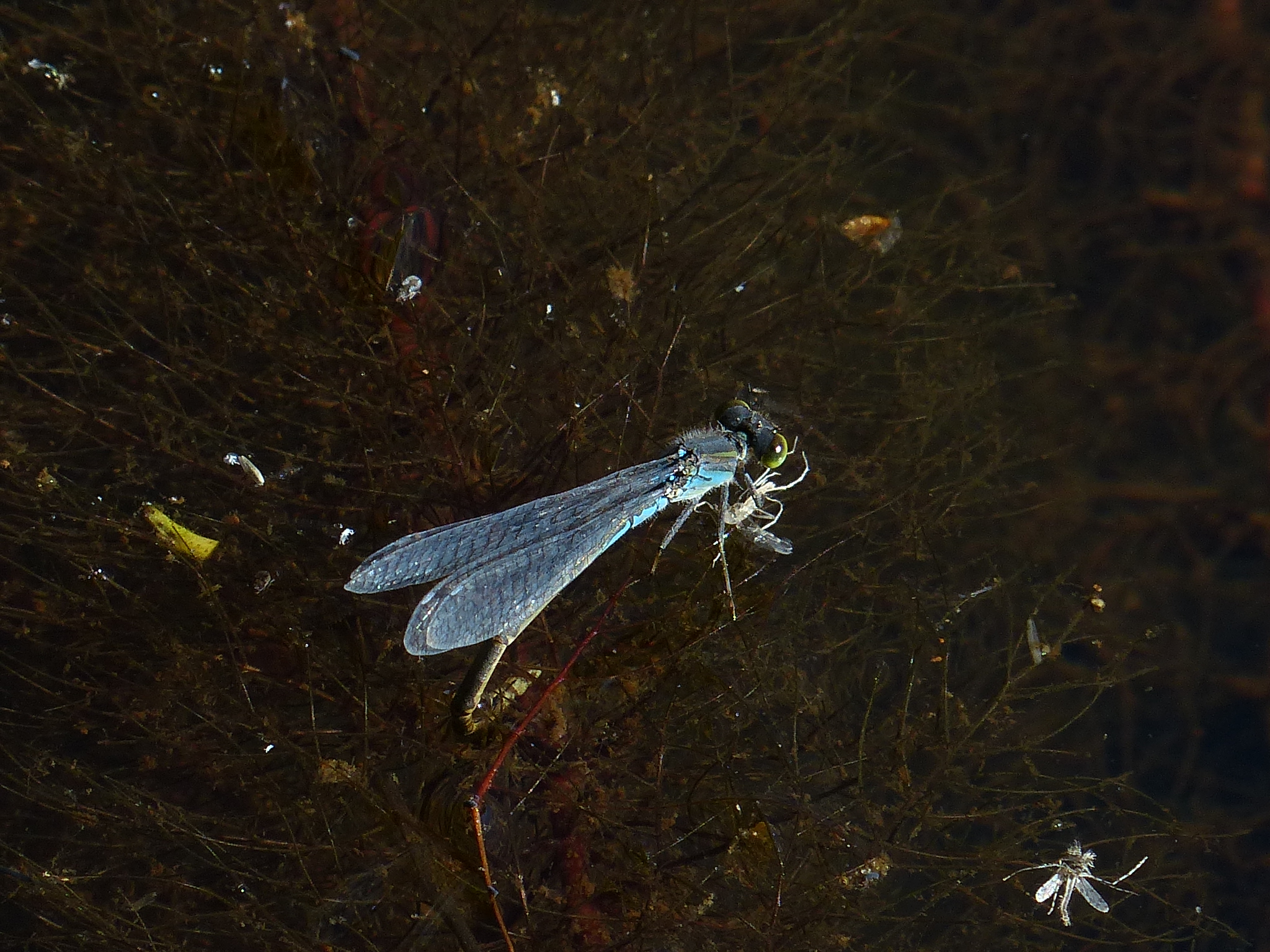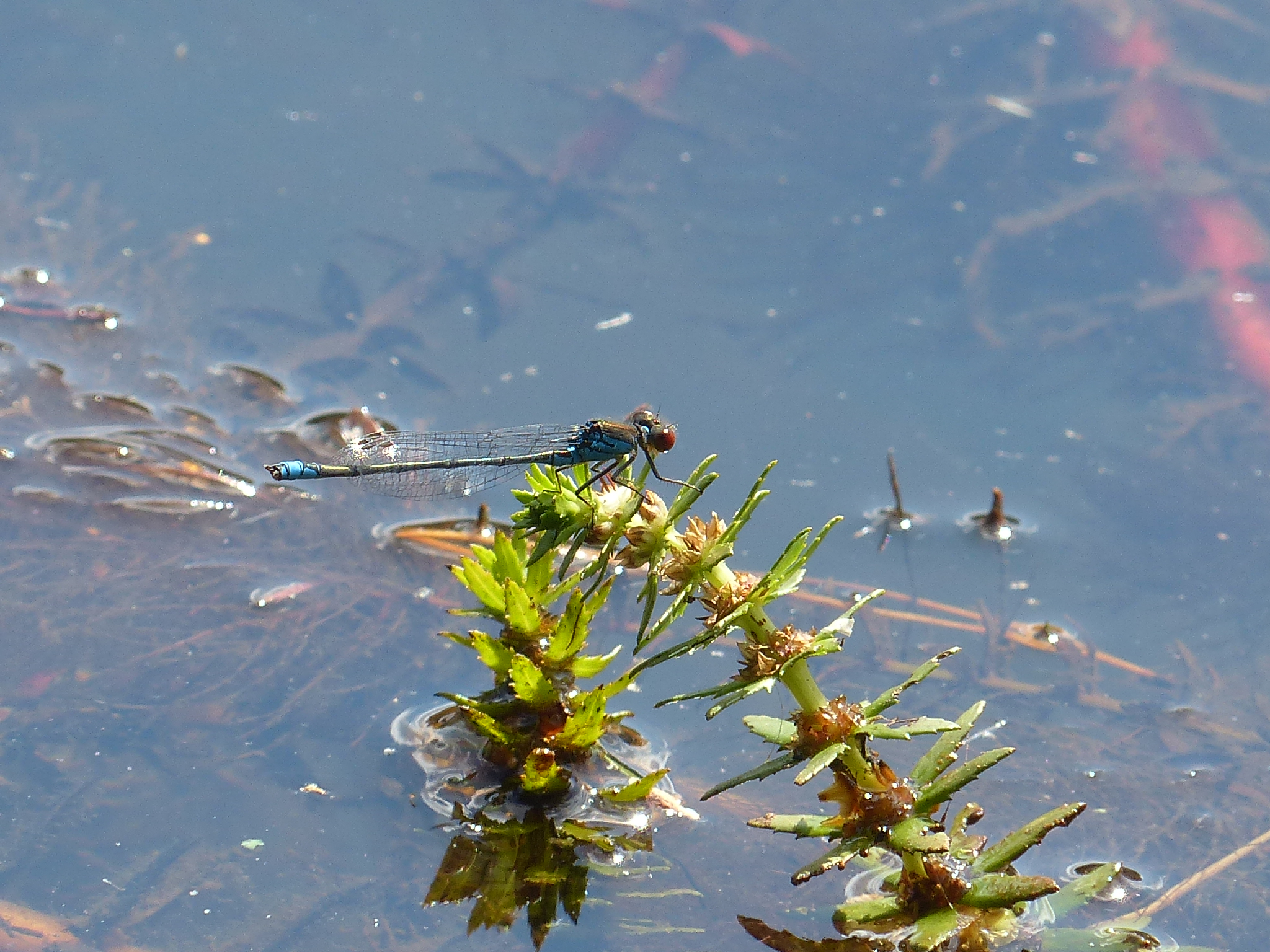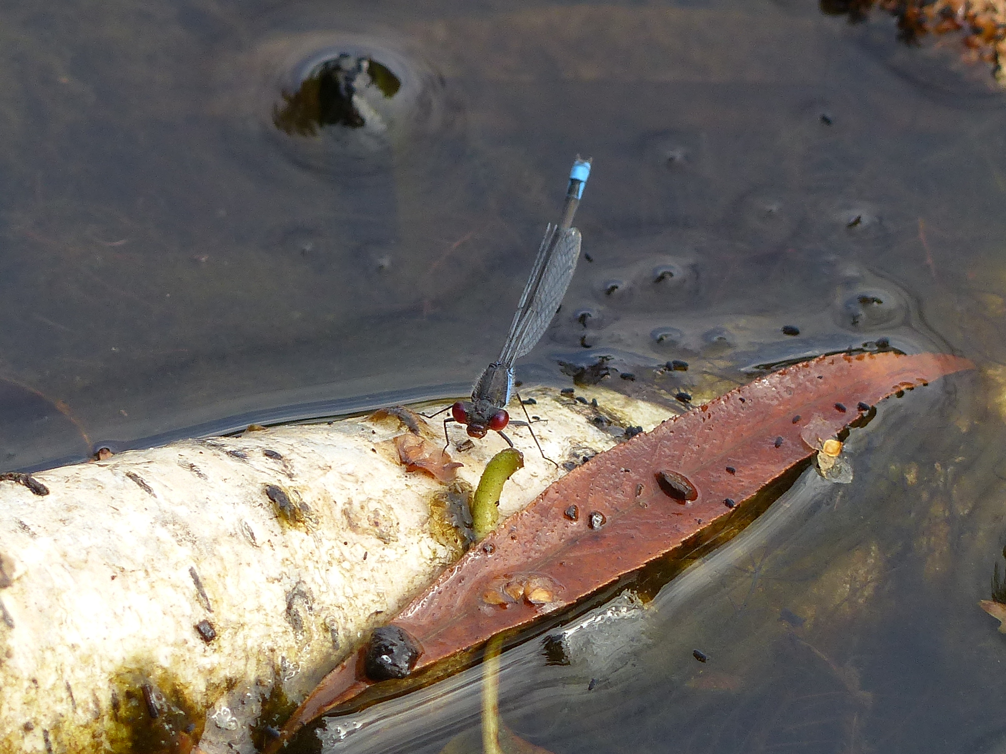 Kleines Granatauge bei der Eiablage am Schloßteich Pulsnitz, Weibchen beim ersten Bild bis auf die Flügelspitzen untergetaucht