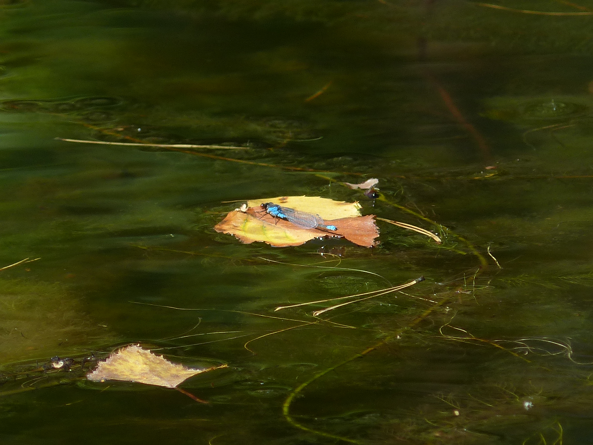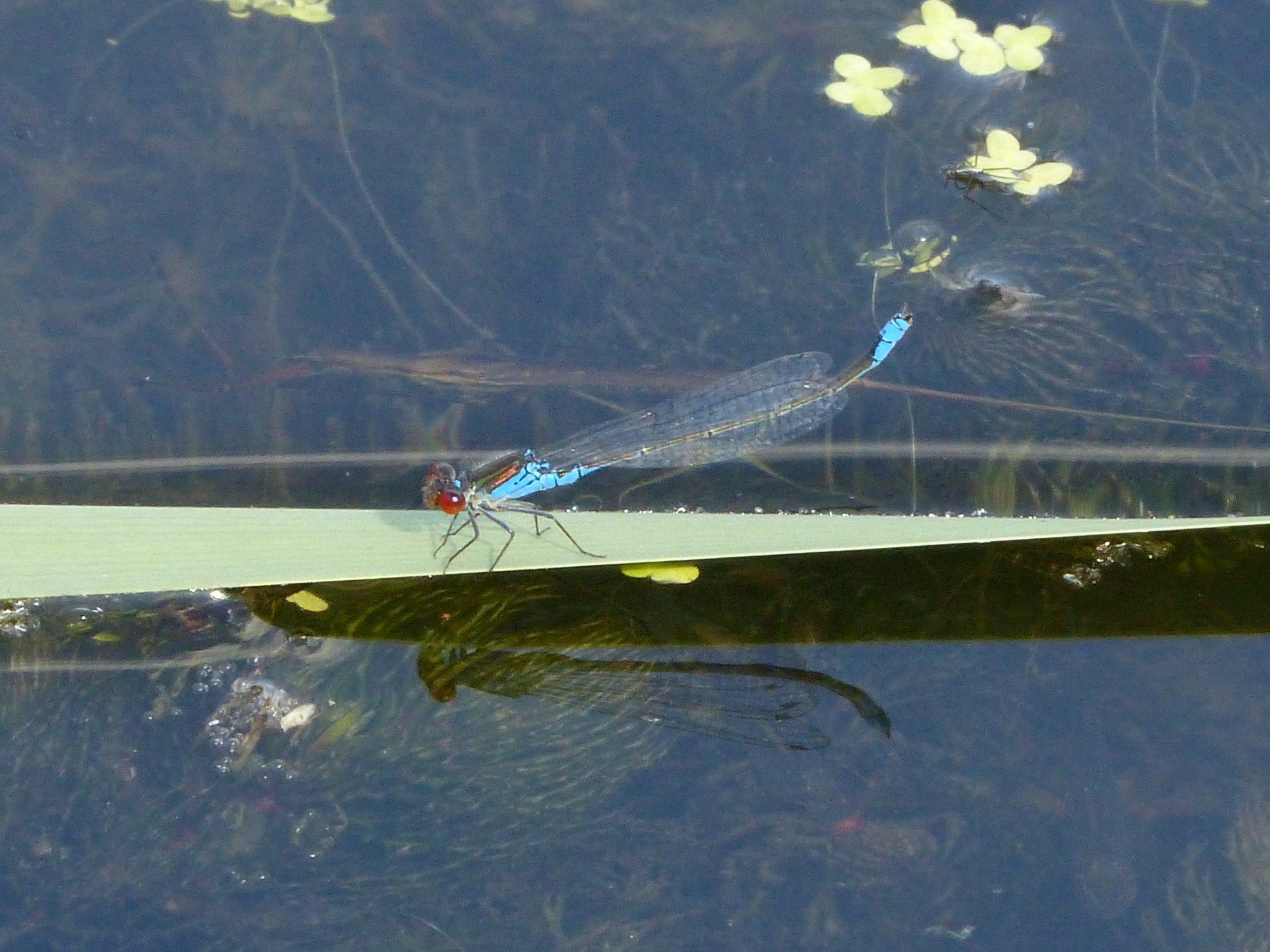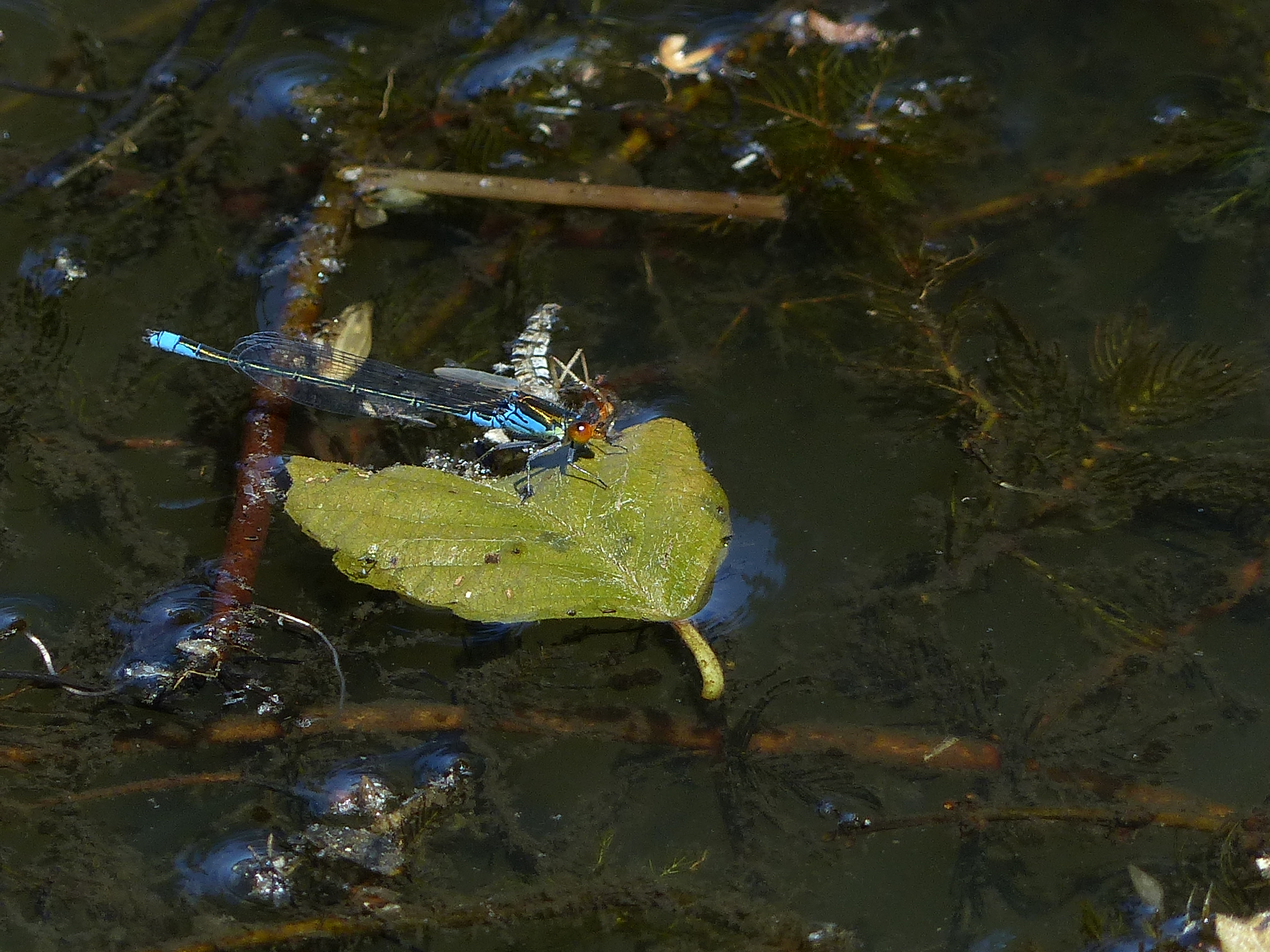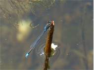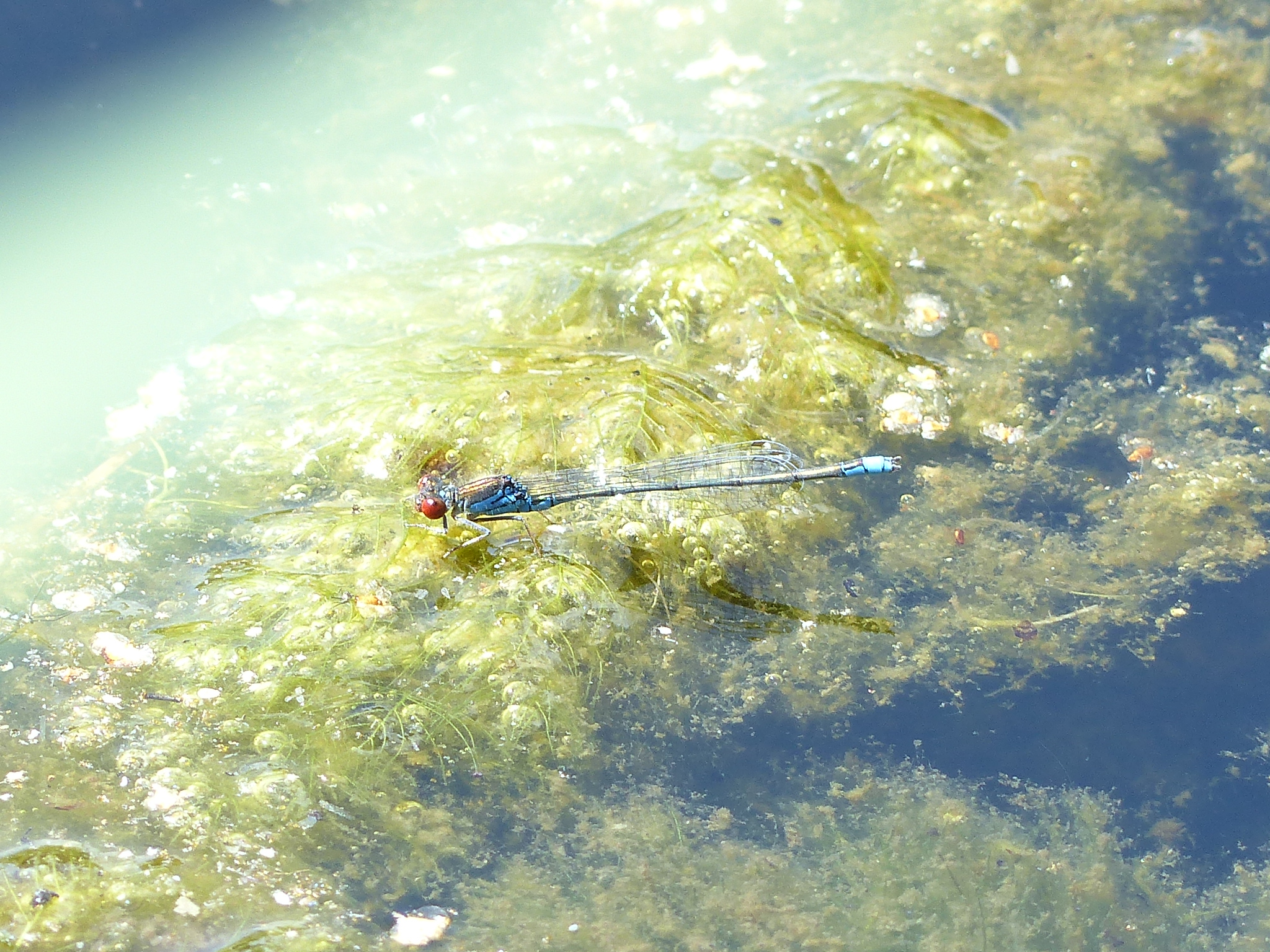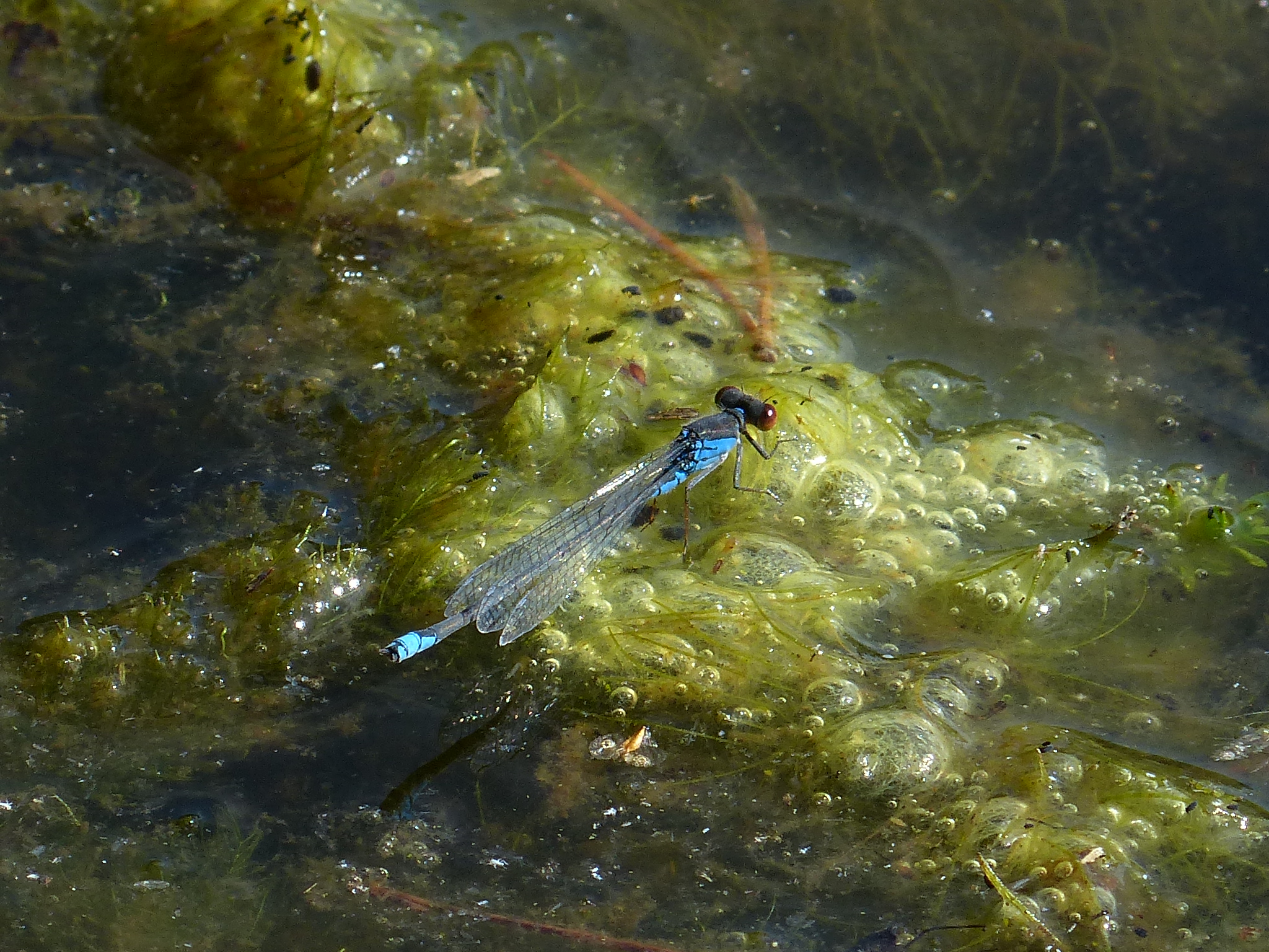 Kleines Granatauge bei der Eiablage am Schloßteich Pulsnitz, Weibchen beim ersten Bild bis auf die Flügelspitzen untergetaucht