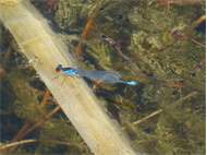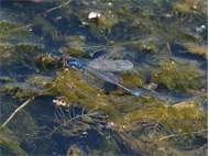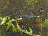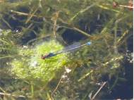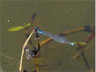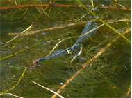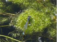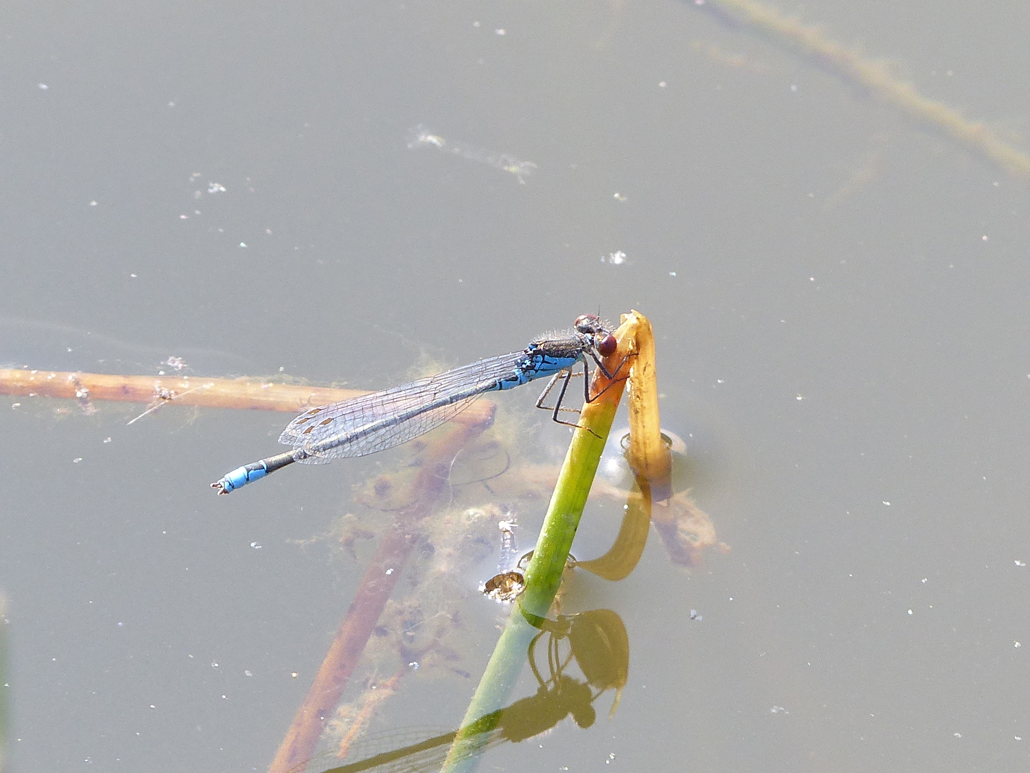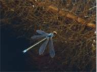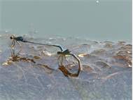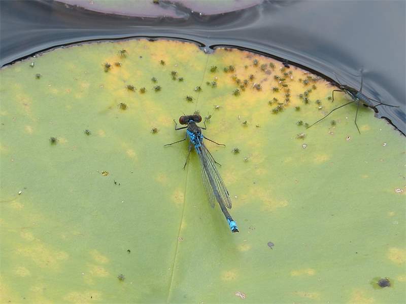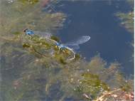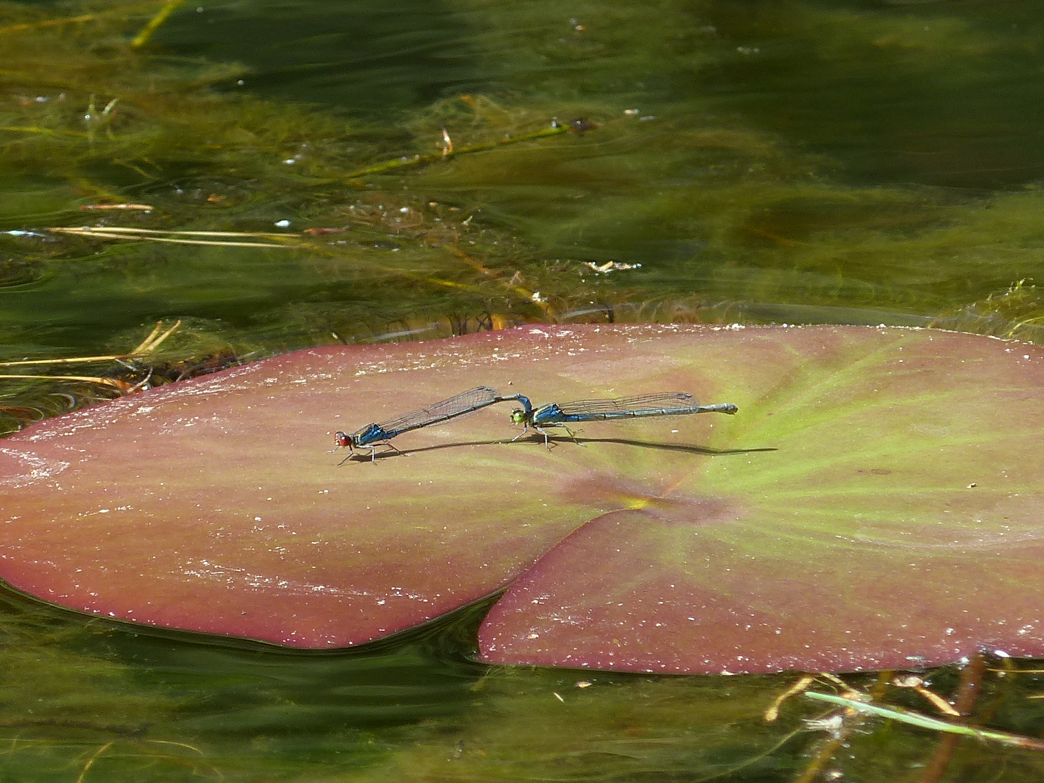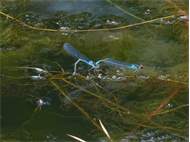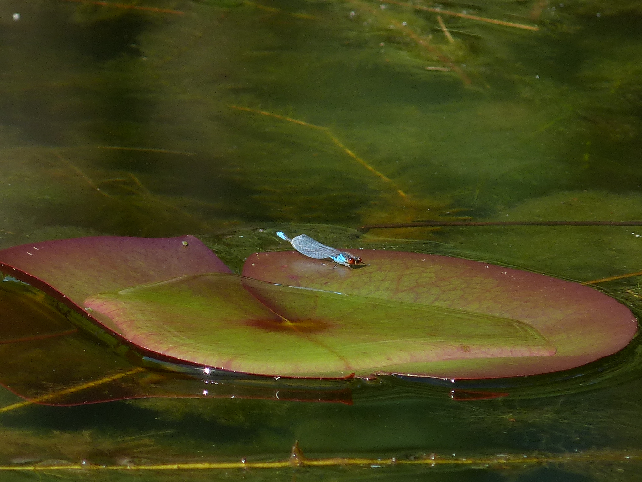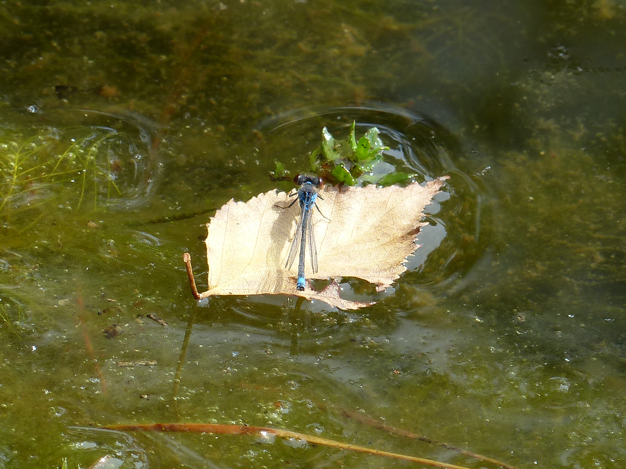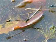 Kleines Granatauge bei der Eiablage am Schloßteich Pulsnitz, Weibchen beim ersten Bild bis auf die Flügelspitzen untergetaucht