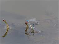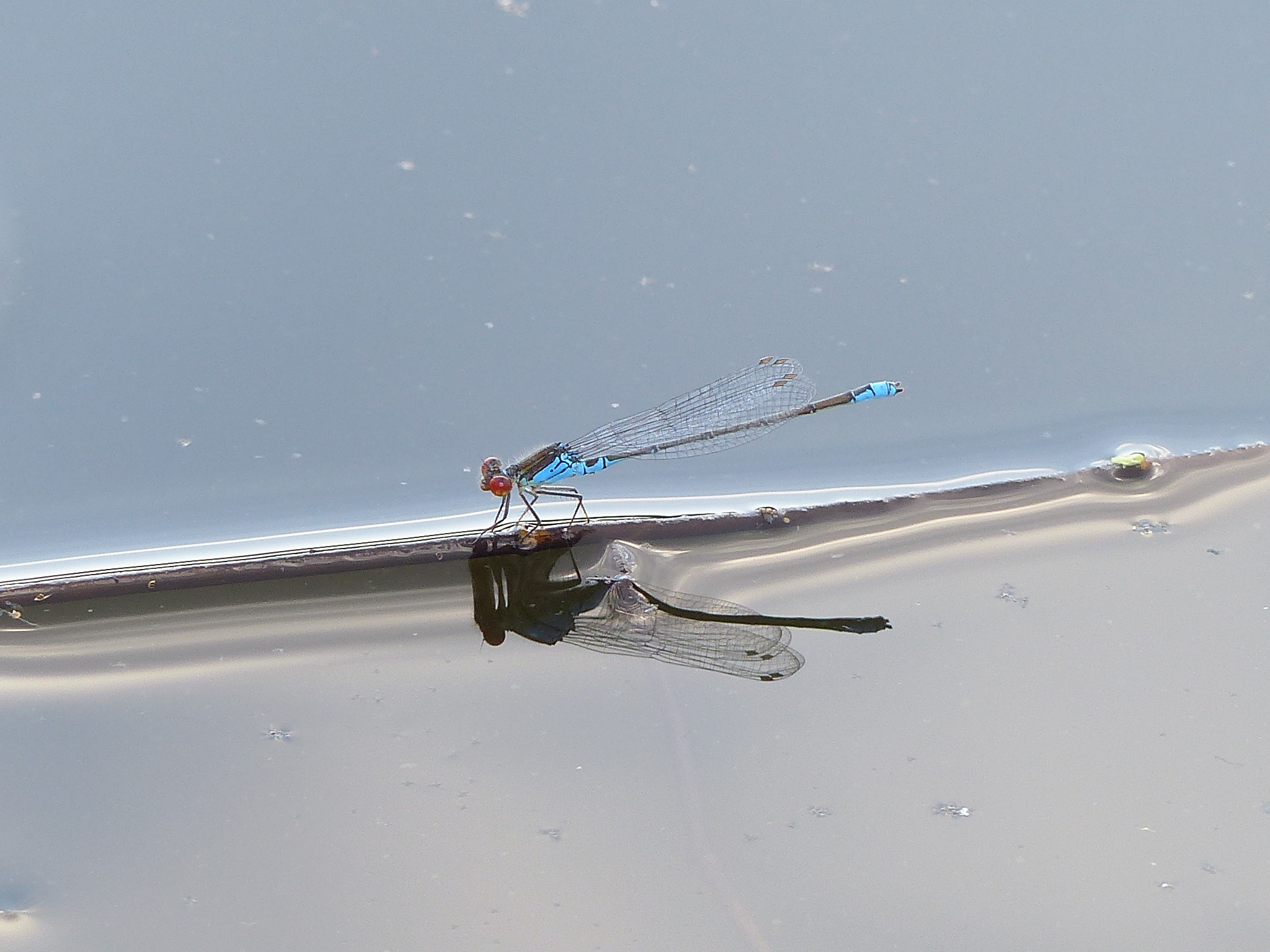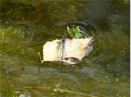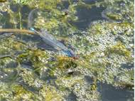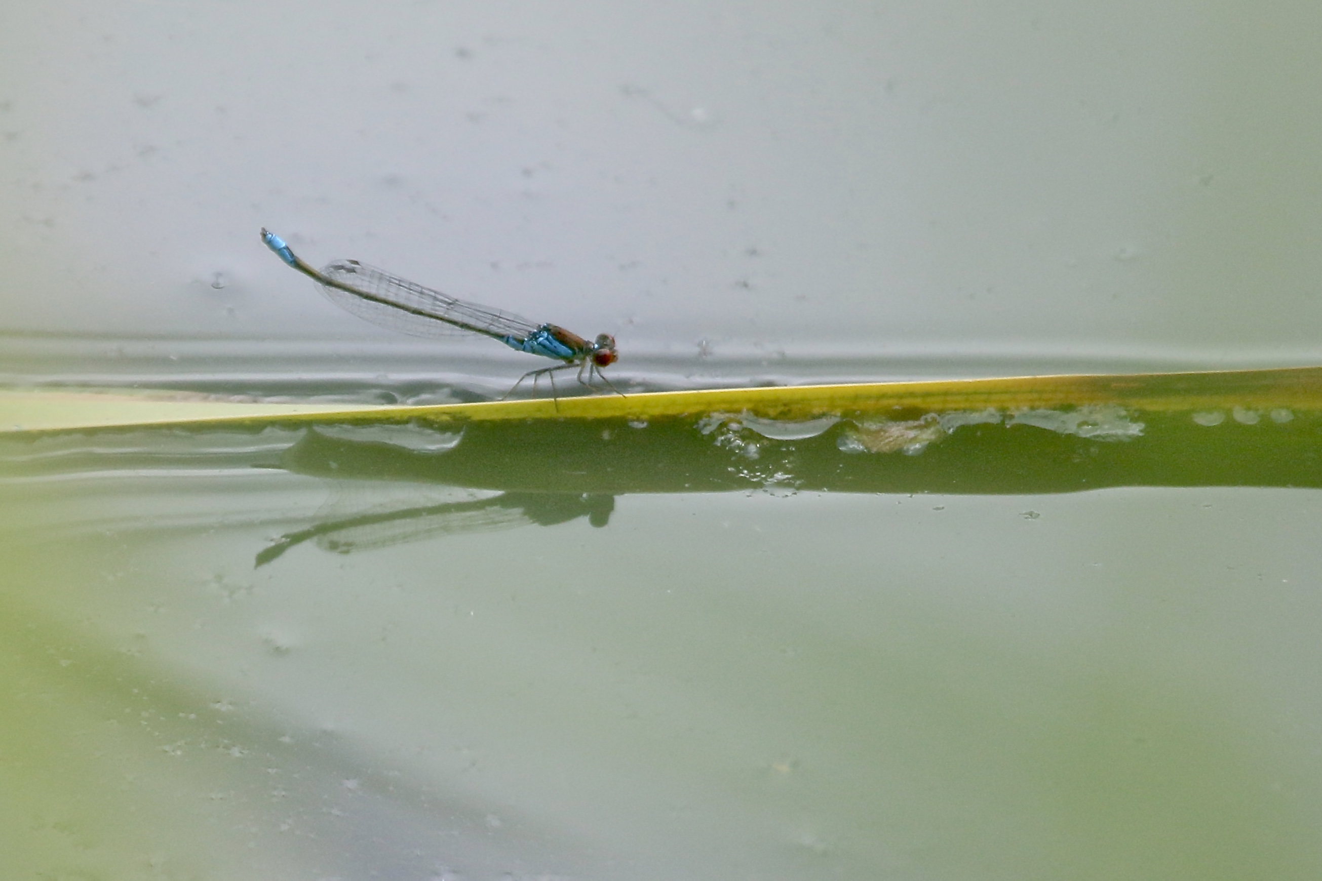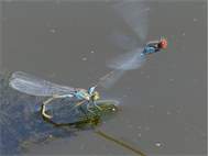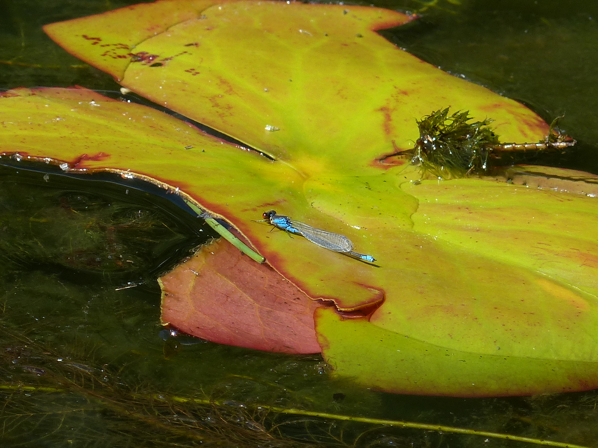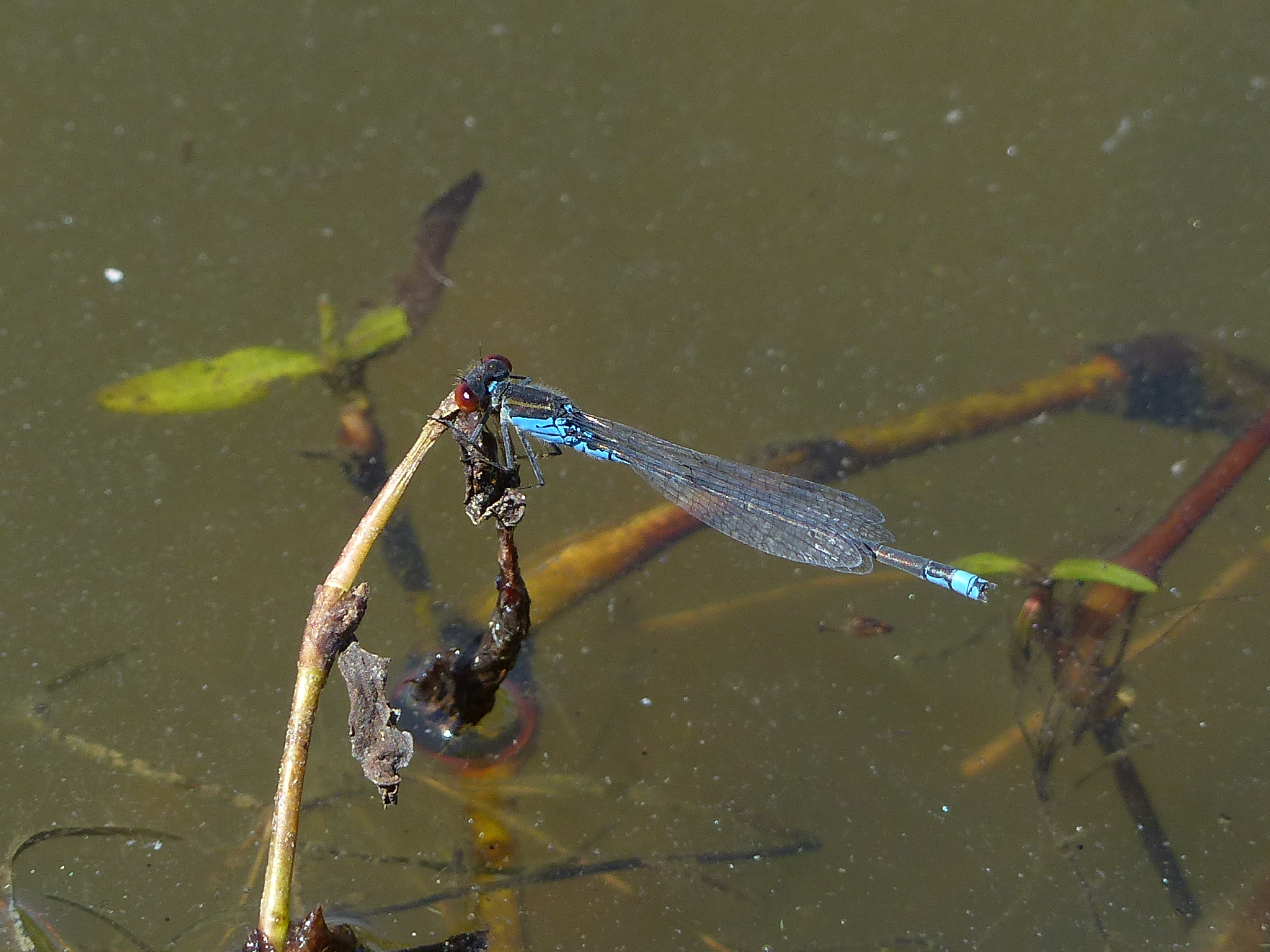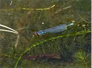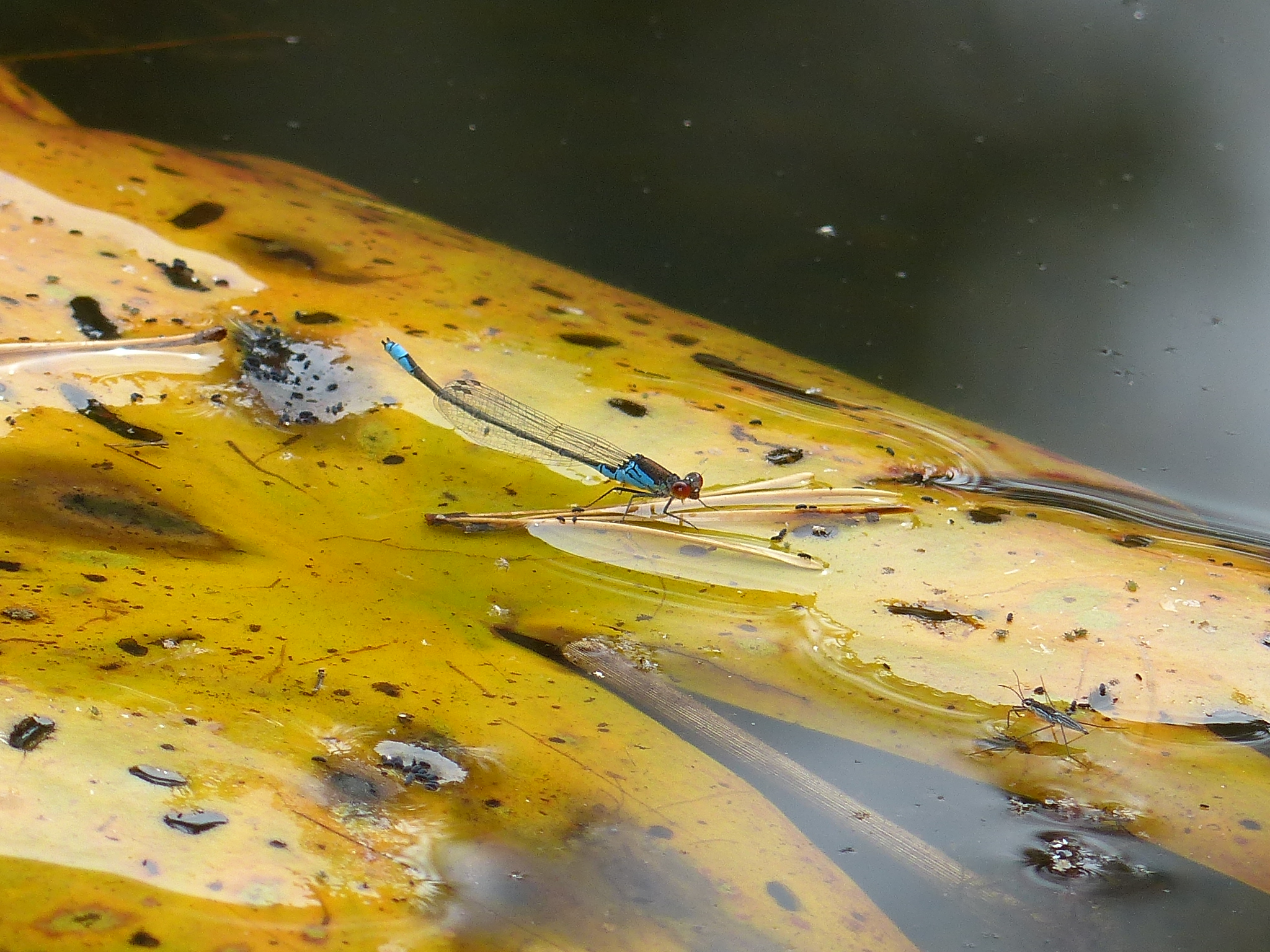 Kleines Granatauge bei der Eiablage am Schloßteich Pulsnitz, Weibchen beim ersten Bild bis auf die Flügelspitzen untergetaucht