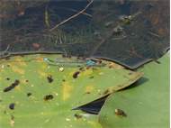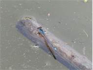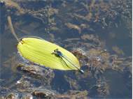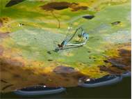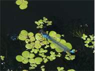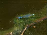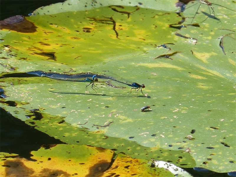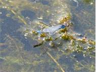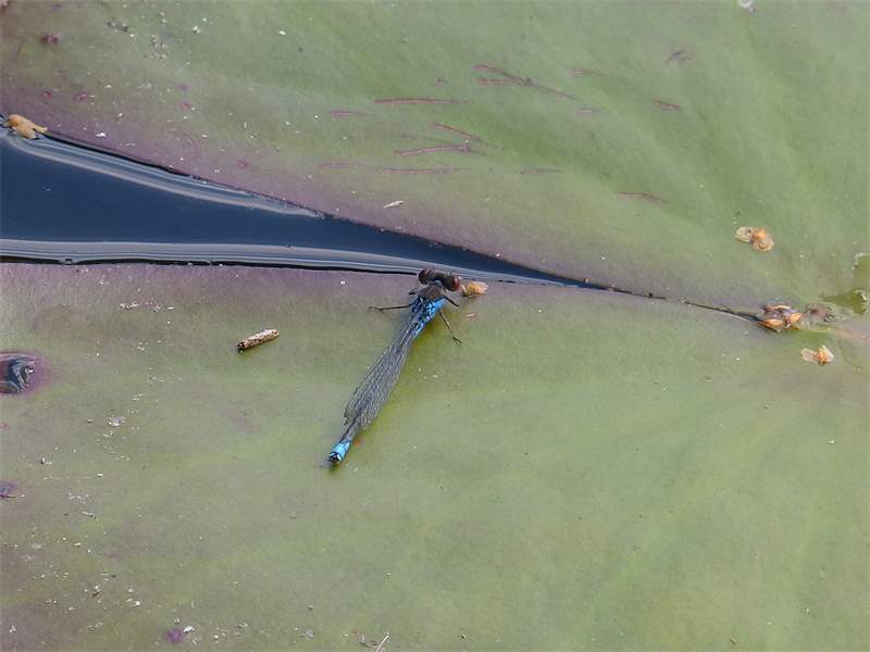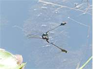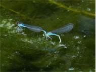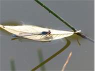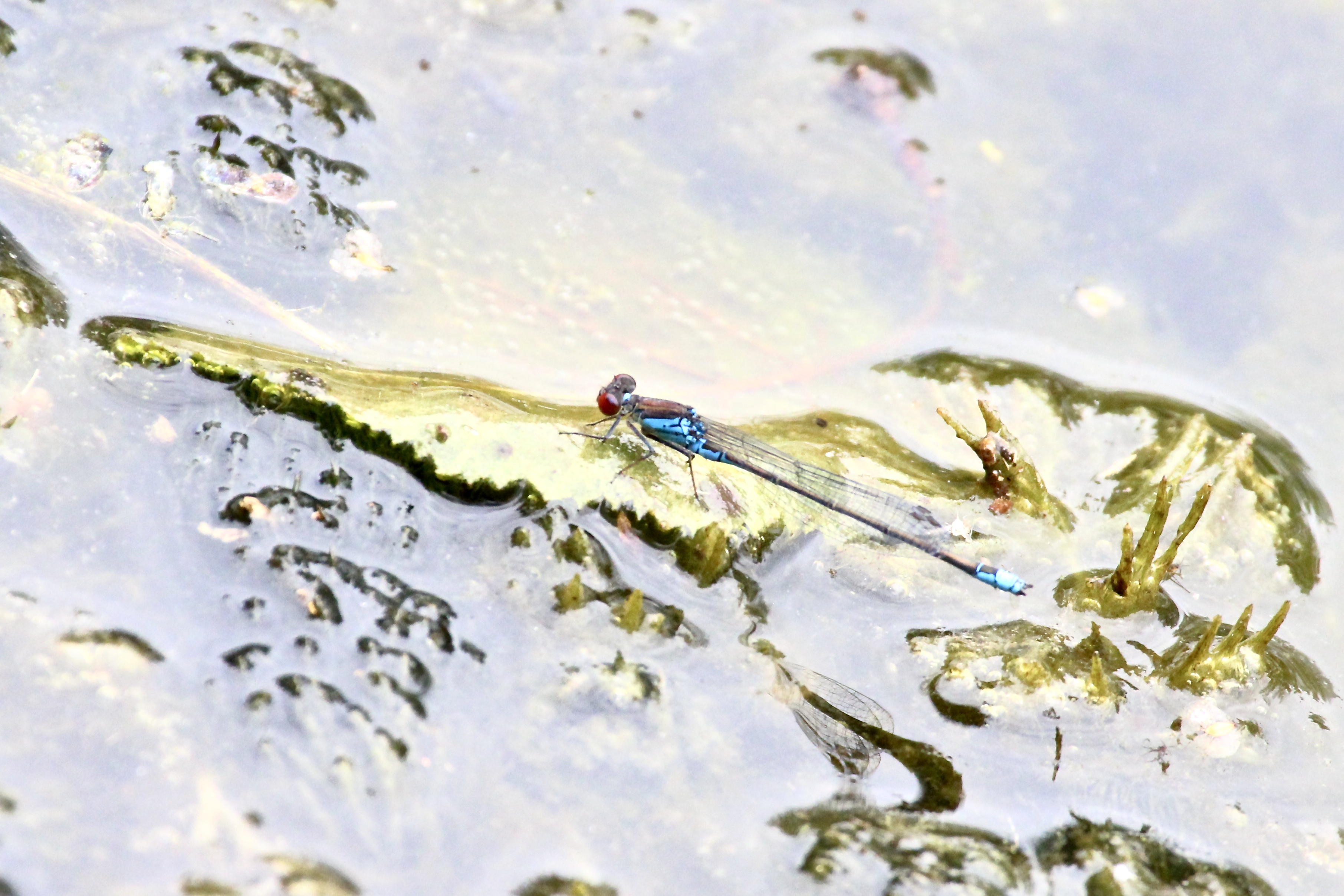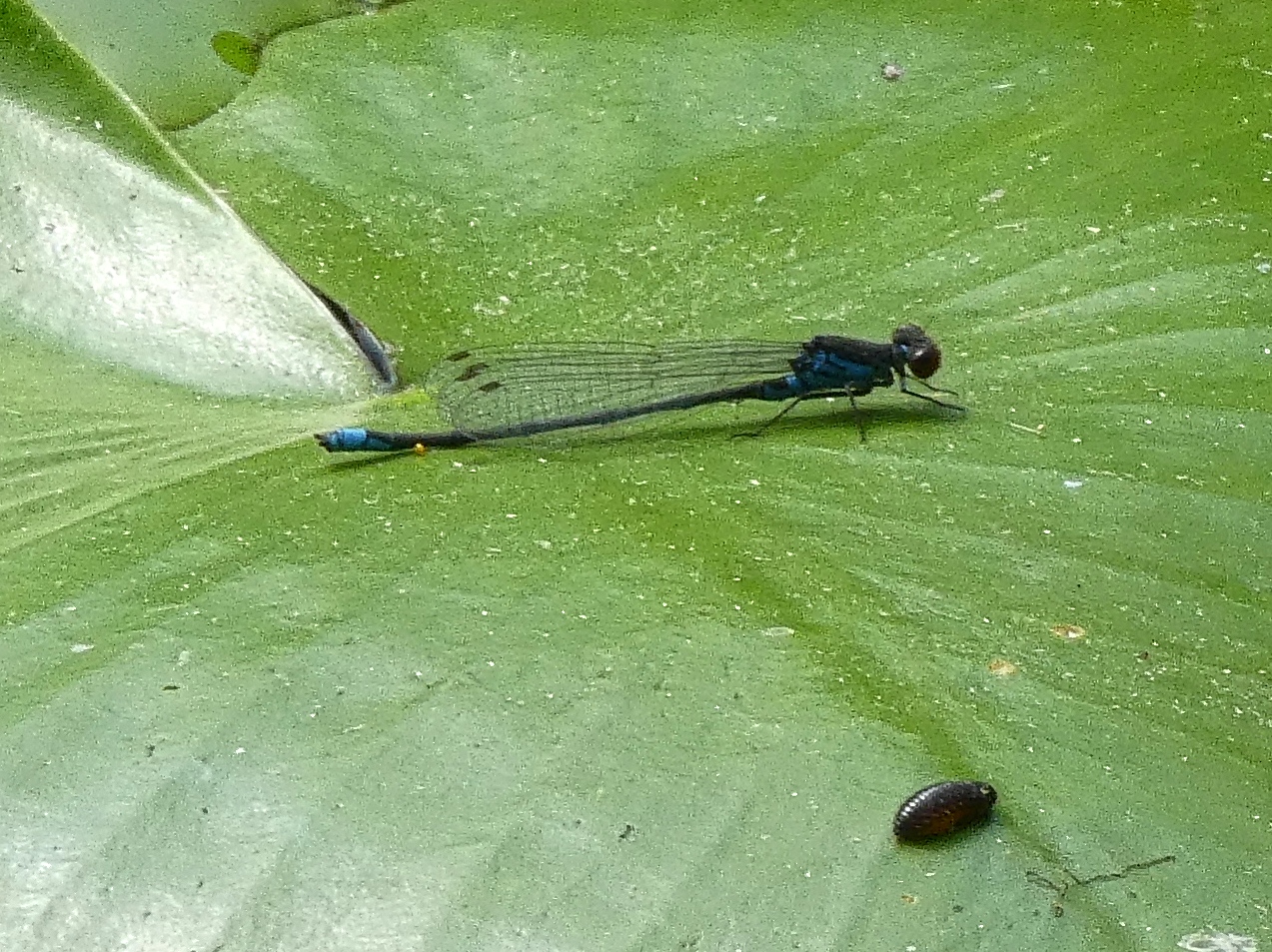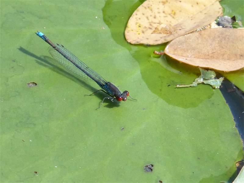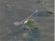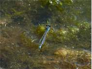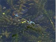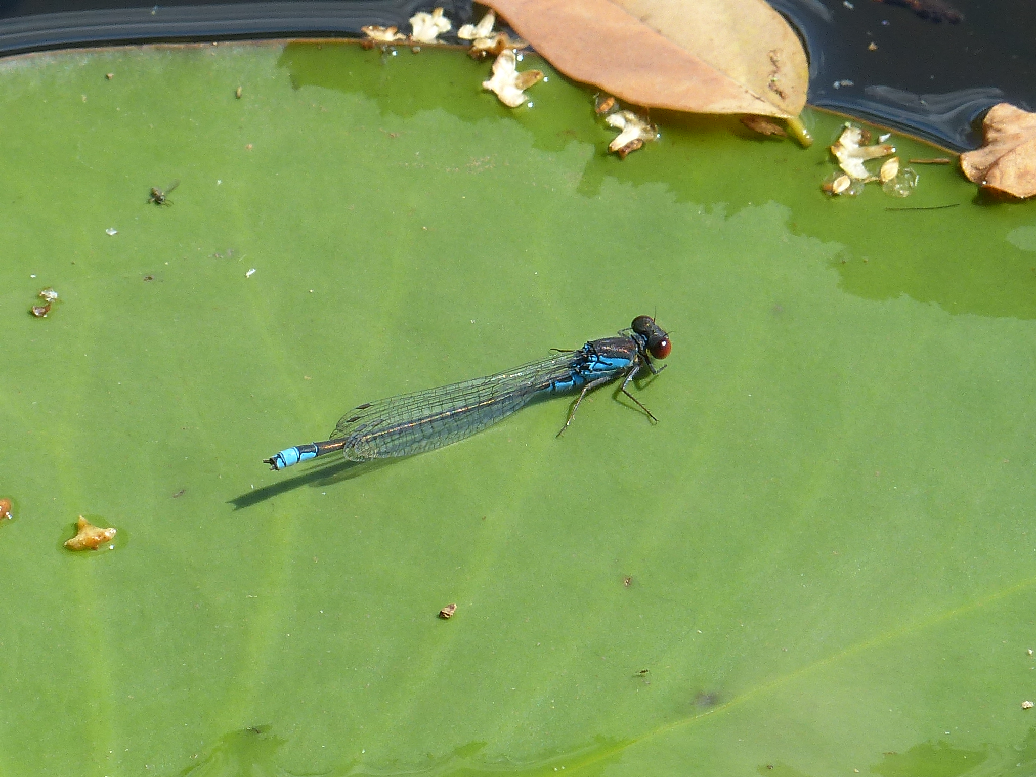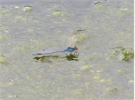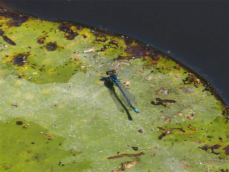 Kleines Granatauge bei der Eiablage am Schloßteich Pulsnitz, Weibchen beim ersten Bild bis auf die Flügelspitzen untergetaucht