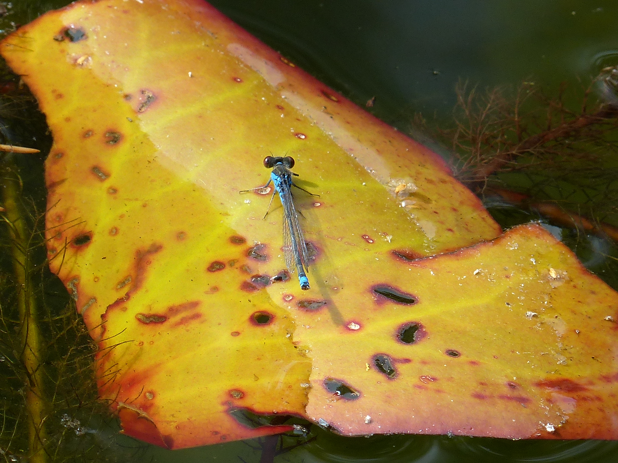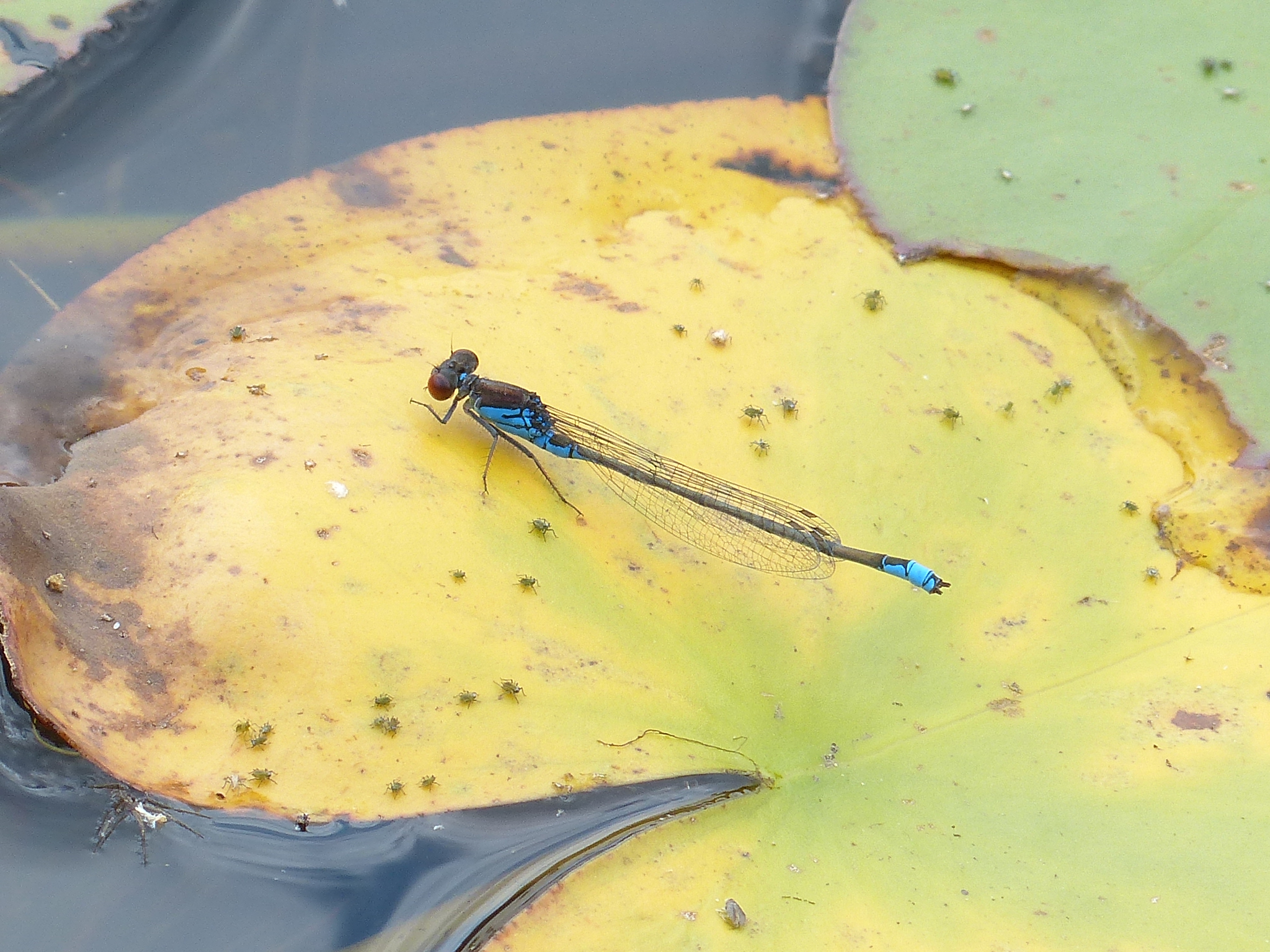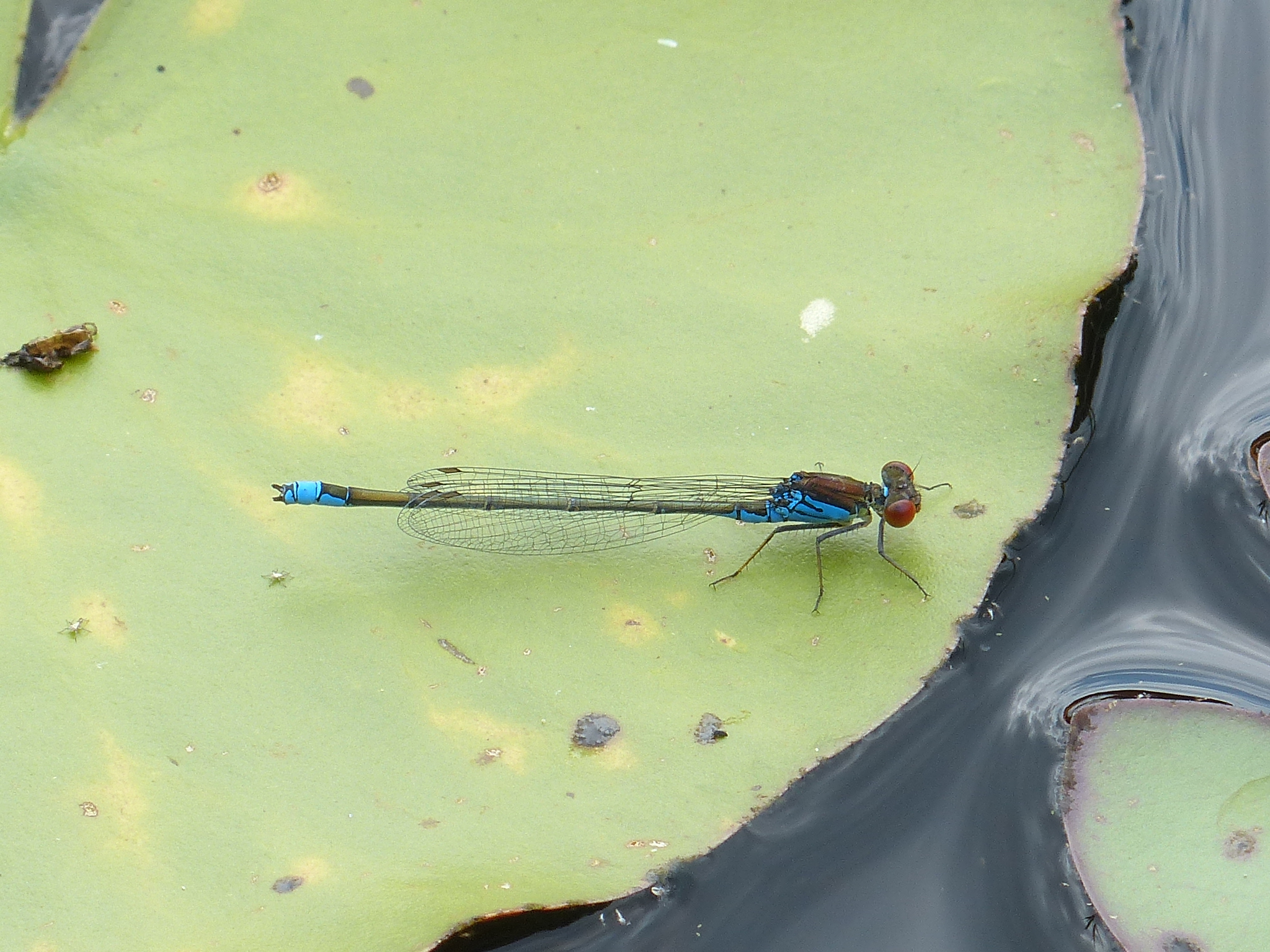 Kleines Granatauge (Erythromma viridulum (Charpentier, 1840)) am Neuteich in Schönteichen, Ende August 2018