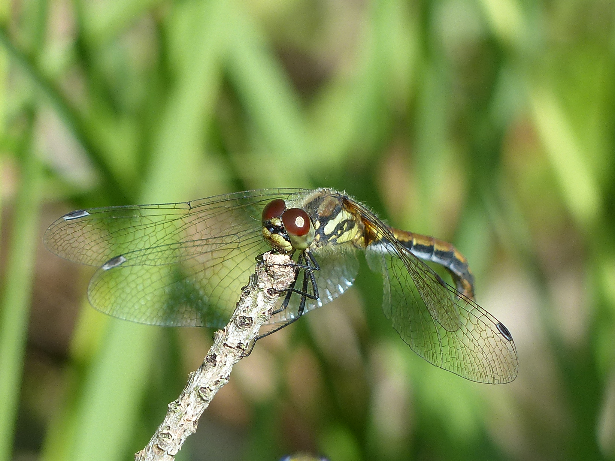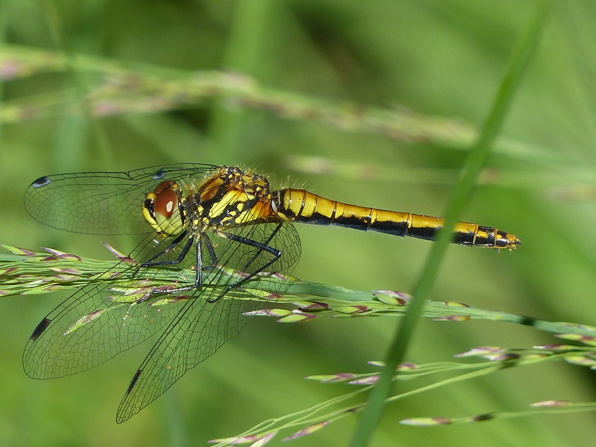 Ähnliche Arten: Innerhalb der Gattung Sympetrum besitzen nur die Blutrote Heidelibelle (Sympetrum sanguineum) und die Sumpf-Heidelibelle (Sympetrum depressiusculum) schwarze Beine und farblose Flügel ohne Binden. Beide Arten weisen auf den ockerfarbenen, rötlichen oder bräunlichen Thoraxseiten nur dünne schwarze Linien auf.